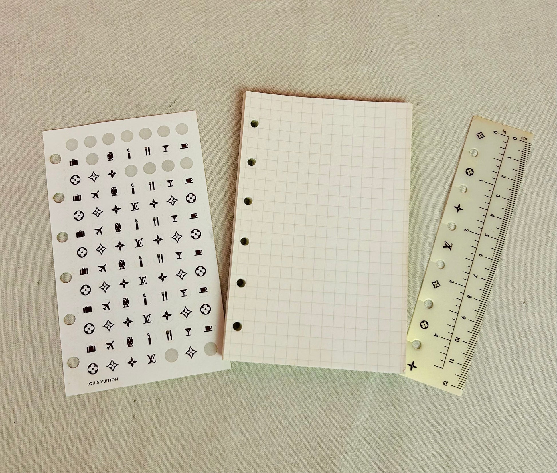 š Inclusion: Agenda cover, authentic LV ruler, Authentic LV stickers (some have been peeled off and used), grid paper