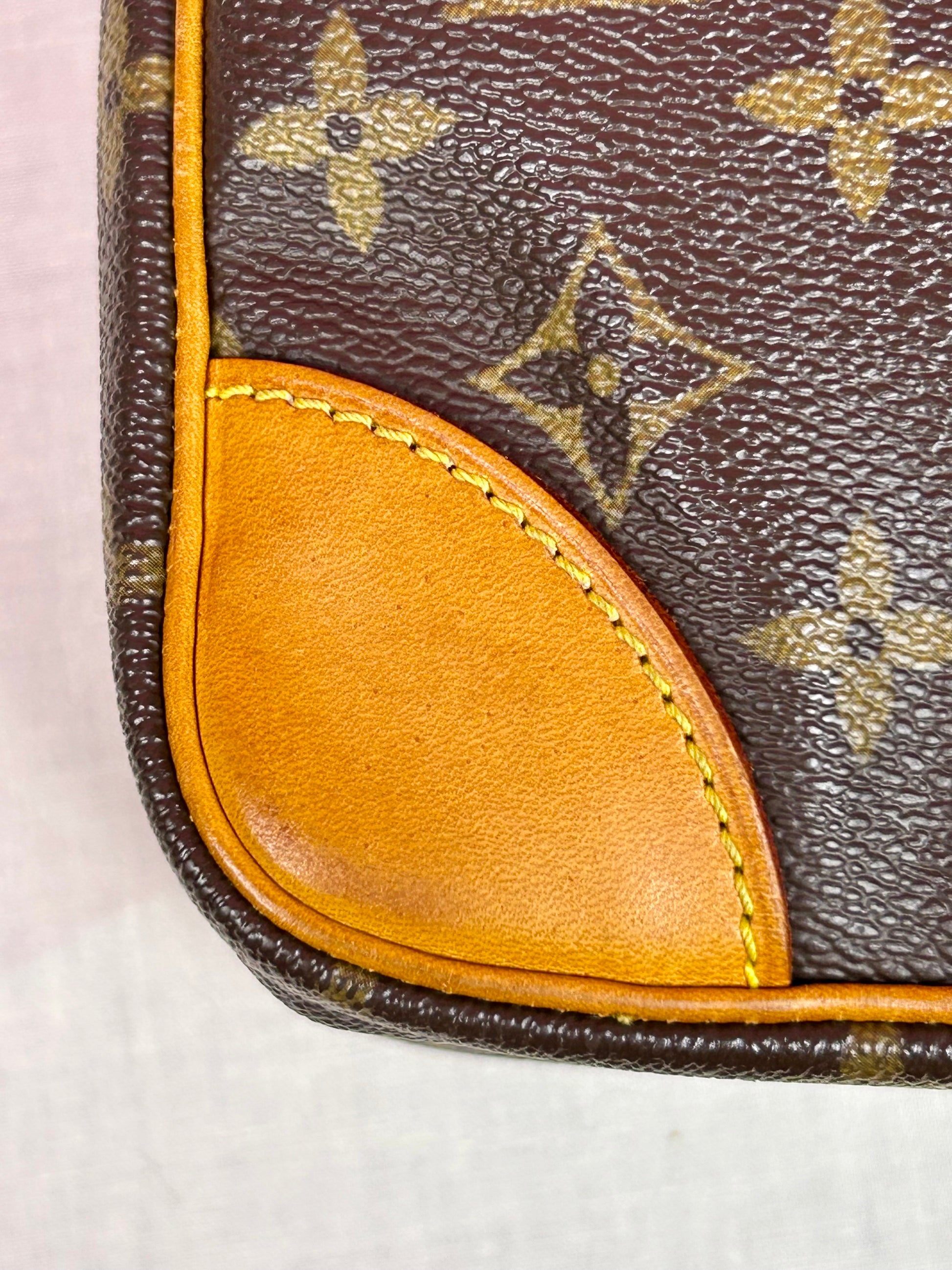 ๐ Description: A perfect everyday crossbody with classic structure and excellent craftsmanship. Canvas is in excellent condition with no cracks or tears. Leather has developed a beautiful patina. Leather piping and corners show mild wear consistent with normal use. Chapes have surface cracks but are strong and fully intact. The main interior compartment is clean with no peeling and only light wear inside the pocket. The front compartment is also clean with light wear. Both zippers pull smoothly and function well. Canvas strap is in beautiful condition with no cracksโjust some mild wrinkling on the topside. Minor cracks on the leather shoulder pad.ย