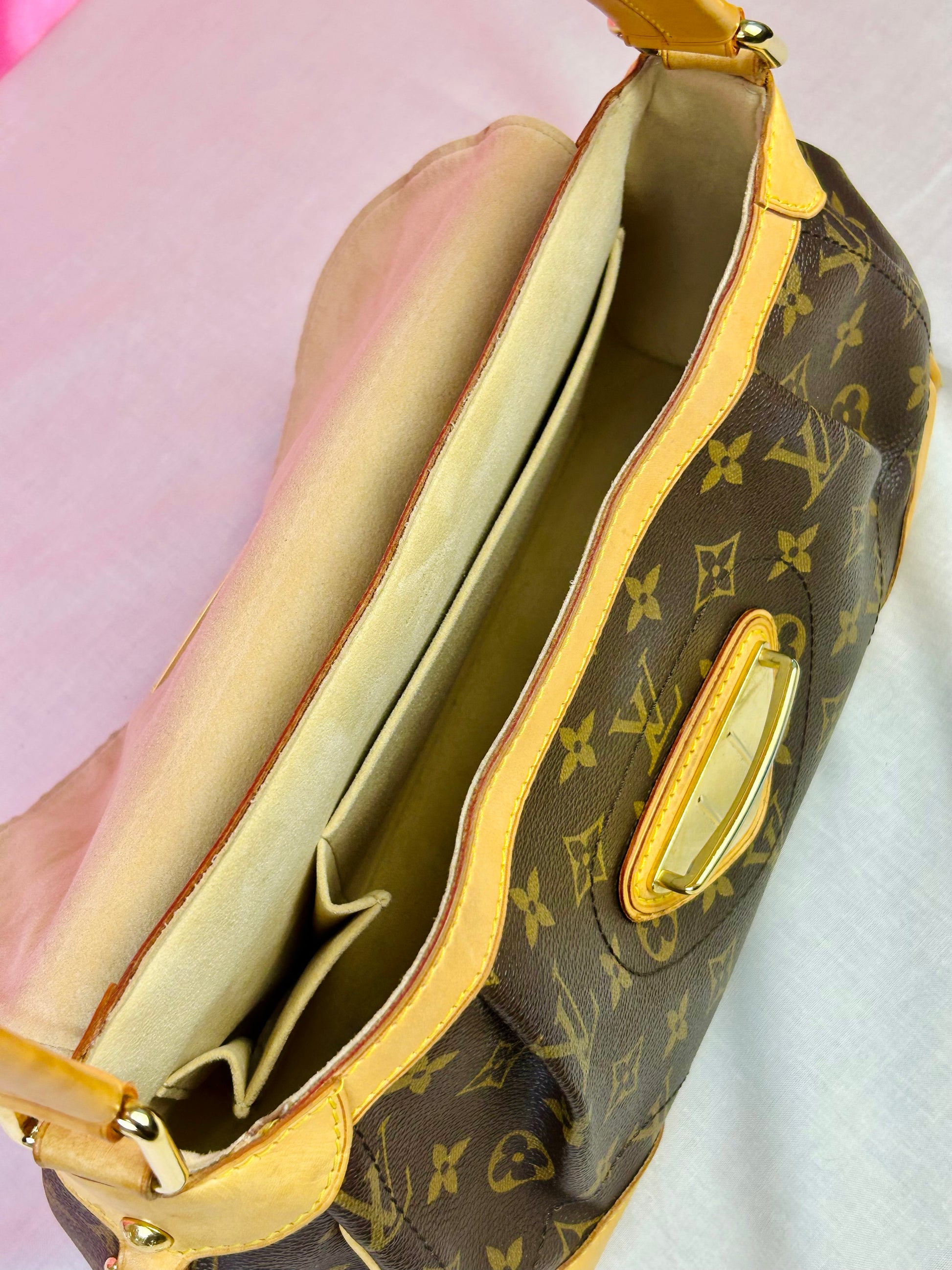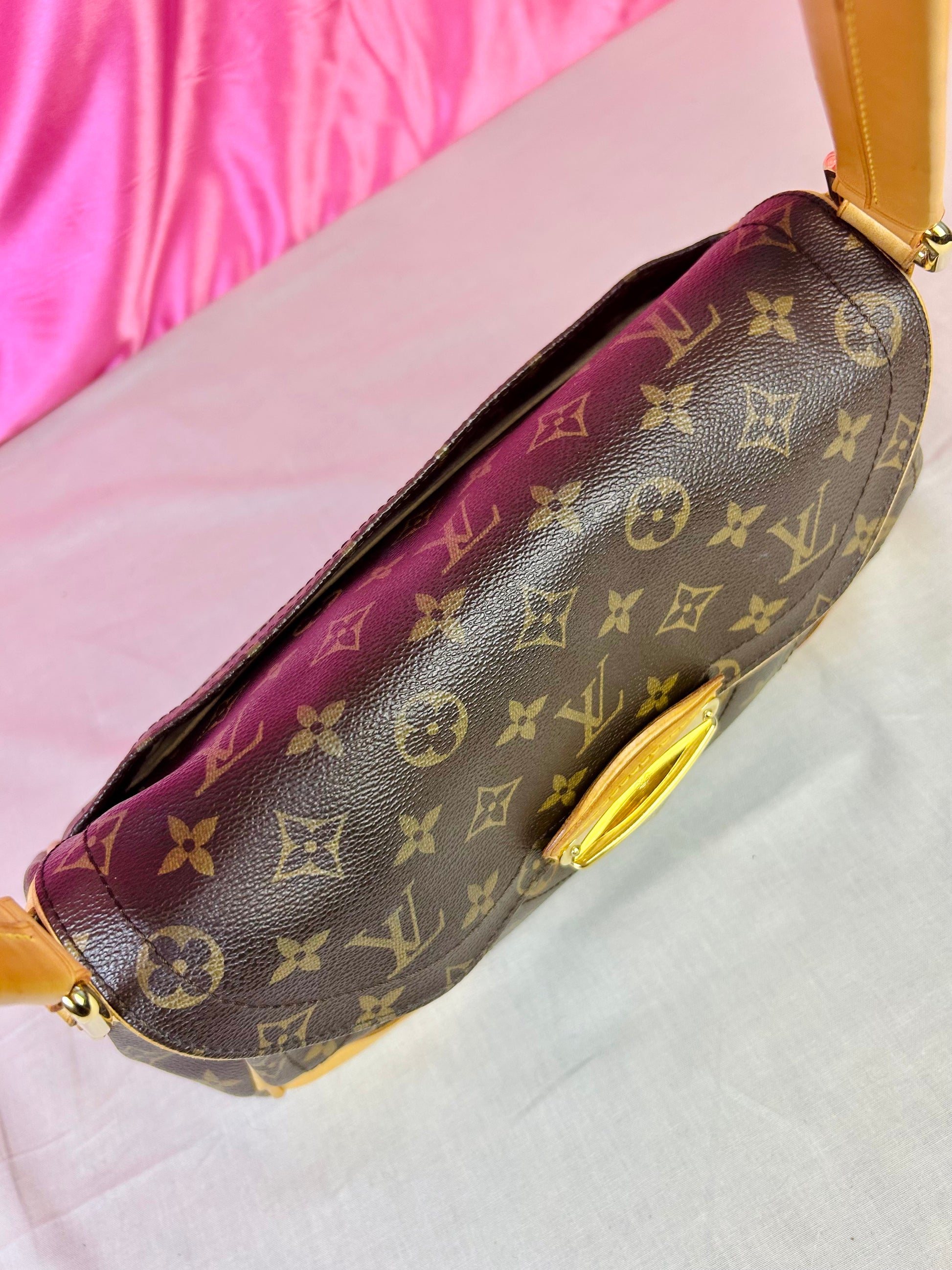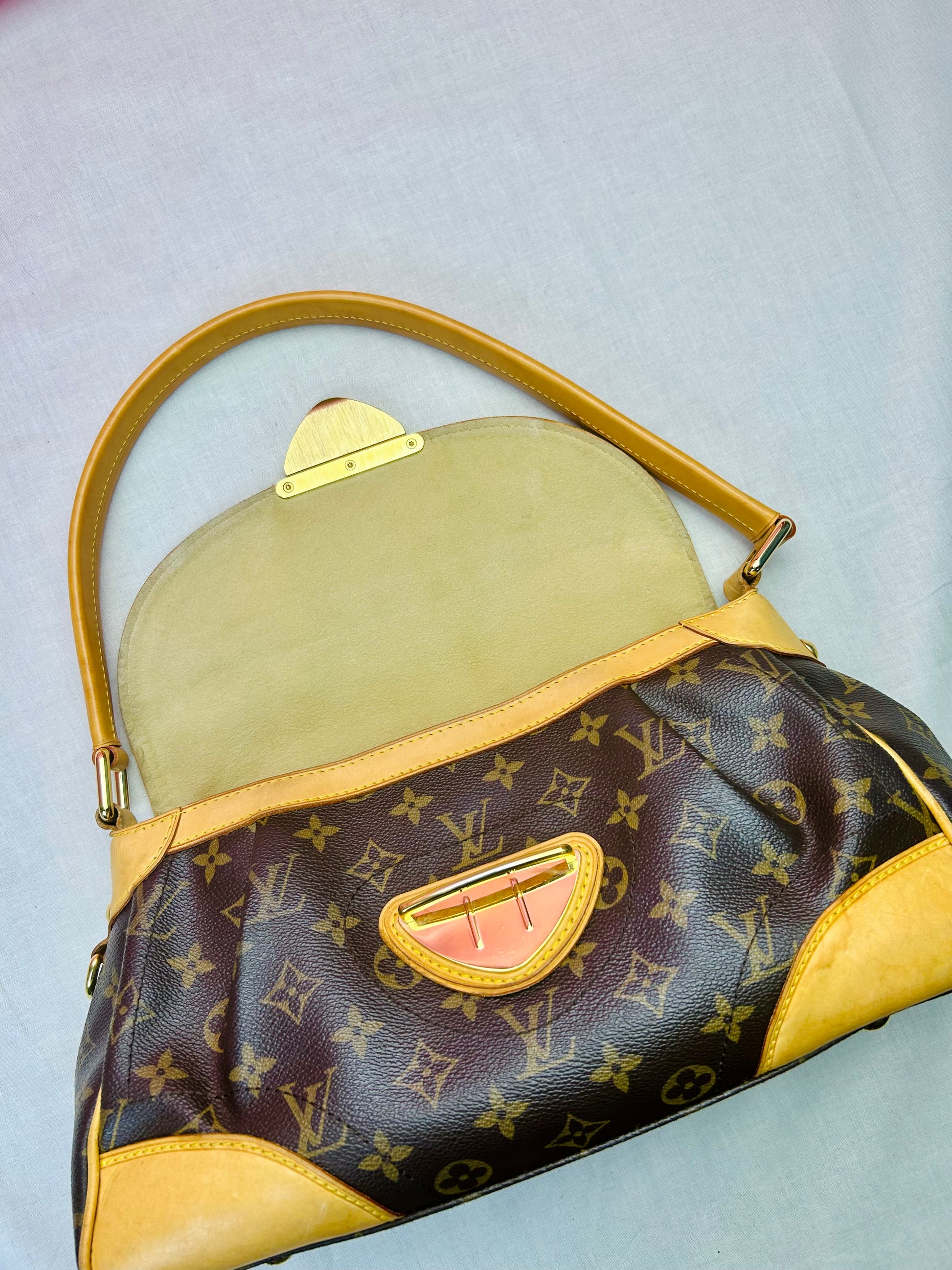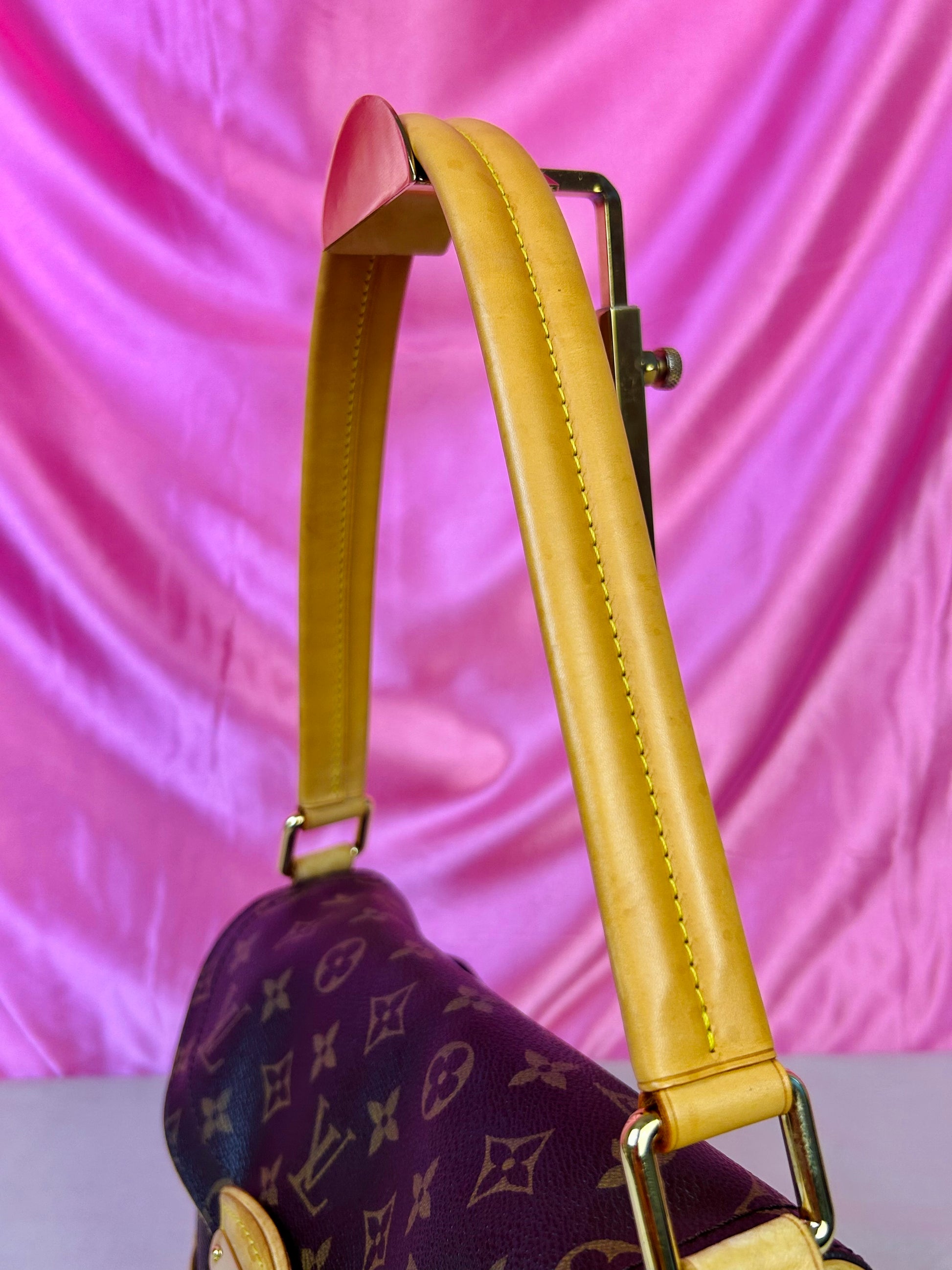 š Description: Canvas is in excellent condition, no cracks. Leather has watermarks throughout, but overall a light patina. Straps and chapes are strong, no cracks. One corner has exposed piping. Buckle clasps works properly, mostly gold, has silvered a little in the middle. Trim has no holes or cracks. Interior has some discoloration spots, inner and exterior pockets are clean.Ā