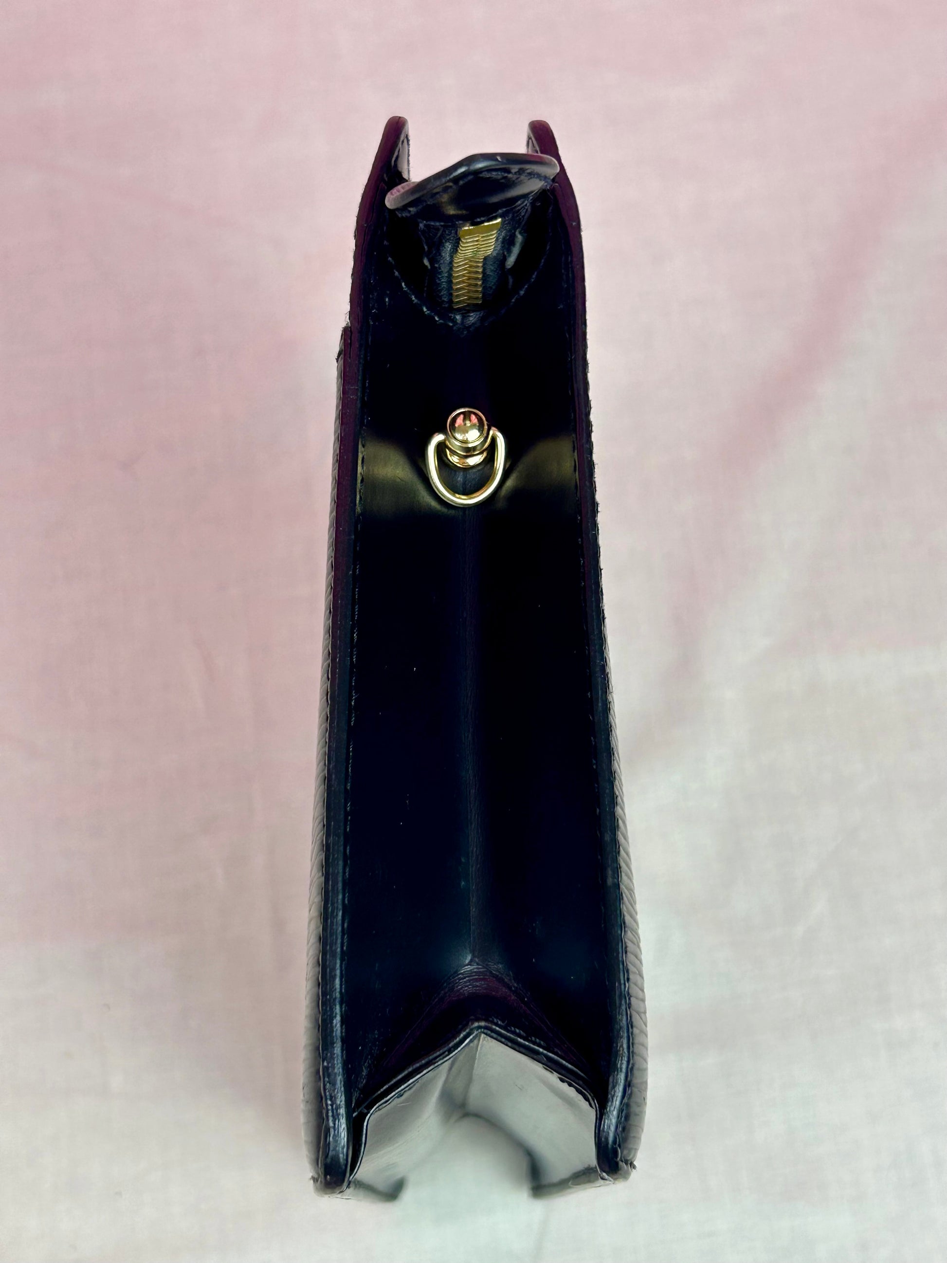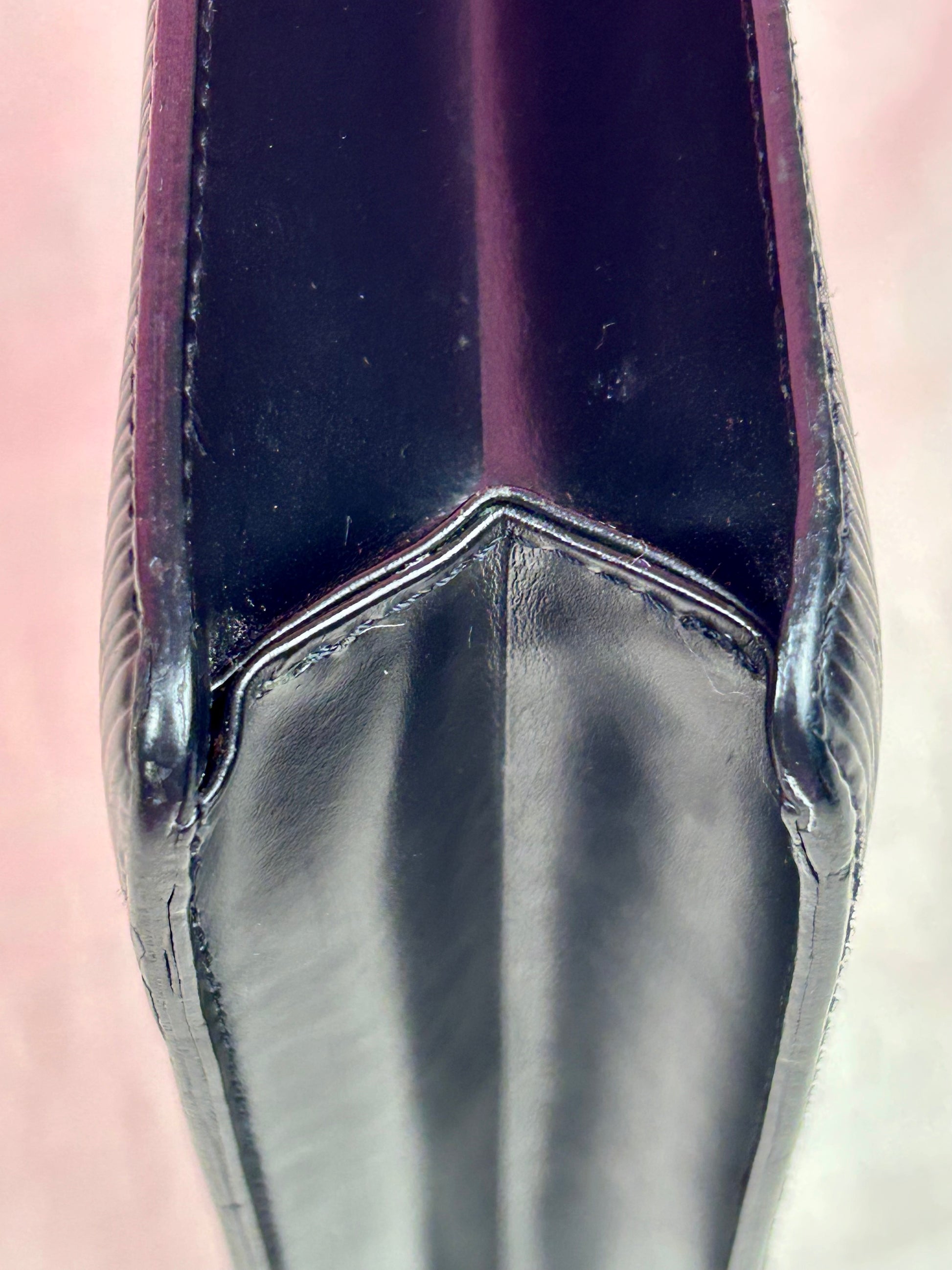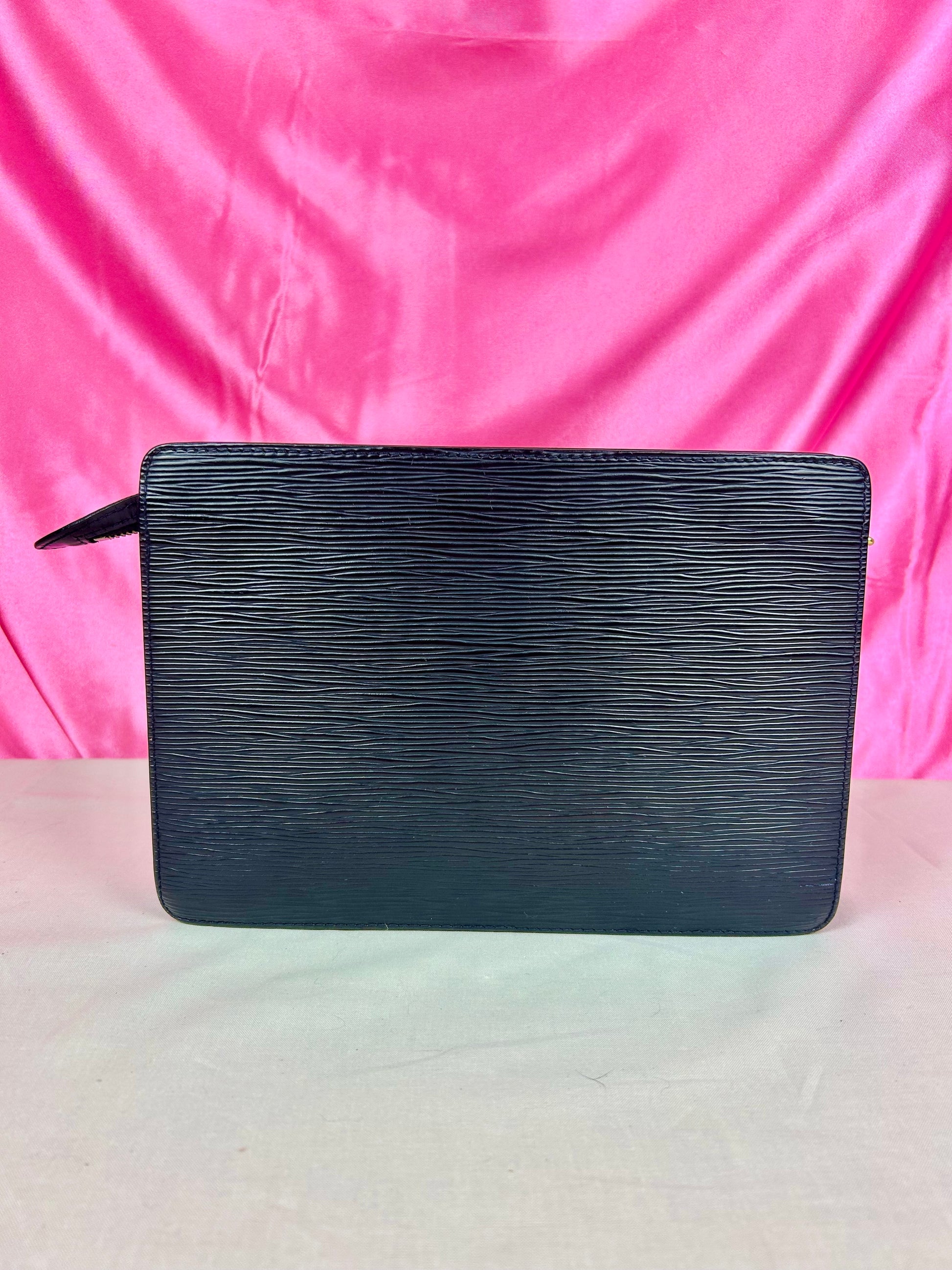 💜 Description: Epi leather is in beautiful condition with light wear on the bottom corners. Originally a clutch, this piece has been converted into a crossbody with D-ring and using a generic gold chain strap. The front pocket is very clean. Interior is clean with minimal signs of use, including the interior pocket. Zipper glides smoothly.