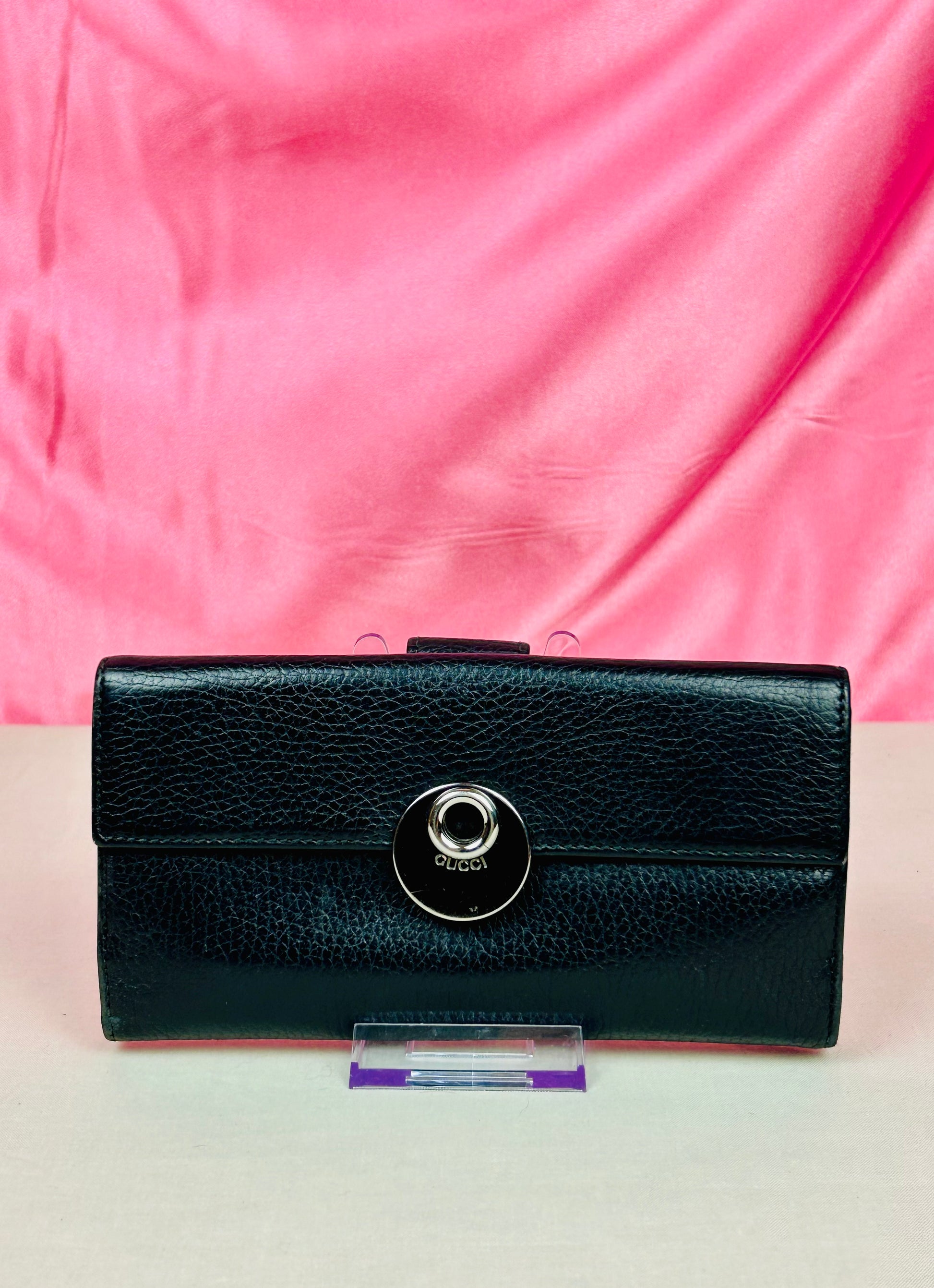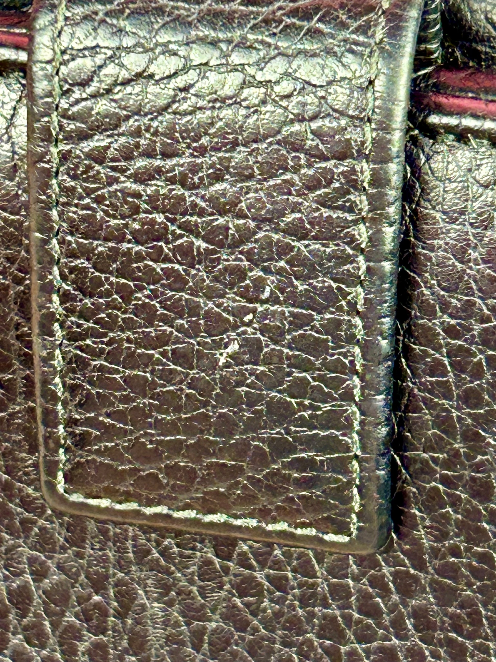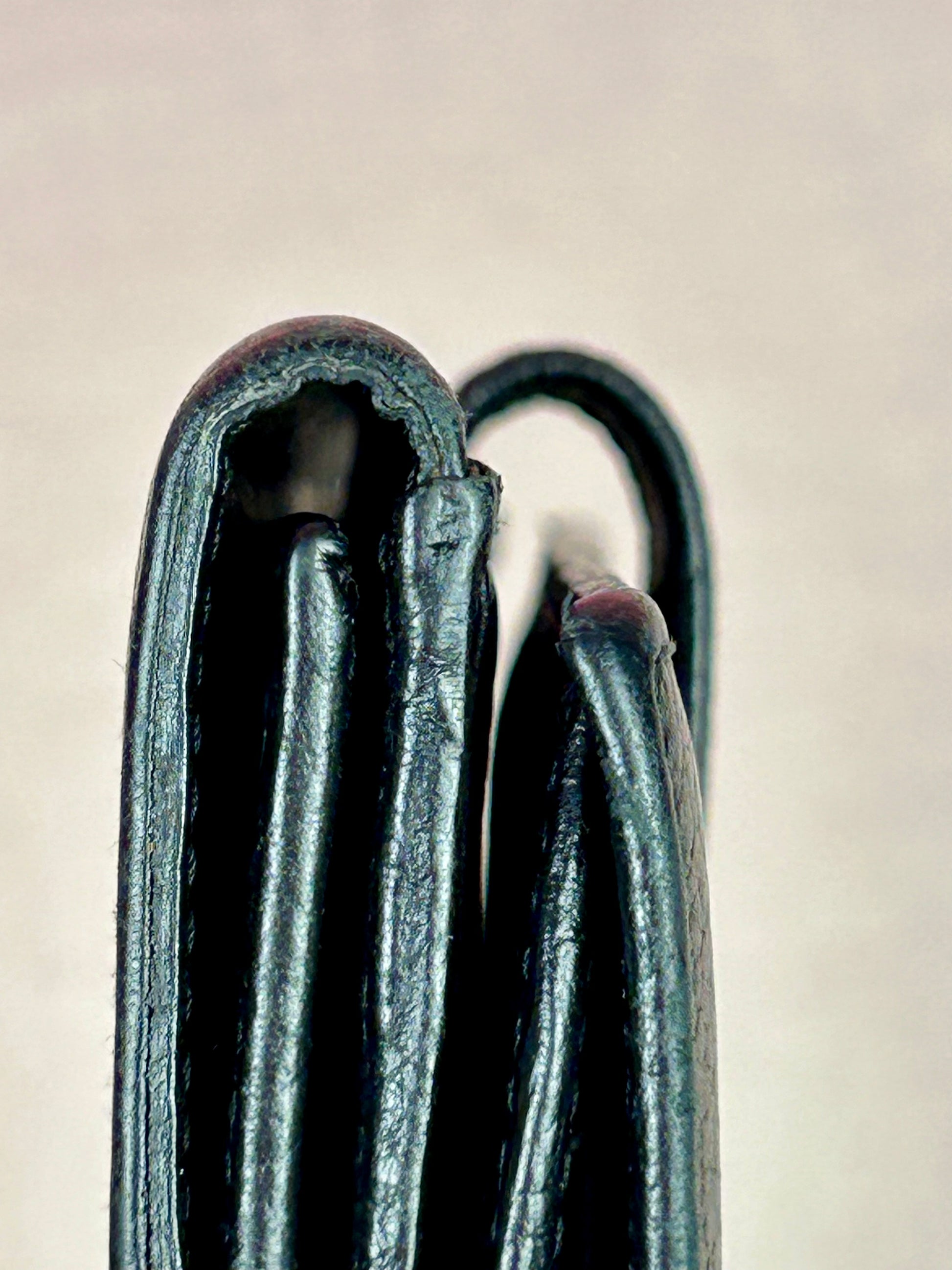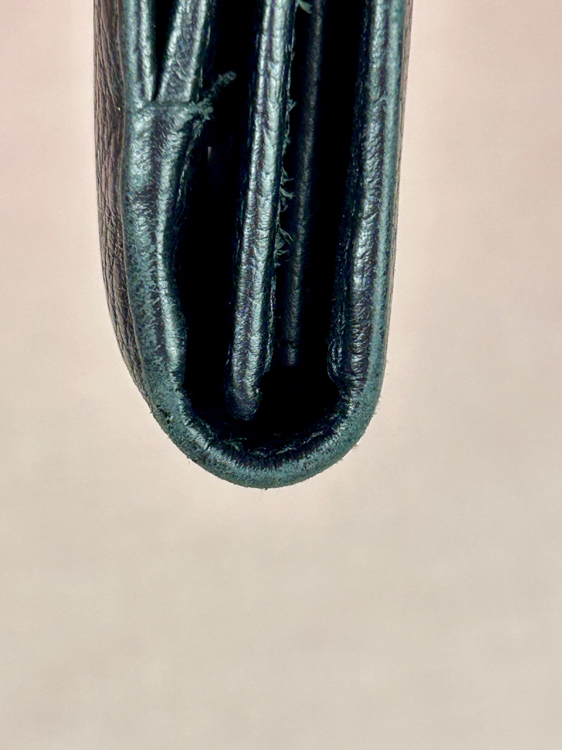 💜 Description: black pebbles leather in beautiful condition with no cracks or tears. The bottom corners have rubs. There is a small indentation on the front where the clasp rests naturally against the leather. Front clasp has a crack, but doesn’t not affect the function. Features include a spacious front compartment, 7 card slots, 2 large slip slots, and 2 roomy divided compartments. Hardware is shiny and the clasp functions smoothly.