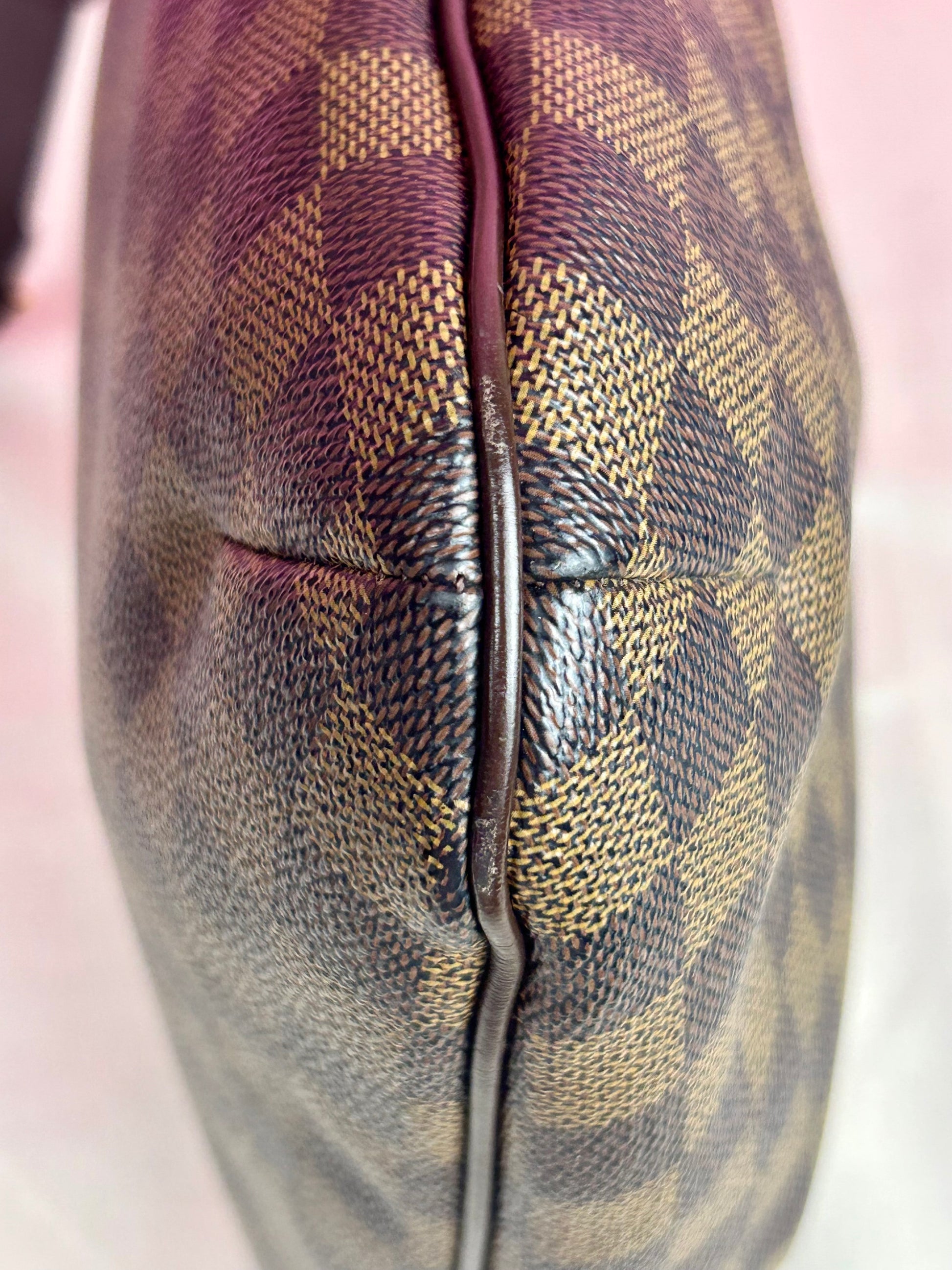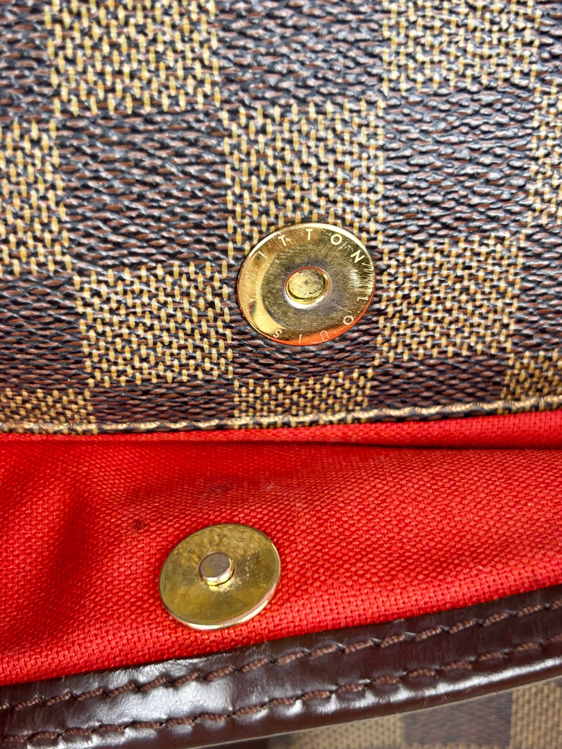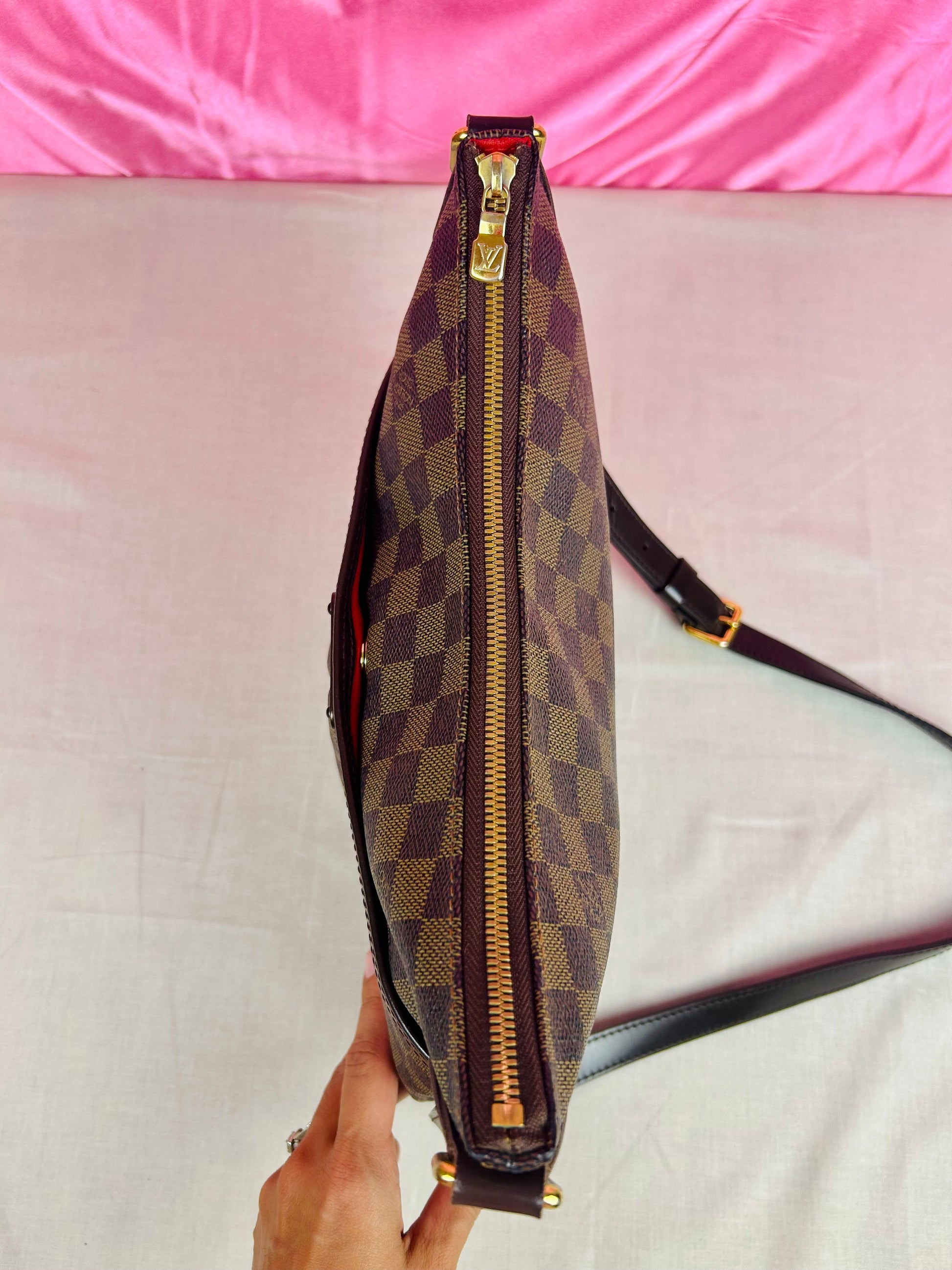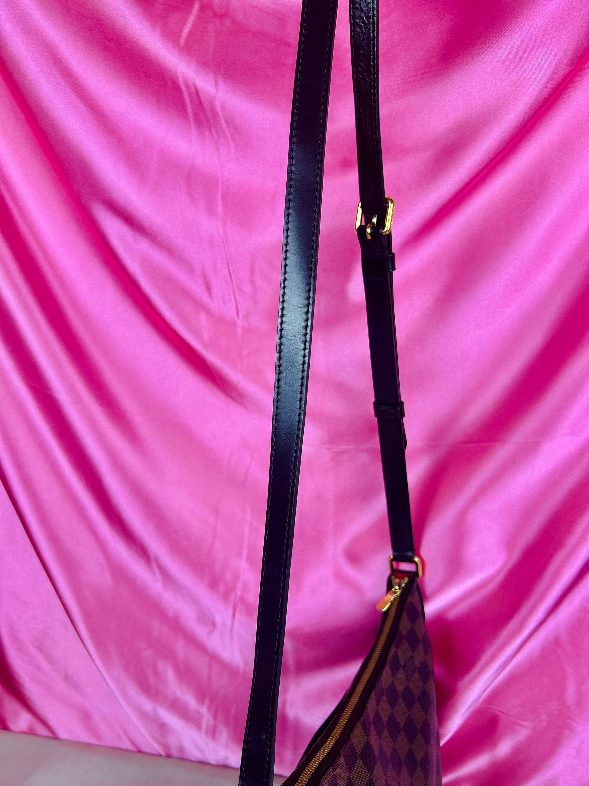 💜 Description: Canvas is in beautiful condition with no cracks or tears. Interior is clean with a small stain noted; interior pocket and front main pocket are both clean. Magnetic clasp works well and zipper pulls smoothly. Hardware is shiny. Piping shows normal rubbing on the bottom corner but no exposed areas. Leather strap is in excellent condition with light wear on the right side—no tears or cracks. Chapes are strong and intact.