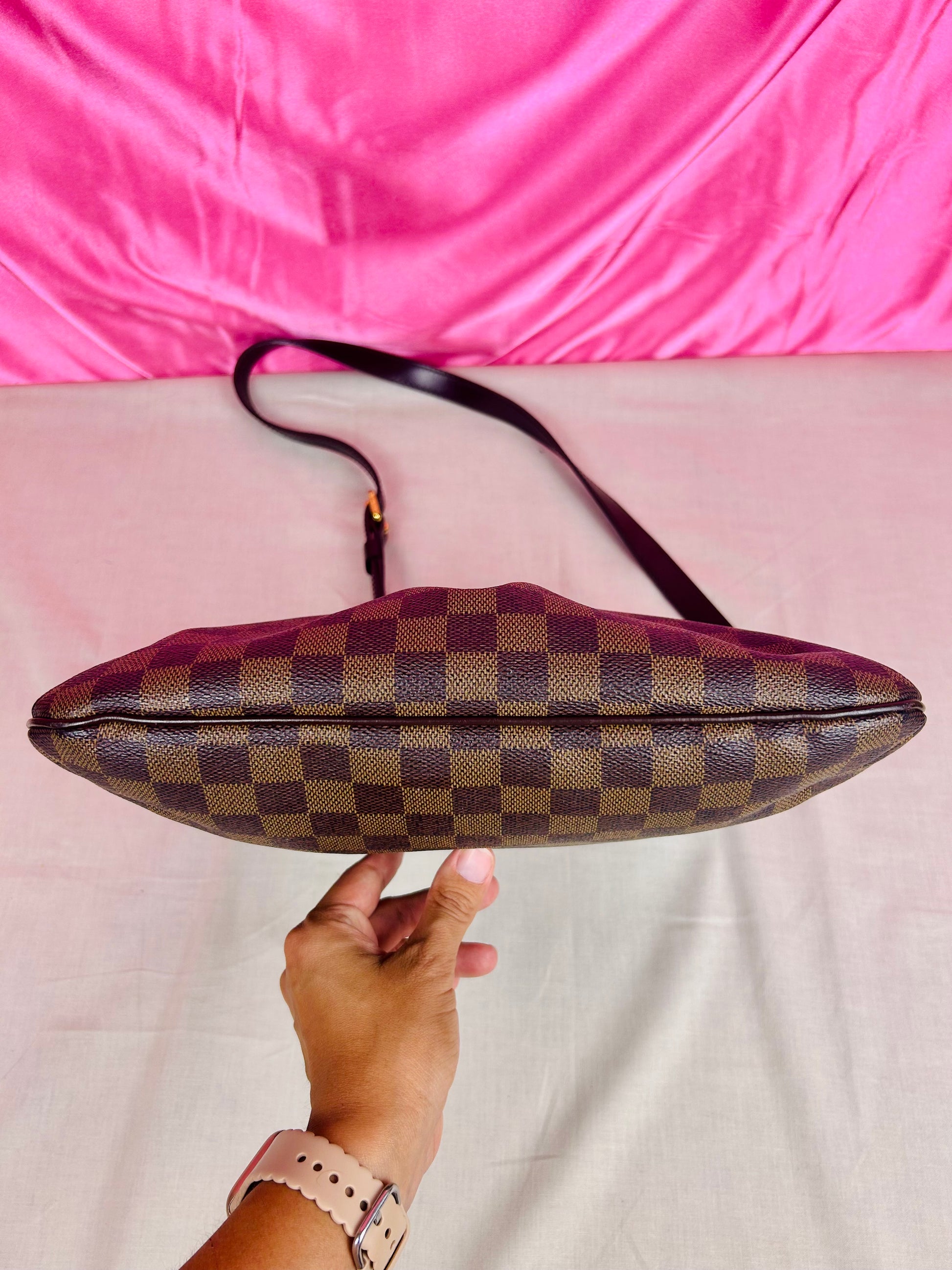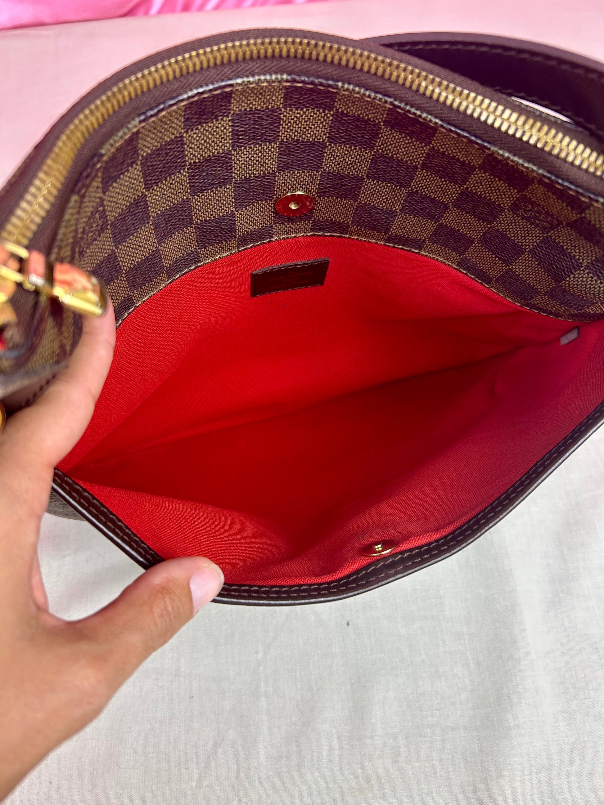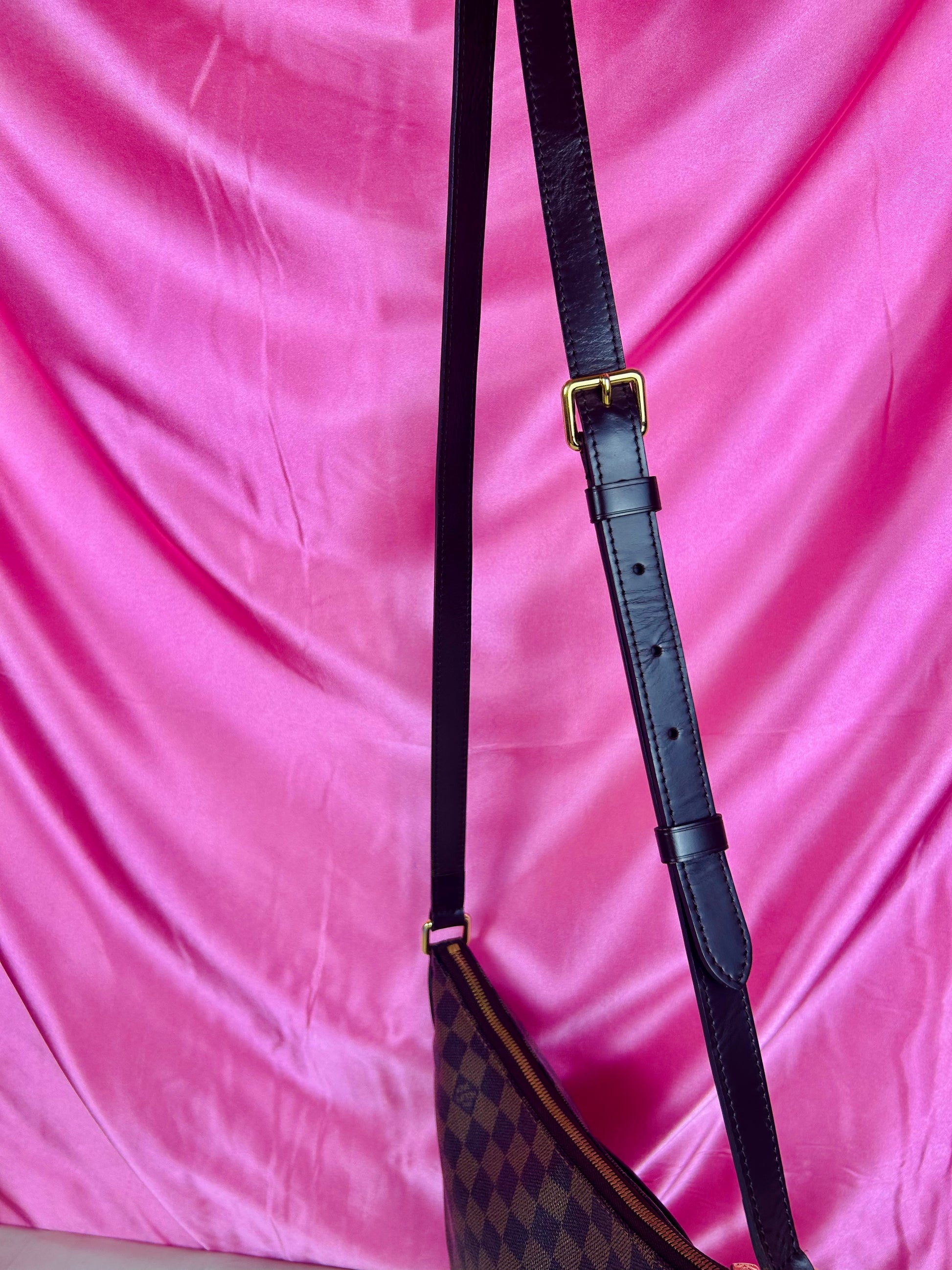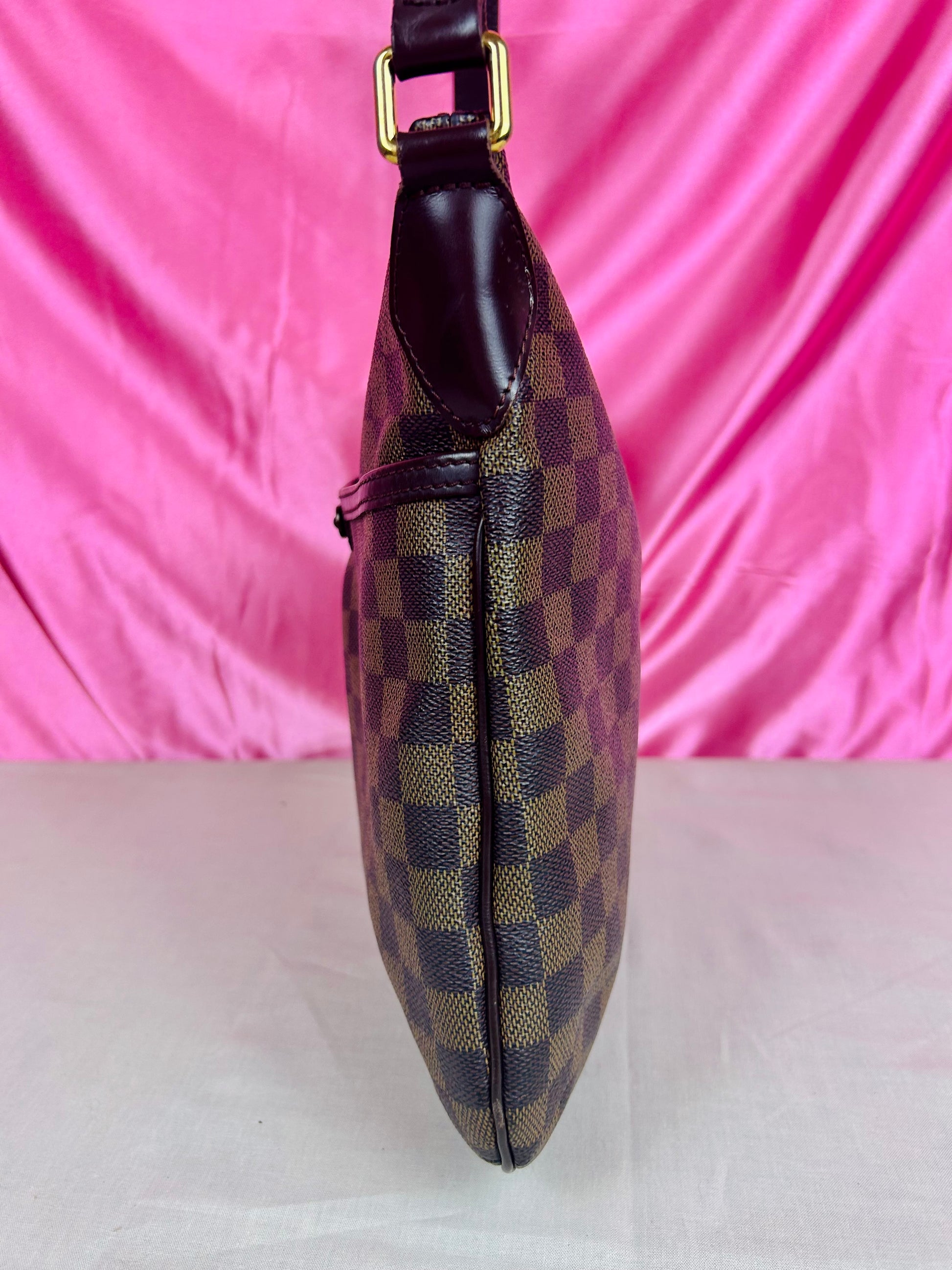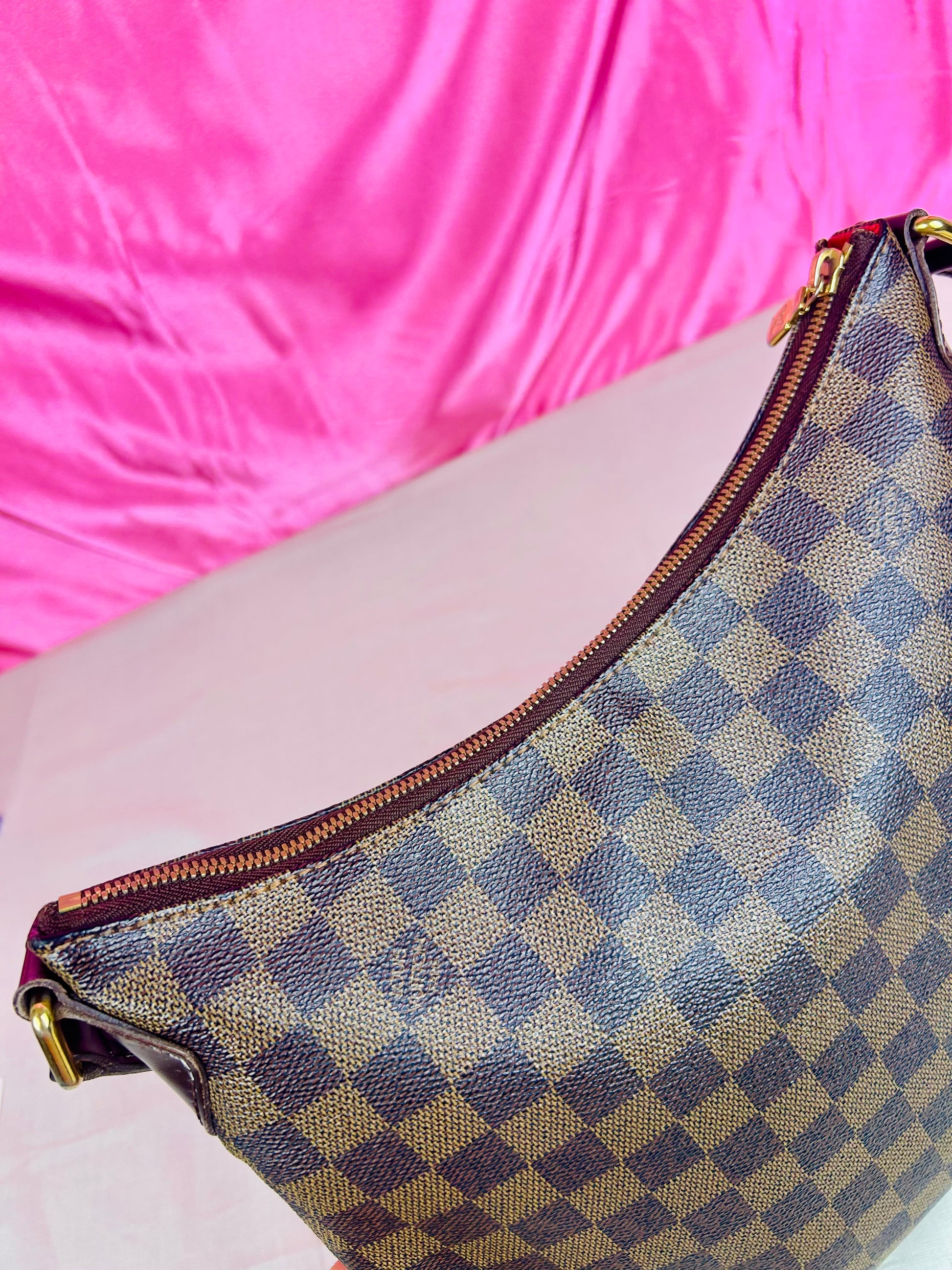 💜 Description: Canvas is in beautiful condition with no cracks or tears. Interior is clean with a small stain noted; interior pocket and front main pocket are both clean. Magnetic clasp works well and zipper pulls smoothly. Hardware is shiny. Piping shows normal rubbing on the bottom corner but no exposed areas. Leather strap is in excellent condition with light wear on the right side—no tears or cracks. Chapes are strong and intact.
