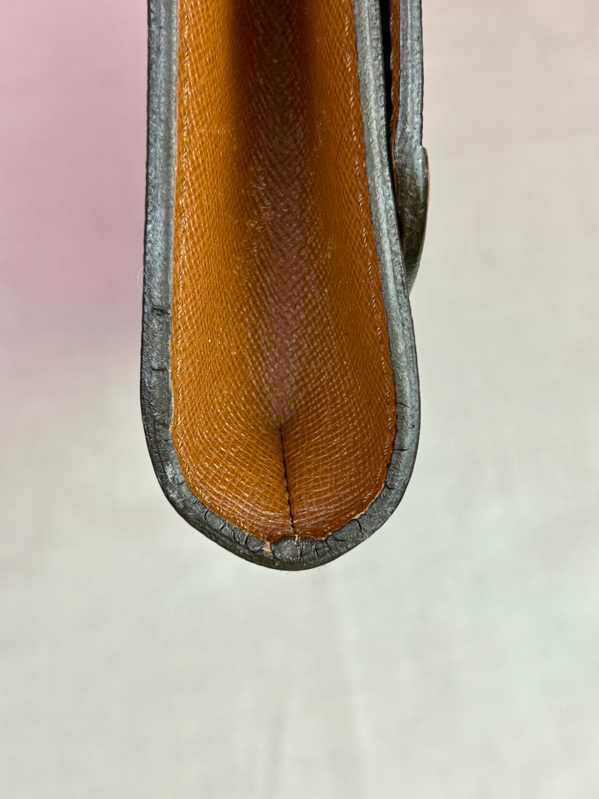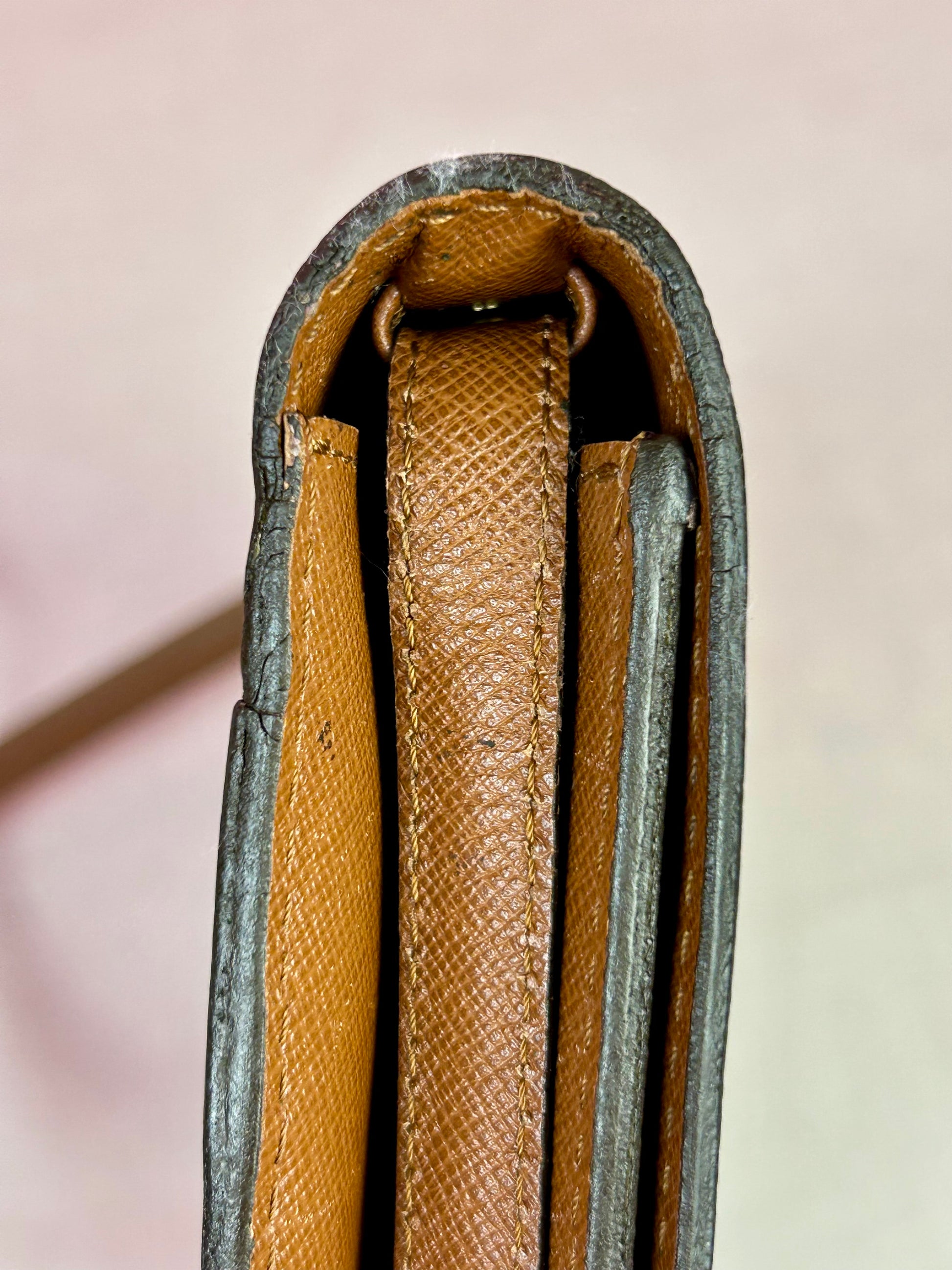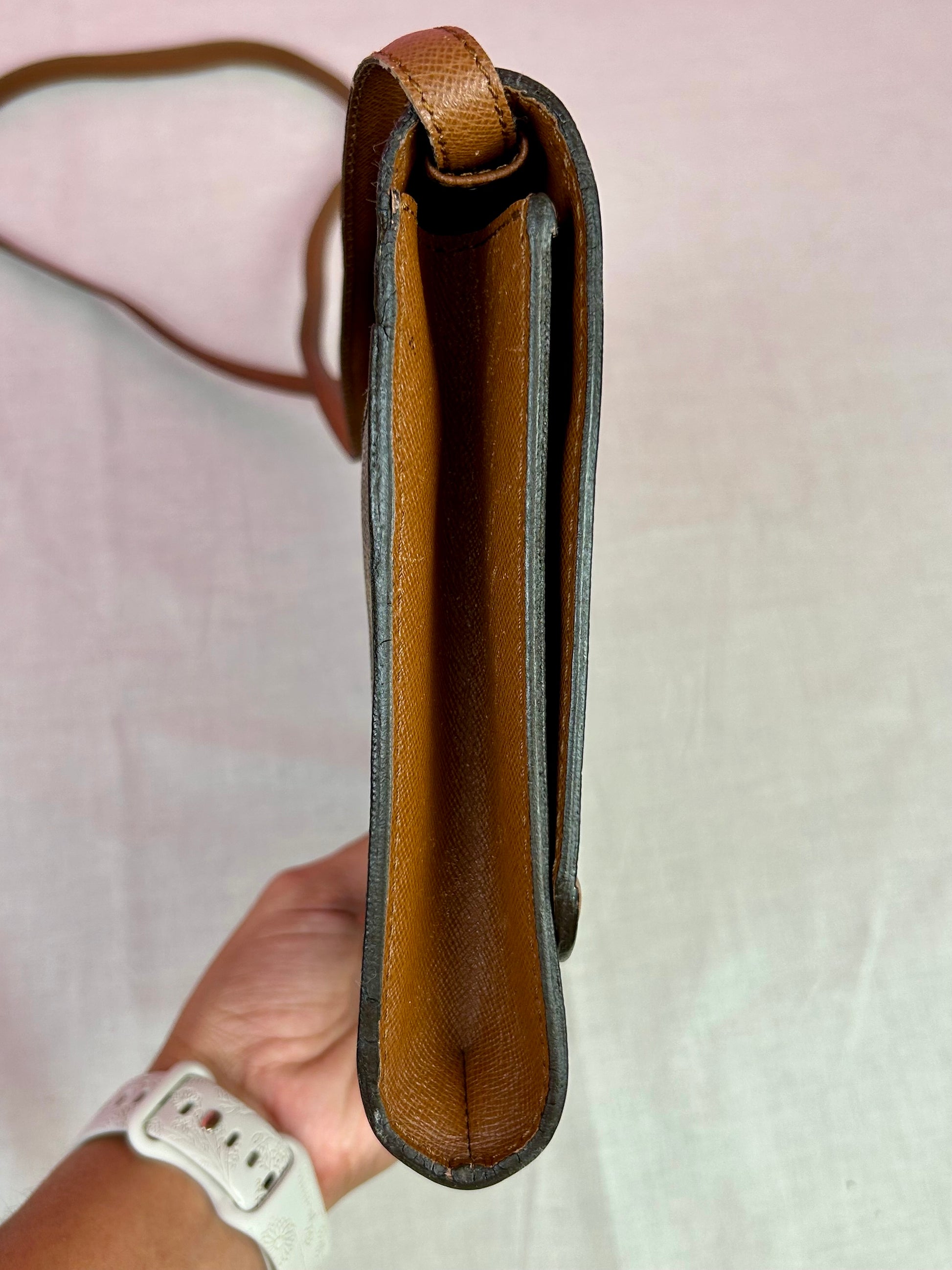 š Description: Canvas is in beautiful condition with no cracks or tears. Leather trim and strap are both in great condition, free of cracks or tears. Interior is clean with some small markings on the inside and flap, but overall well kept. Zipper pocket functions smoothly. Backside pocket is clean.