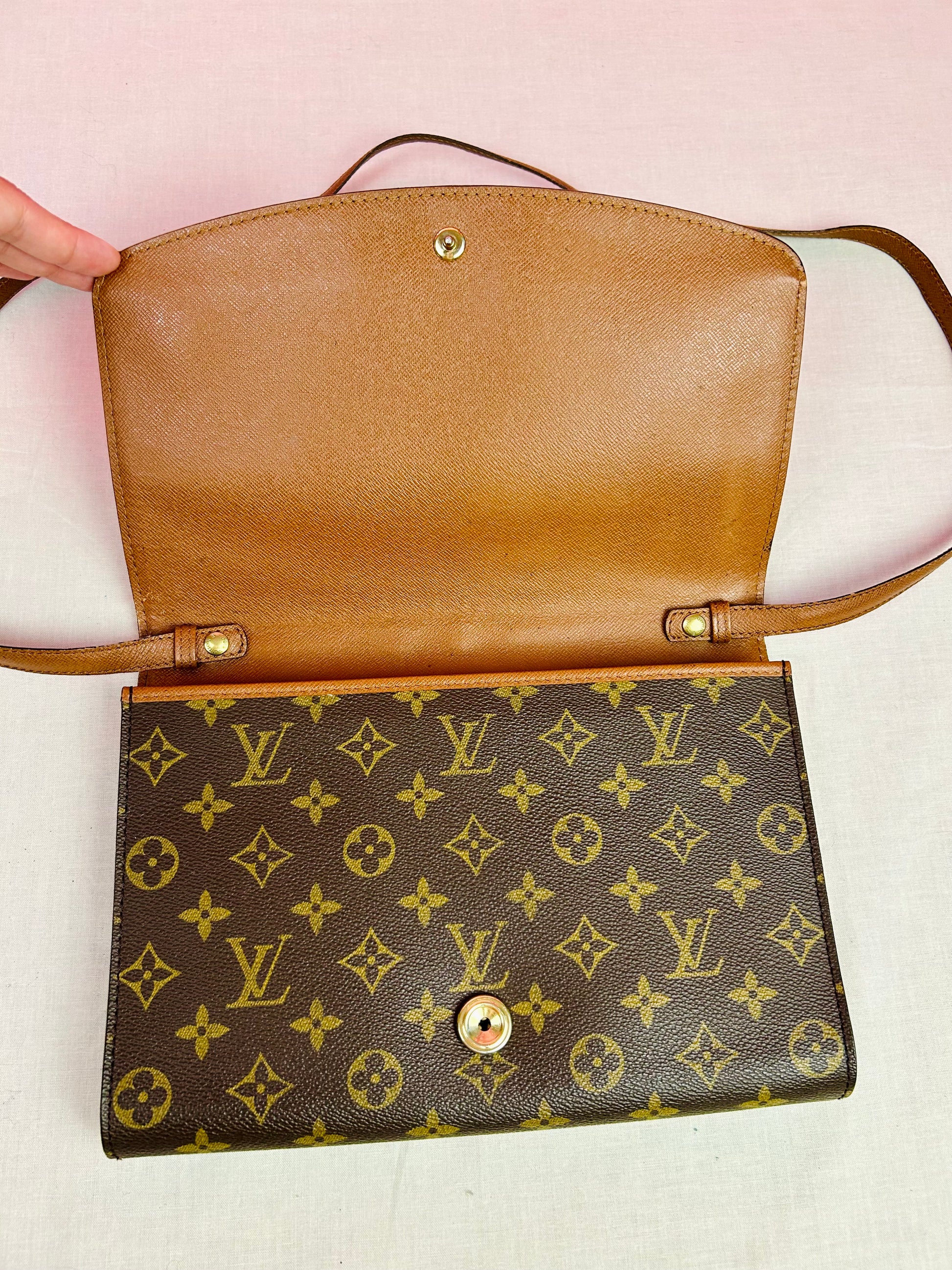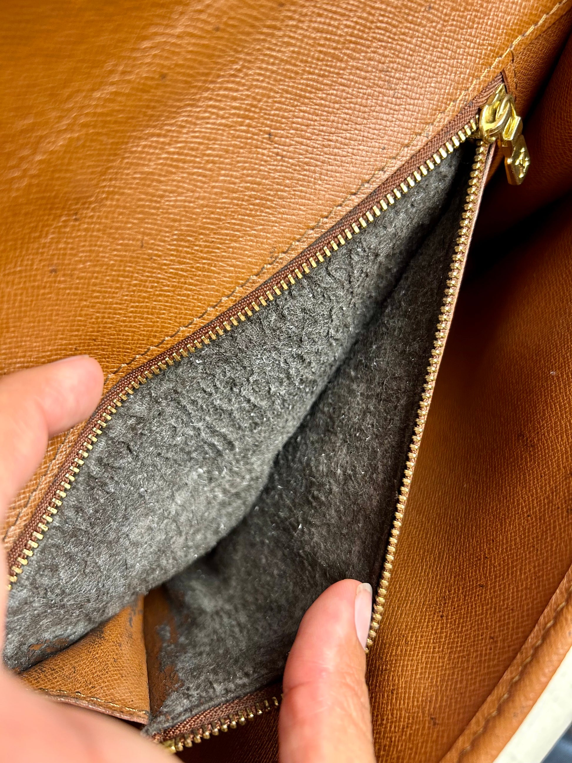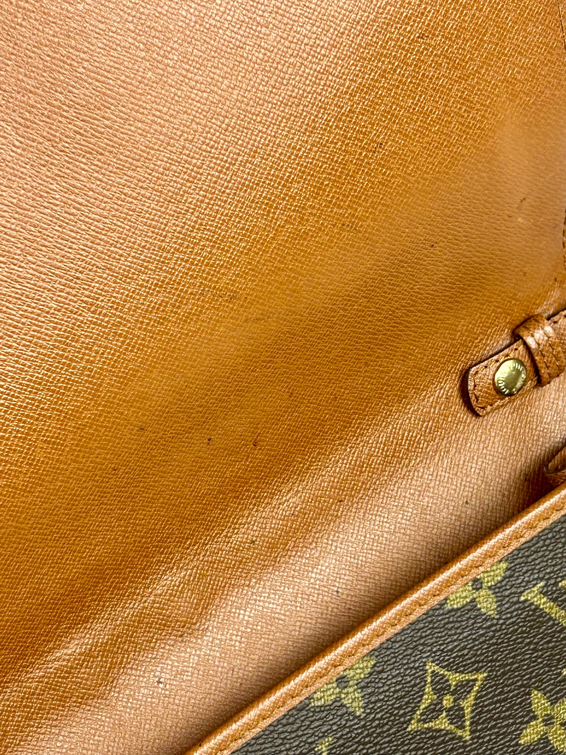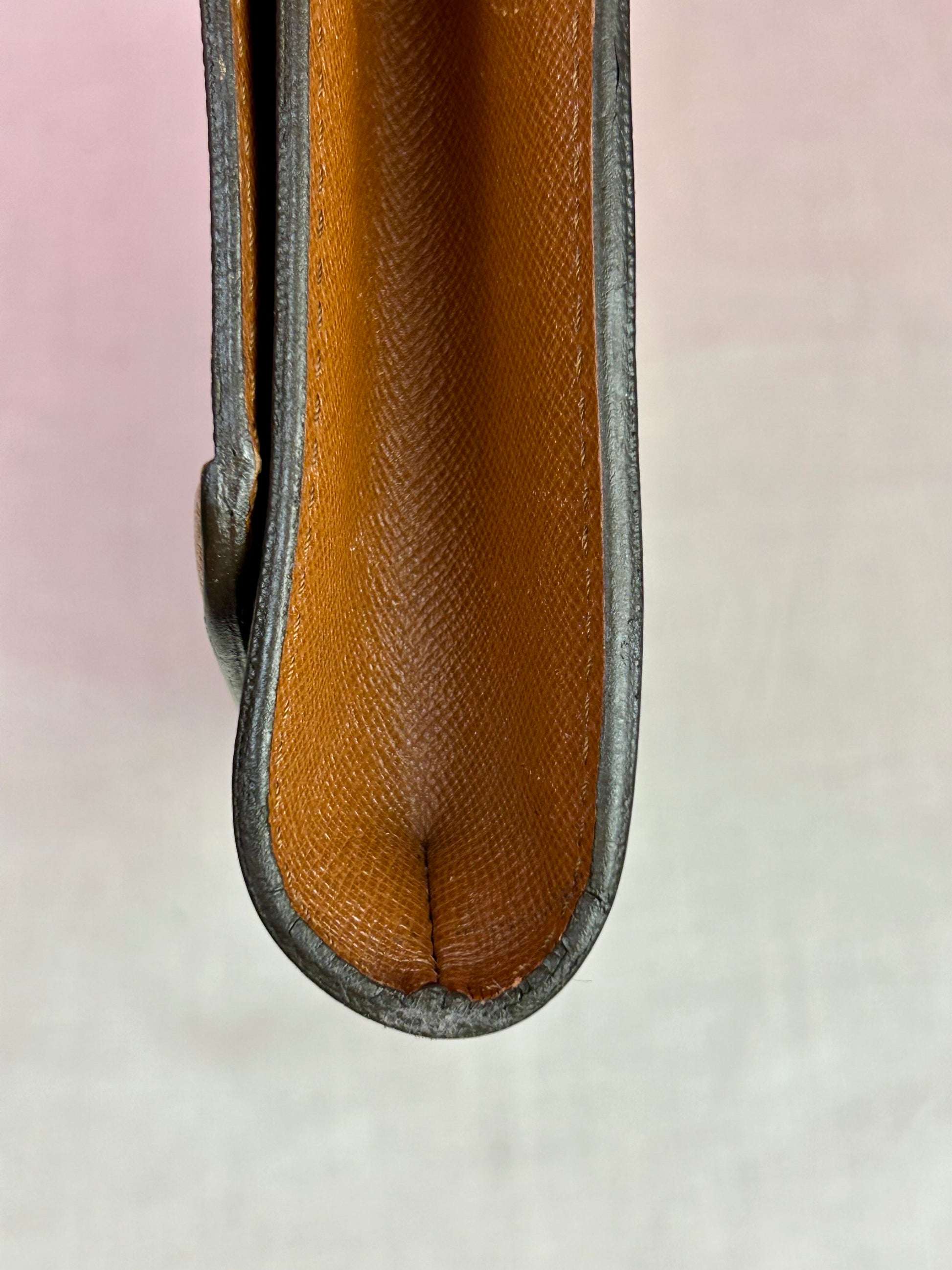 š Description: Canvas is in beautiful condition with no cracks or tears. Leather trim and strap are both in great condition, free of cracks or tears. Interior is clean with some small markings on the inside and flap, but overall well kept. Zipper pocket functions smoothly. Backside pocket is clean.