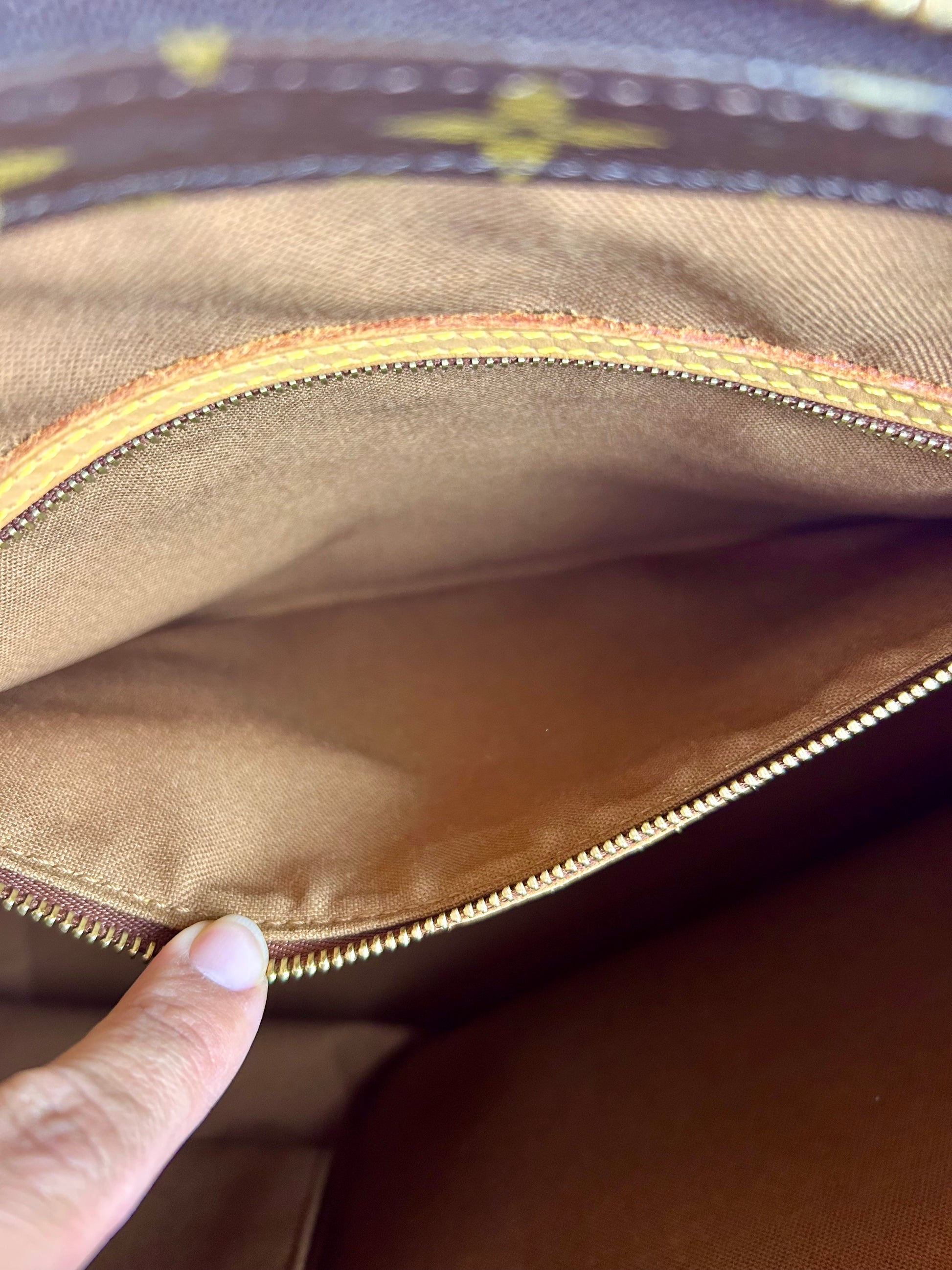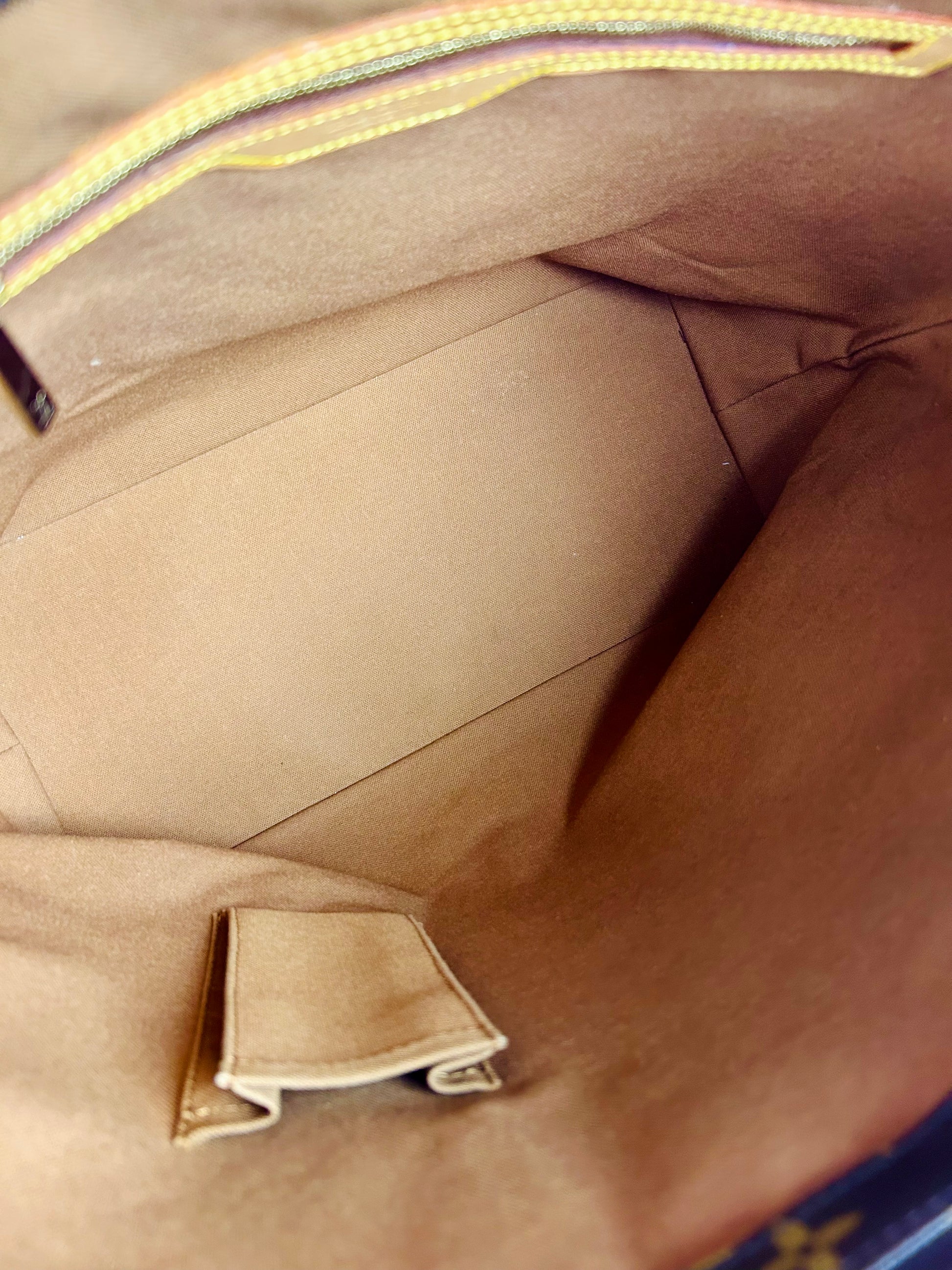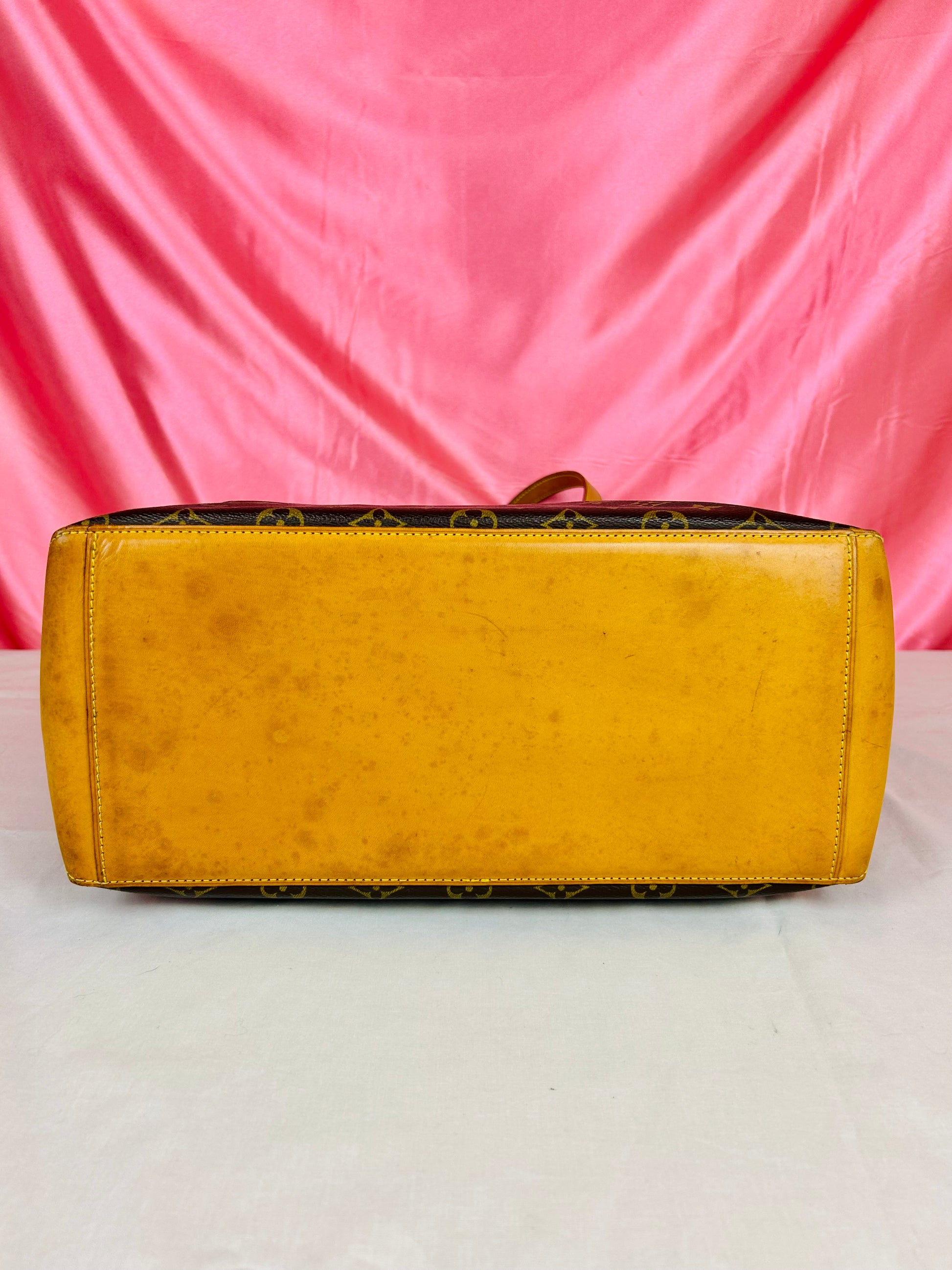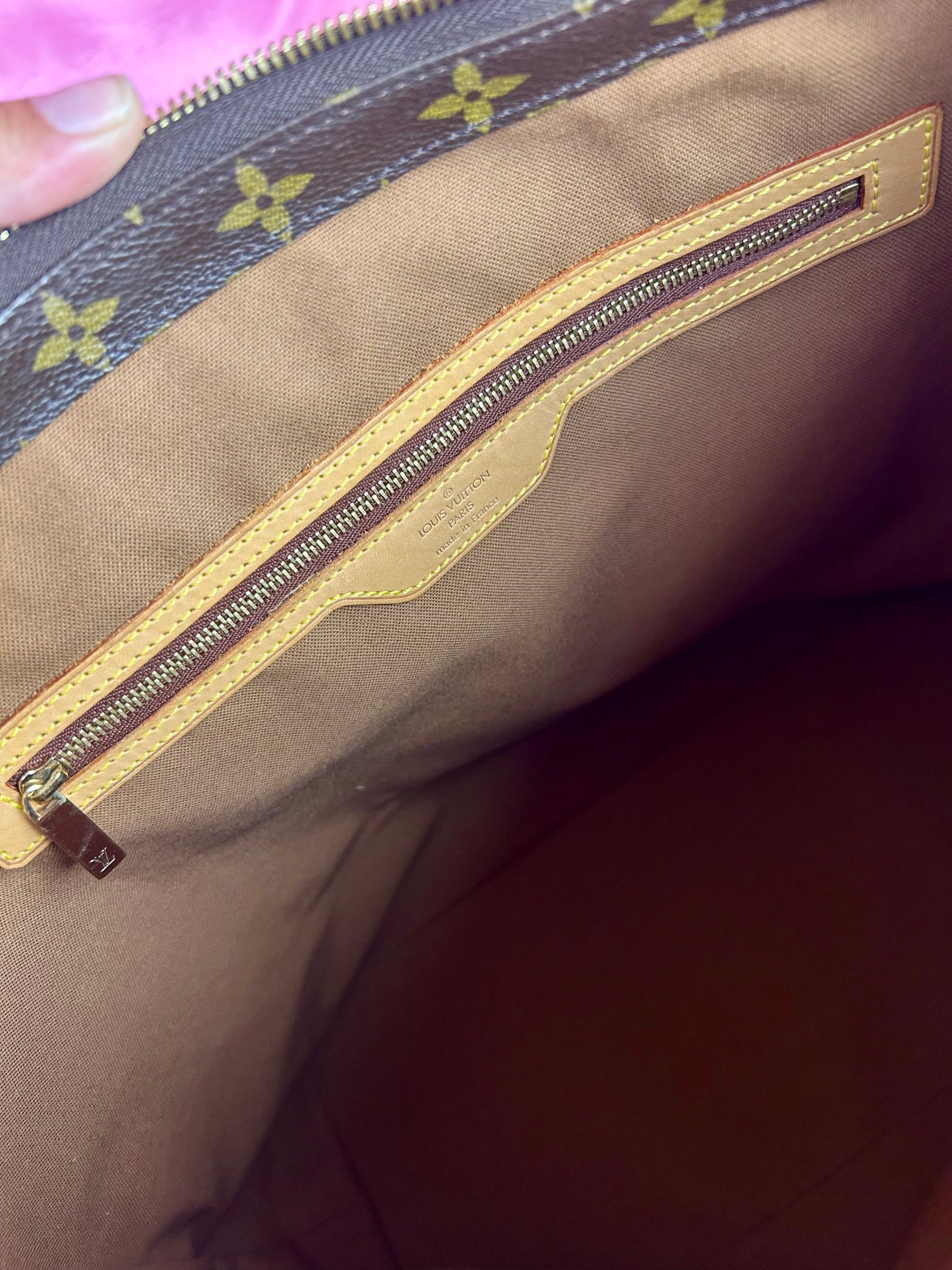 š Description: A roomy and functional classic tote! Canvas is bright and vibrant. Bottom leather shows markings and wear consistent with normal usage. Hardware is shiny, and zipper pulls and functions well. Some micro cracks at the end of the zipper, very common for this model. Interior is very clean. Pocket is clean and zipper pulls well. Handles are in great condition, some small markings, but no cracks or tears. Chapes are strong and in excellent condition. A beautiful everyday bag with tons of usage left!