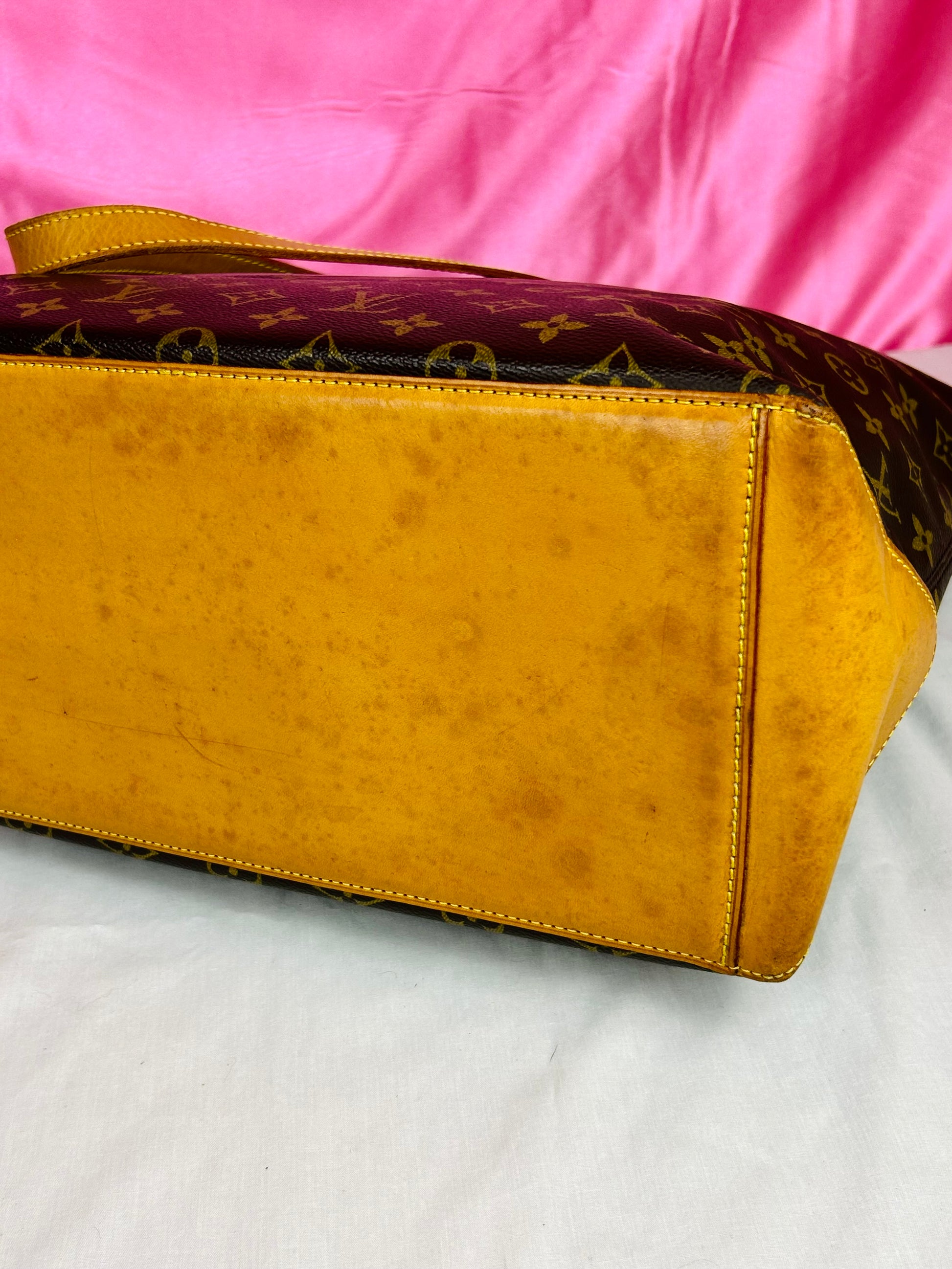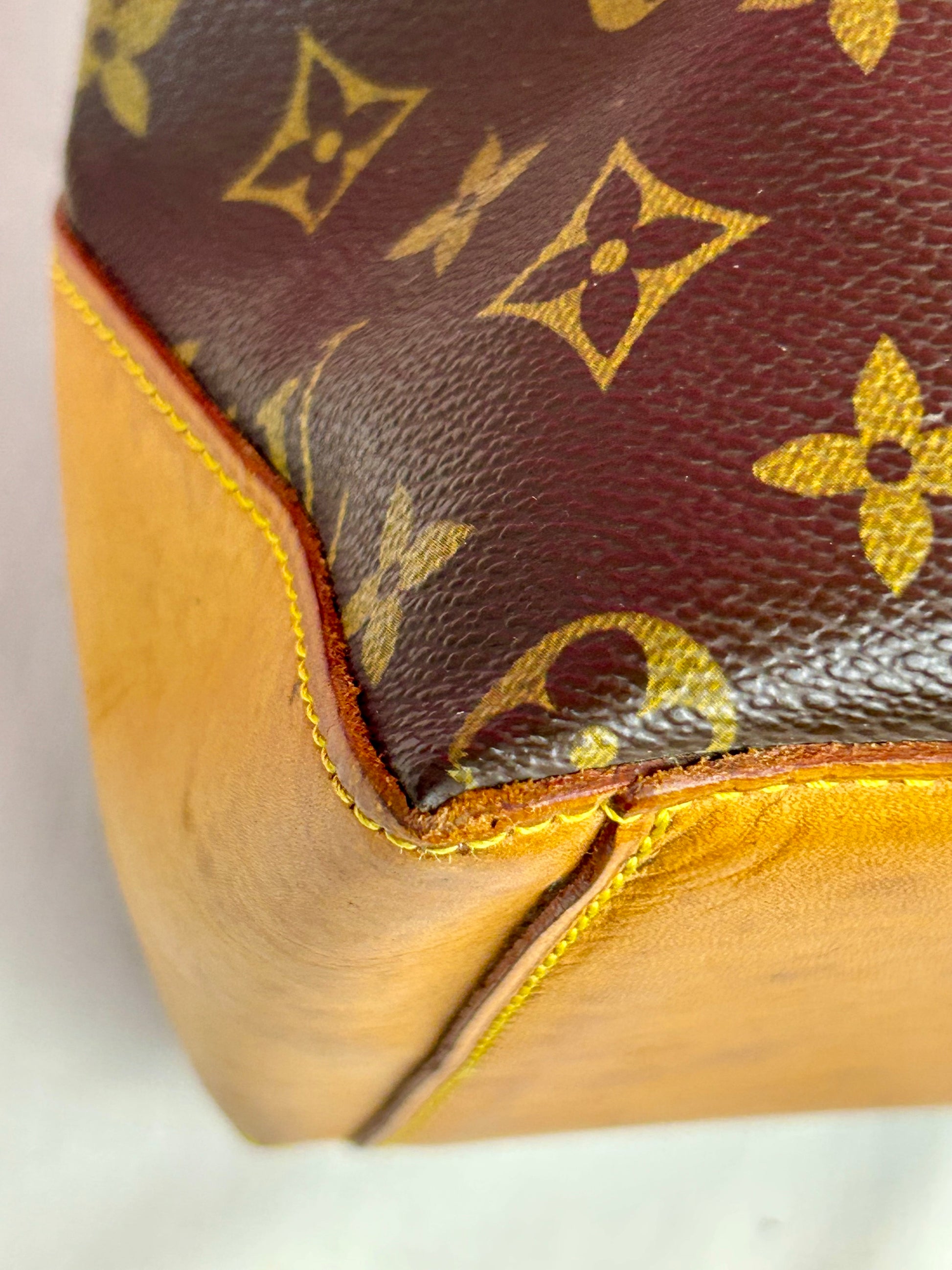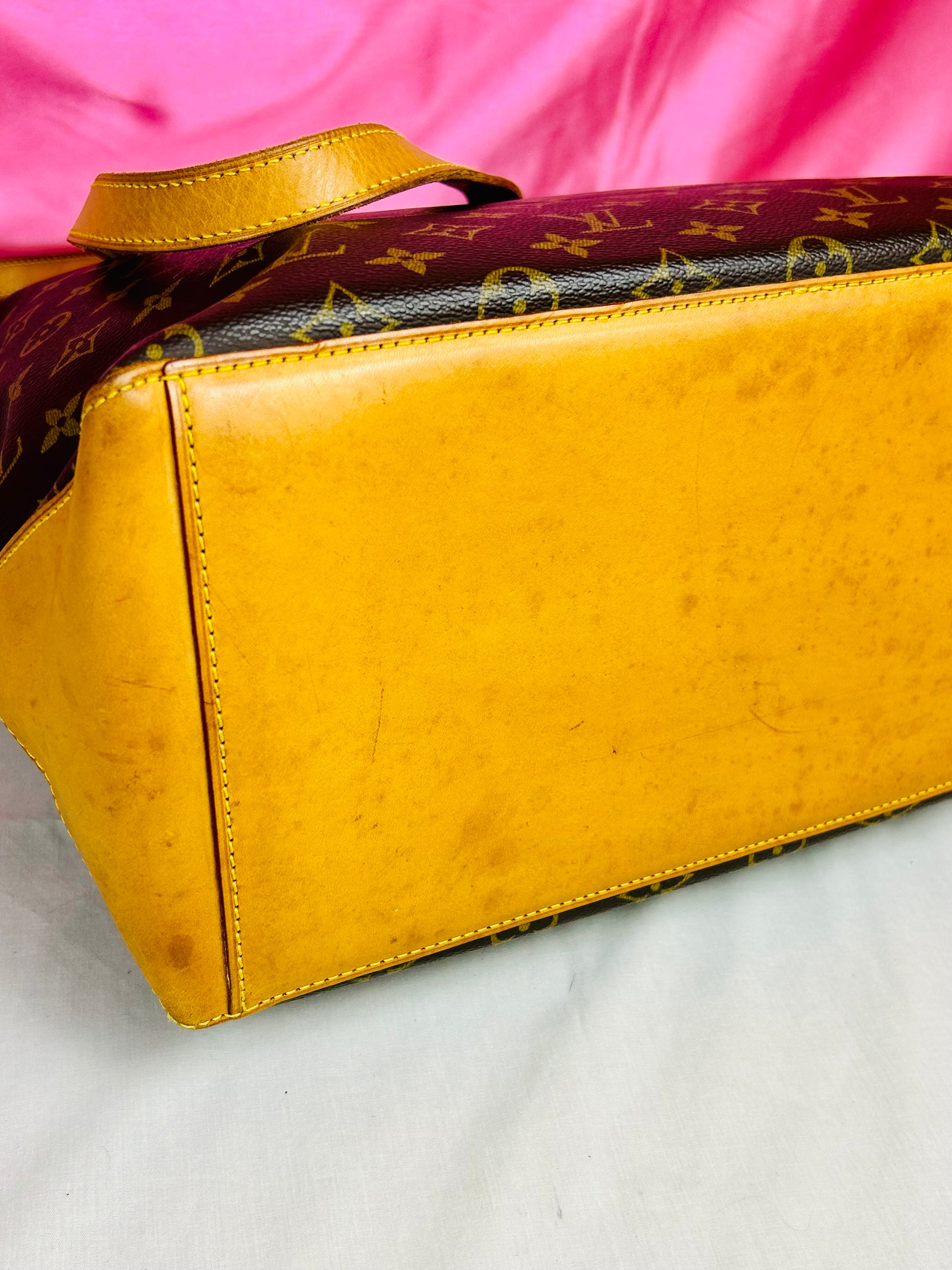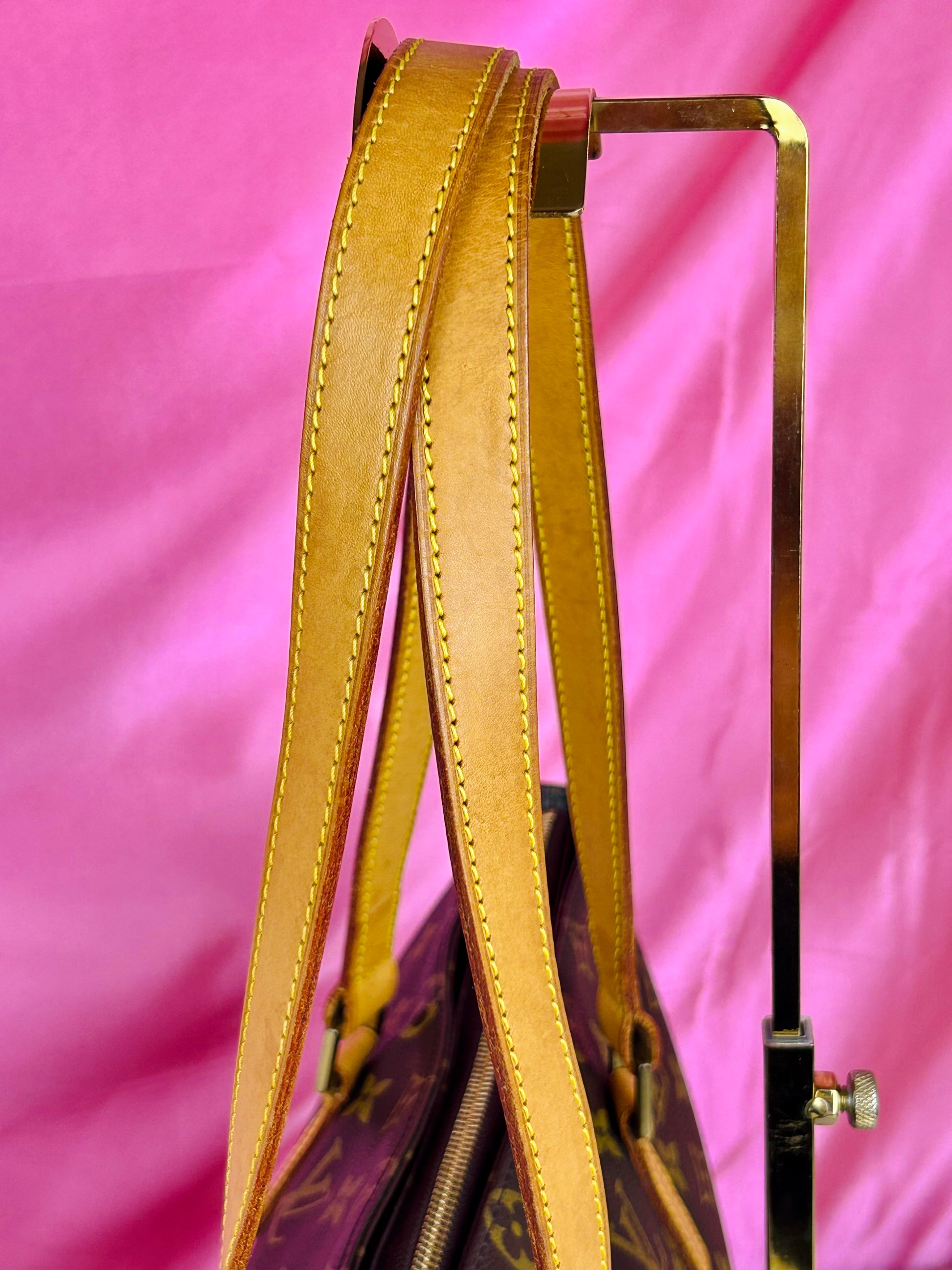 š Description: A roomy and functional classic tote! Canvas is bright and vibrant. Bottom leather shows markings and wear consistent with normal usage. Hardware is shiny, and zipper pulls and functions well. Some micro cracks at the end of the zipper, very common for this model. Interior is very clean. Pocket is clean and zipper pulls well. Handles are in great condition, some small markings, but no cracks or tears. Chapes are strong and in excellent condition. A beautiful everyday bag with tons of usage left!