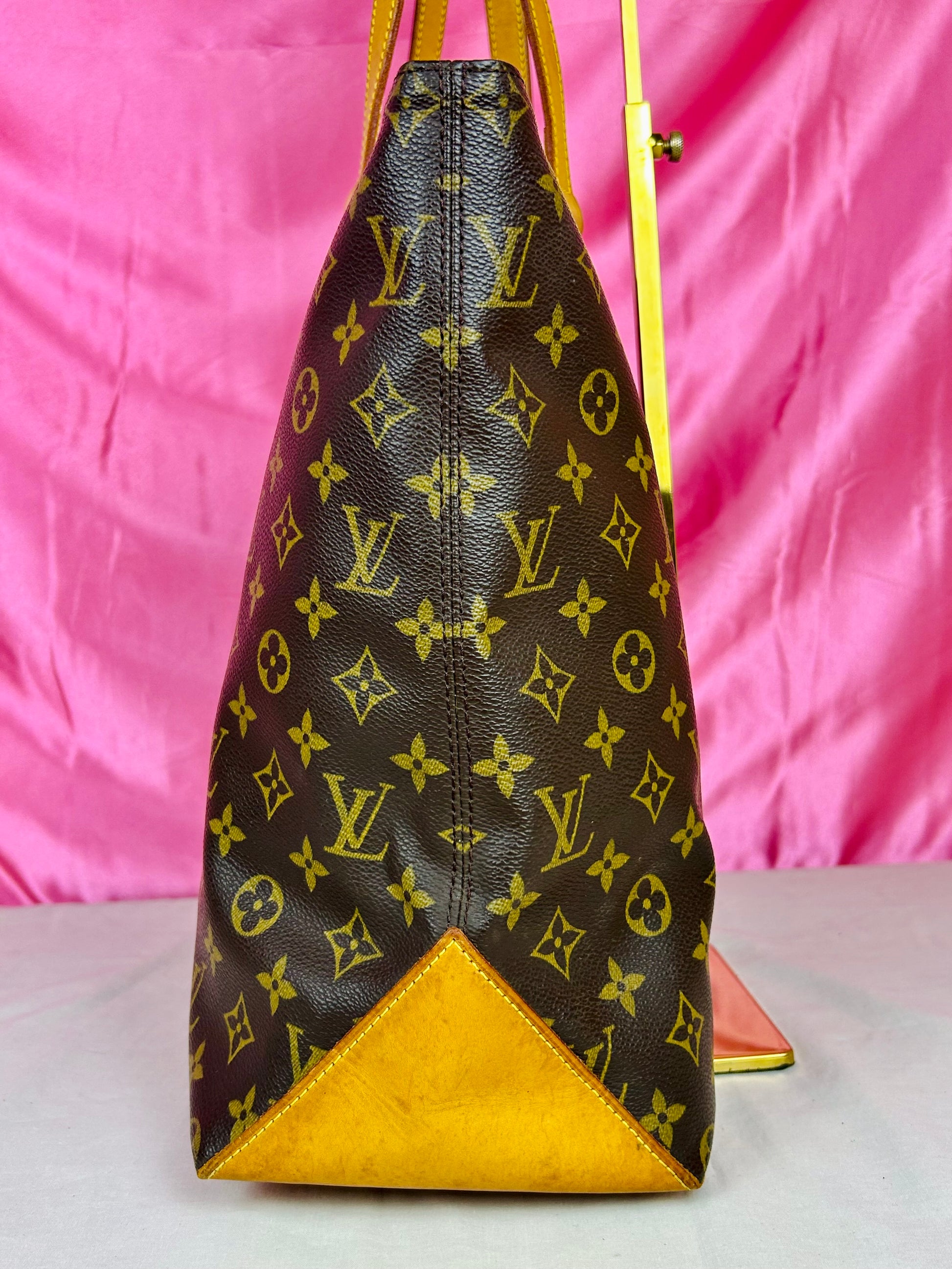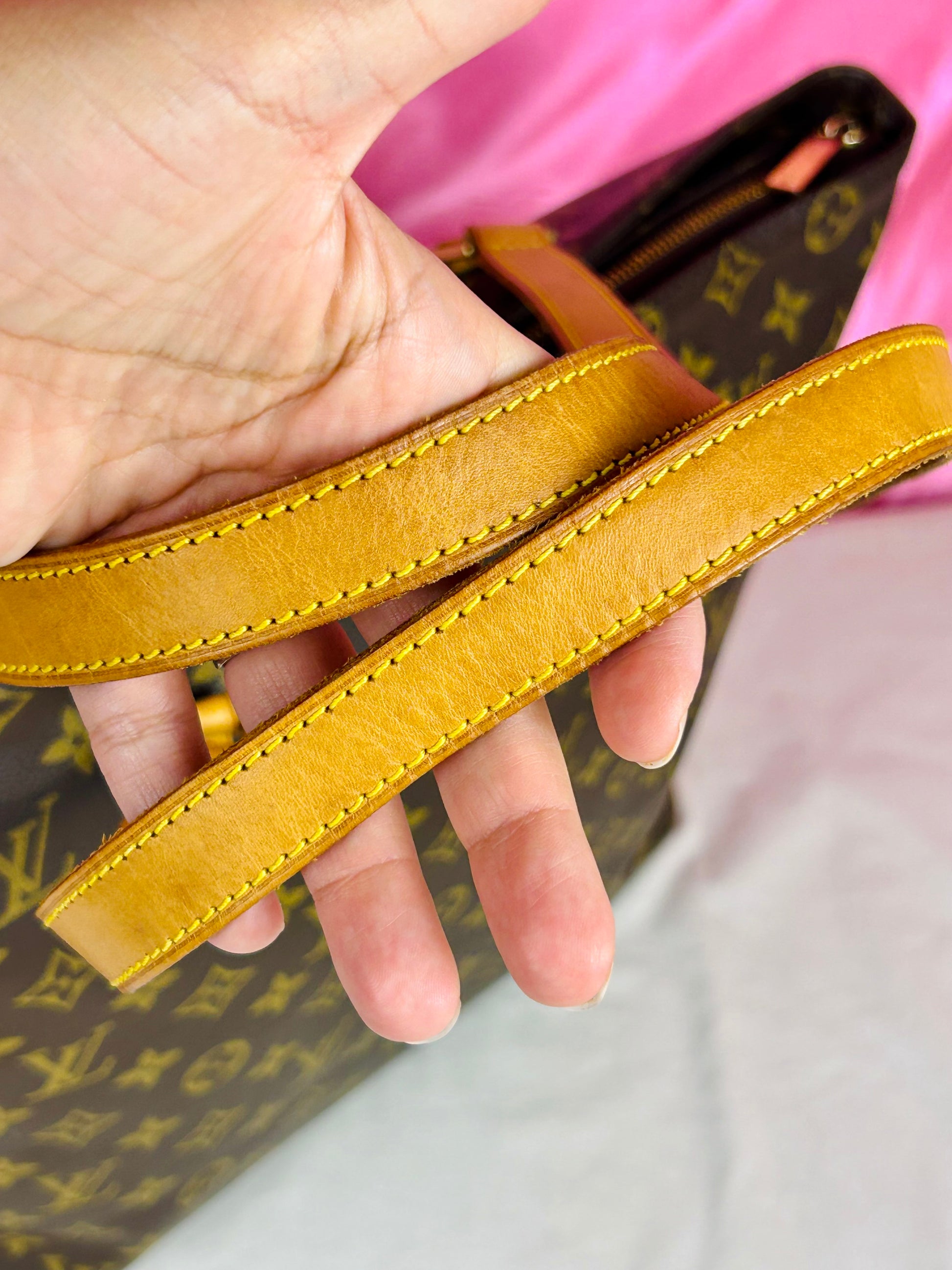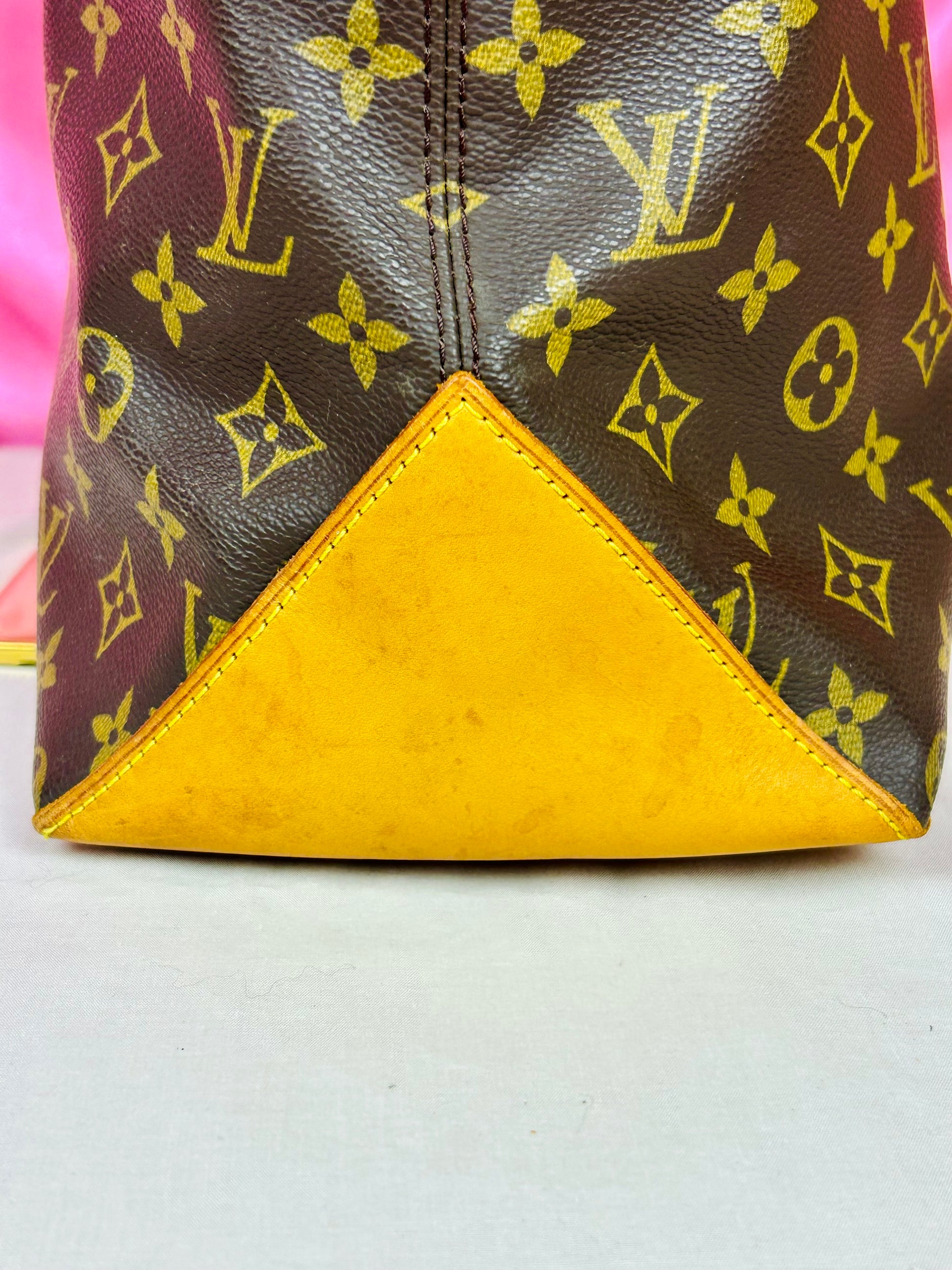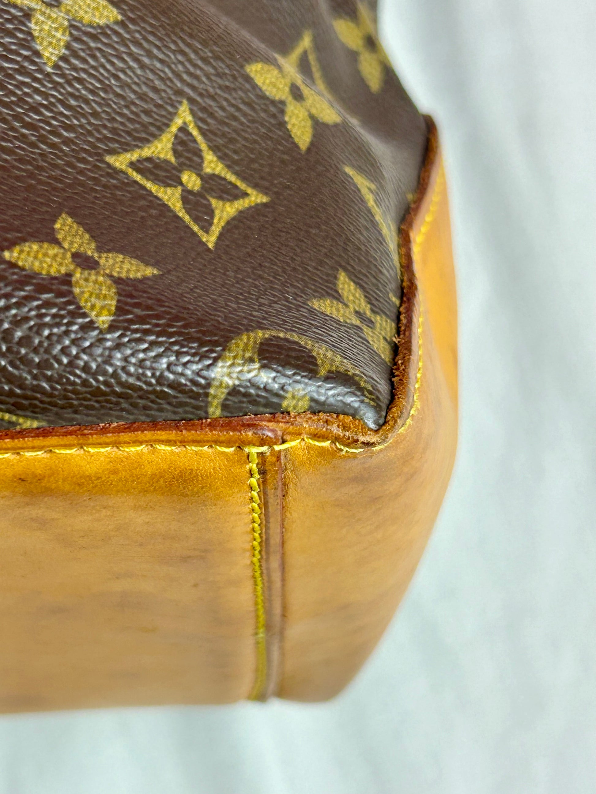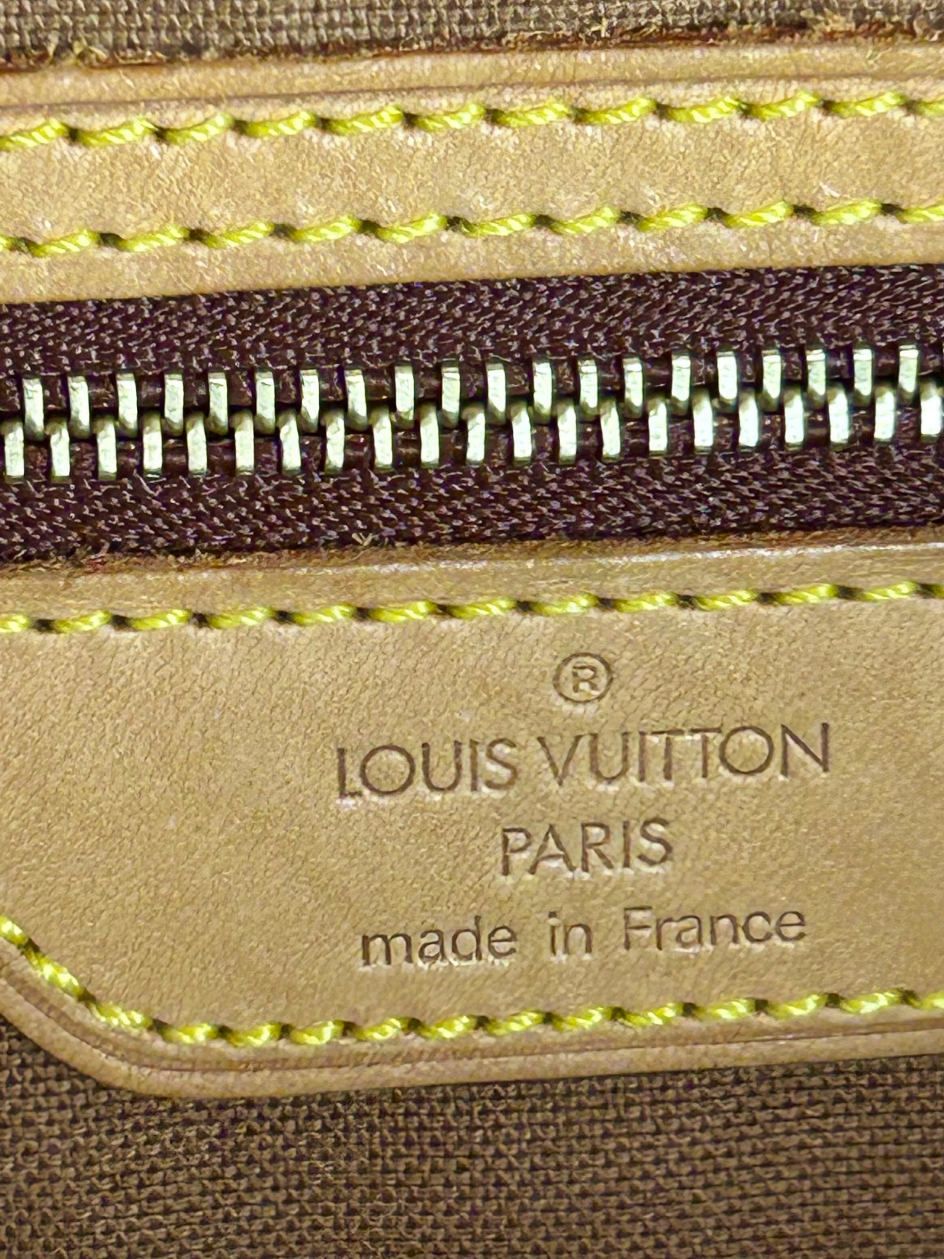 š Description: A roomy and functional classic tote! Canvas is bright and vibrant. Bottom leather shows markings and wear consistent with normal usage. Hardware is shiny, and zipper pulls and functions well. Some micro cracks at the end of the zipper, very common for this model. Interior is very clean. Pocket is clean and zipper pulls well. Handles are in great condition, some small markings, but no cracks or tears. Chapes are strong and in excellent condition. A beautiful everyday bag with tons of usage left!