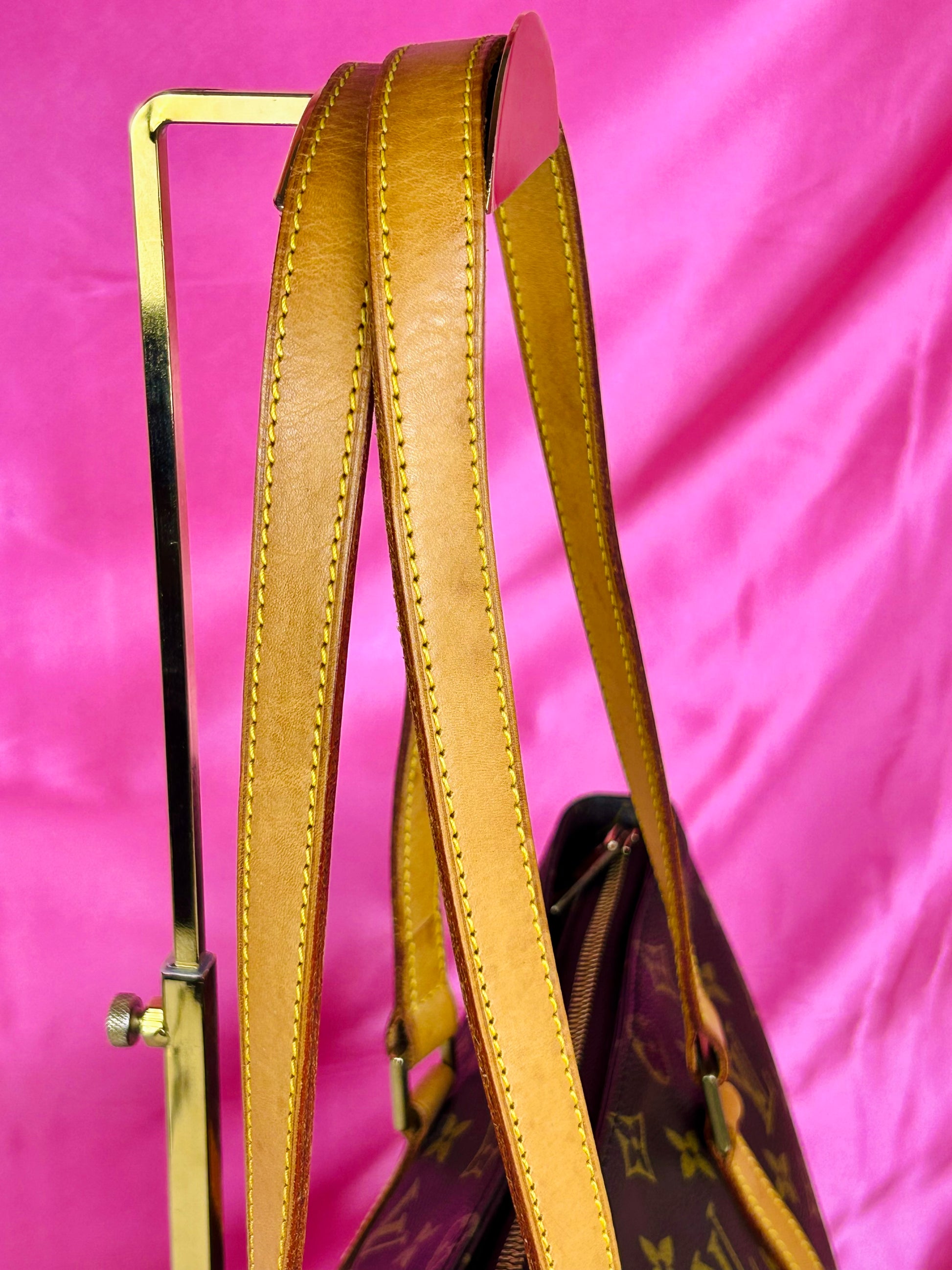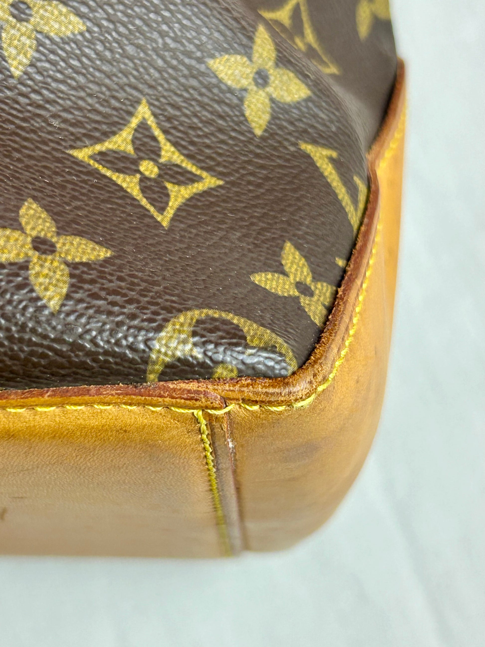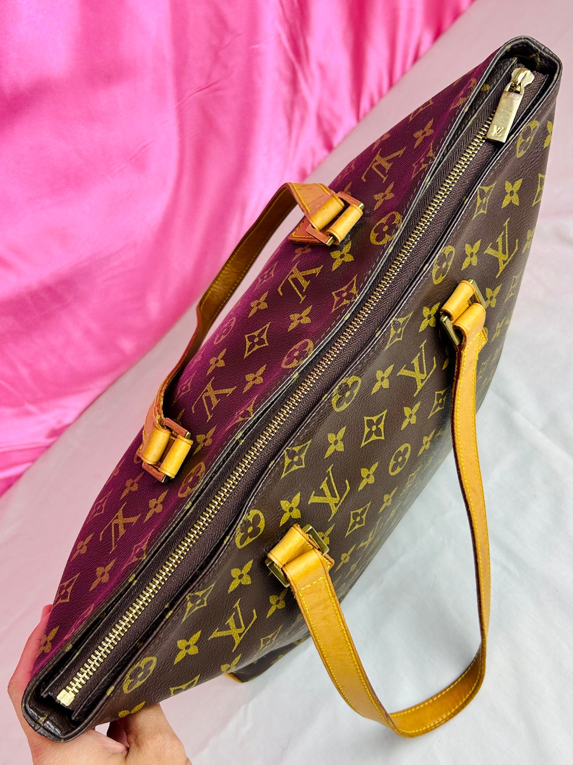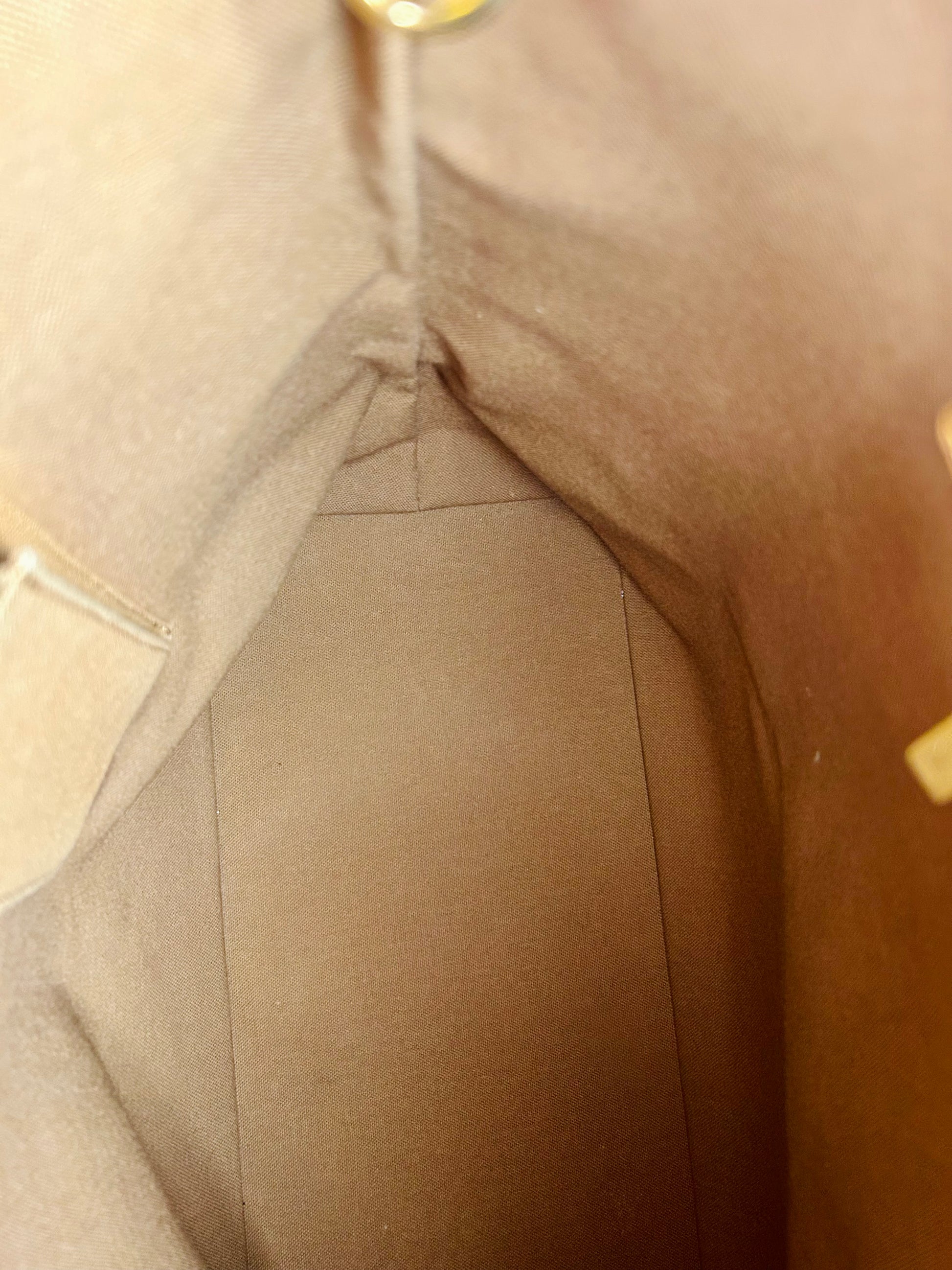 š Description: A roomy and functional classic tote! Canvas is bright and vibrant. Bottom leather shows markings and wear consistent with normal usage. Hardware is shiny, and zipper pulls and functions well. Some micro cracks at the end of the zipper, very common for this model. Interior is very clean. Pocket is clean and zipper pulls well. Handles are in great condition, some small markings, but no cracks or tears. Chapes are strong and in excellent condition. A beautiful everyday bag with tons of usage left!