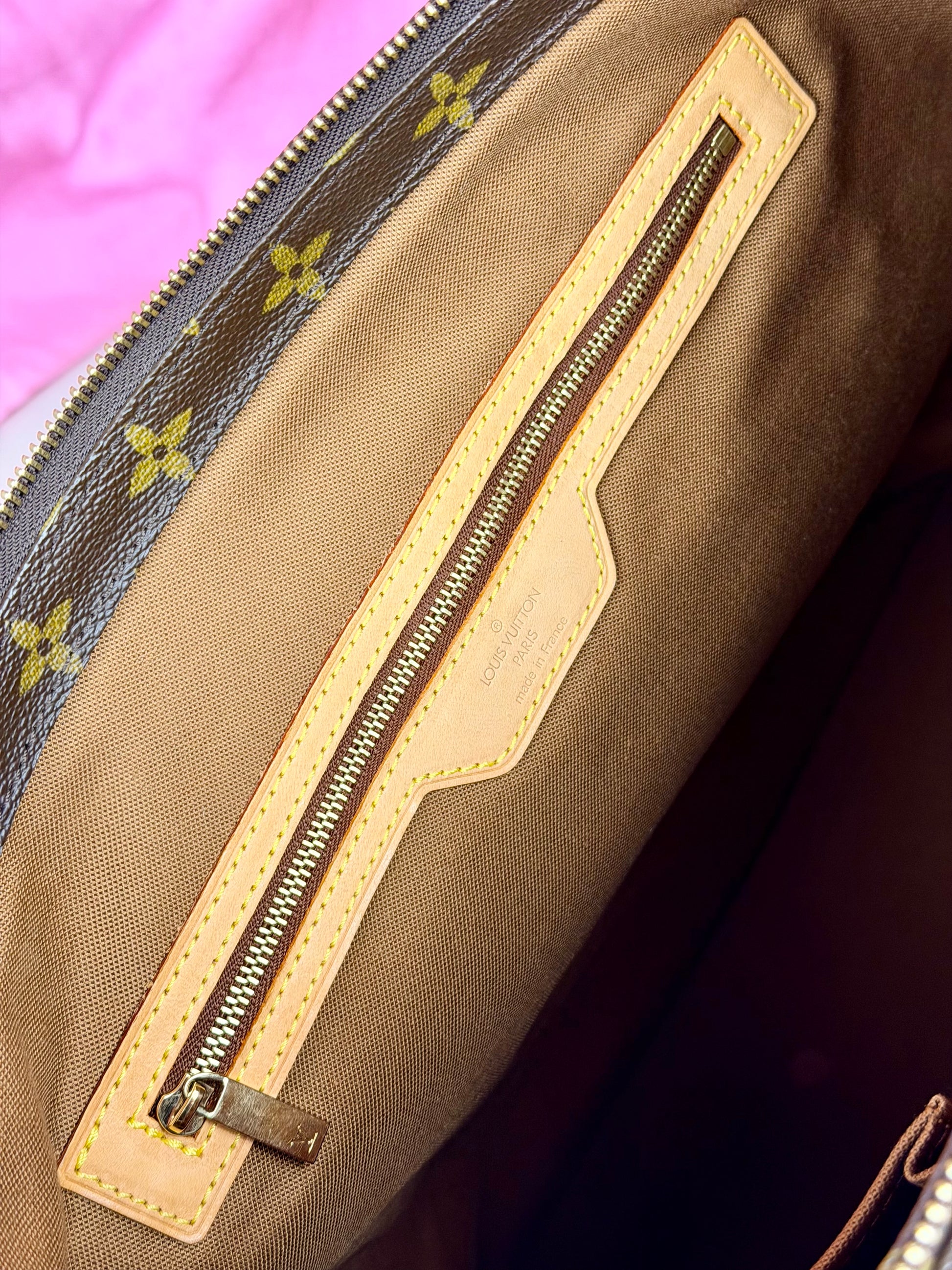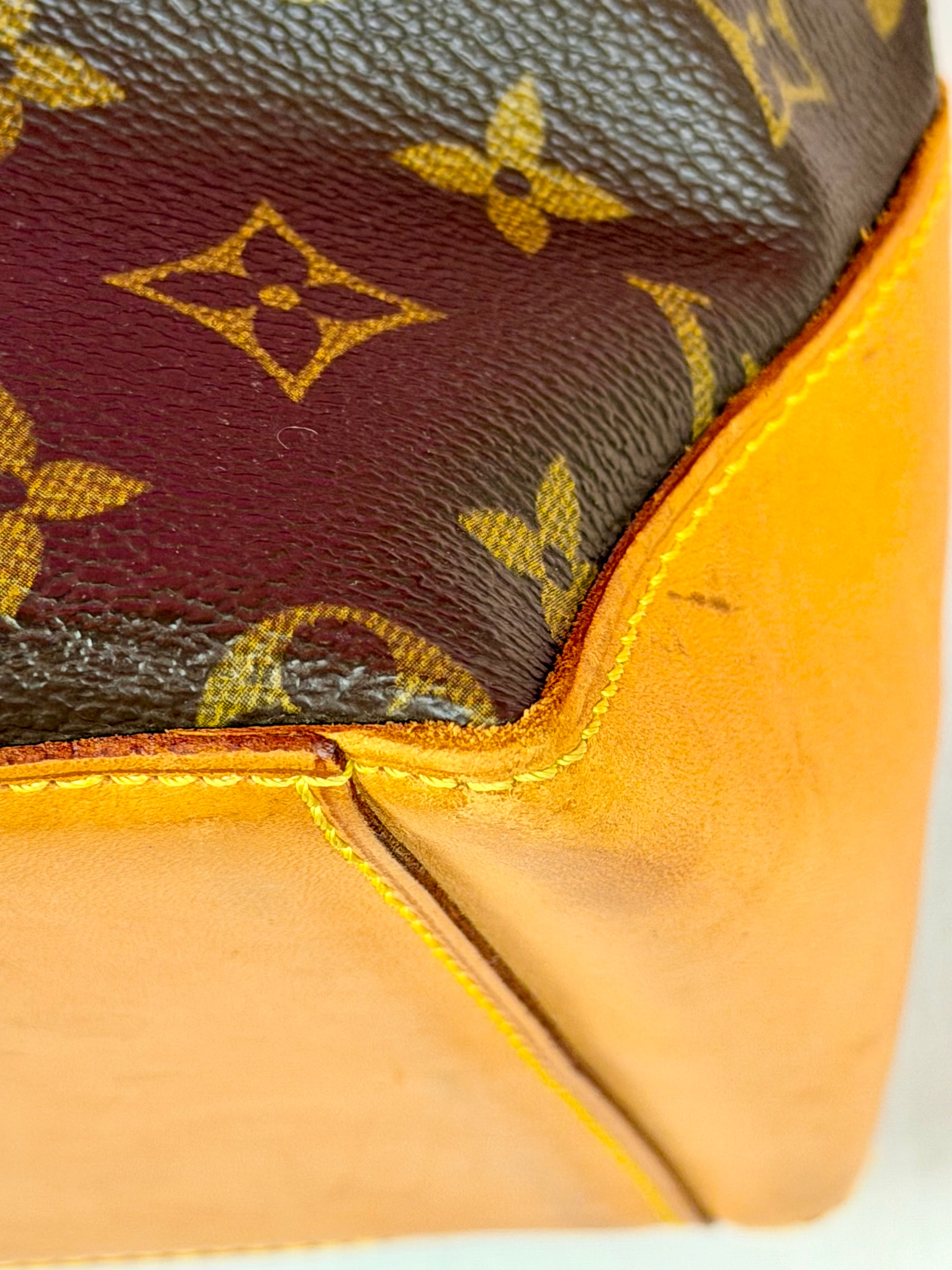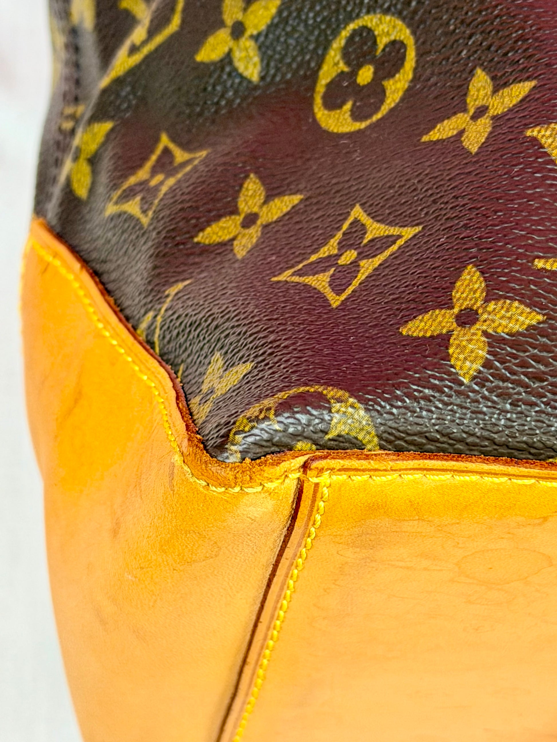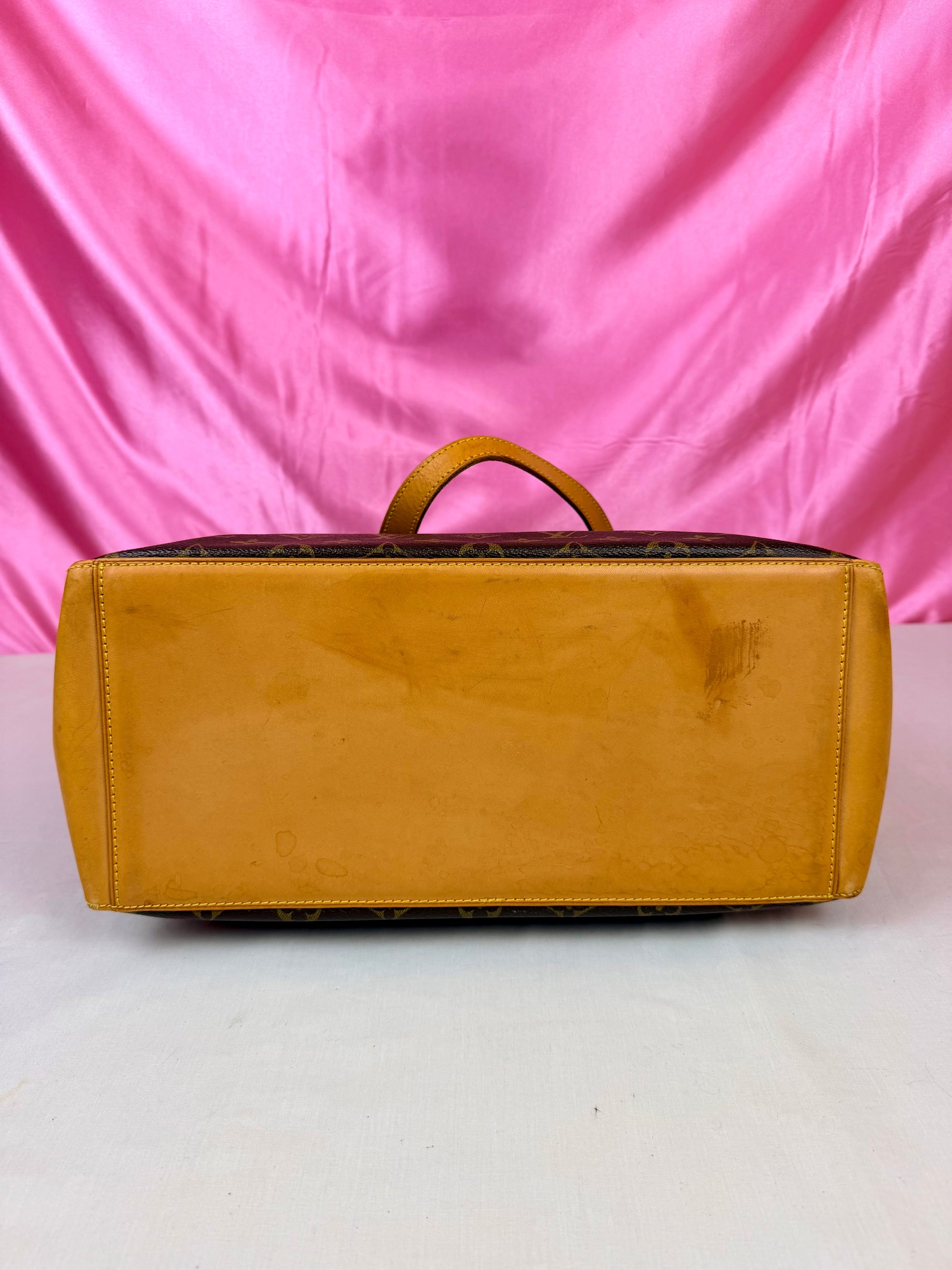 ๐ Description: A roomy and functional classic tote! Canvas is bright and vibrant. Bottom leather shows marking and mild wear consistent with normal usage. Hardware is shiny, and zipper pulls and functions well. Interior has minimal signs of wear. Pocket is clean and zipper pulls well. Handles are in great condition, some surfaceย cracking on one handle, small water mark on handle as well. Chapes are strong. A beautiful everyday bag with tons of usage left!