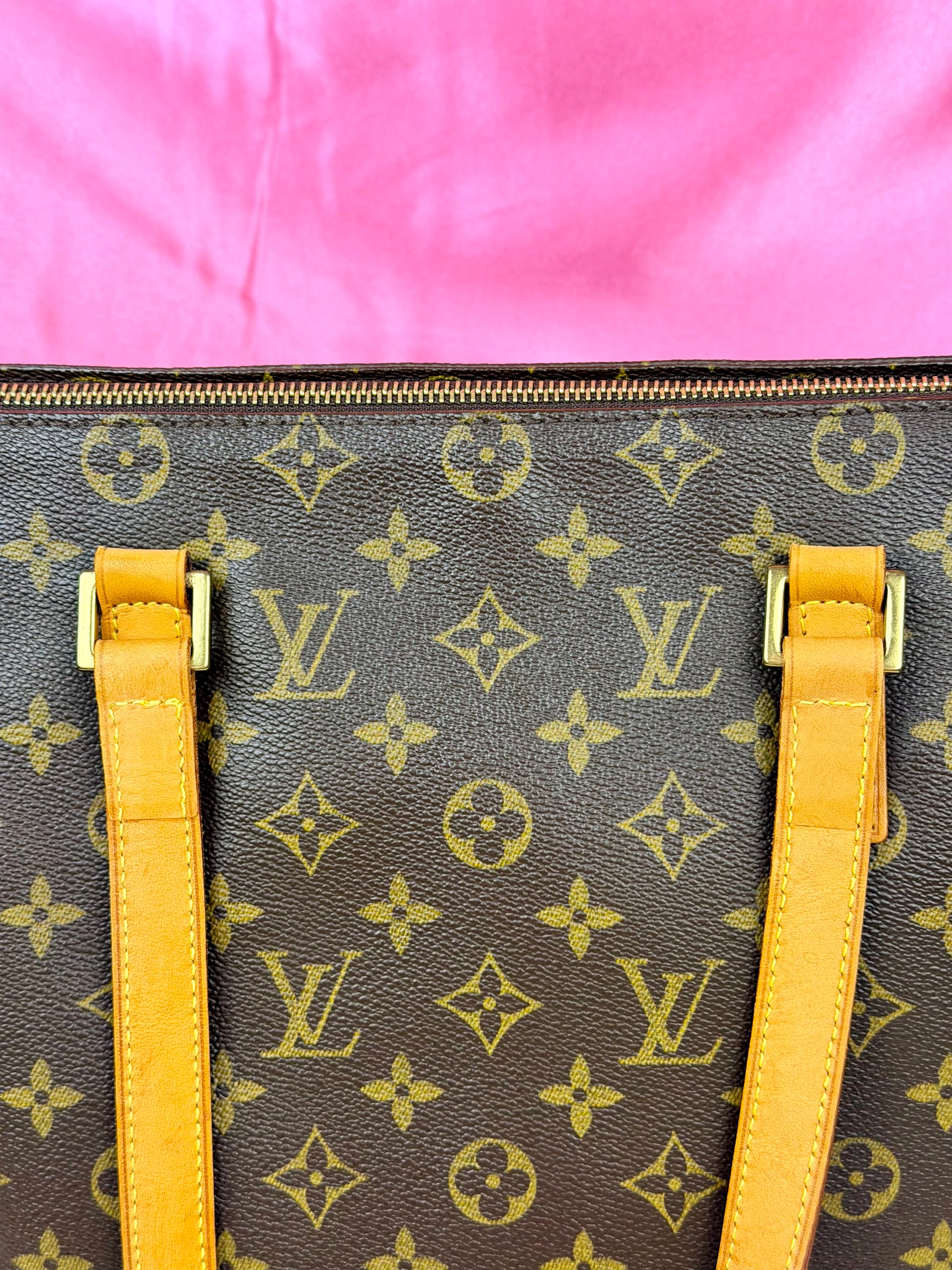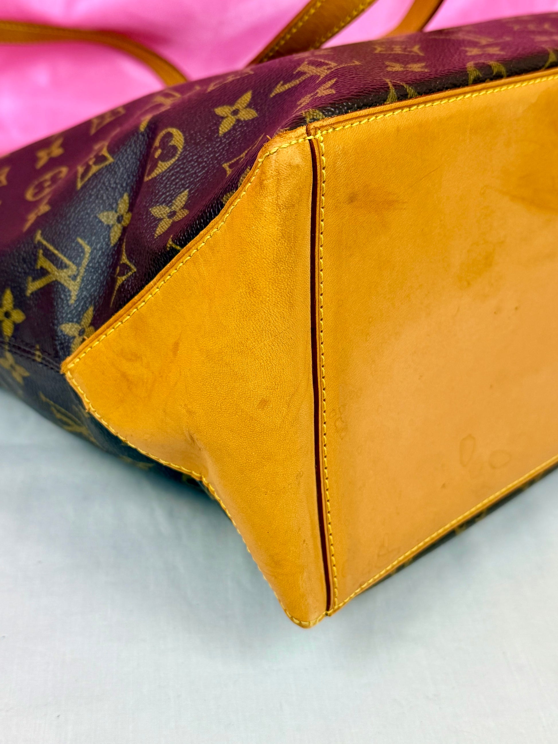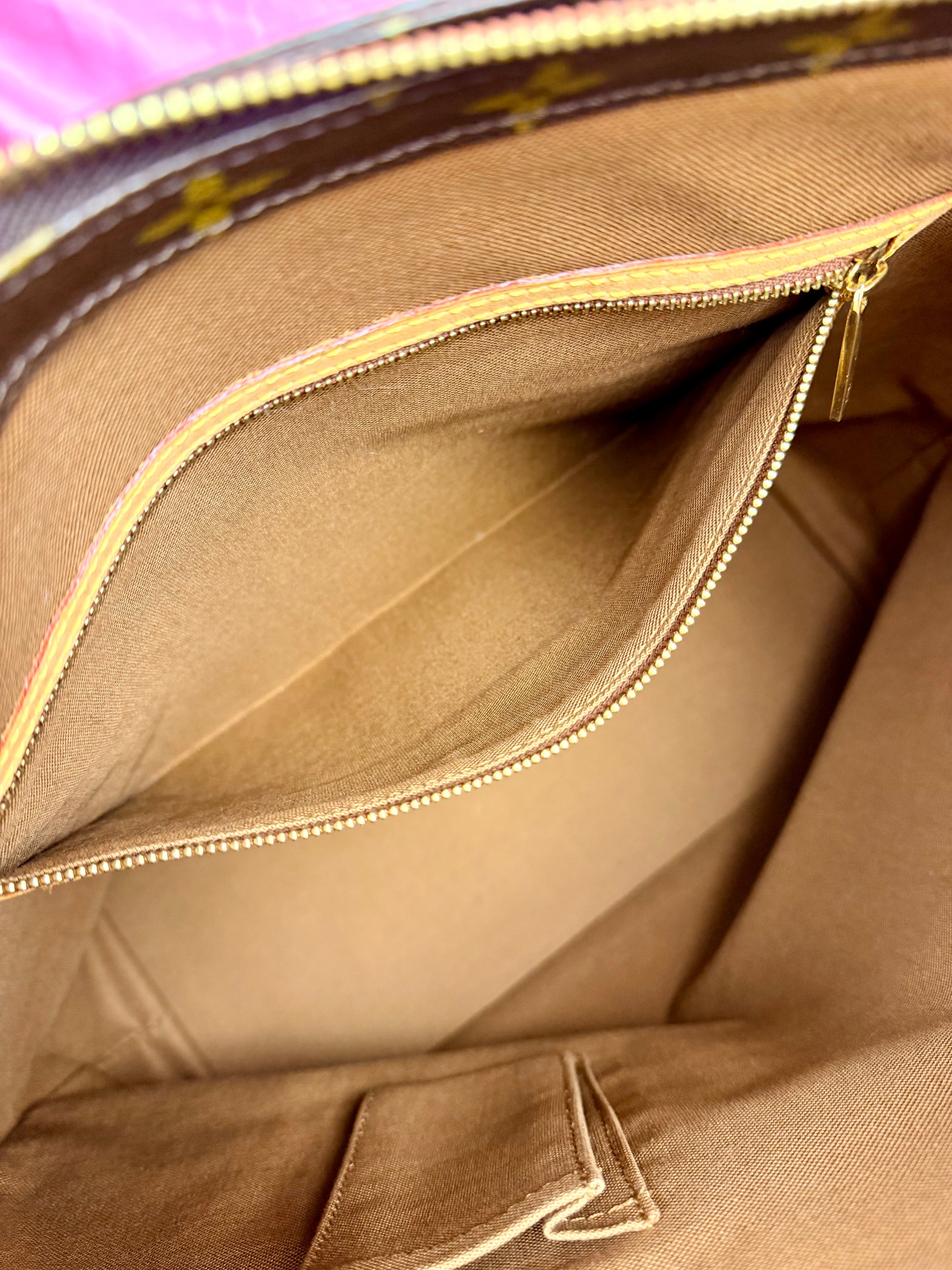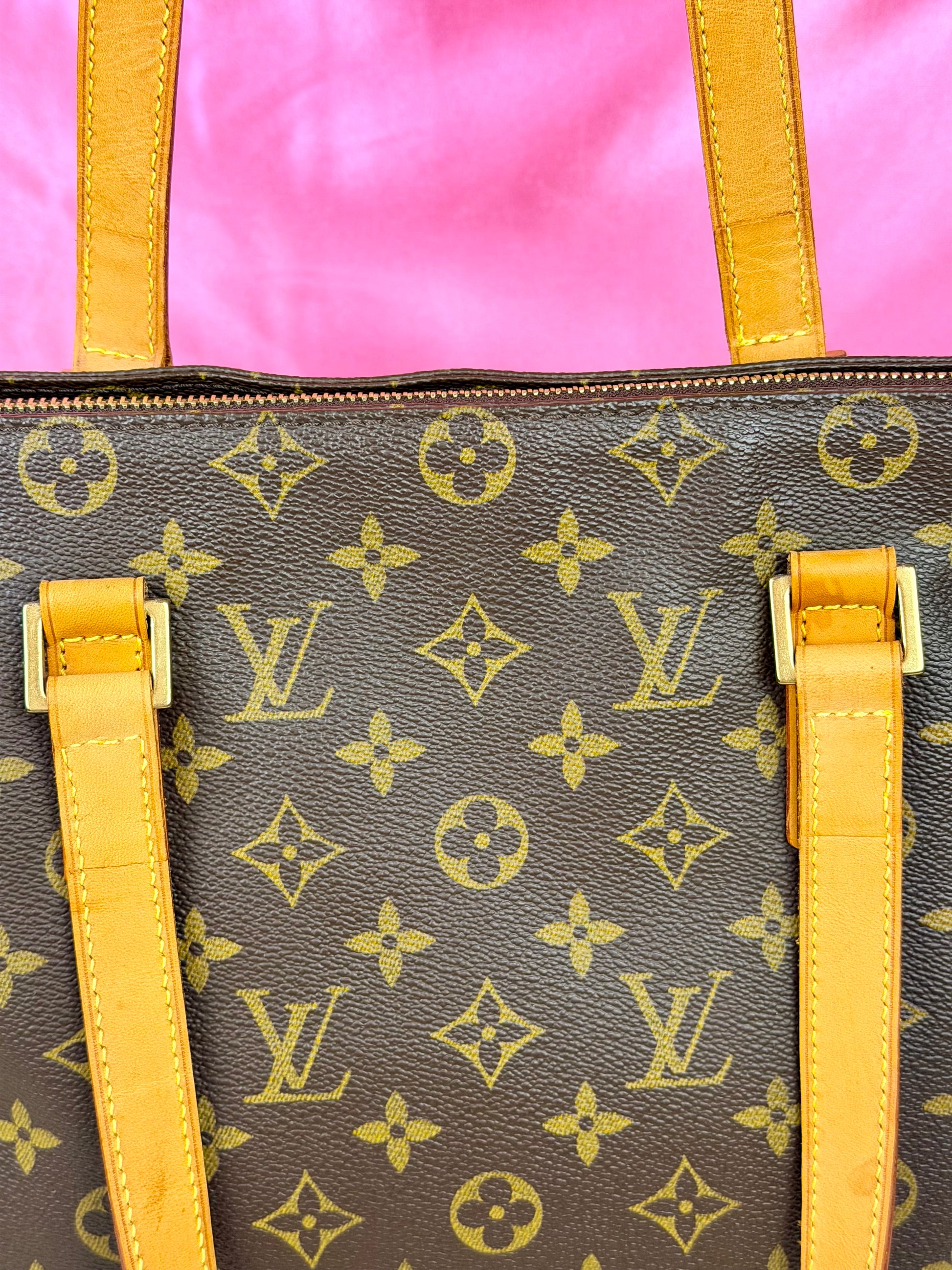๐ Description: A roomy and functional classic tote! Canvas is bright and vibrant. Bottom leather shows marking and mild wear consistent with normal usage. Hardware is shiny, and zipper pulls and functions well. Interior has minimal signs of wear. Pocket is clean and zipper pulls well. Handles are in great condition, some surfaceย cracking on one handle, small water mark on handle as well. Chapes are strong. A beautiful everyday bag with tons of usage left!