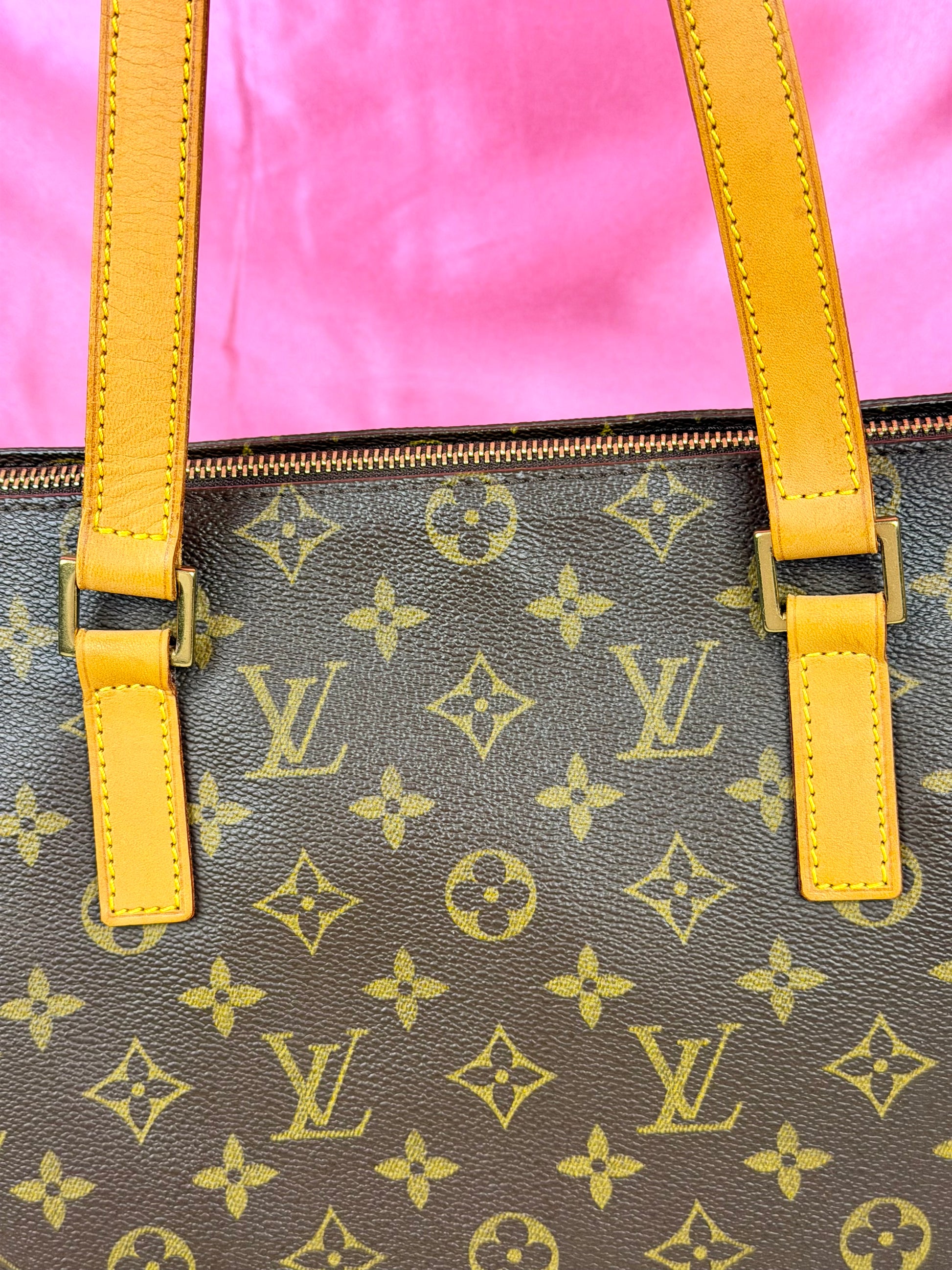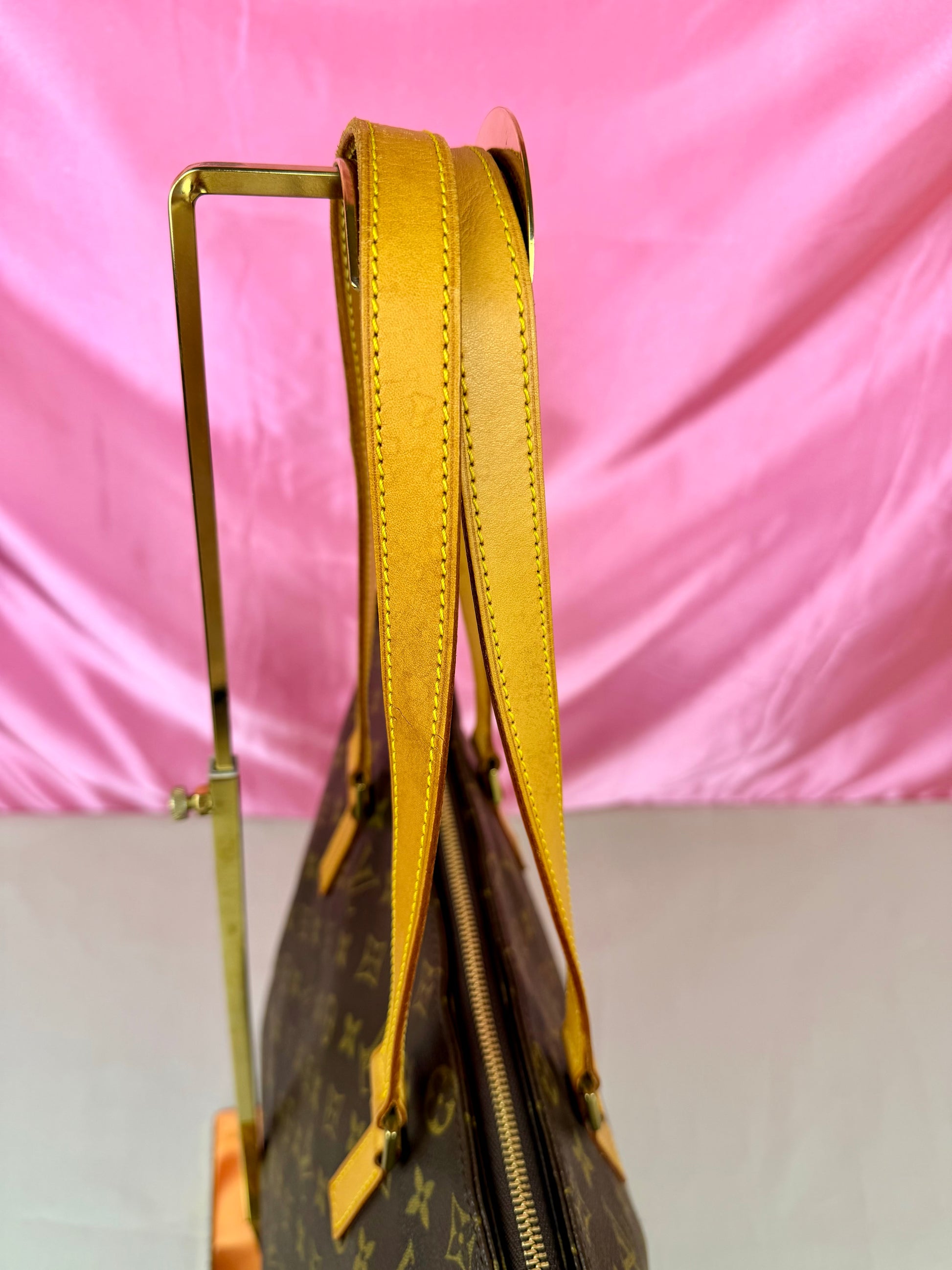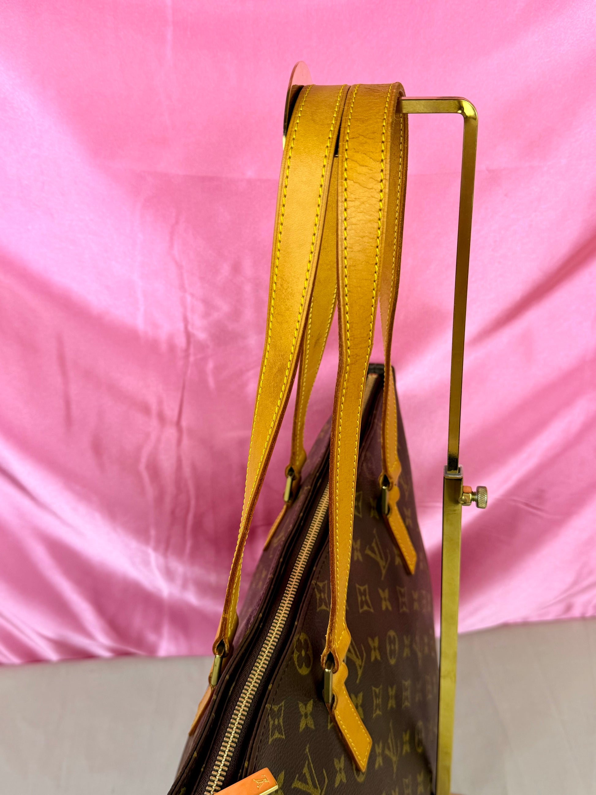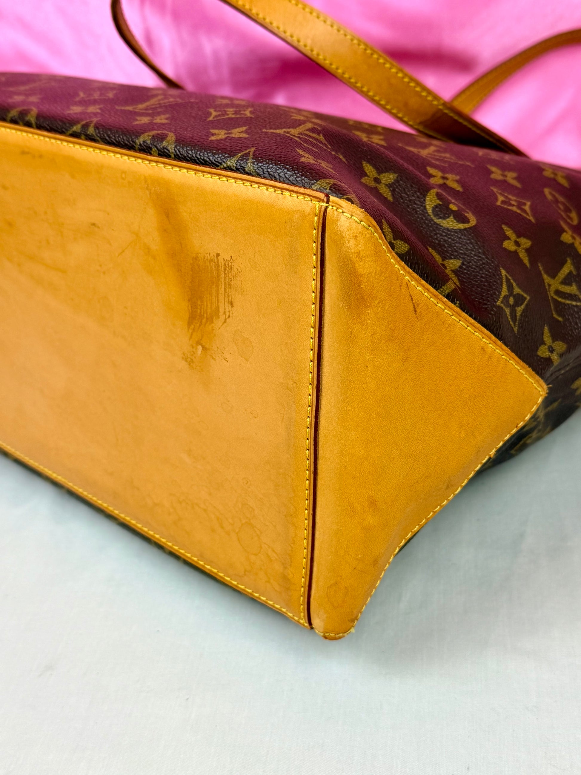 ๐ Description: A roomy and functional classic tote! Canvas is bright and vibrant. Bottom leather shows marking and mild wear consistent with normal usage. Hardware is shiny, and zipper pulls and functions well. Interior has minimal signs of wear. Pocket is clean and zipper pulls well. Handles are in great condition, some surfaceย cracking on one handle, small water mark on handle as well. Chapes are strong. A beautiful everyday bag with tons of usage left!