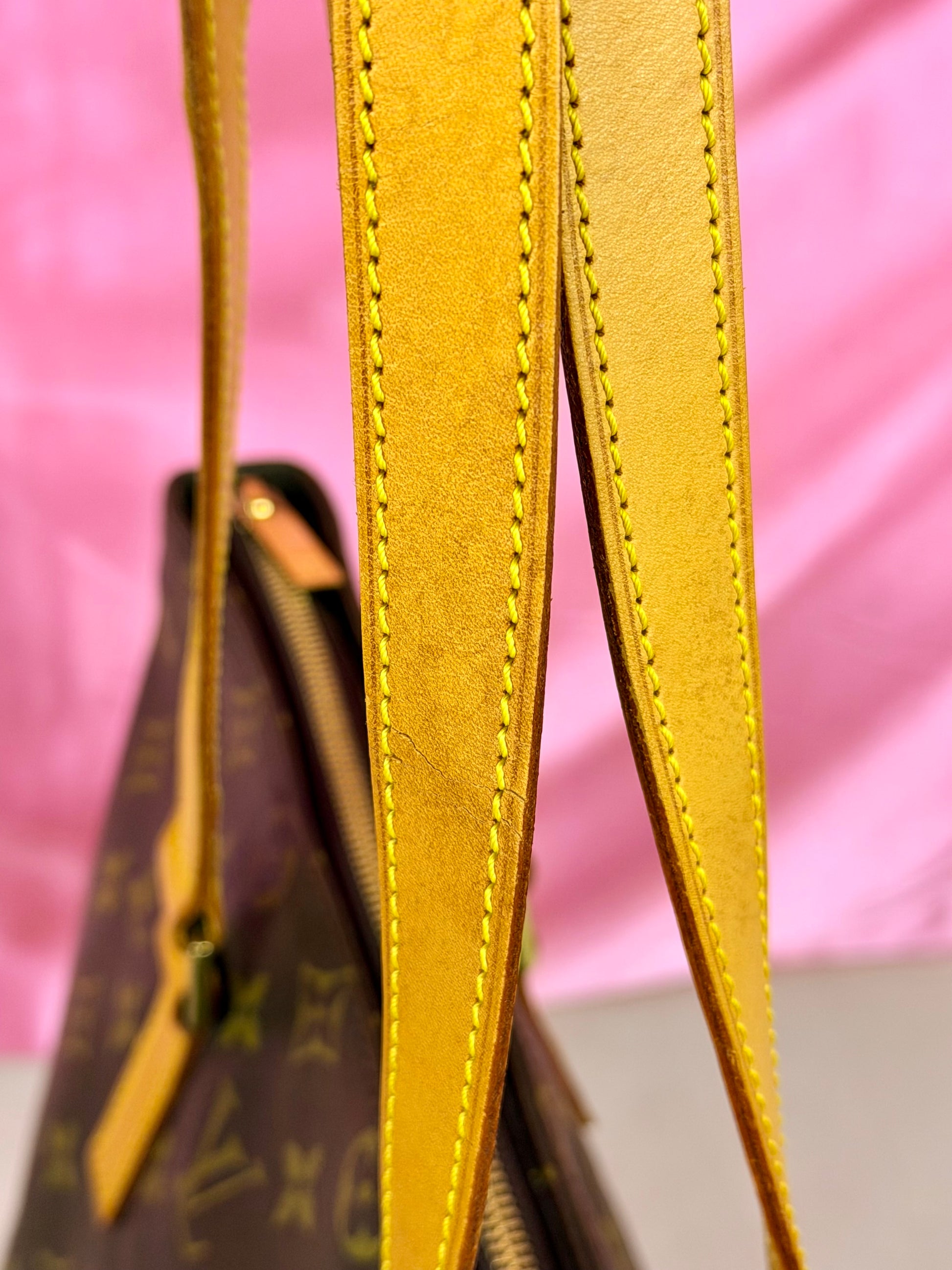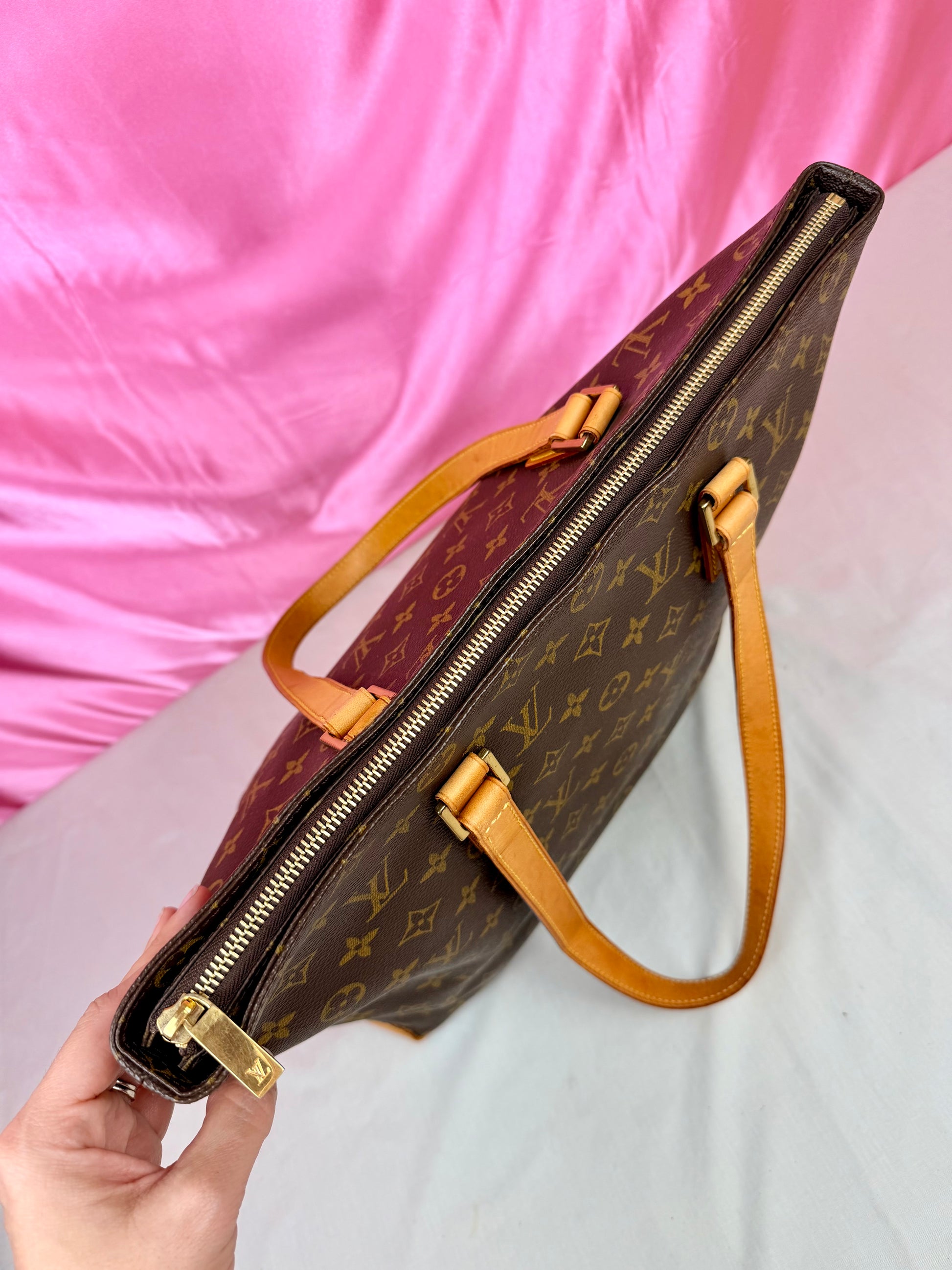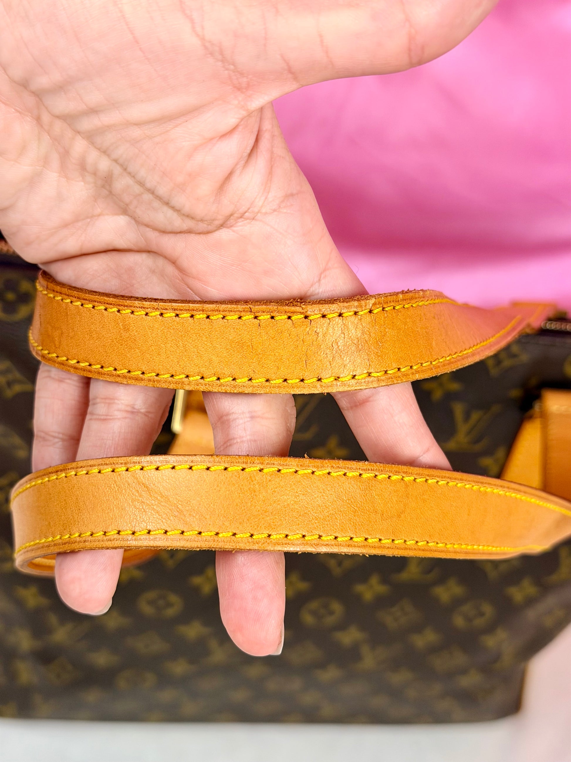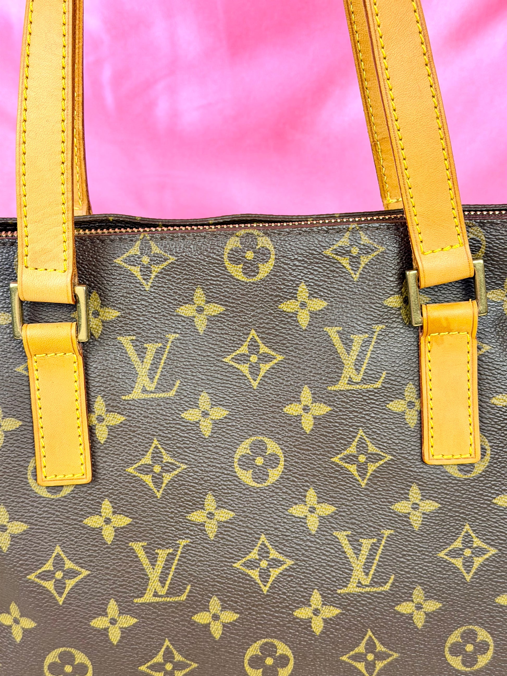 ๐ Description: A roomy and functional classic tote! Canvas is bright and vibrant. Bottom leather shows marking and mild wear consistent with normal usage. Hardware is shiny, and zipper pulls and functions well. Interior has minimal signs of wear. Pocket is clean and zipper pulls well. Handles are in great condition, some surfaceย cracking on one handle, small water mark on handle as well. Chapes are strong. A beautiful everyday bag with tons of usage left!