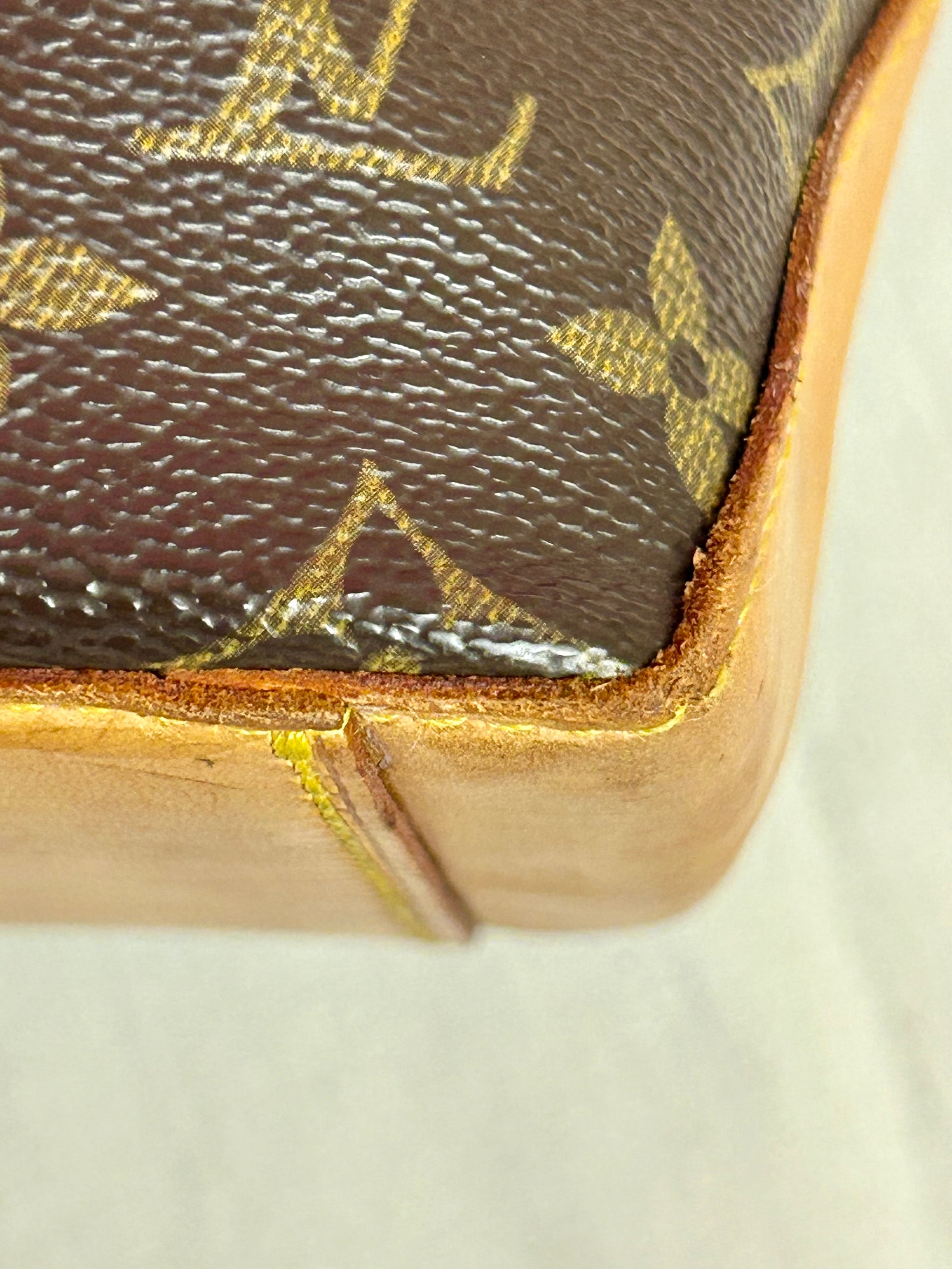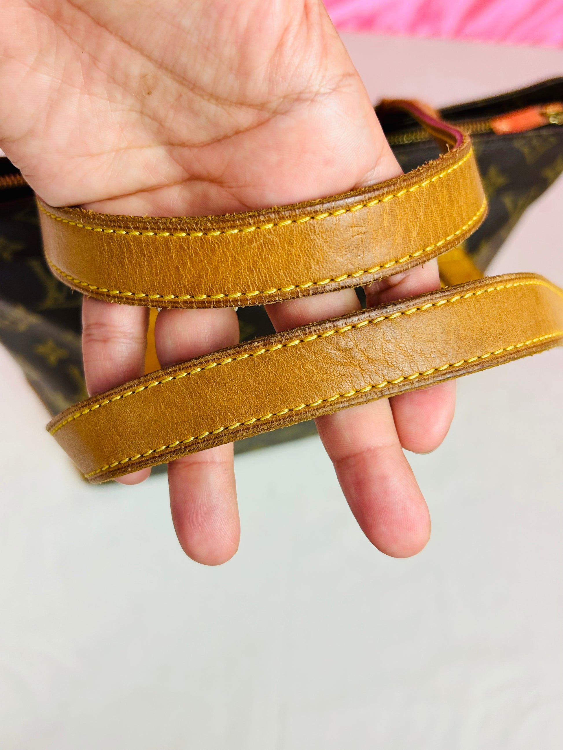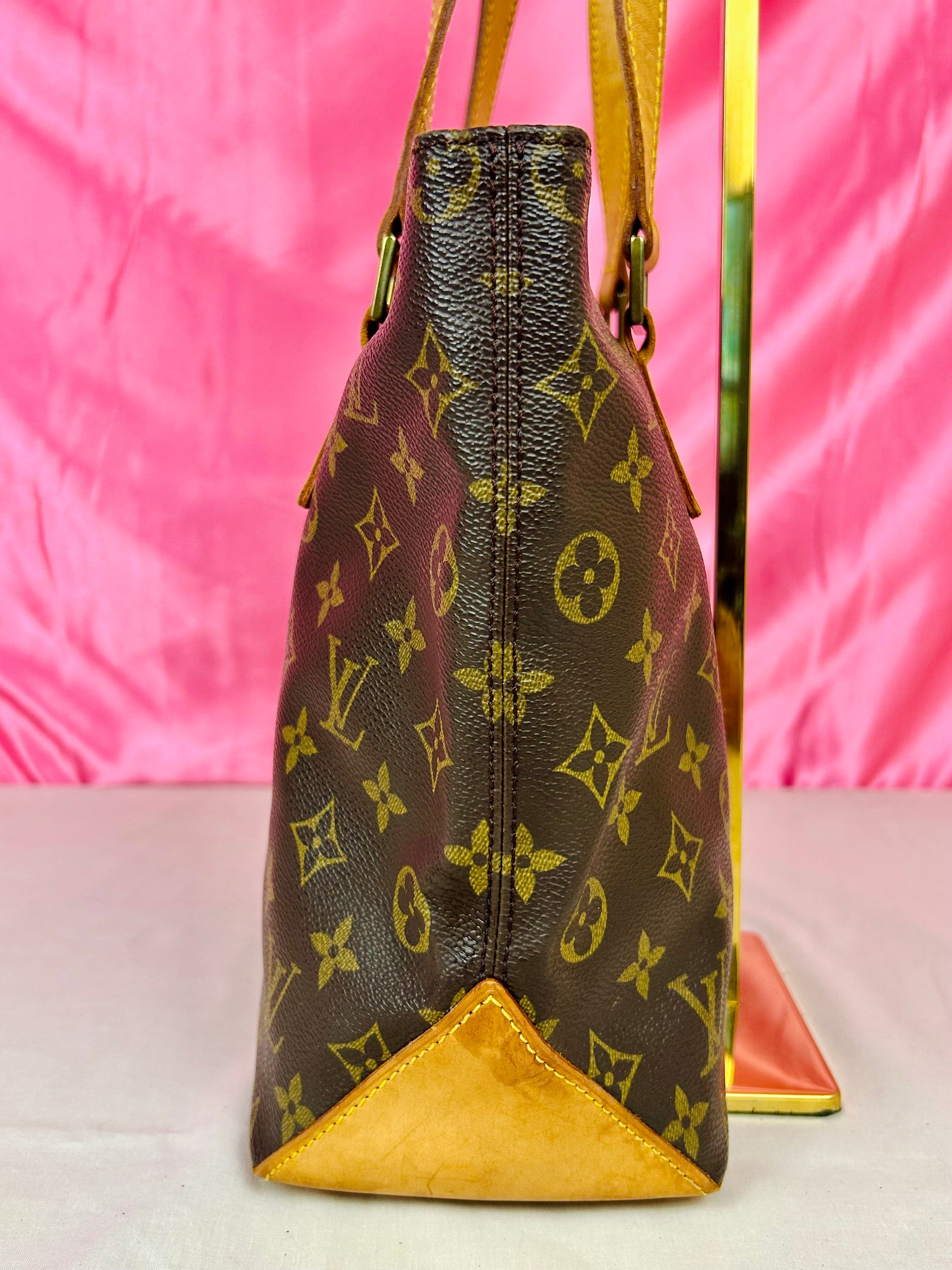 š Description: This Cabas Piano is the smallest of the Cabas models but still has enough room for all your essentials, it's perfect for daily wear. The canvas is in beautiful condition, maintaining its vibrant monogram print. Hairline scratch on the canvas noted in the pictures. No crackings in the corner near the zipper! The leather has an even honey patina with some markings on the bottom and sides. The chapes are in excellent condition, and the handles show minimal wear with some markings and wear consistent with normal usage, no cracks or tears. The zipper pullers are gold and work properly. Interior and pocket are clean. A fantastic everyday luxury bag!