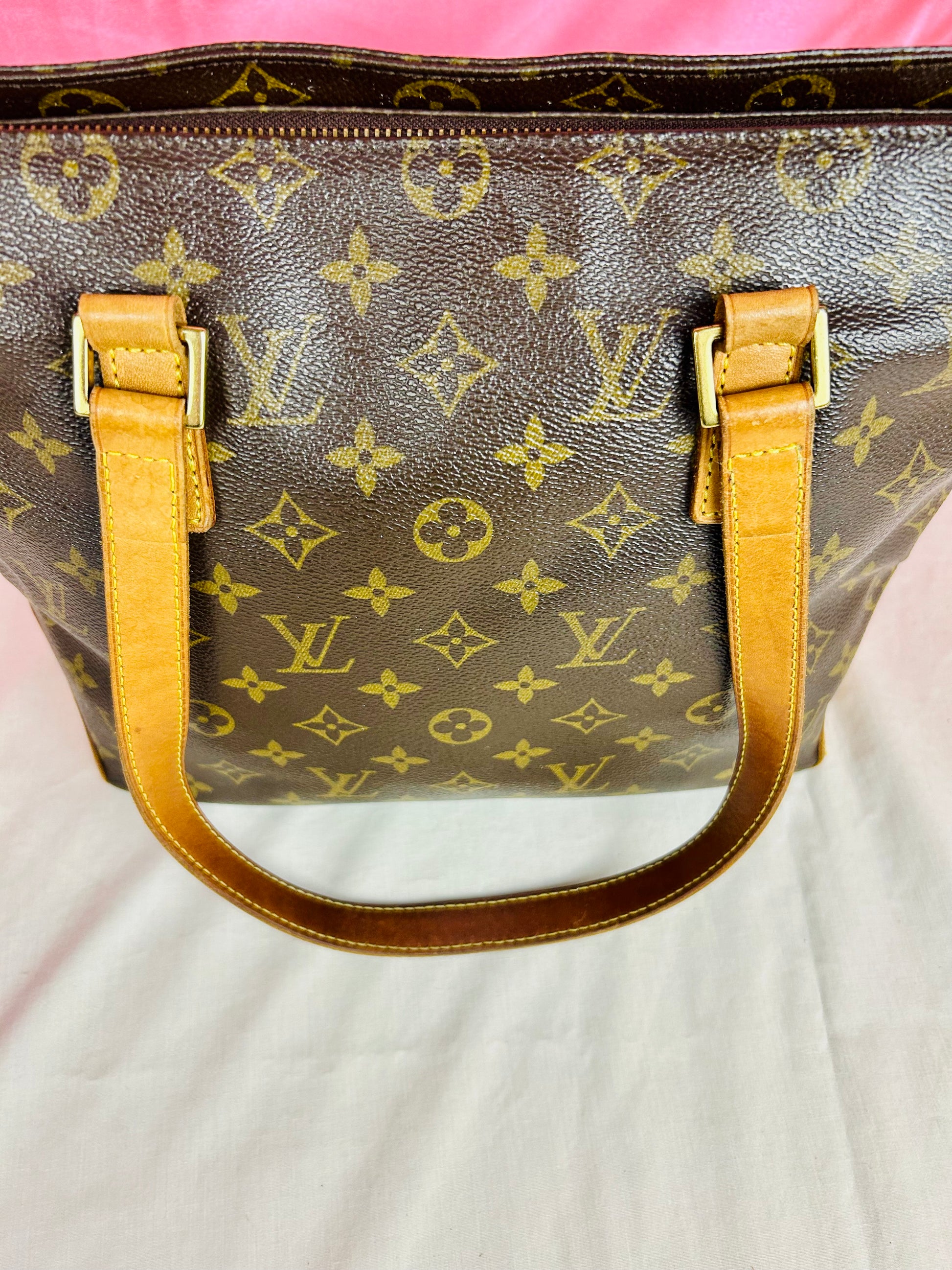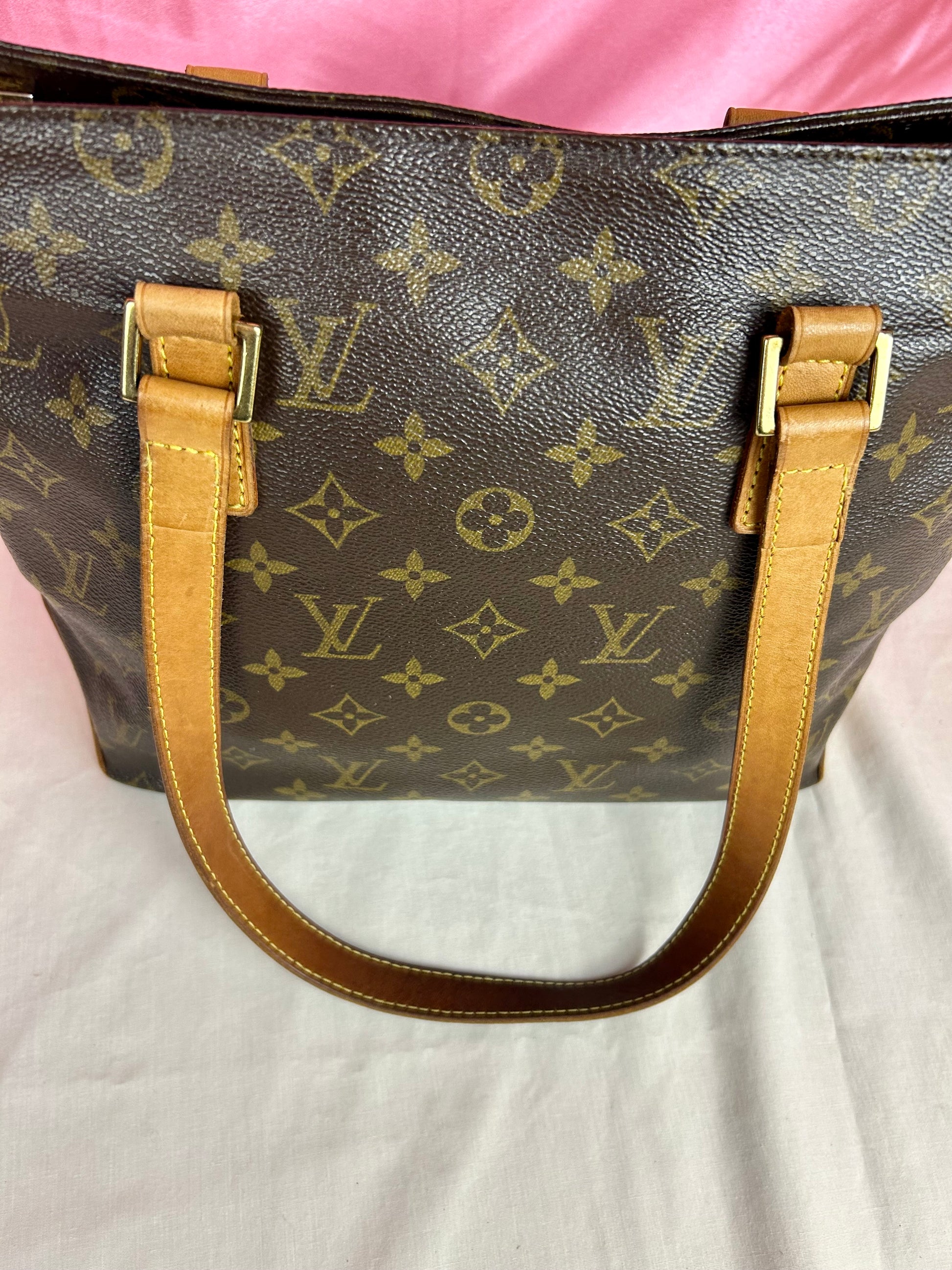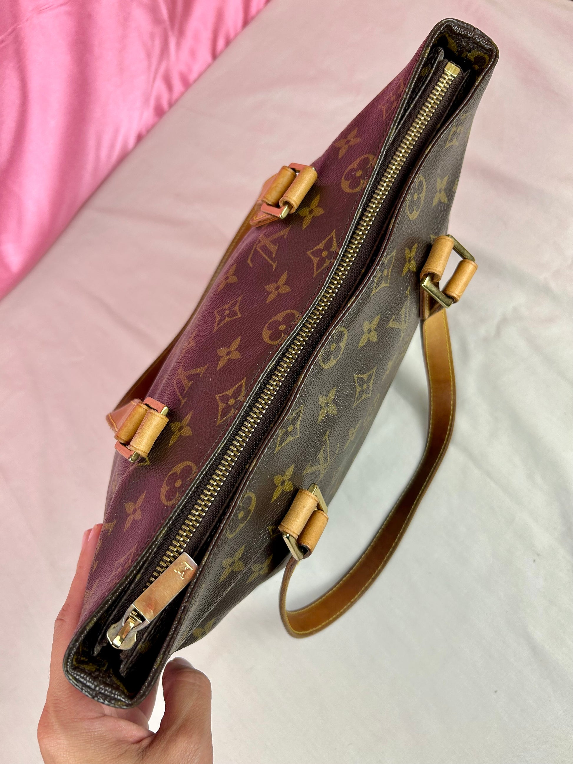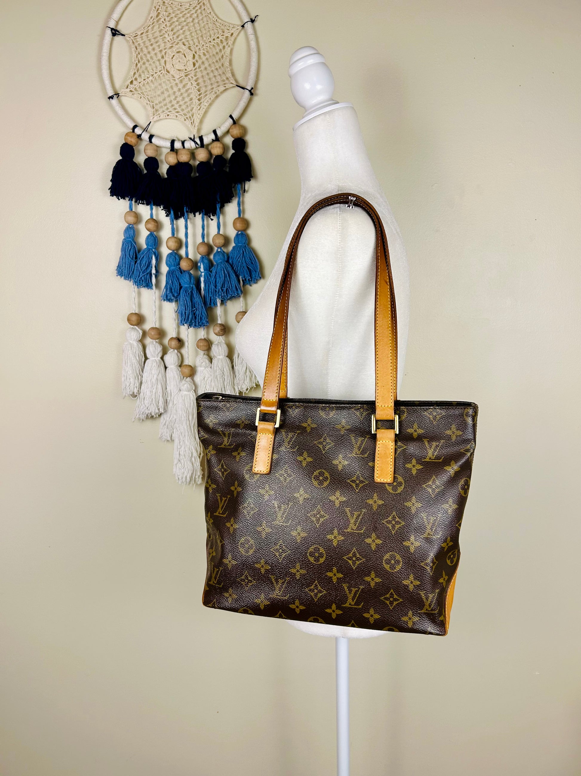 💜 Description: This Cabas Piano is the smallest of the Cabas models but still has enough room for the essentials, and perfect for daily wear. The canvas is in beautiful condition, maintaining its vibrant monogram print. Harline cracking in the corner near the zipper, very common for this model. The leather has an even honey patina with some markings on the bottom and sides. Some wear on the bottom corners consistent with normal usage.The chapes are strong and intact. The leather handles have darkening towards the middle and occasional marking towards the center consistent with normal usage, no cracks or tears. The zipper pullers are gold and work properly. Interior and pocket are clean, some small markings on the interior. A fantastic everyday luxury bag!