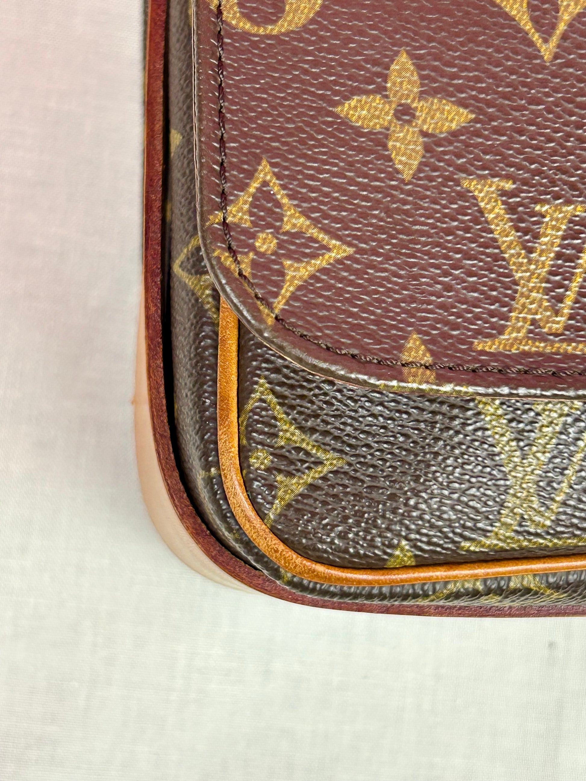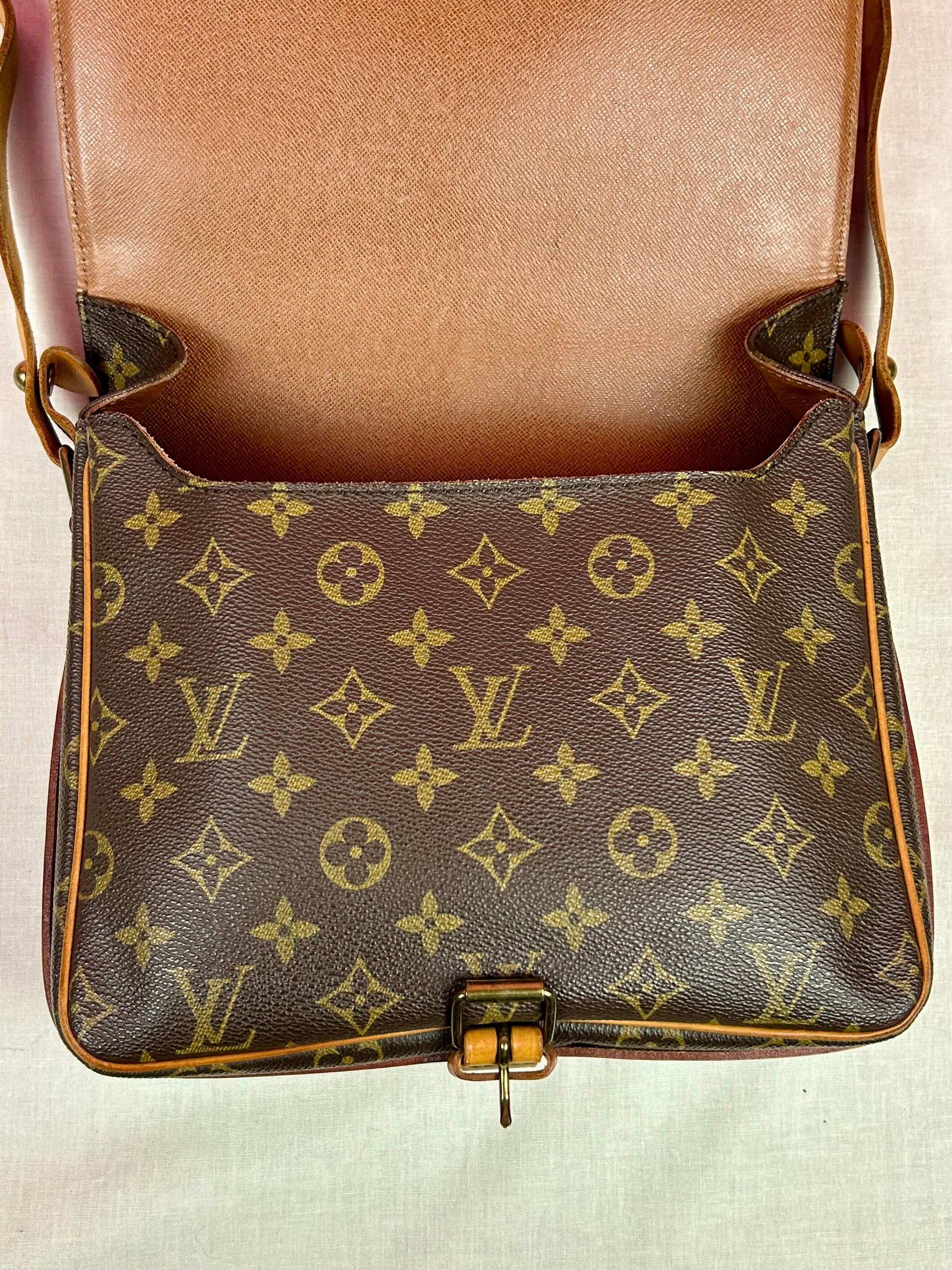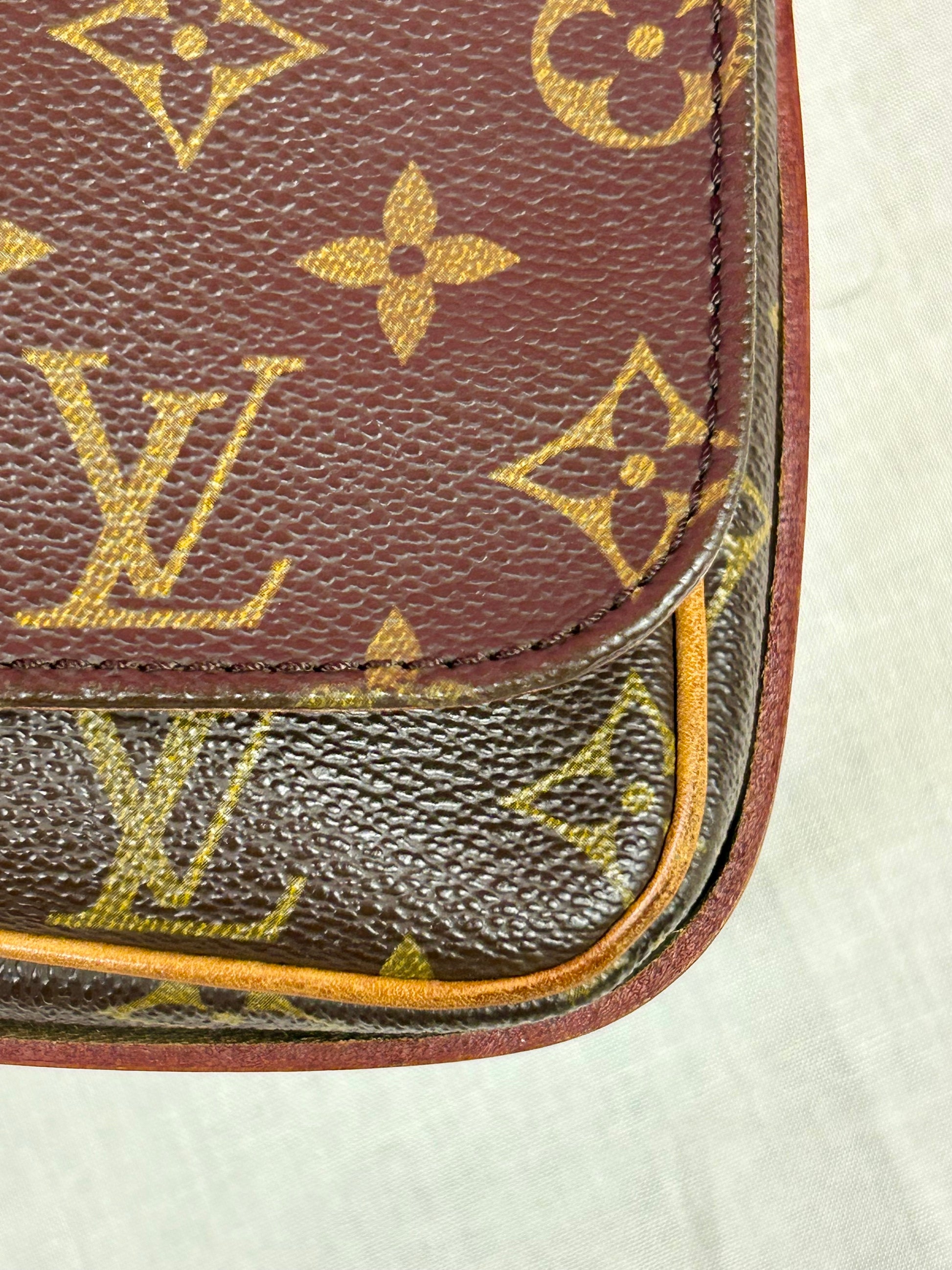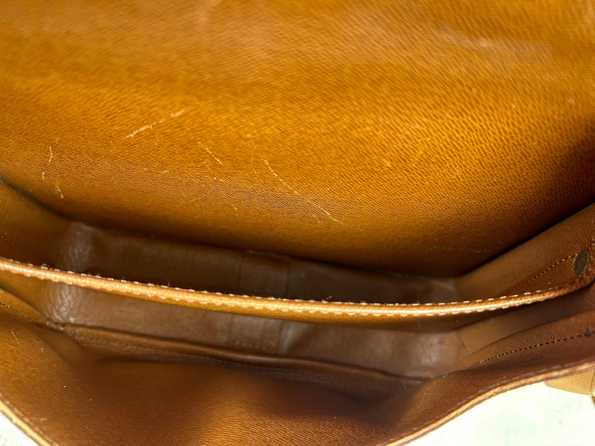 💜 Description: A spacious and classic crossbody—perfect for everyday wear with vintage charm! The canvas is in beautiful, well-maintained condition with no cracks or tears. Leather has an even patina with some watermarks noted on the bottom and on front leather clasp. The front leather clasp has some wrinkling and wear consistent with normal usage. Strap is in great condition, with some water markings and wearing on top. Chapes remain strong. Interior flap has some pen marking, and some rubbing on the side. Interior is clean, with signs of normal wear and usage.