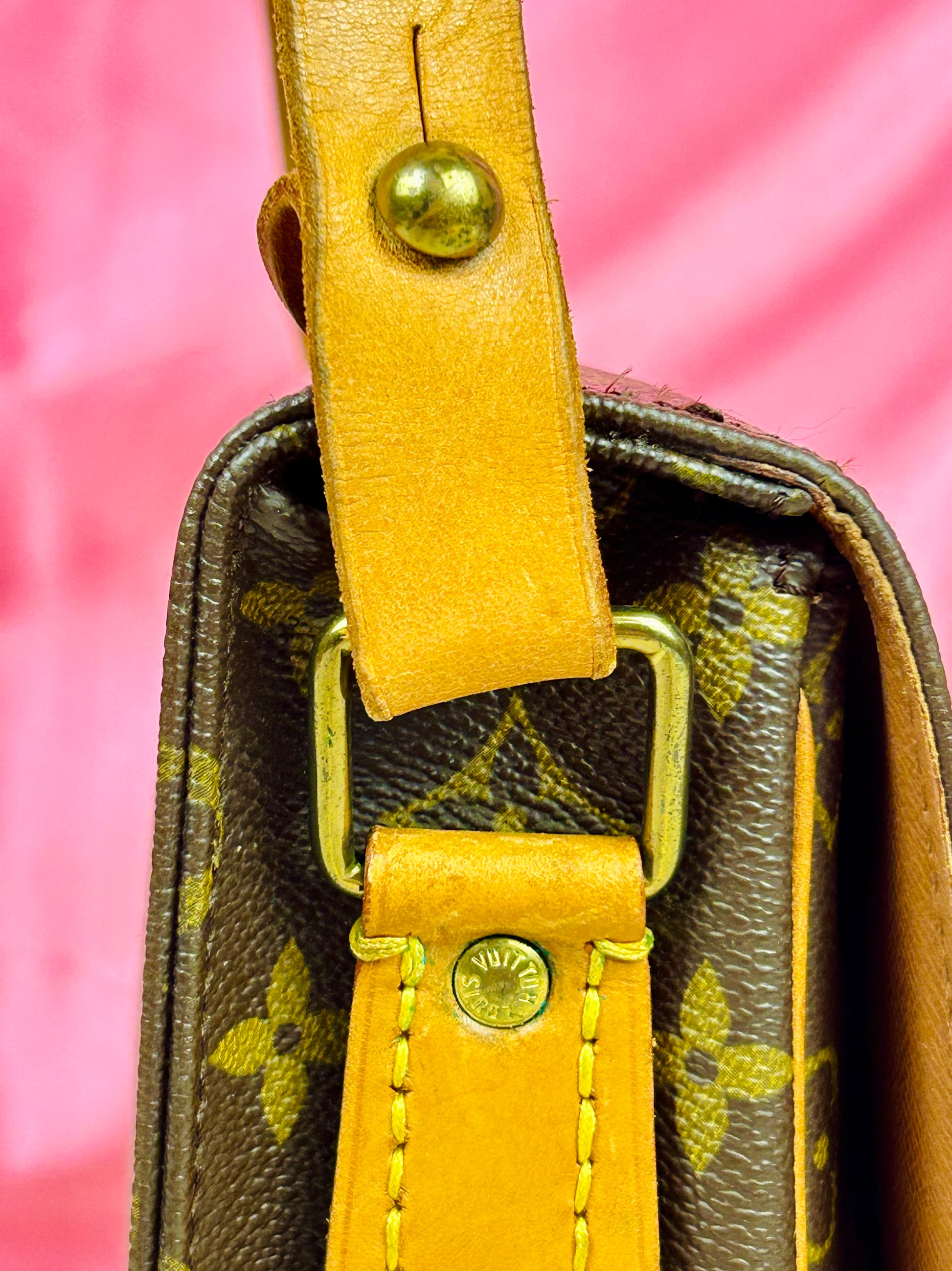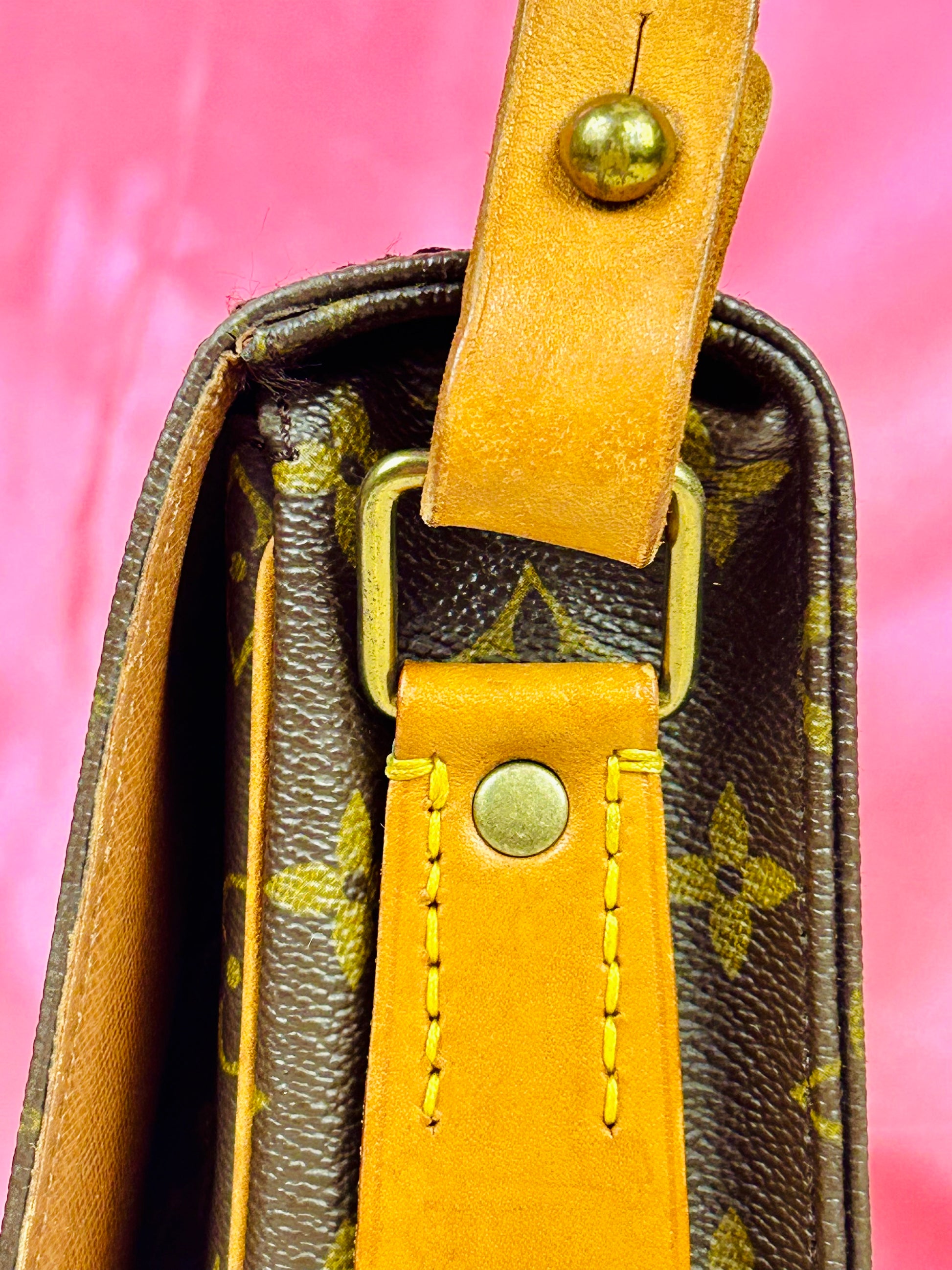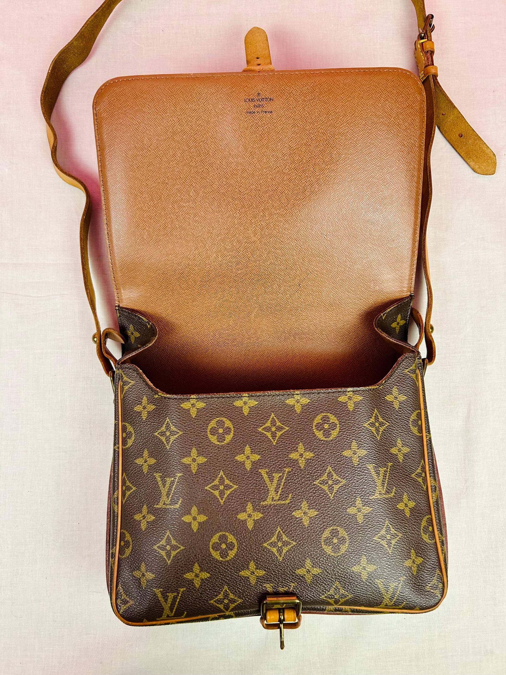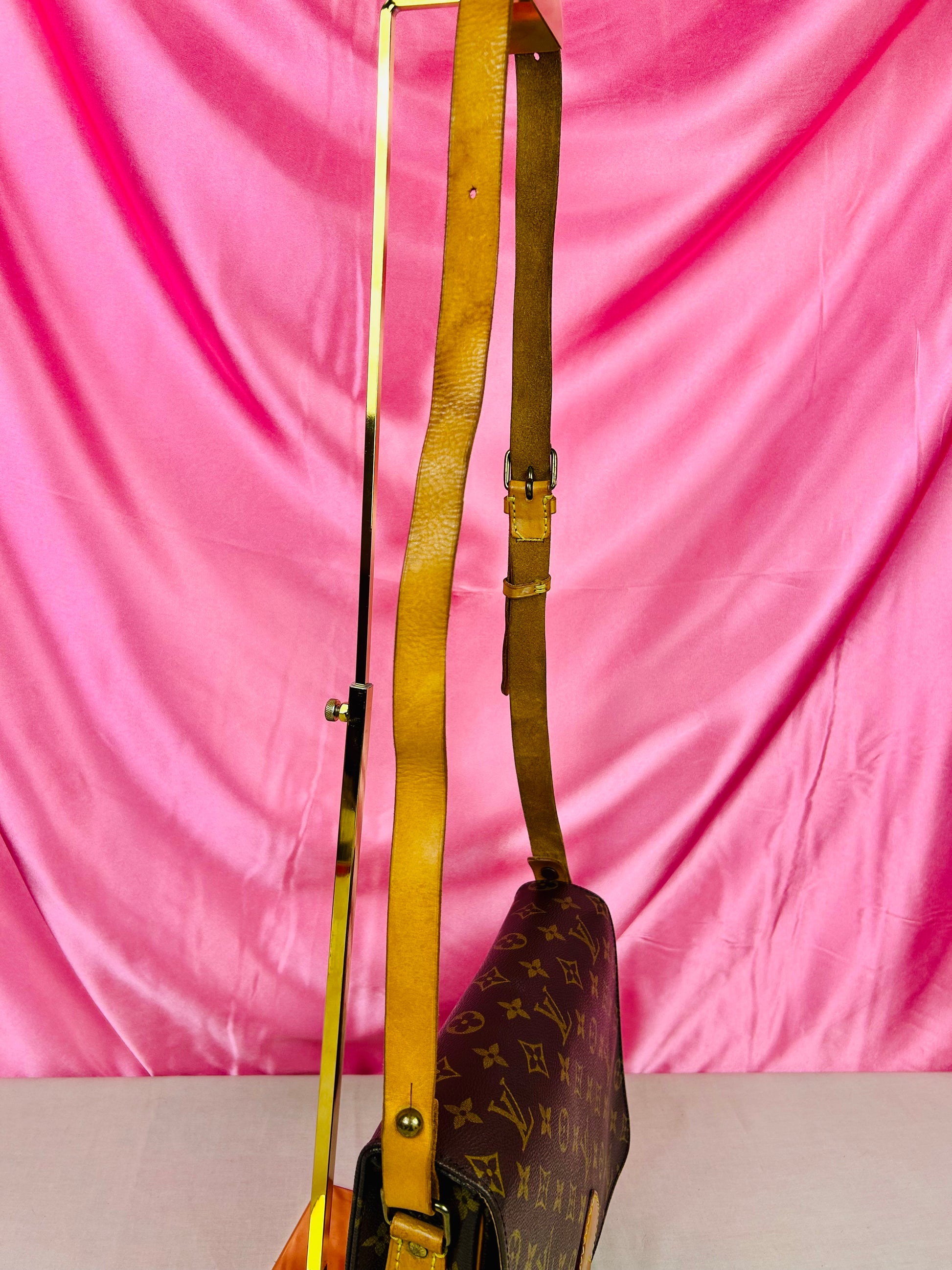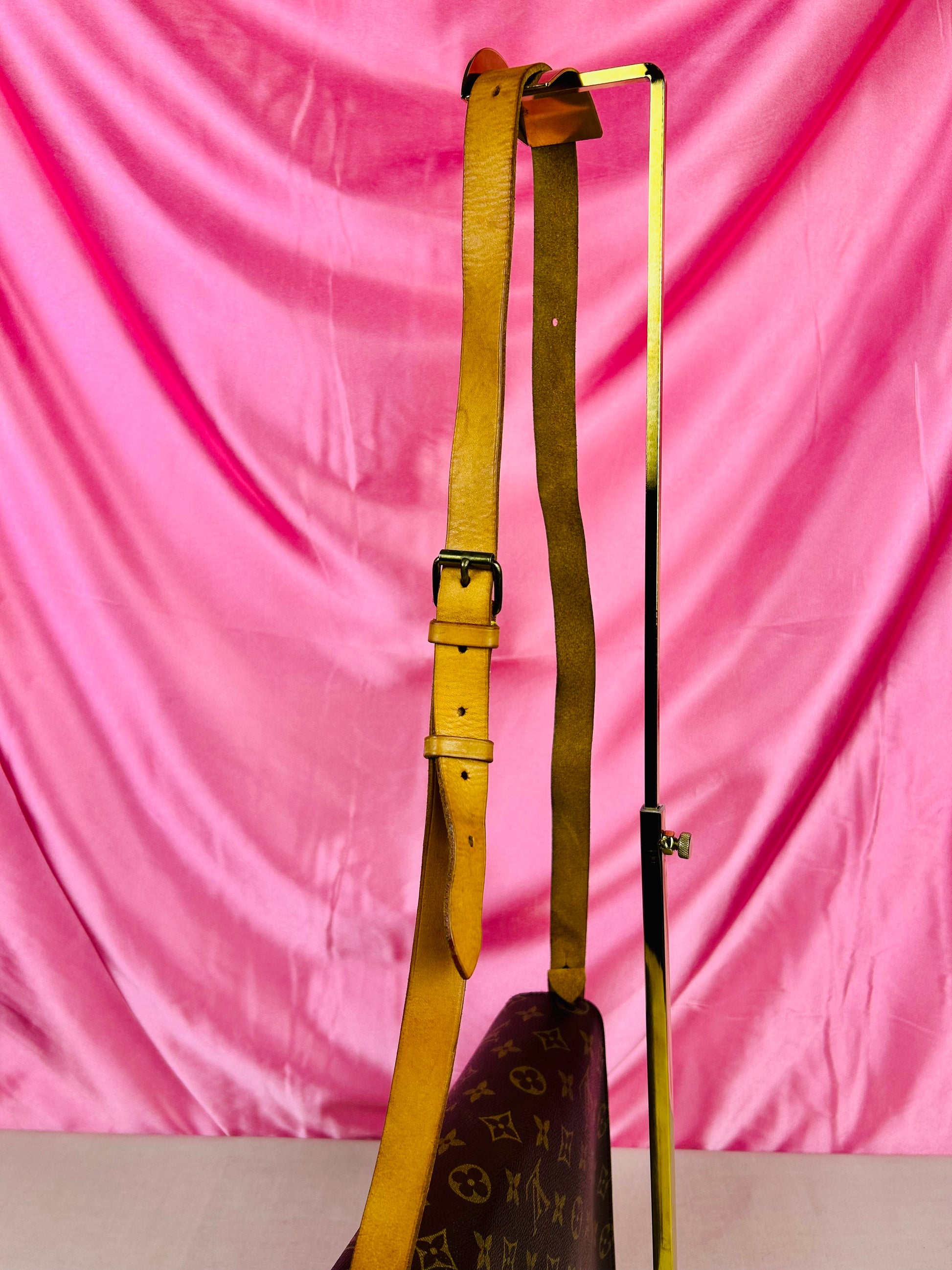 💜 Description: A spacious and classic crossbody—perfect for everyday wear with vintage charm! The canvas is in beautiful, well-maintained condition with no cracks or tears. Leather has an even patina with some watermarks noted on the bottom and on front leather clasp. The front leather clasp has some wrinkling and wear consistent with normal usage. Strap is in great condition, with some water markings and wearing on top. Chapes remain strong. Interior flap has some pen marking, and some rubbing on the side. Interior is clean, with signs of normal wear and usage.