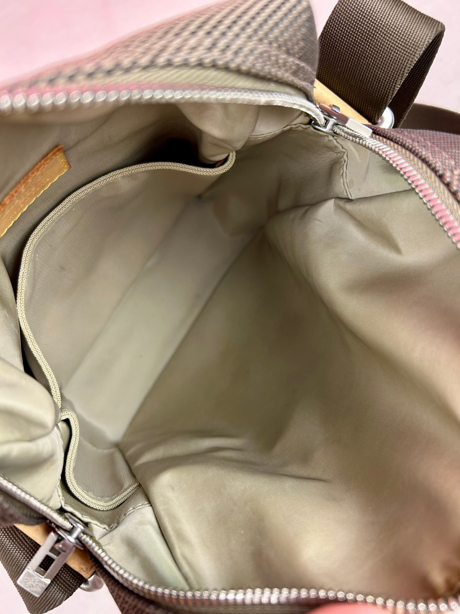 š Description: Canvas is in great condition with no tears. Small marking on the bottom left corner. Leather trim shows normal wearing throughout. Front pocket and zippered pocket are clean. Interior has a small pen marking but is otherwise clean. Zipper functions smoothly. Strap is in excellent condition.