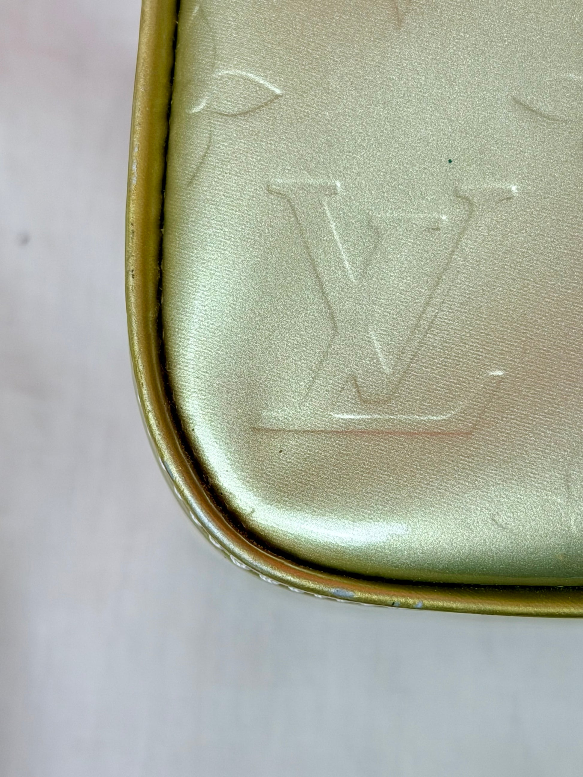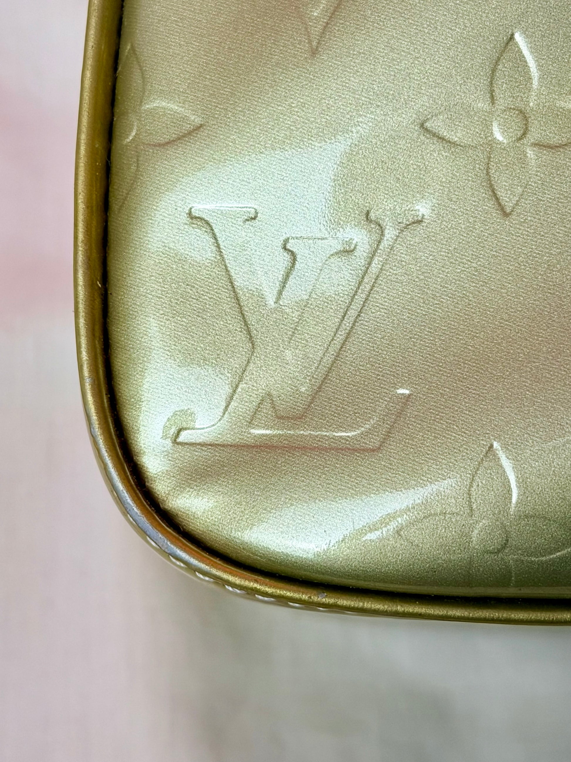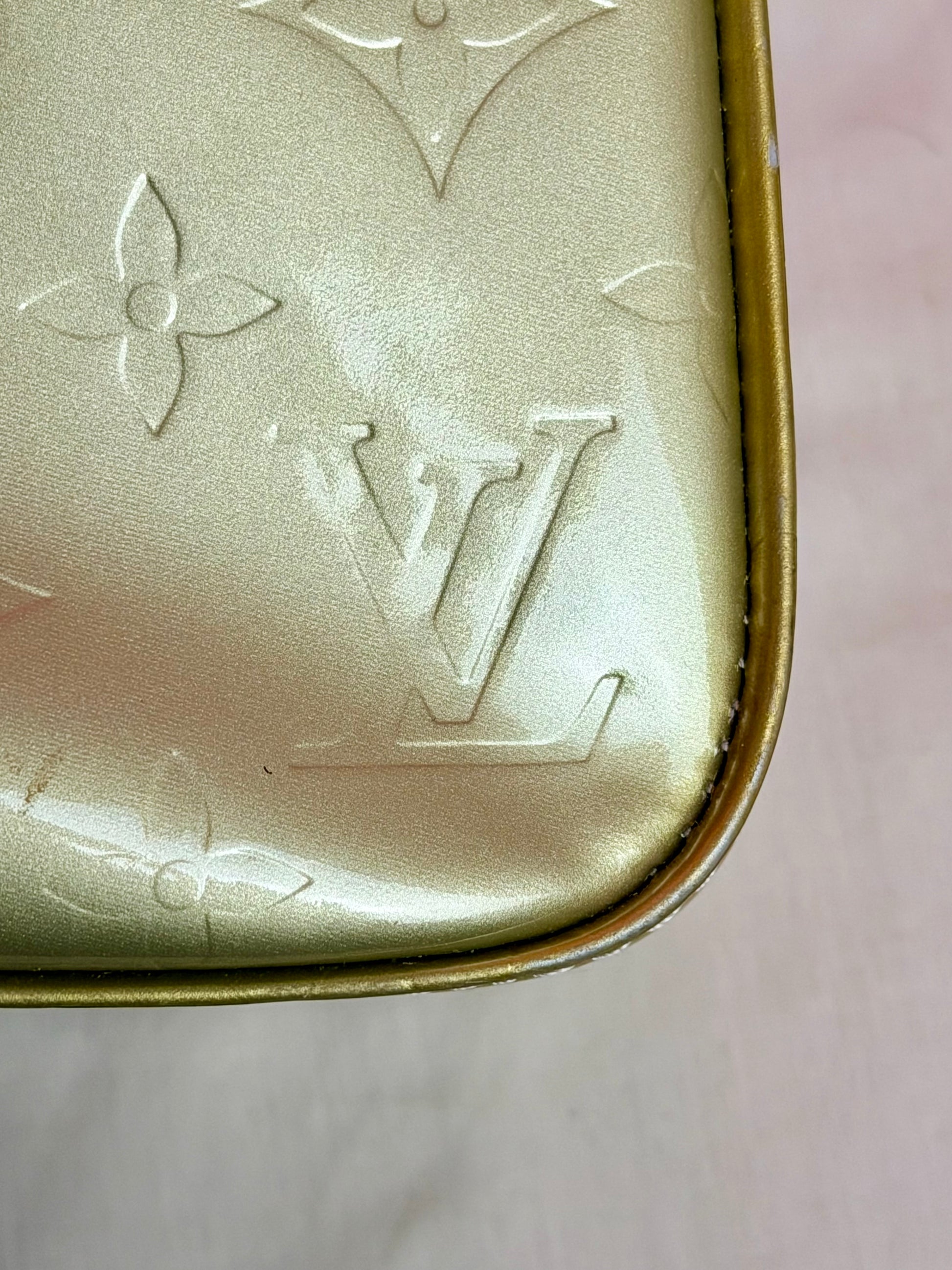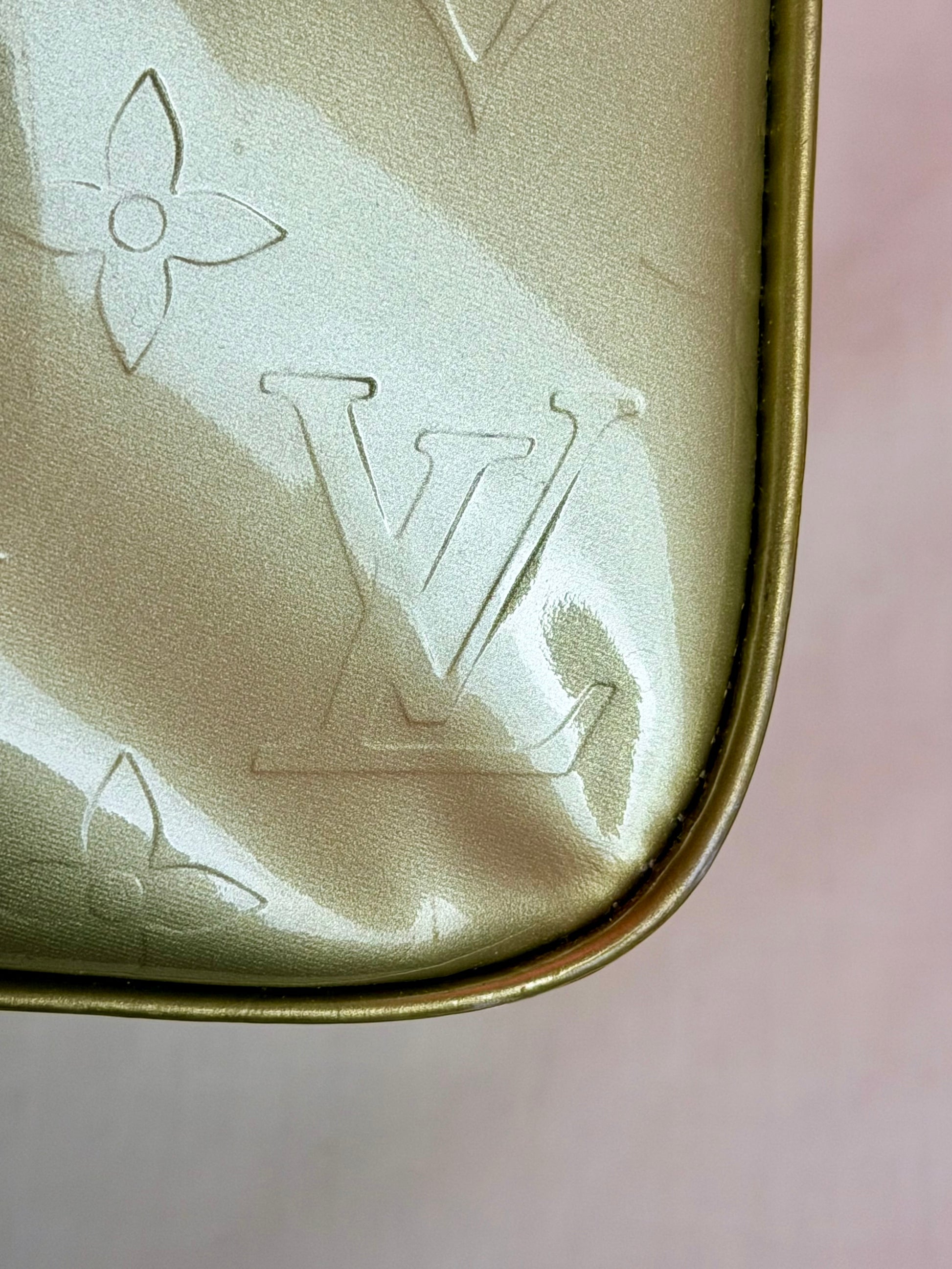 š Description: A stunning and elegant tote with a glossy finish! Canvas is in excellent condition, slight discoloration. Leather around the zipper has discoloration spots. Leather handles have some watermarks. Hardware is shiny, and the zipper pull works well. Interior is clean. A gorgeous statement piece!