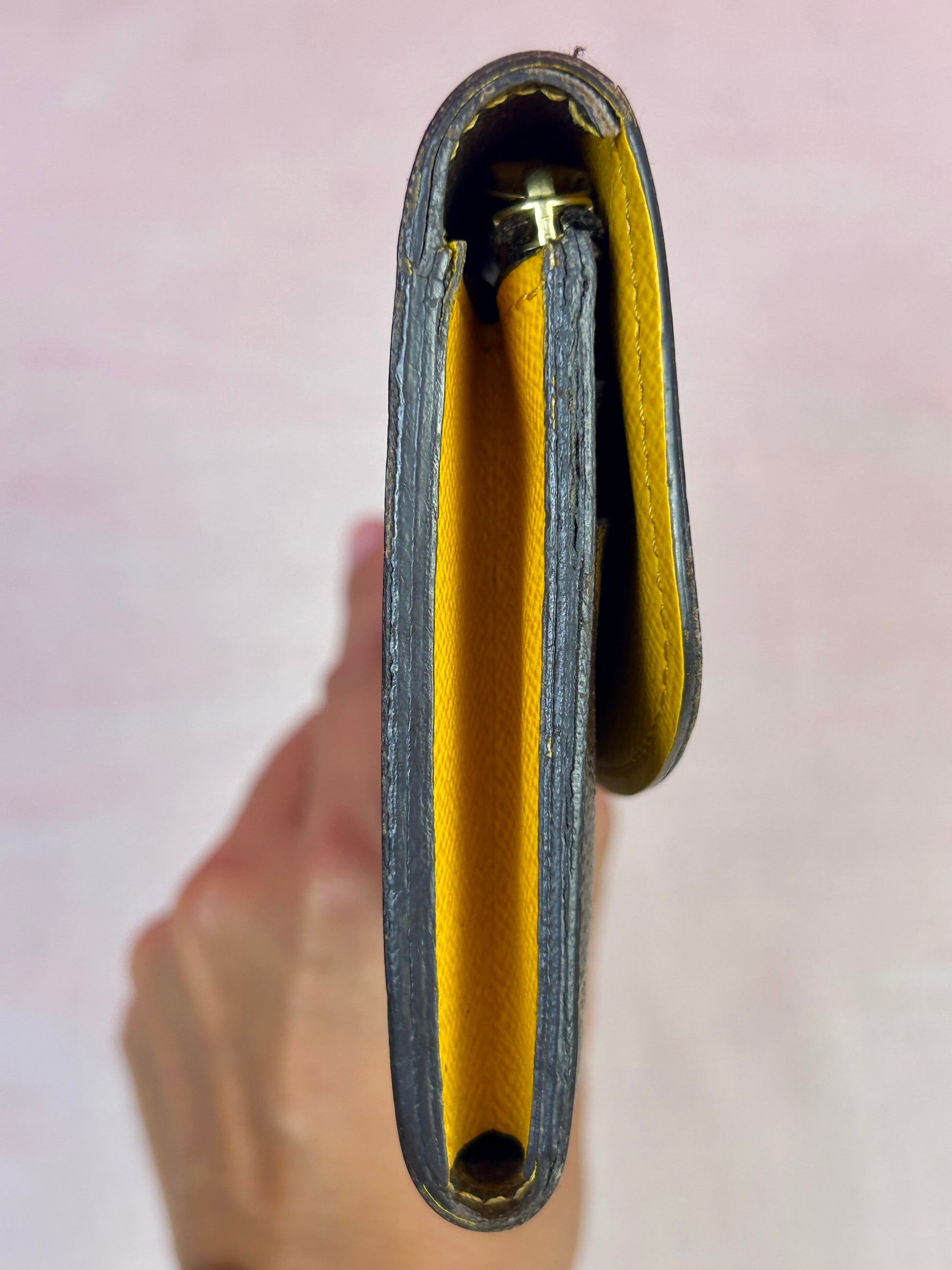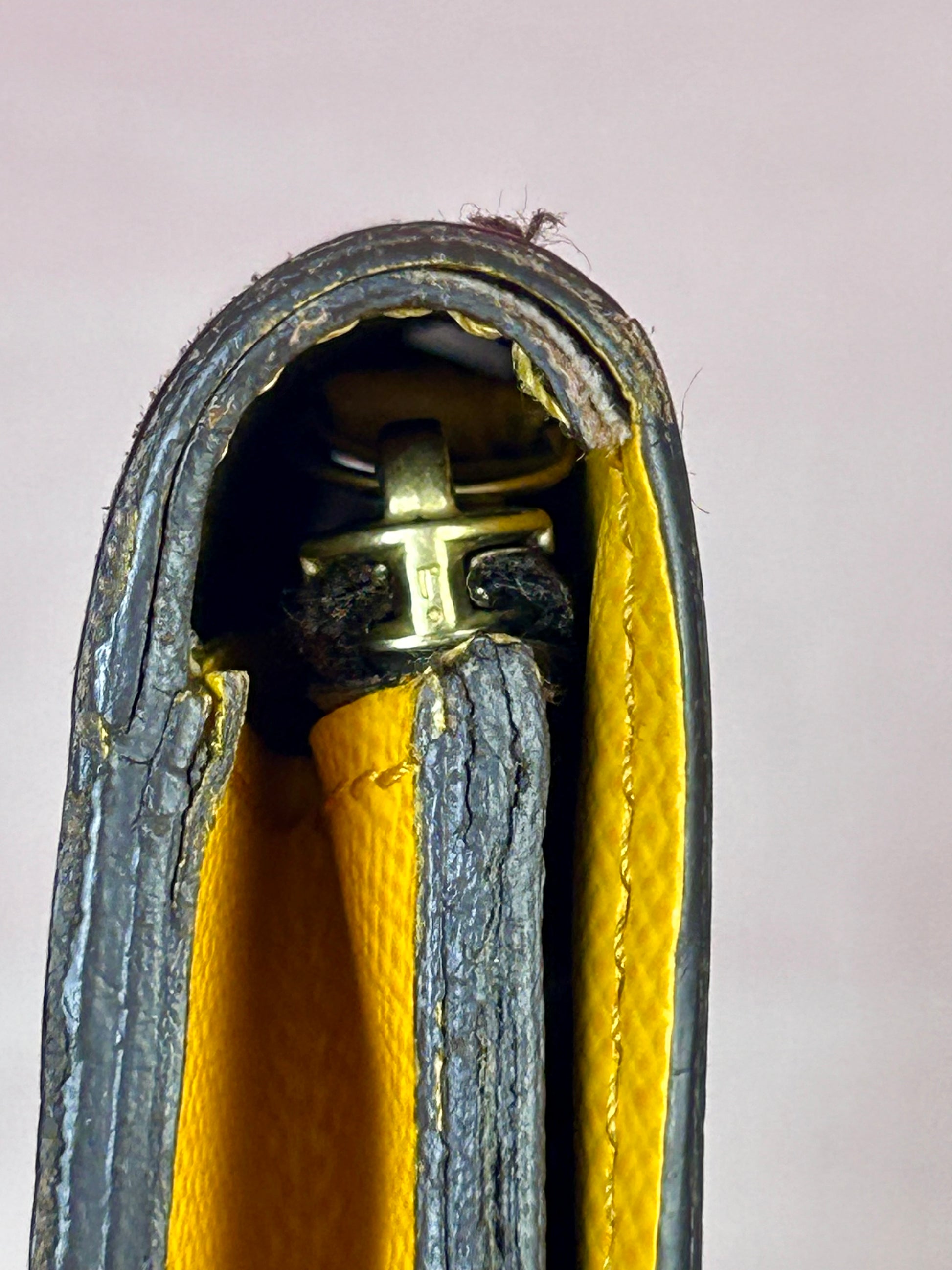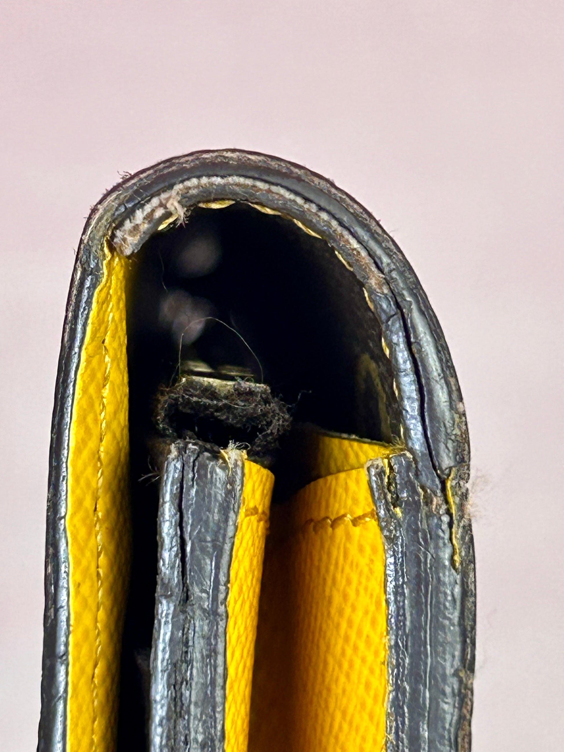š Description: Canvas is in beautiful condition with no cracks or tears. Front button shows some rubbing. Interior features 3 slot compartments, 4 card slots, and a coin pouch. Interior is clean with one loose stitch on the top left flap. Hardware remains shiny and functional.