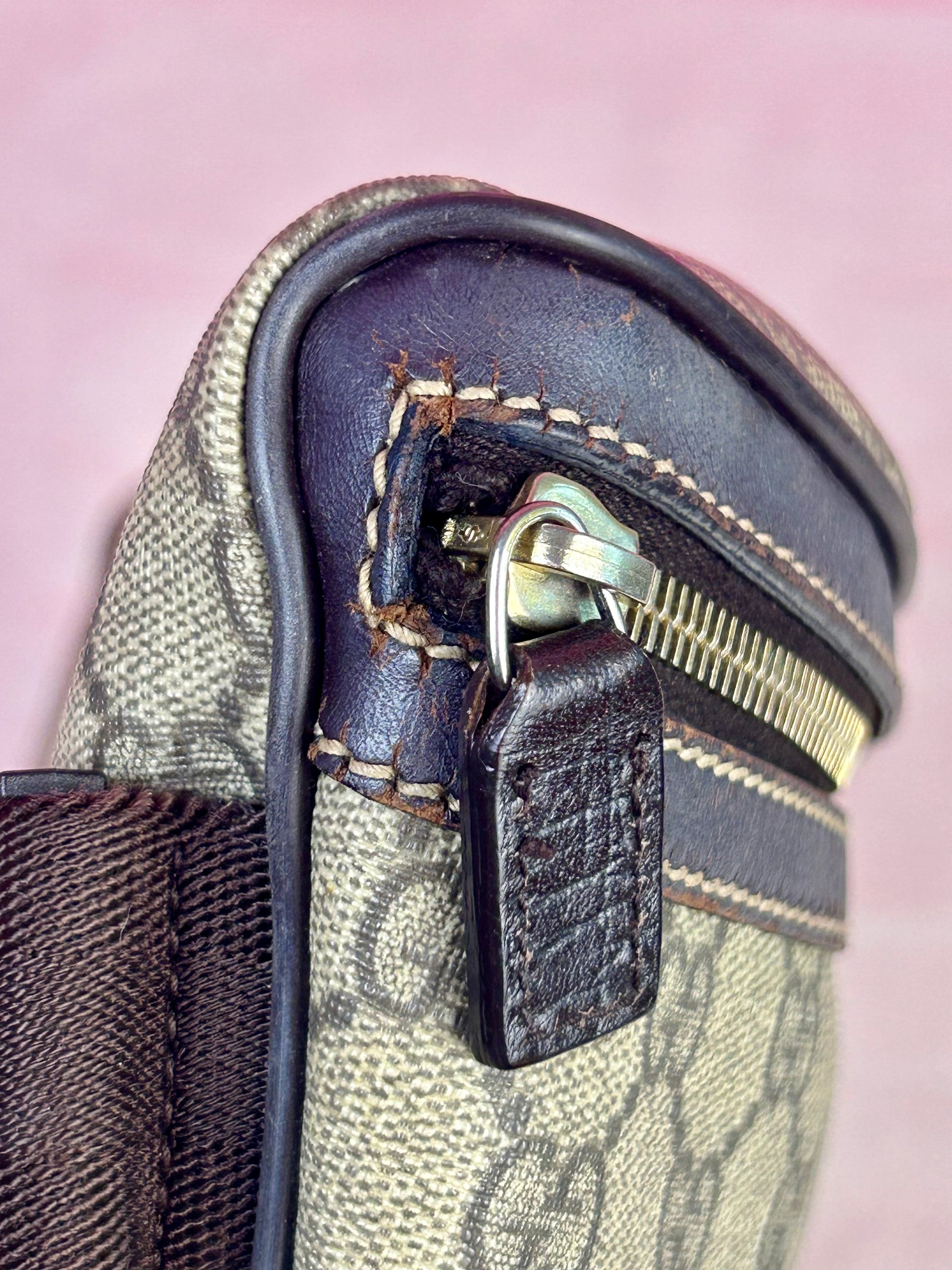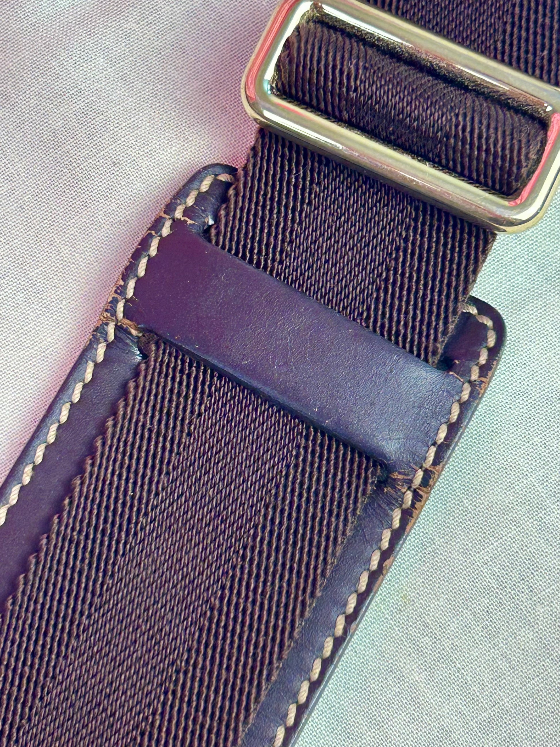 💜 Description: Canvas is in beautiful condition with no tears or cracks. Piping is in excellent shape. Zipper pulls and functions well. Strap is in great condition with only mild signs of wear, consistent with normal use. Leather around zipper shows normal wear, with small rubs and surface cracks. Hardware remains shiny and functional. Interior is clean with no stains.