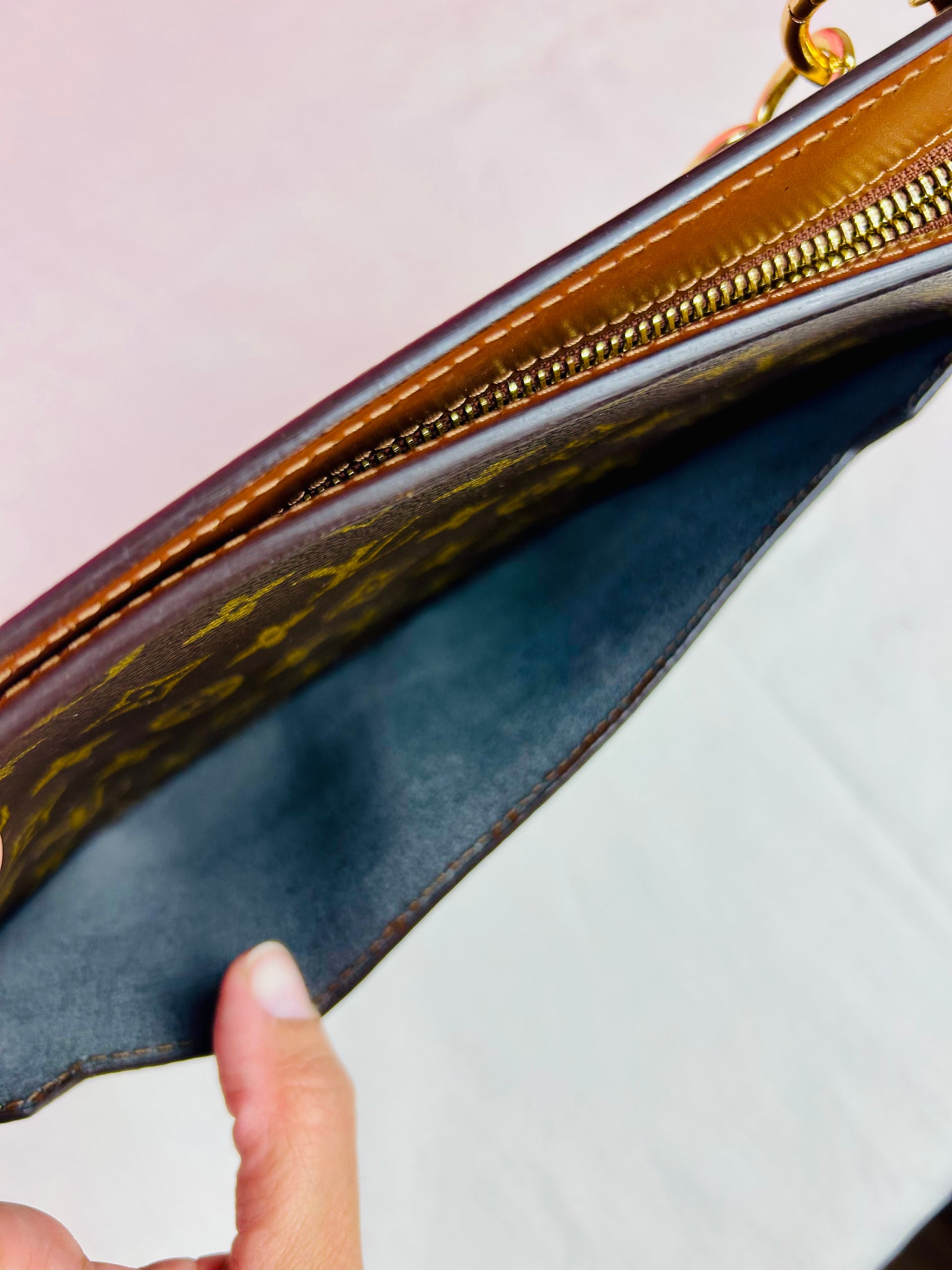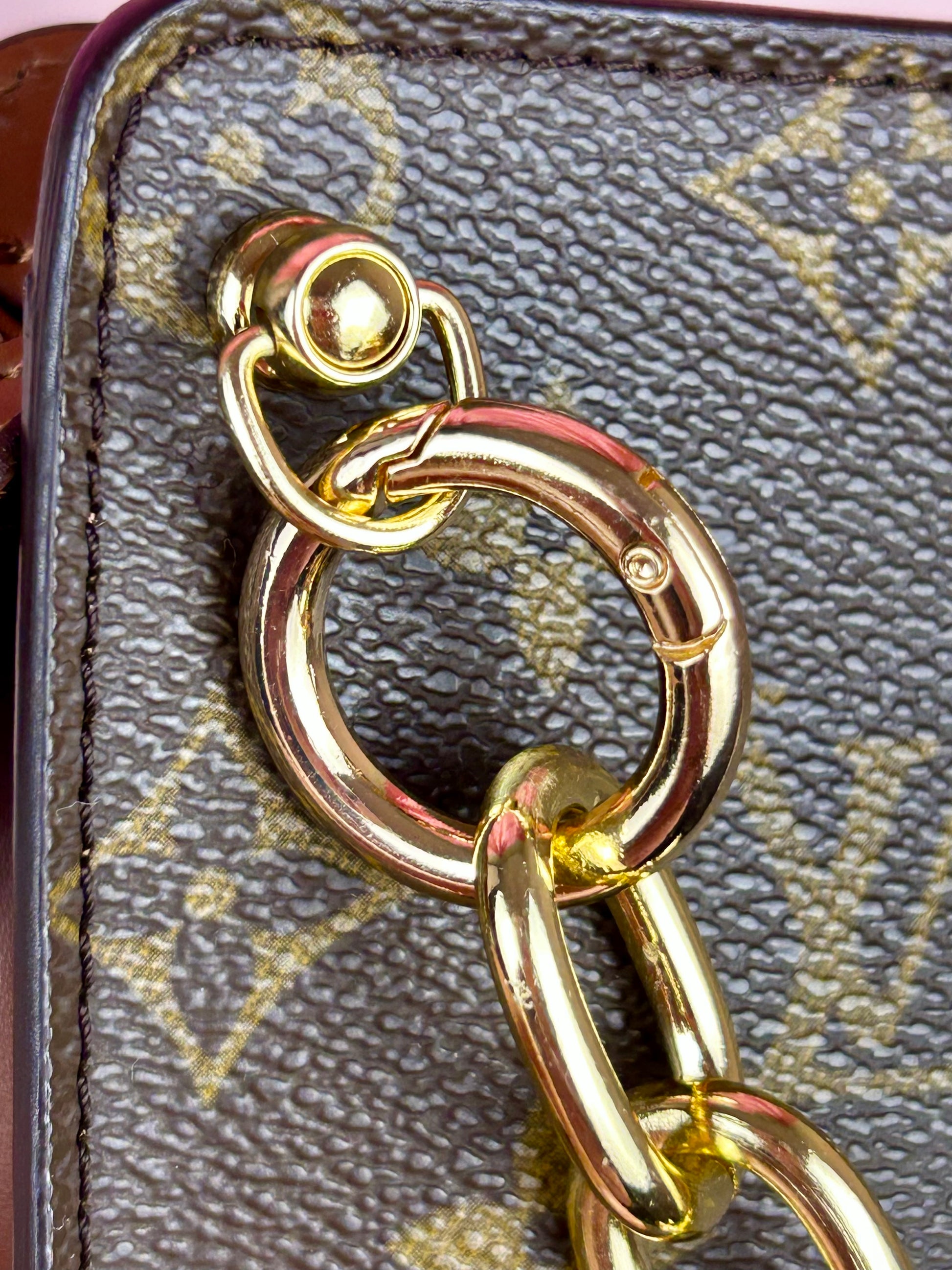 💜 Description: D-rings have been added with a generic chain to convert to a shoulder bag!! This sleek and versatile Homme Clutch is in great condition overall. Front inside of pocket has been cleaned and has no stickiness! The monogram canvas is in beautiful condition, and the hardware is shiny. No major flaws on the glazing or sides. Zipper pulls well. A perfect blend of style and functionality!