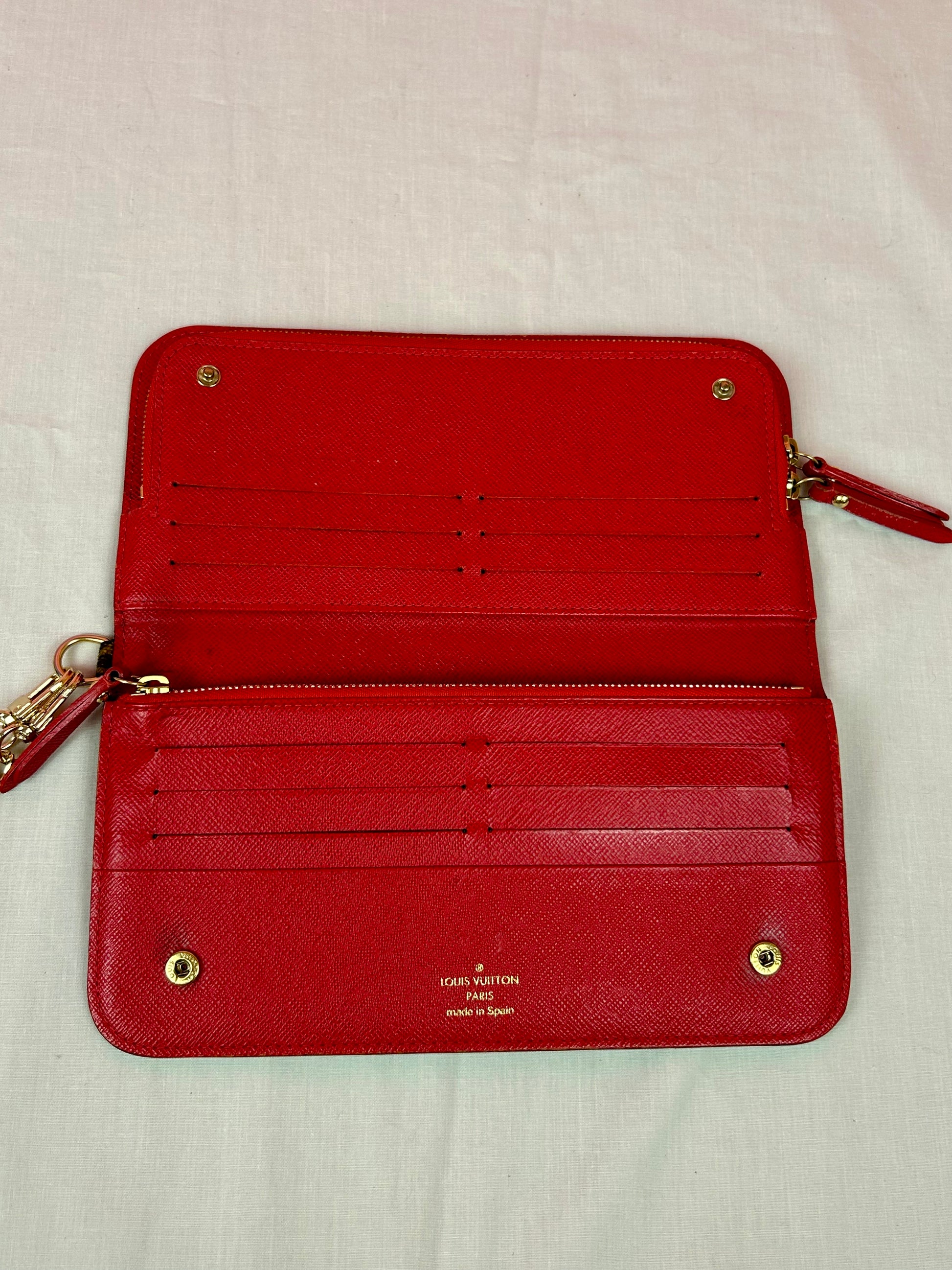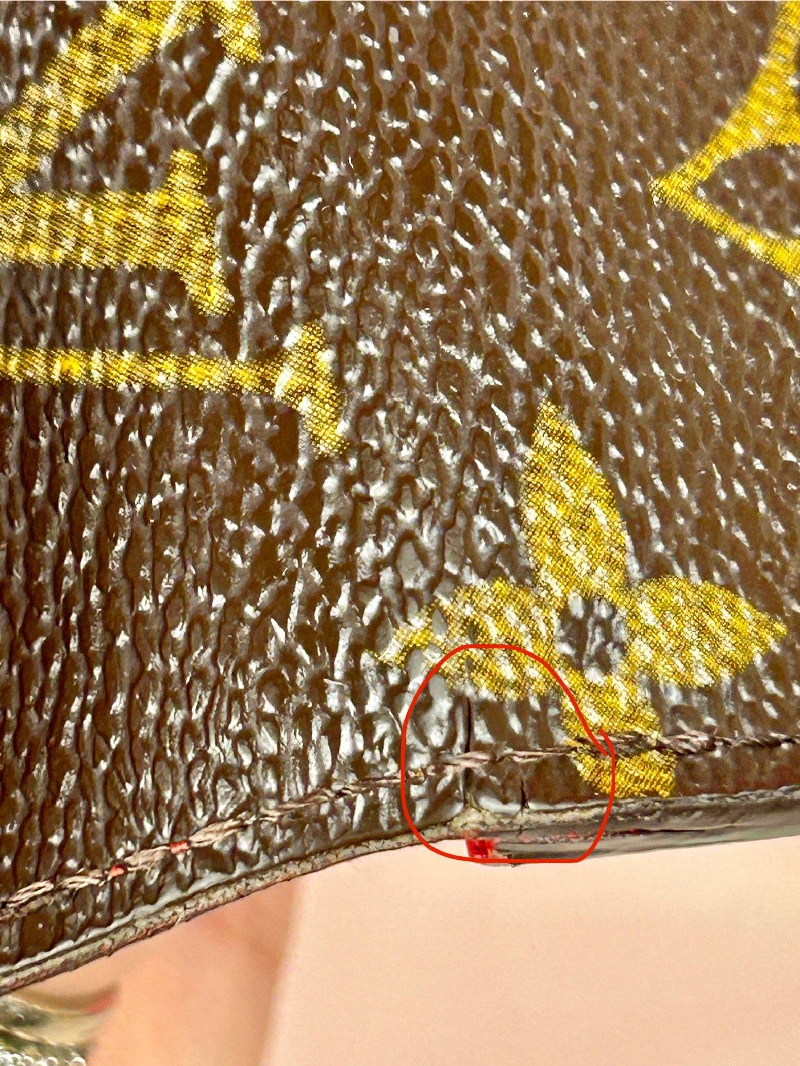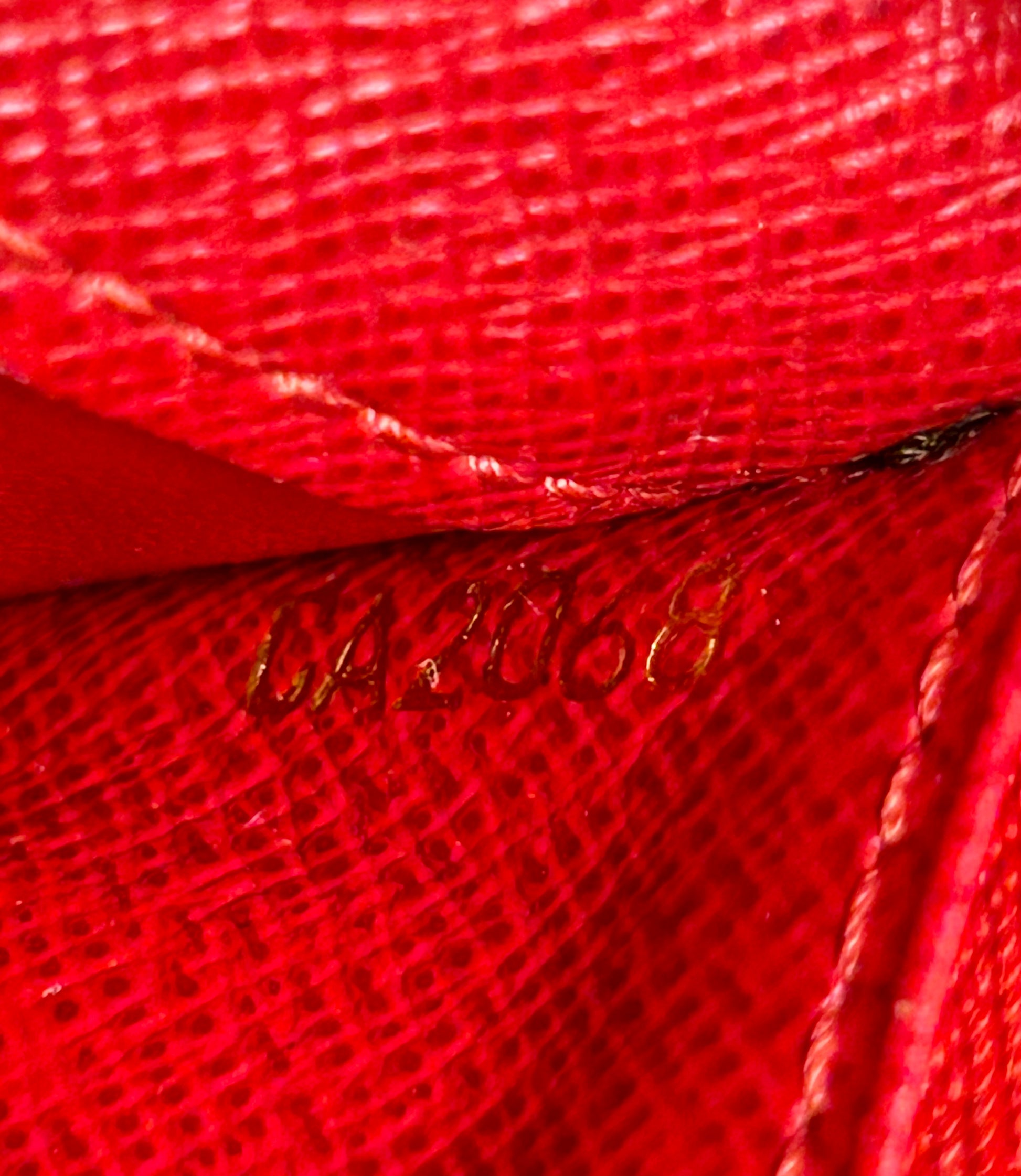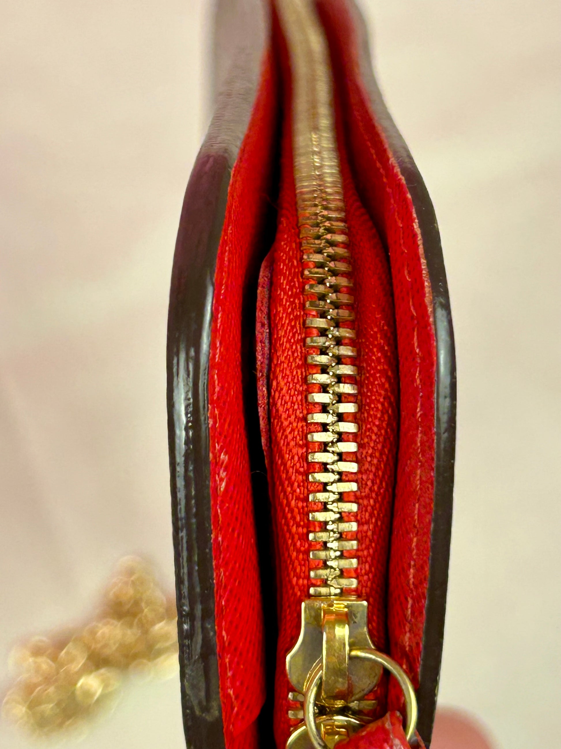 š Description: Canvas is bright and vibrant, small hairline cracks on the bottom corners by the folds. Some indention on the canvas in the bottom corners. Glazing is intact. Interior is clean, with some small rubbings. Interior features 12 card slots, 2 slip compartments, and two zippered coin pouches. Zippers work smoothly and hardware is shiny. can be used as a wristlet with generic chain.Ā