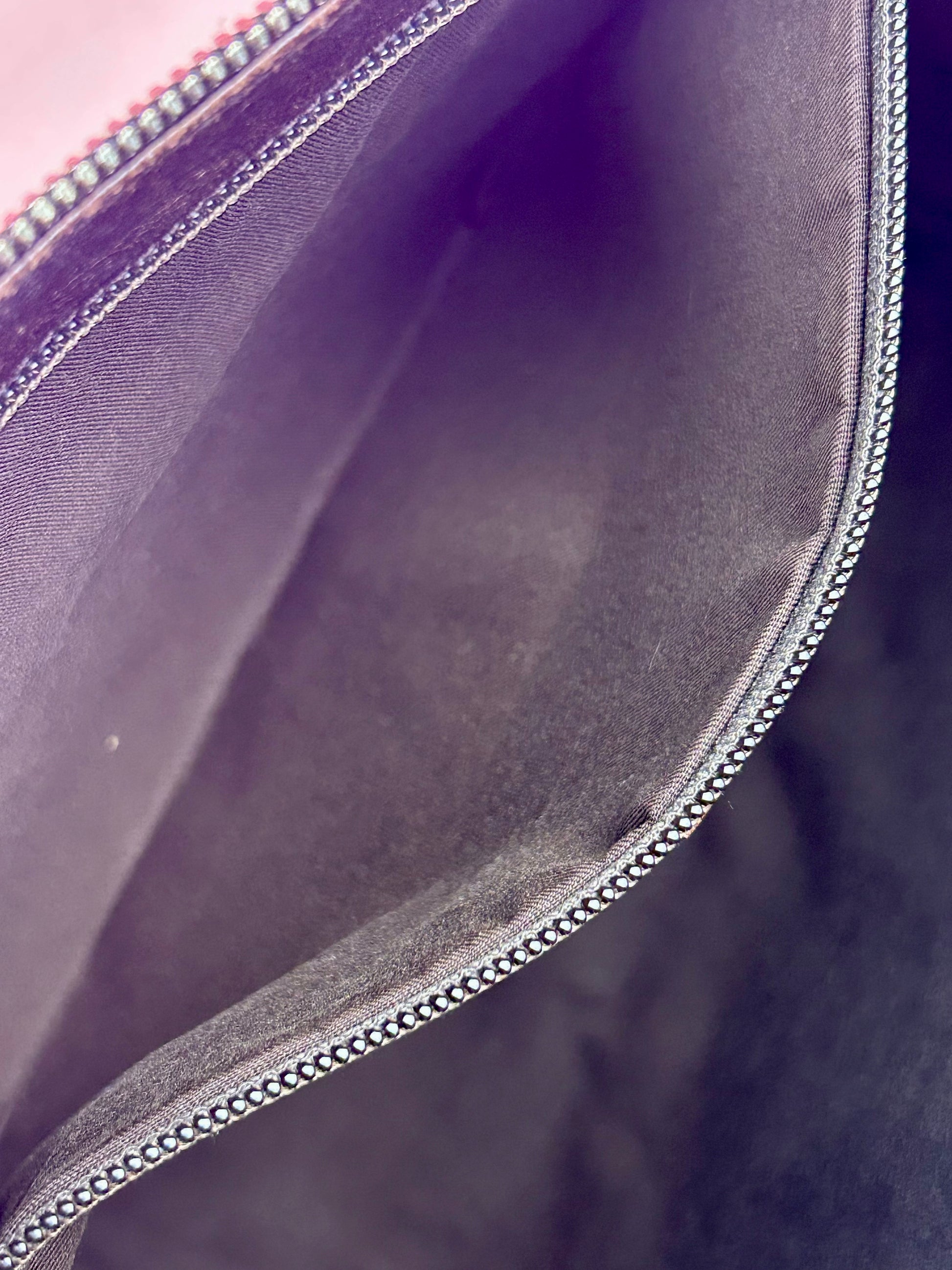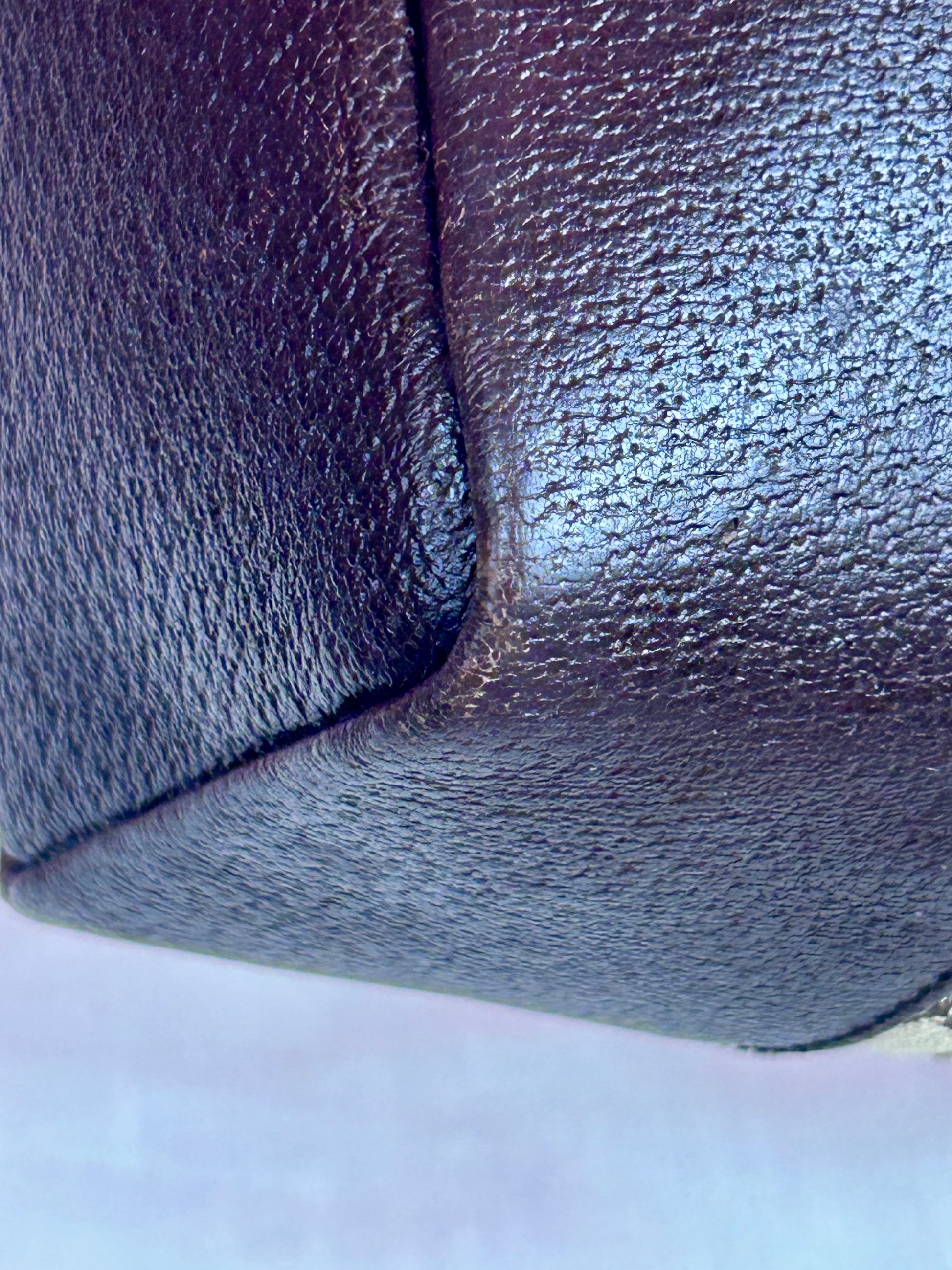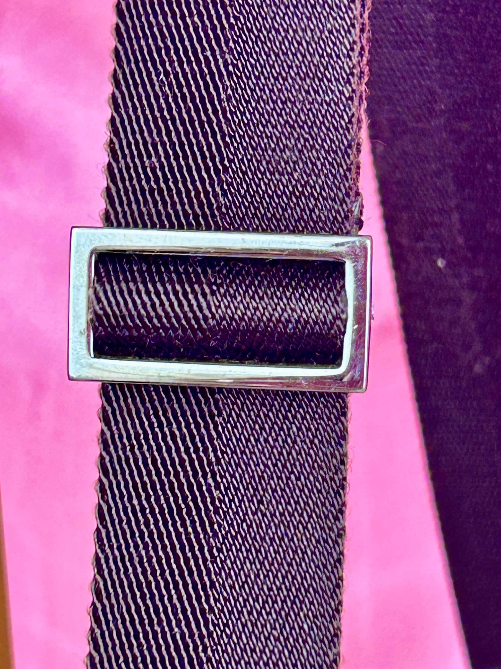 💜 Description: Nylon canvas is in beautiful condition, light wrinkle on the sides of canvas consistent with normal usage, no tears or cracks. Bottom leather shows some wearing on the corners. Interior is very clean, and the interior pocket is also clean. Zippers pull smoothly and hardware is shiny. Chapes are strong and intact. Strap is in excellent condition with light wear consistent with normal usage. Can be worn as a shoulder bag or a crossbody.