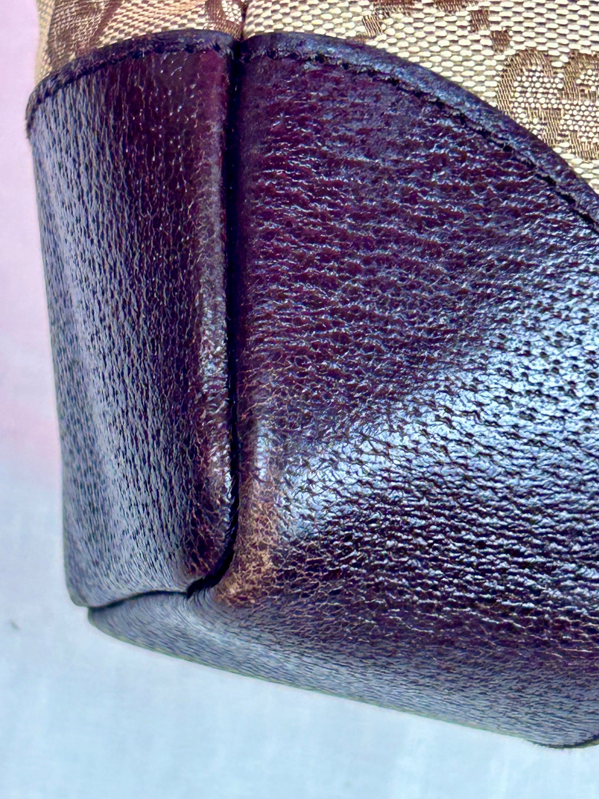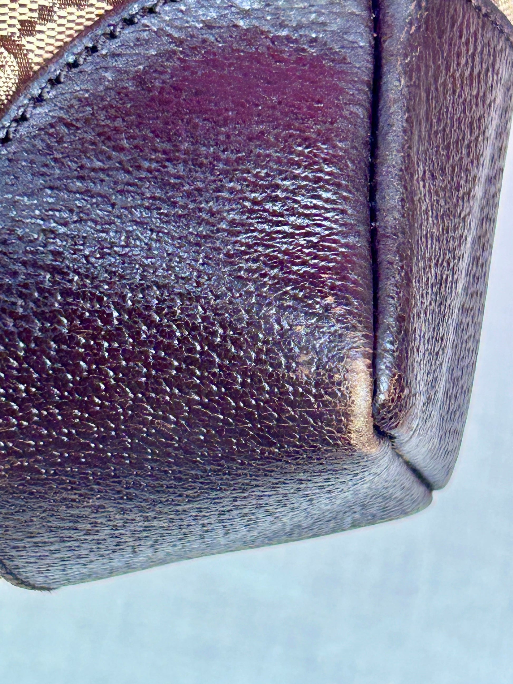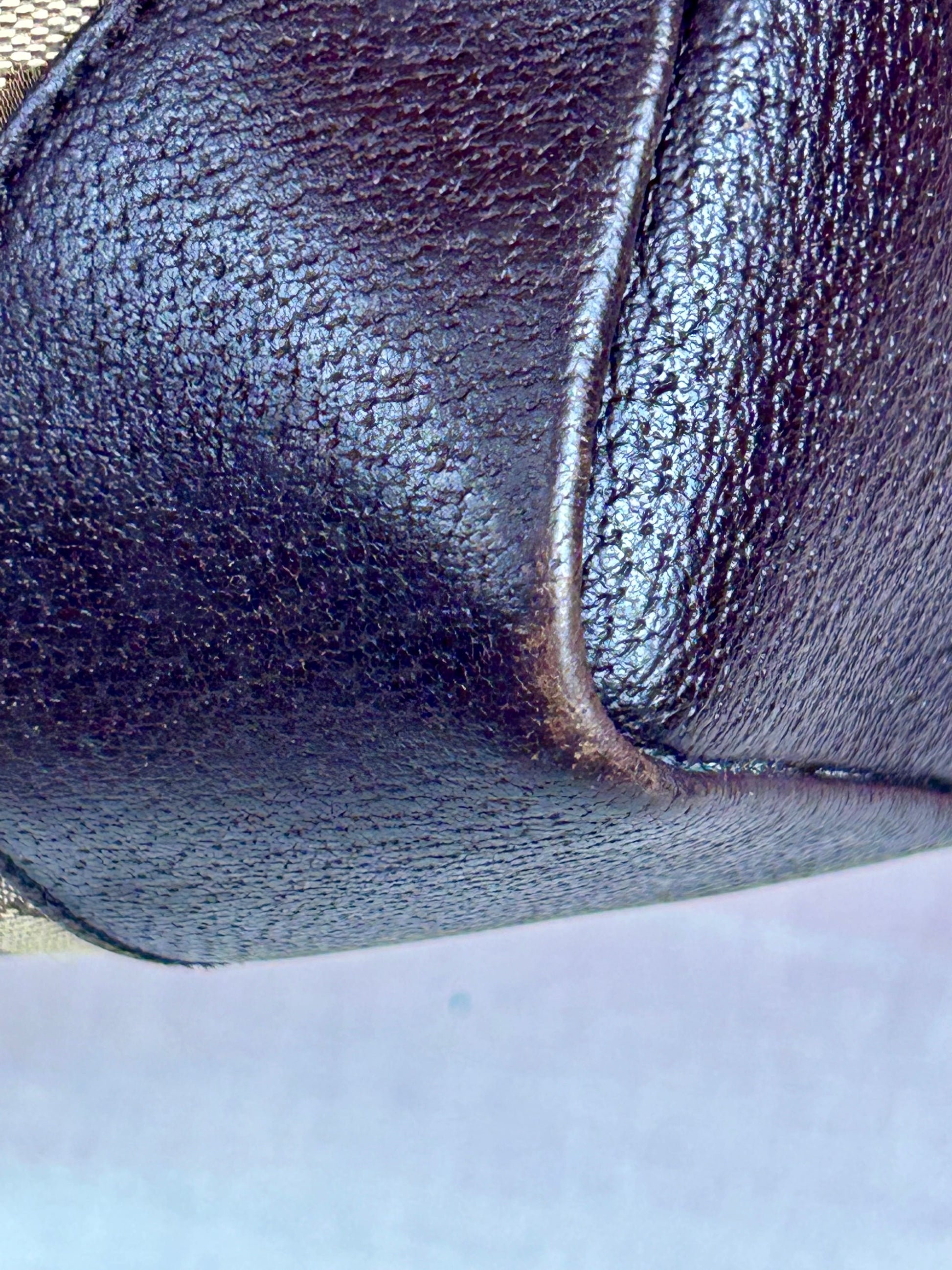 💜 Description: Nylon canvas is in beautiful condition, light wrinkle on the sides of canvas consistent with normal usage, no tears or cracks. Bottom leather shows some wearing on the corners. Interior is very clean, and the interior pocket is also clean. Zippers pull smoothly and hardware is shiny. Chapes are strong and intact. Strap is in excellent condition with light wear consistent with normal usage. Can be worn as a shoulder bag or a crossbody.