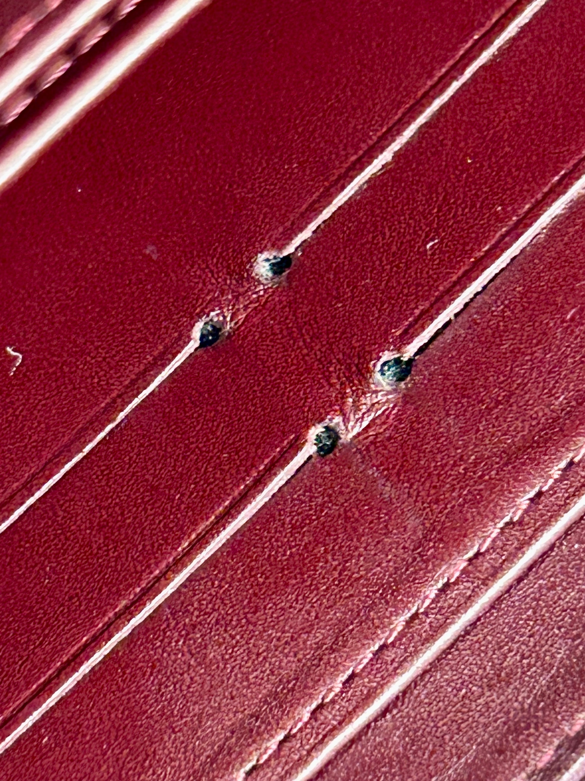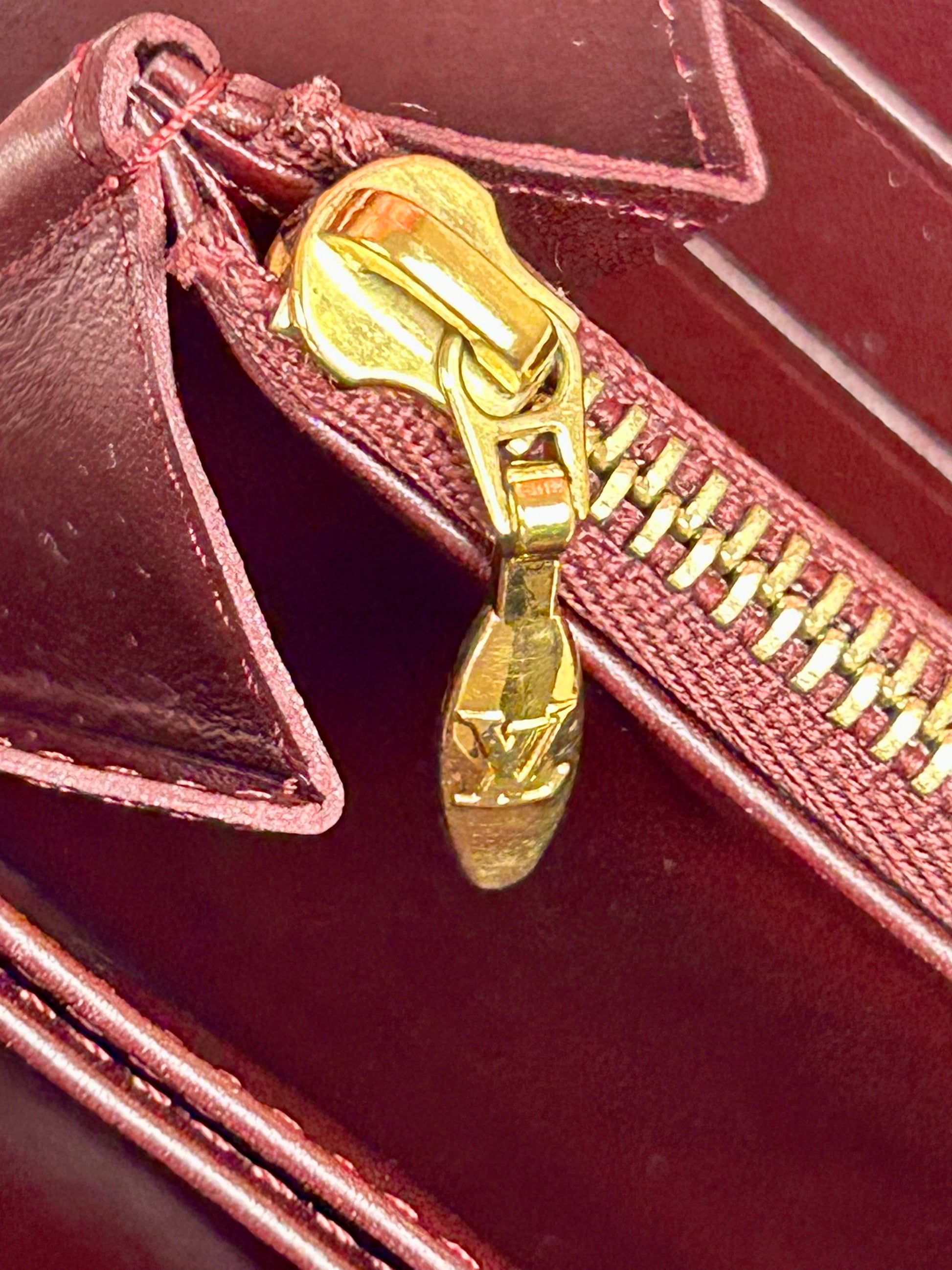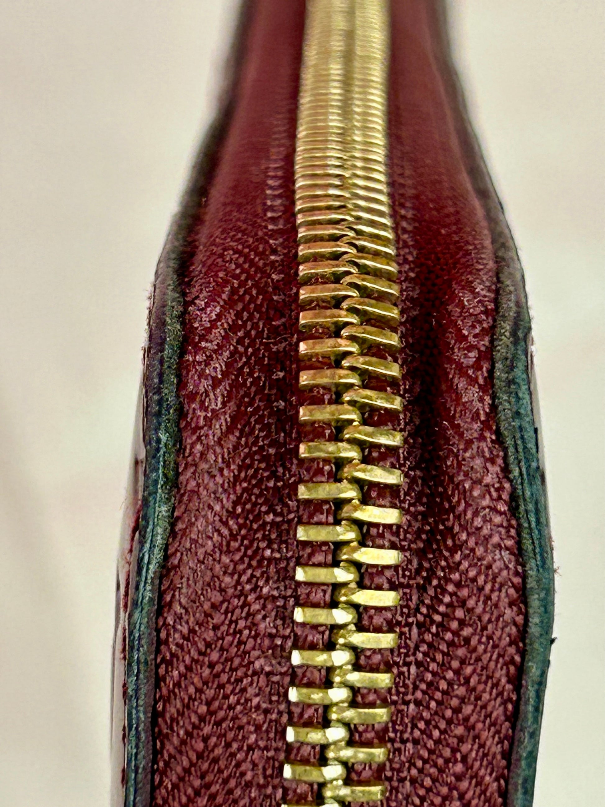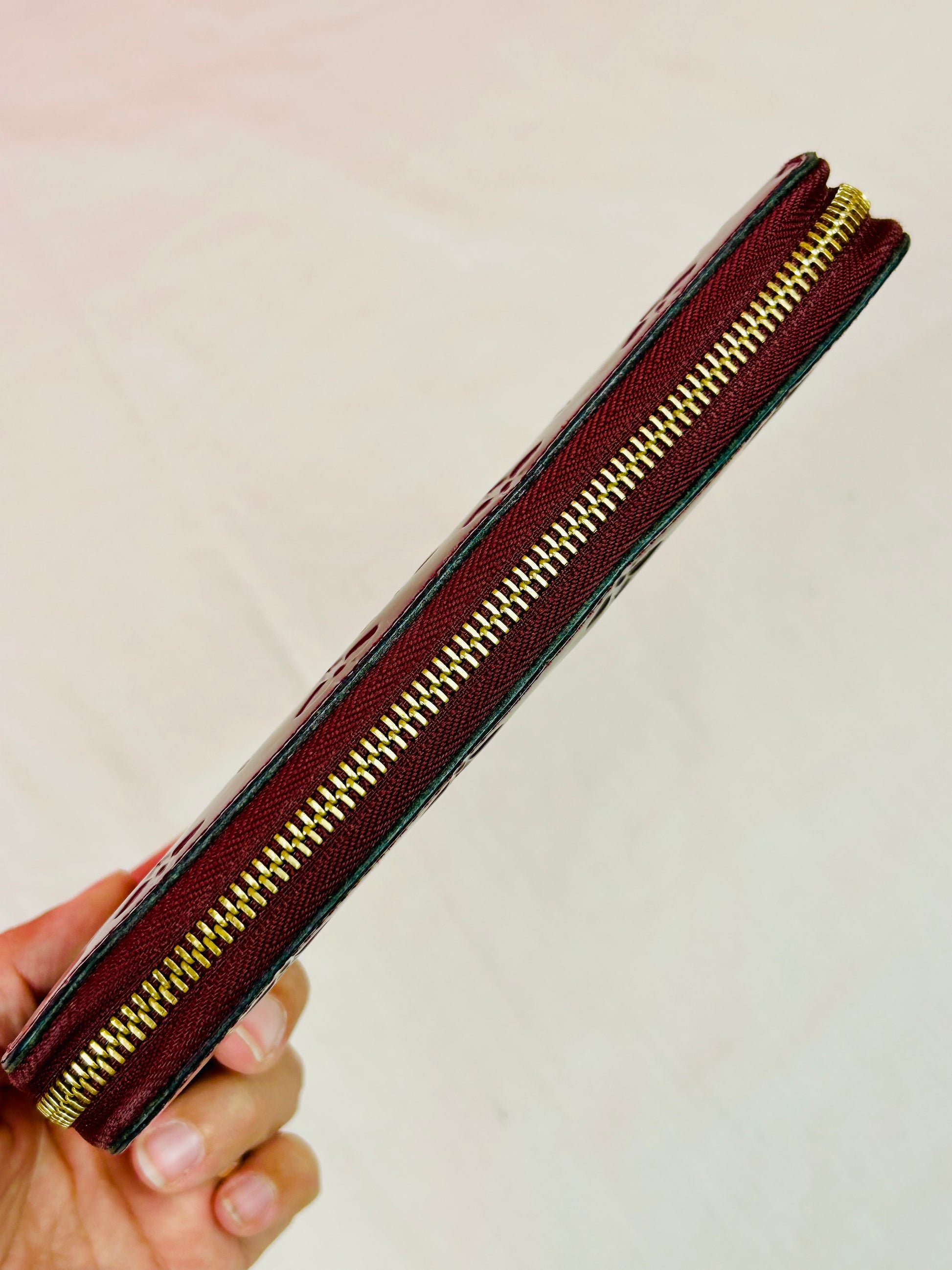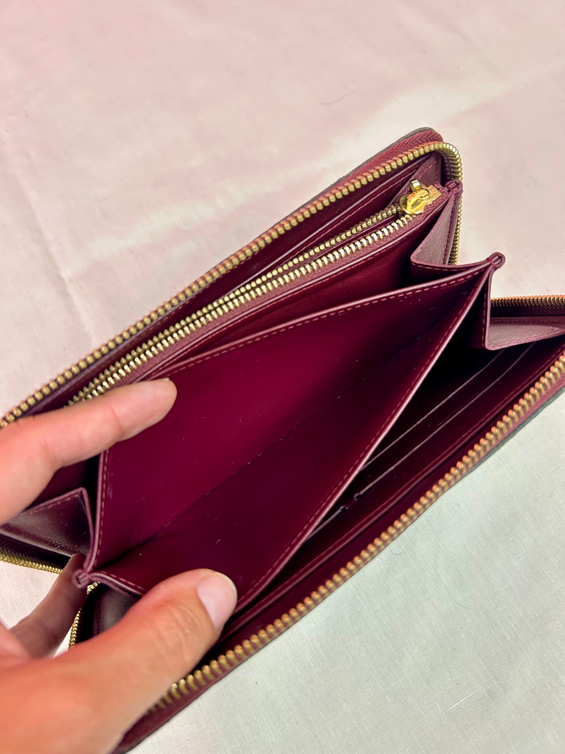 š Description: The purple/red colored Vernis leather is in beautiful condition, no staining. Some rubbings on the bottom corners. Glazing is intact. Interior is very clean, some peeling on bottom portion of the zippered pouch. Zipper and puller are gold and runs smoothly. Interior is clean with no stains or peeling. Inside has 3 compartments, 1 coin compartment, 1 cash slot, and 8 CC slots. A stylish and functional wallet, perfect for everyday use!