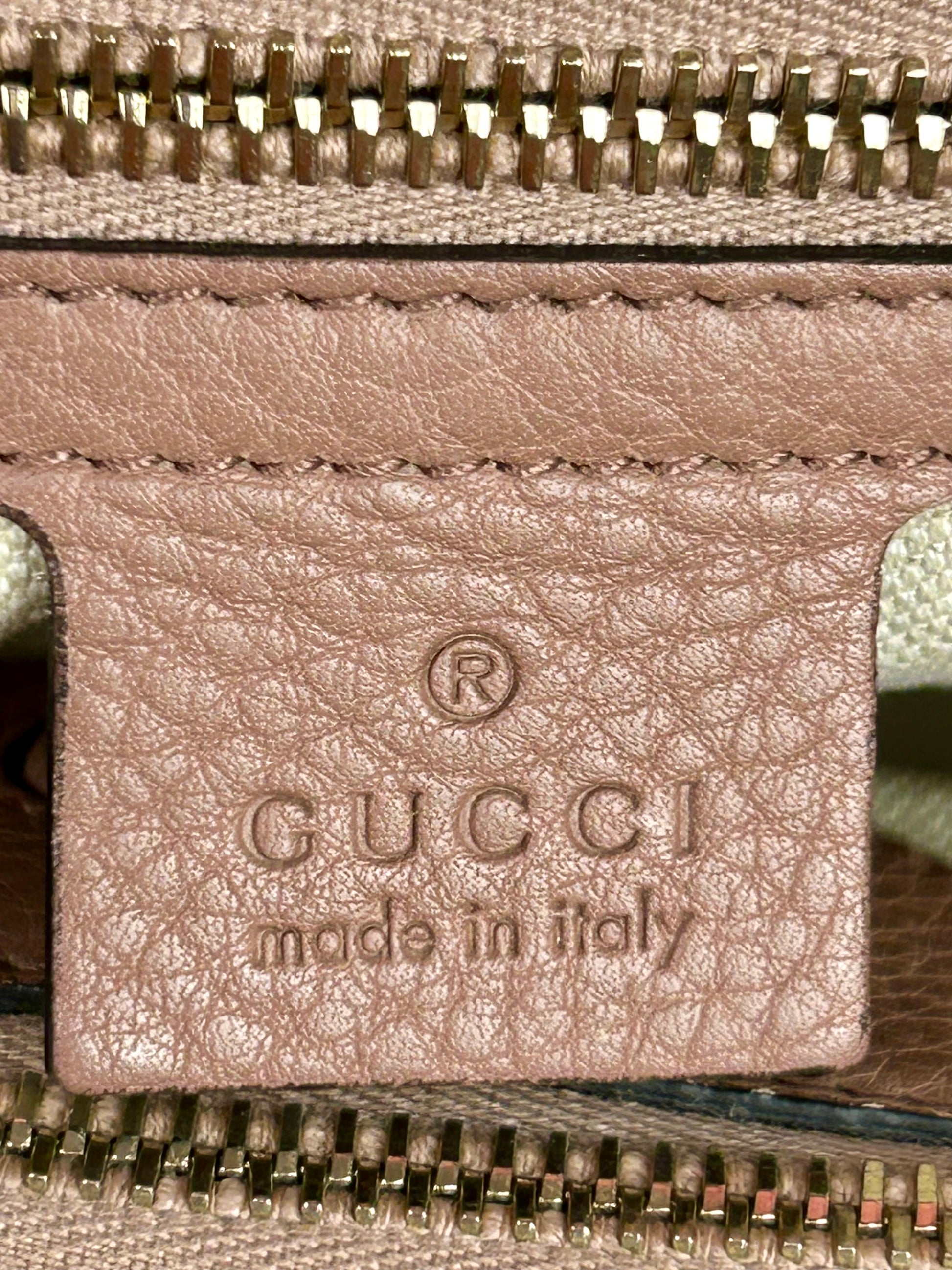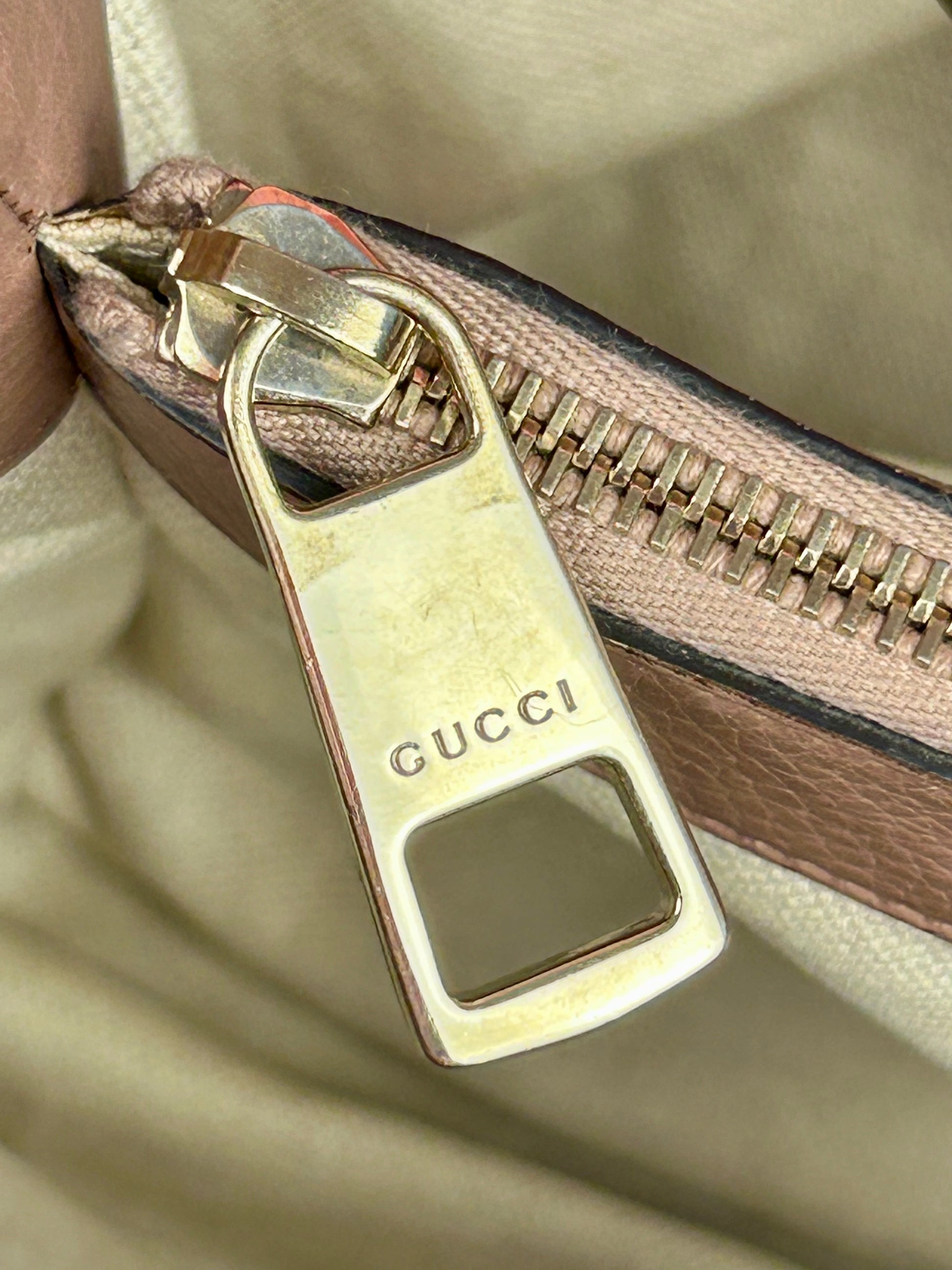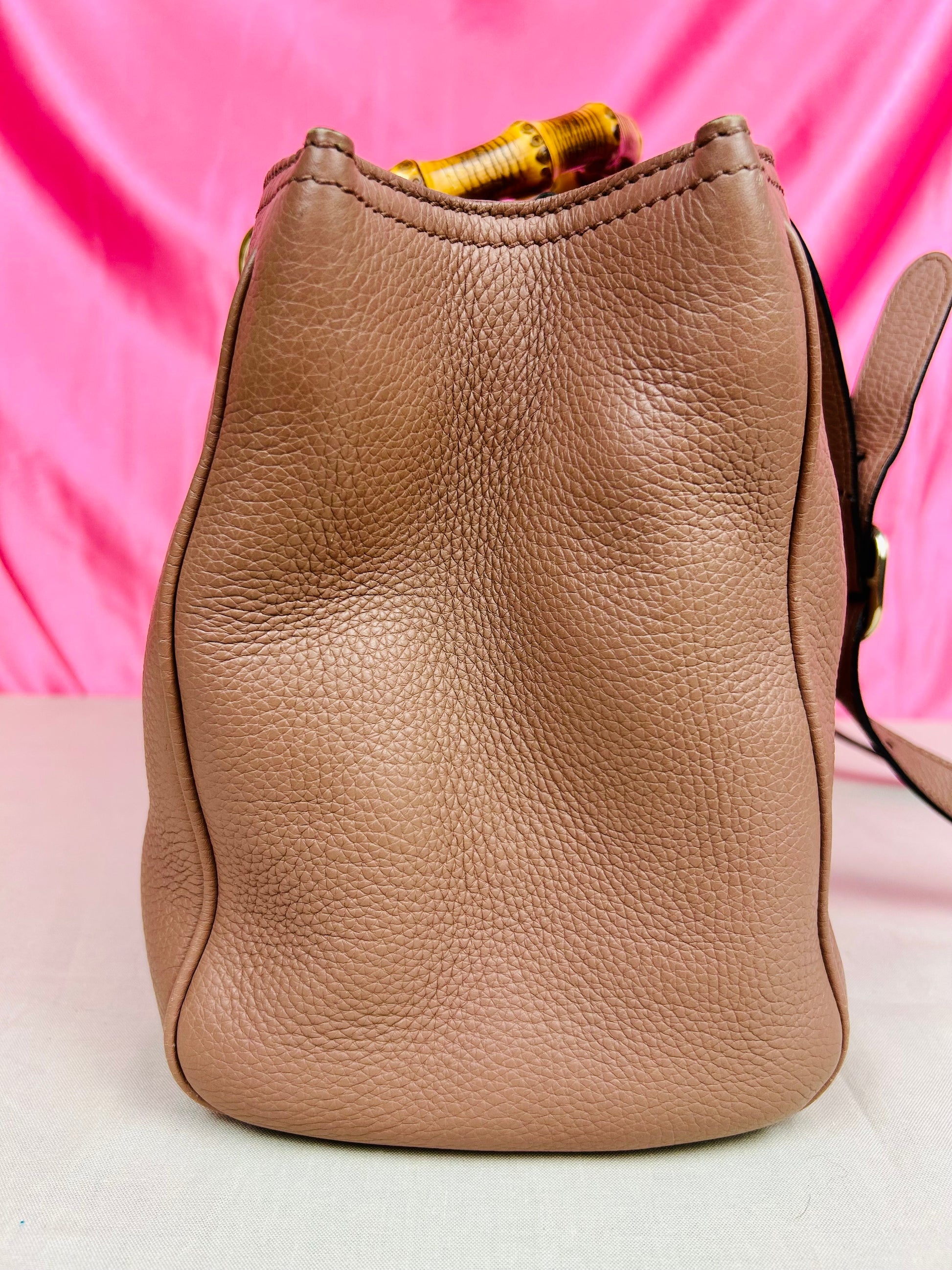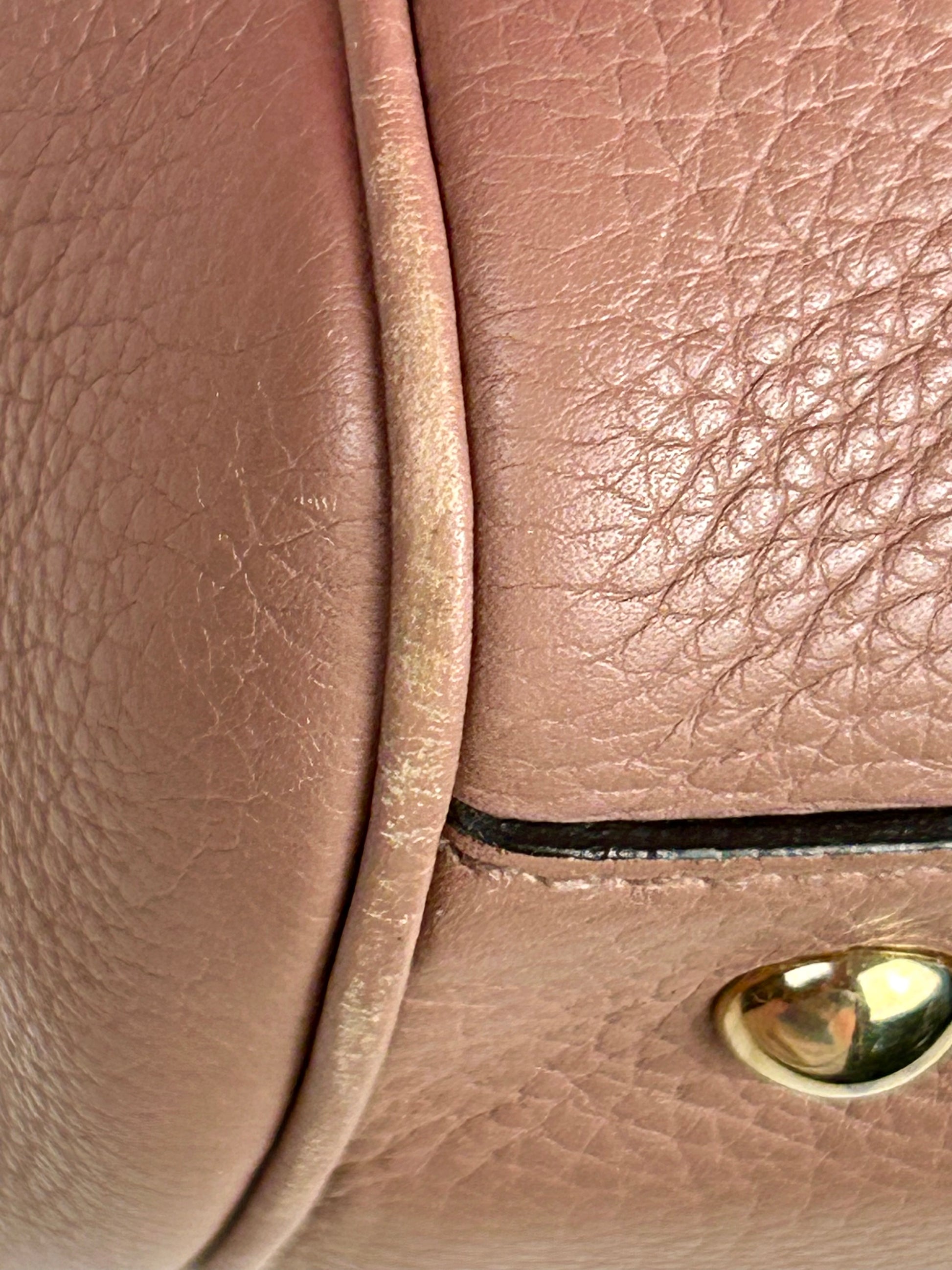 š Description: Mauve pebbled leather is in beautiful condition with no tears or cracks. There are small indentations on the front and back where the handles rest. Bottom piping shows wear consistent with normal use but no exposures. Leather strap is in great condition. The interior features two clean, separated compartments. Zippered pocket, center zippered compartment, and pouch pocket are all clean. Hardware is shiny, zippers pull smoothly, and the magnetic clasp functions well.