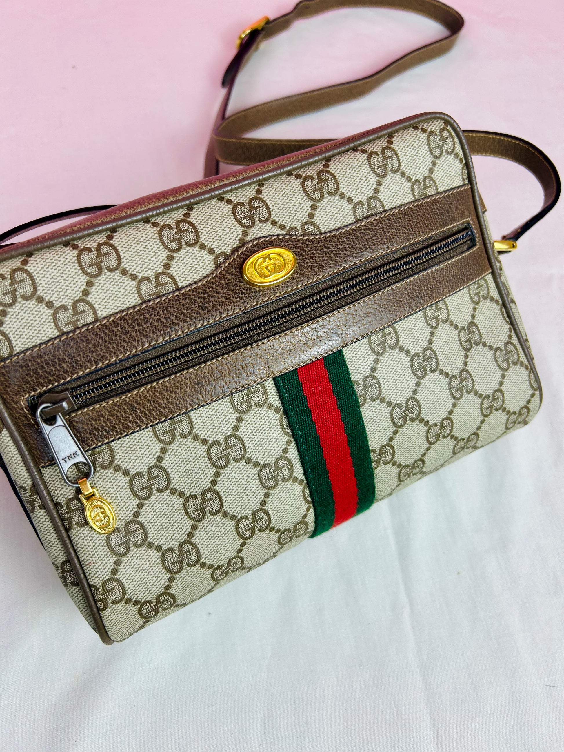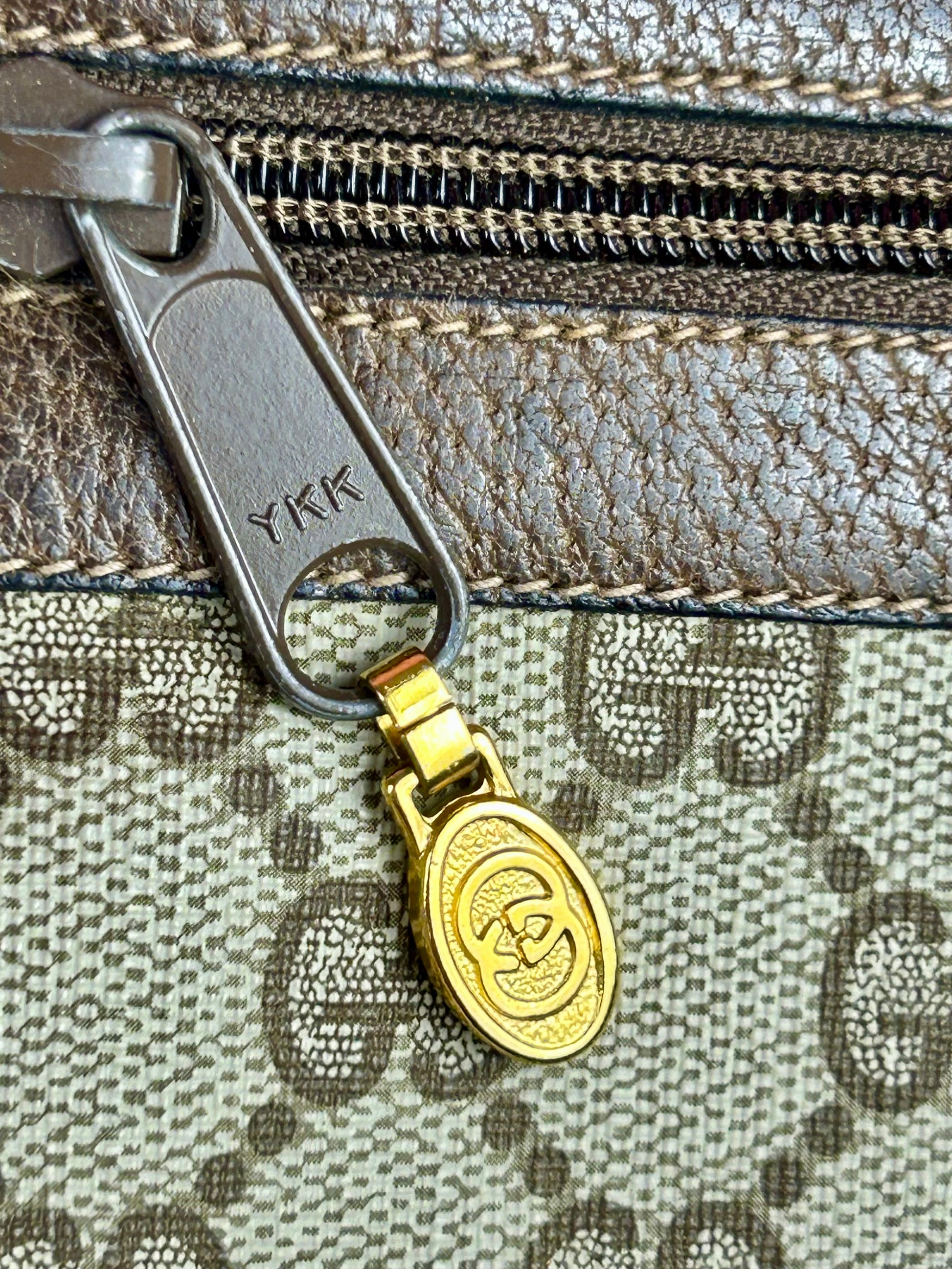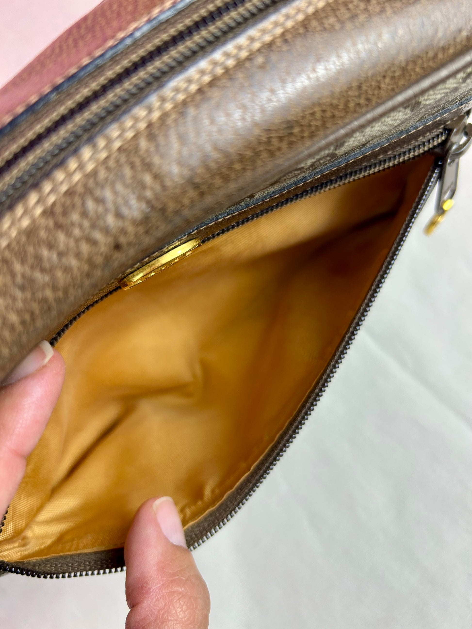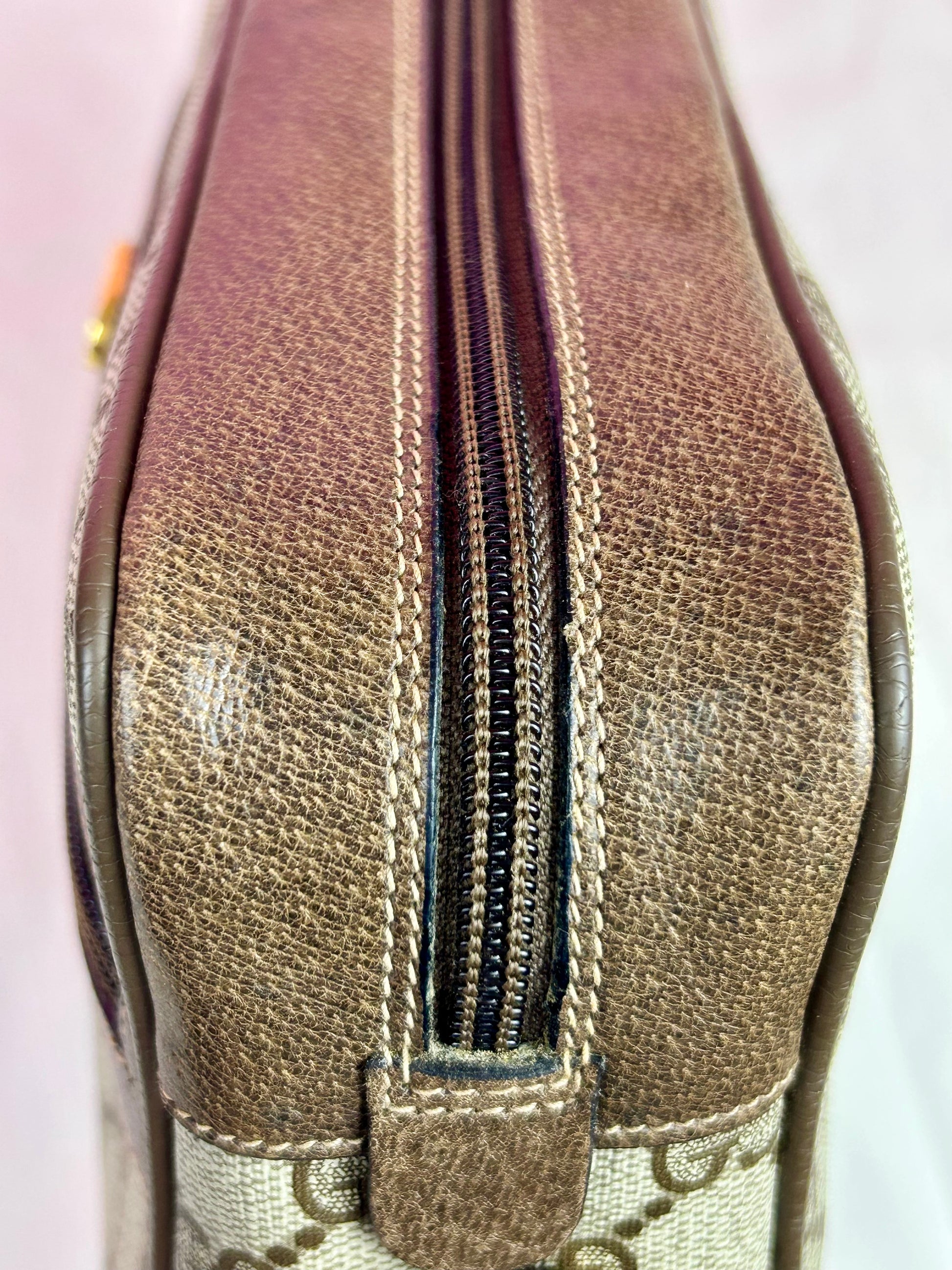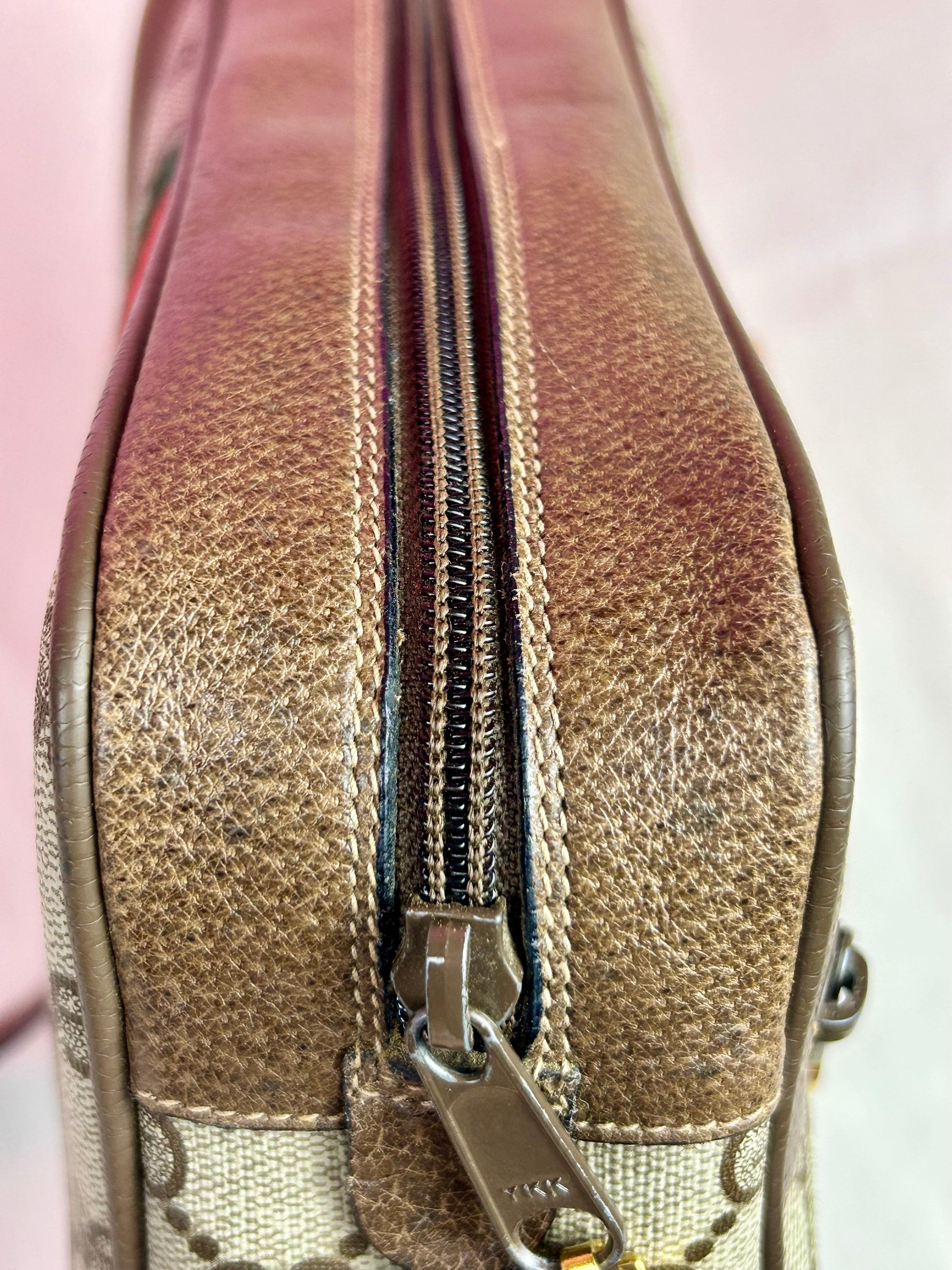 š Description: Canvas is in beautiful condition with no cracks or tears. Piping is in excellent condition with no exposures. Leather strap is in excellent condition. Front interior pocket is very clean, and main interior compartment is clean. Zippers pull well, and hardware is shiny.