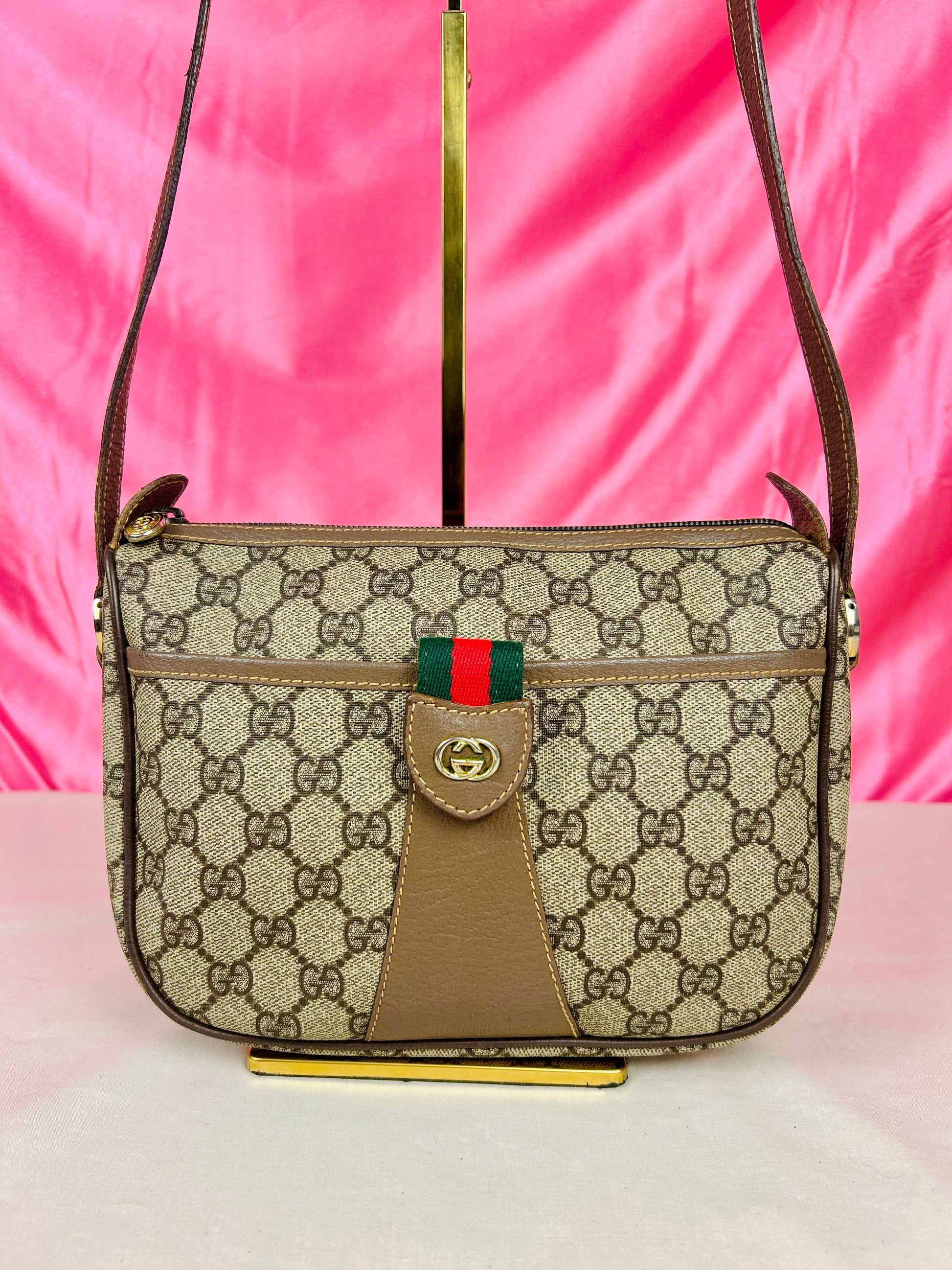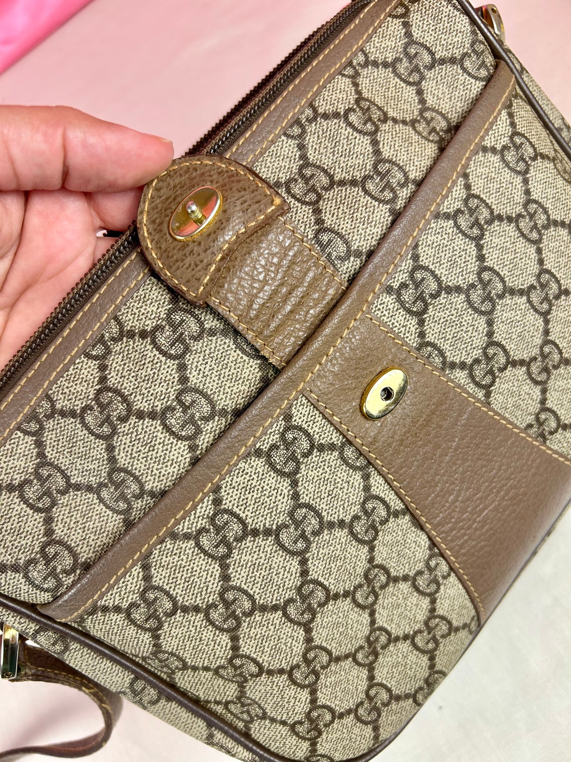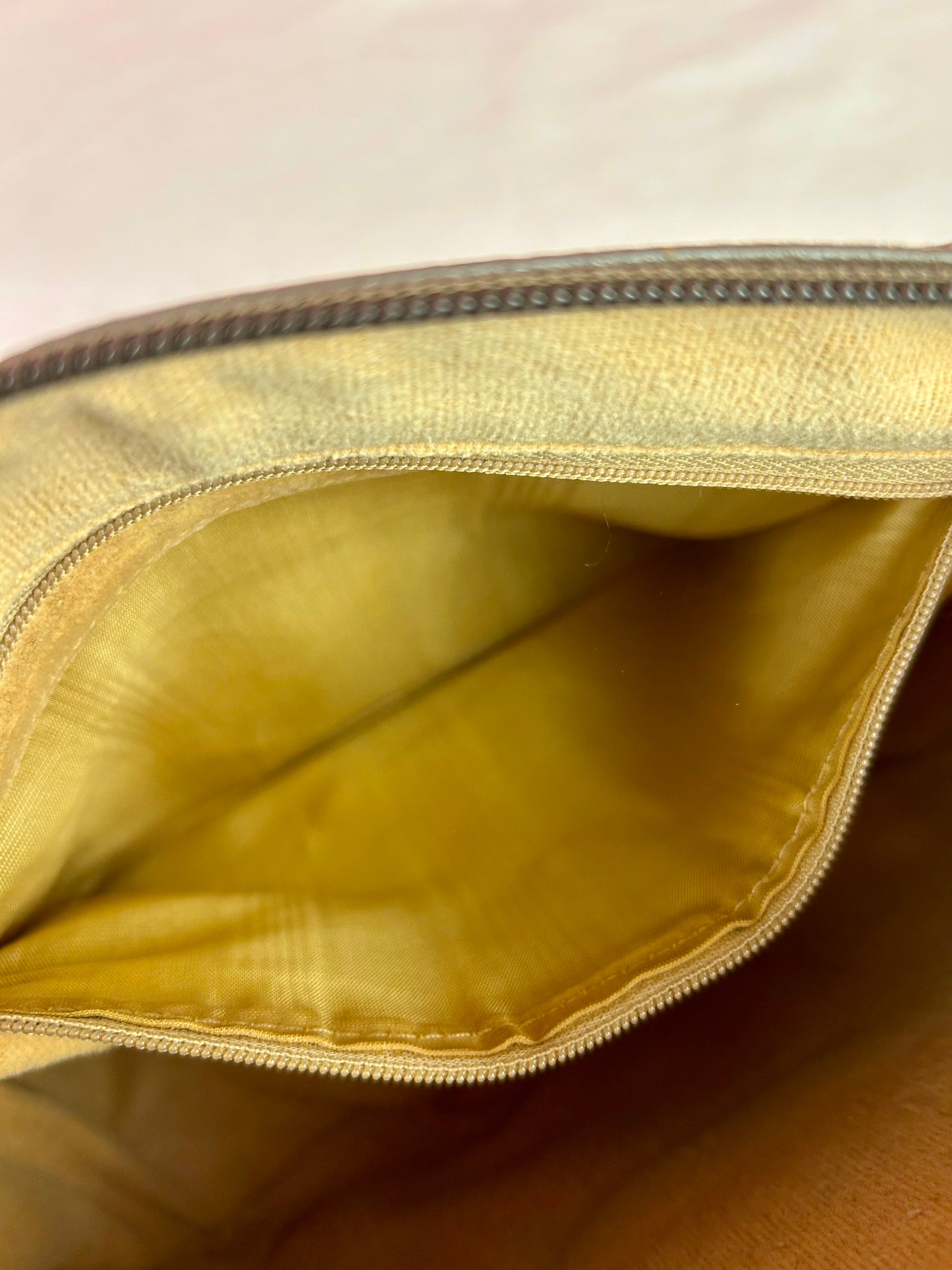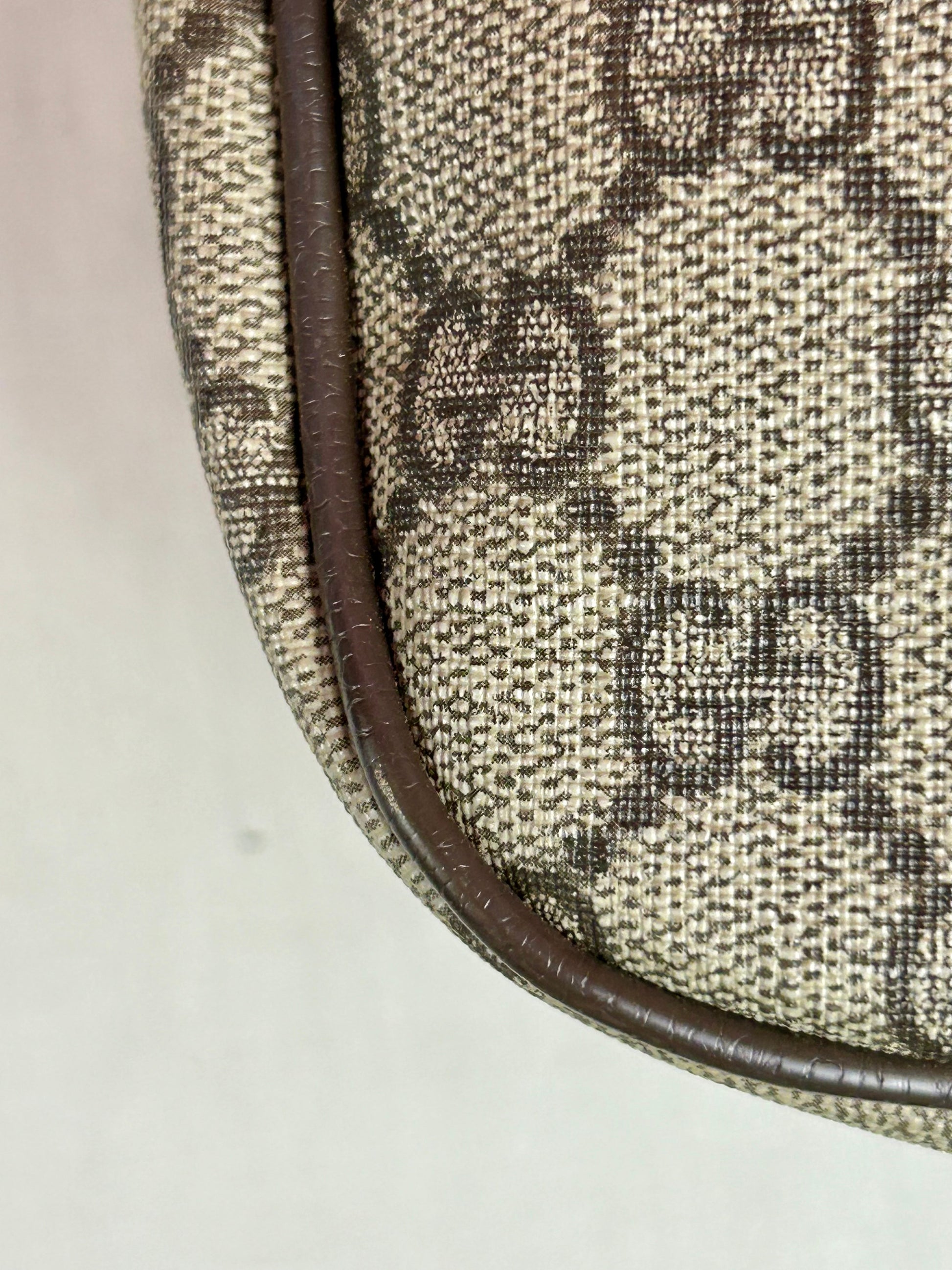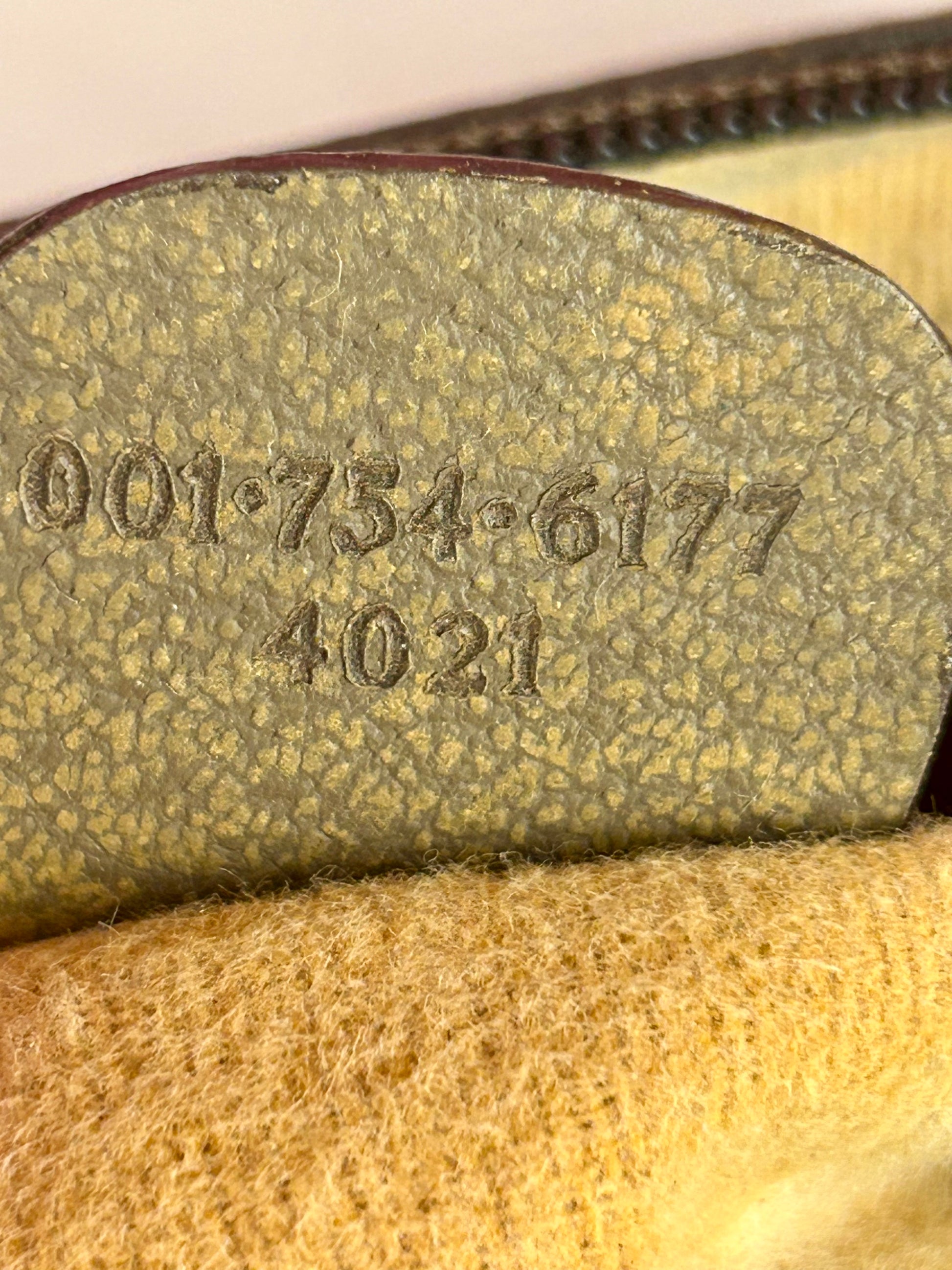 š Description: This is a medium sized crossbody that can hold all your everyday essentials. It has an outside pocket that is easily accessible for things like your phone. The canvas is vibrant and clear. Piping in excellent condition. Sherry Line is prominent and bright. Chapes in excellent condition. Strap is adjustable and has a surface crack on the top center, some wear on the glazing and some frayed threads near the chapes. Snap button has mixed gold and silver tones. Clasp and both zippers work properly. Interior lining has been cleaned, no powder or stickiness. Interior pocket is clean. Exterior pocket has been cleaned.Ā