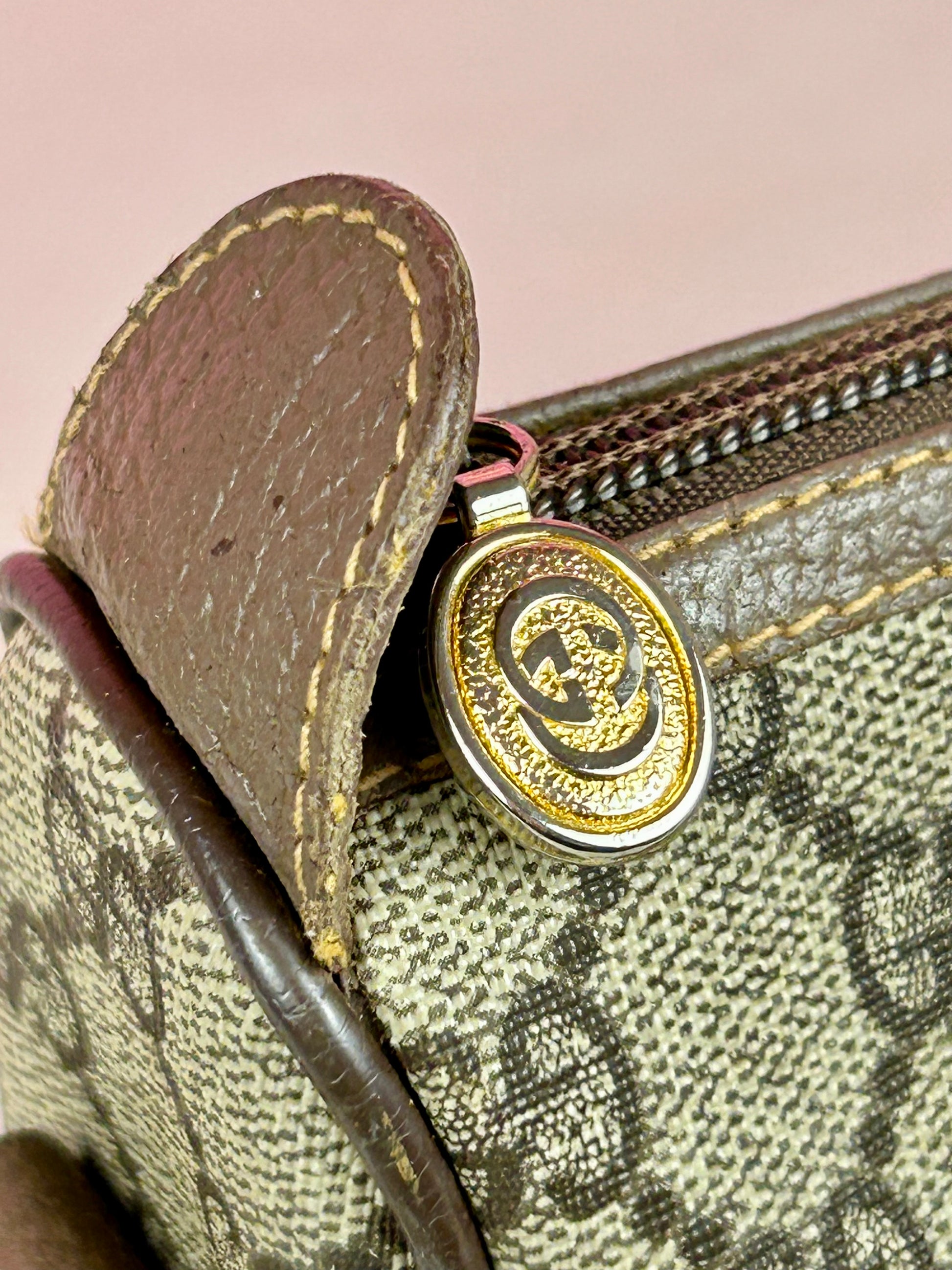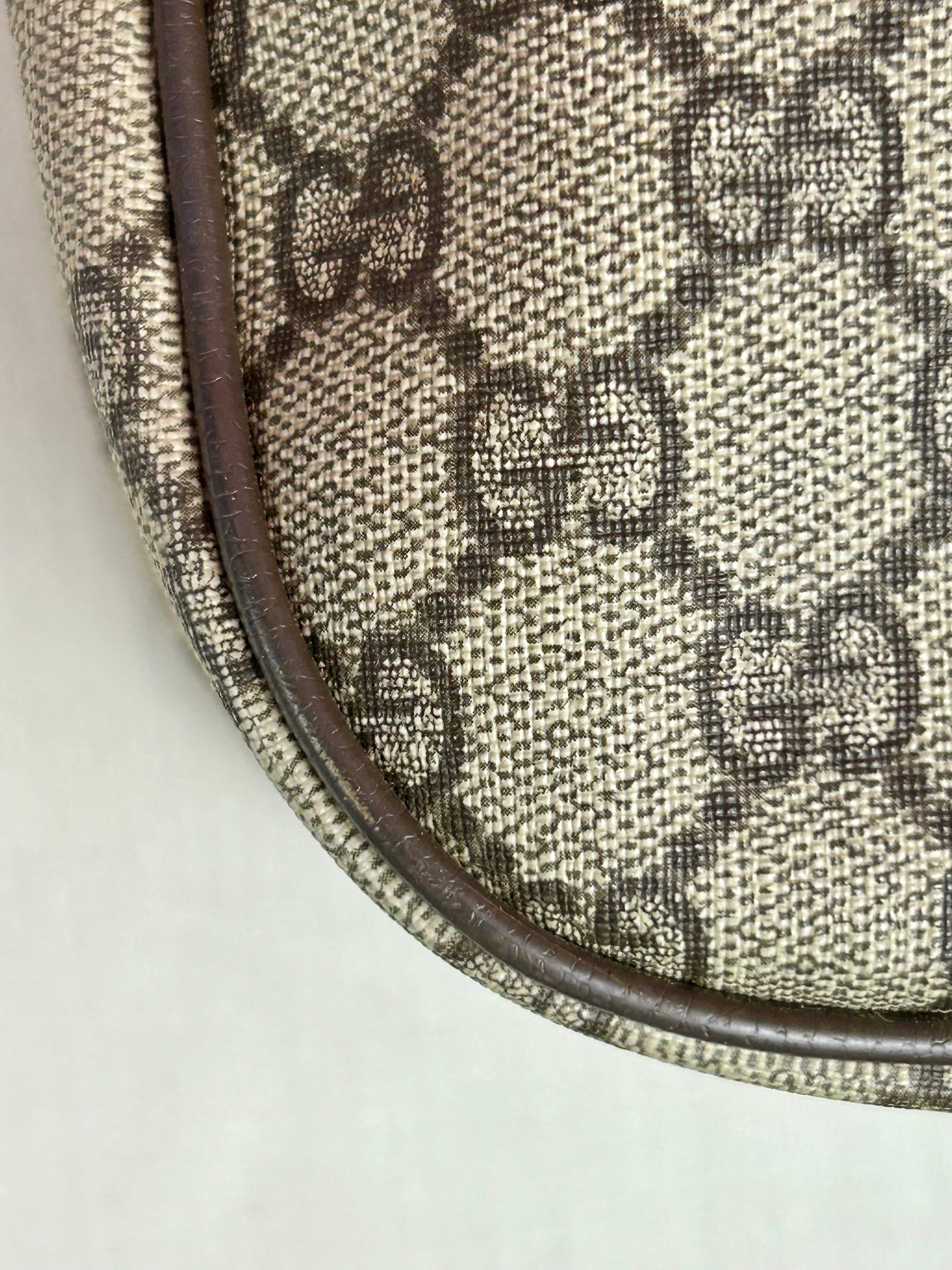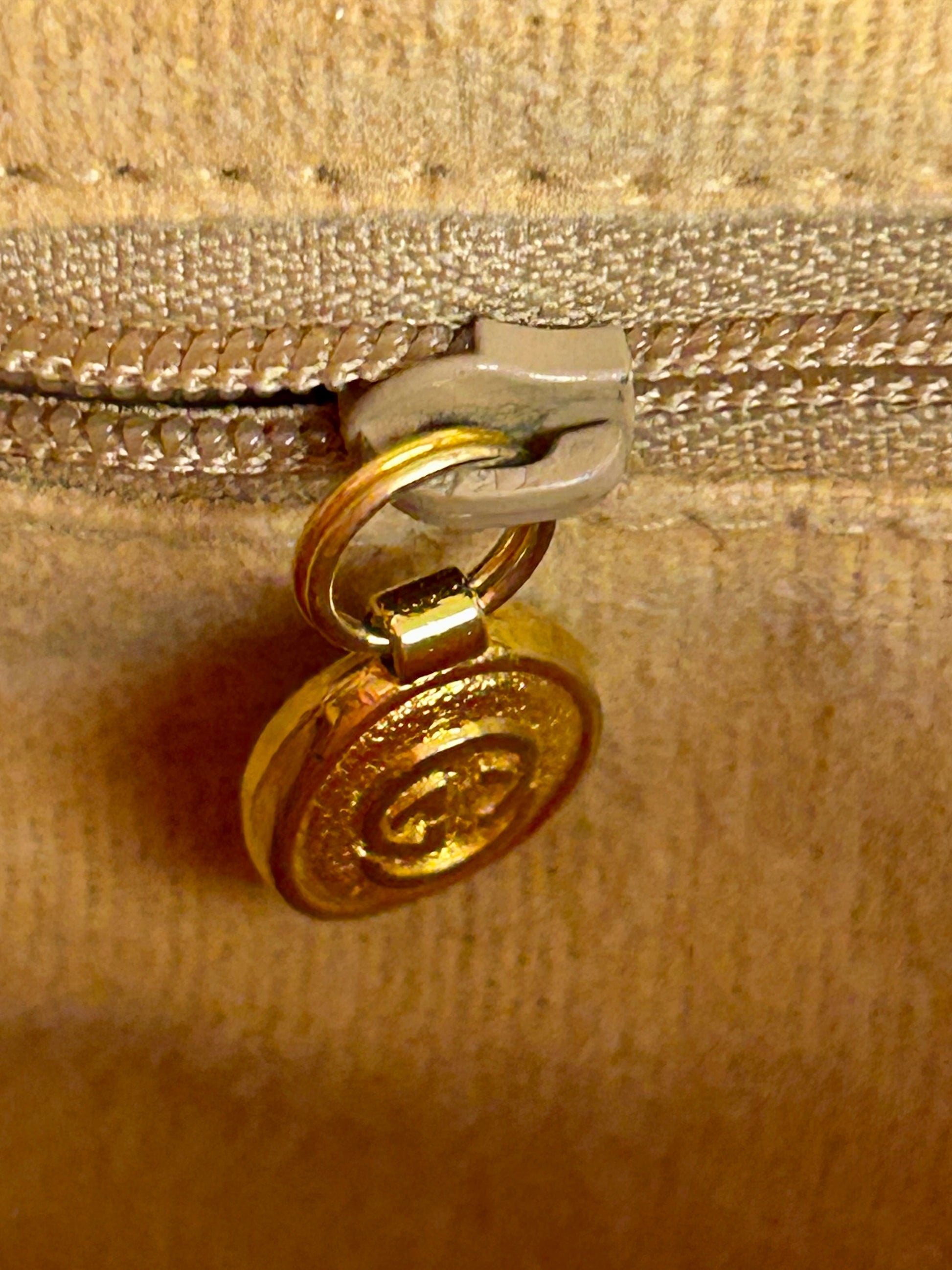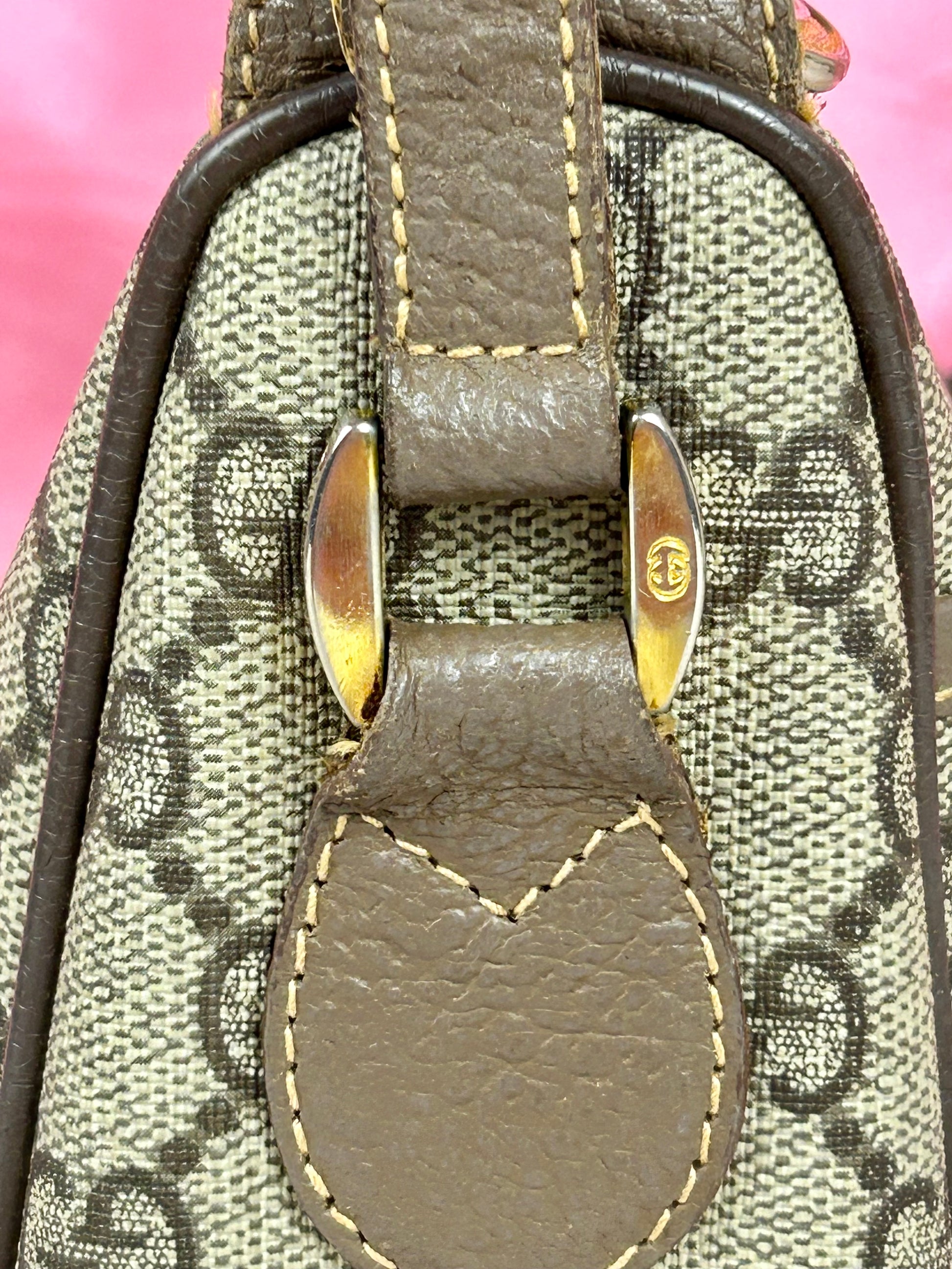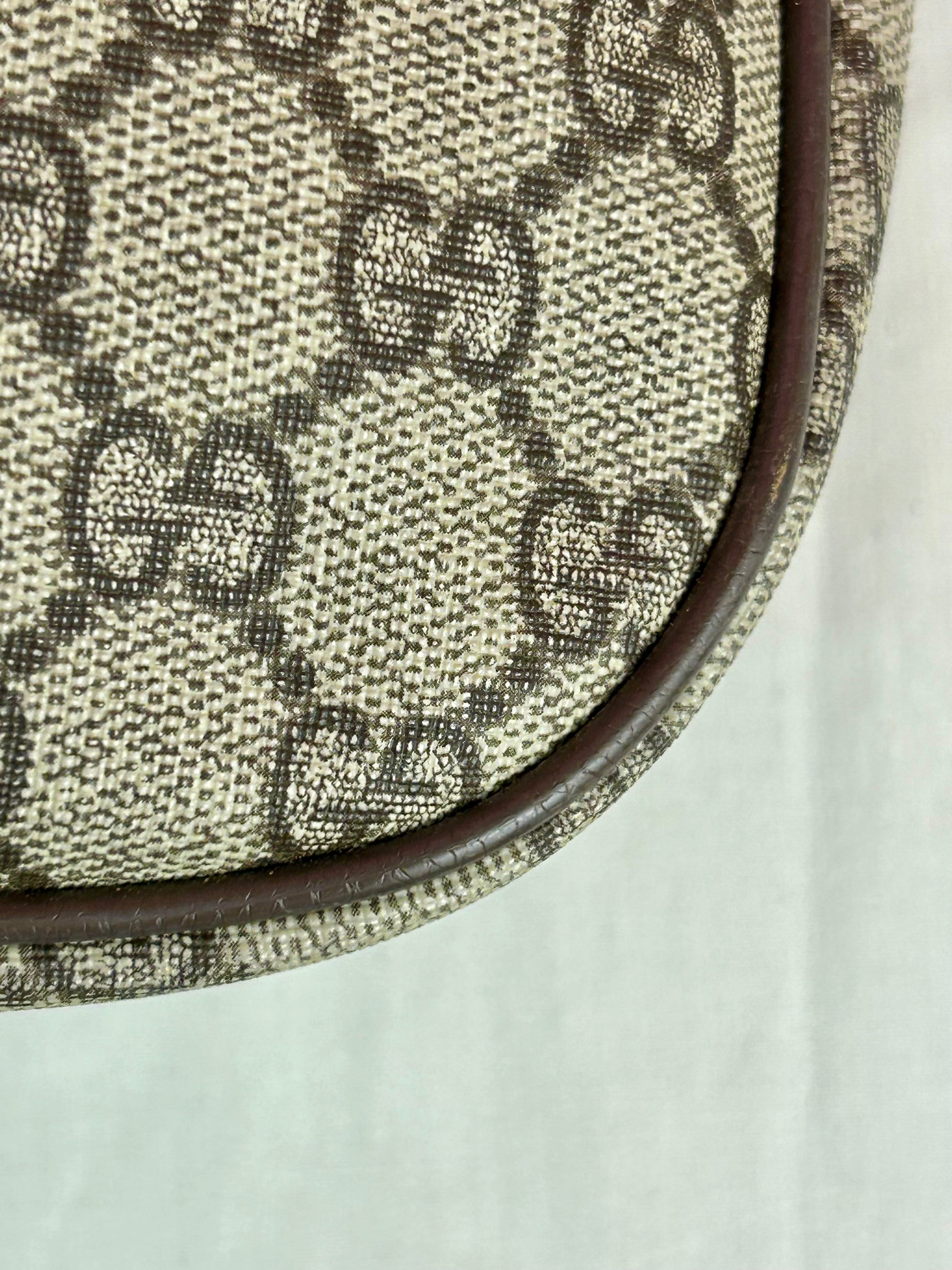 š Description: This is a medium sized crossbody that can hold all your everyday essentials. It has an outside pocket that is easily accessible for things like your phone. The canvas is vibrant and clear. Piping in excellent condition. Sherry Line is prominent and bright. Chapes in excellent condition. Strap is adjustable and has a surface crack on the top center, some wear on the glazing and some frayed threads near the chapes. Snap button has mixed gold and silver tones. Clasp and both zippers work properly. Interior lining has been cleaned, no powder or stickiness. Interior pocket is clean. Exterior pocket has been cleaned.Ā