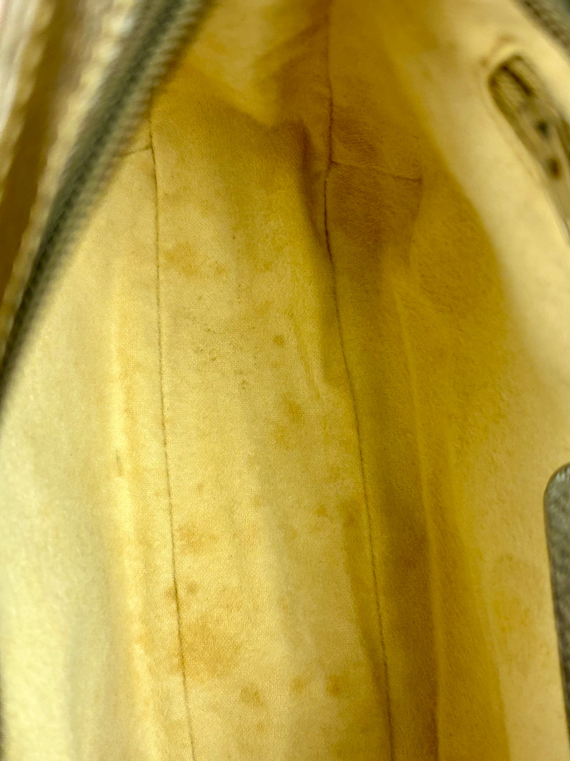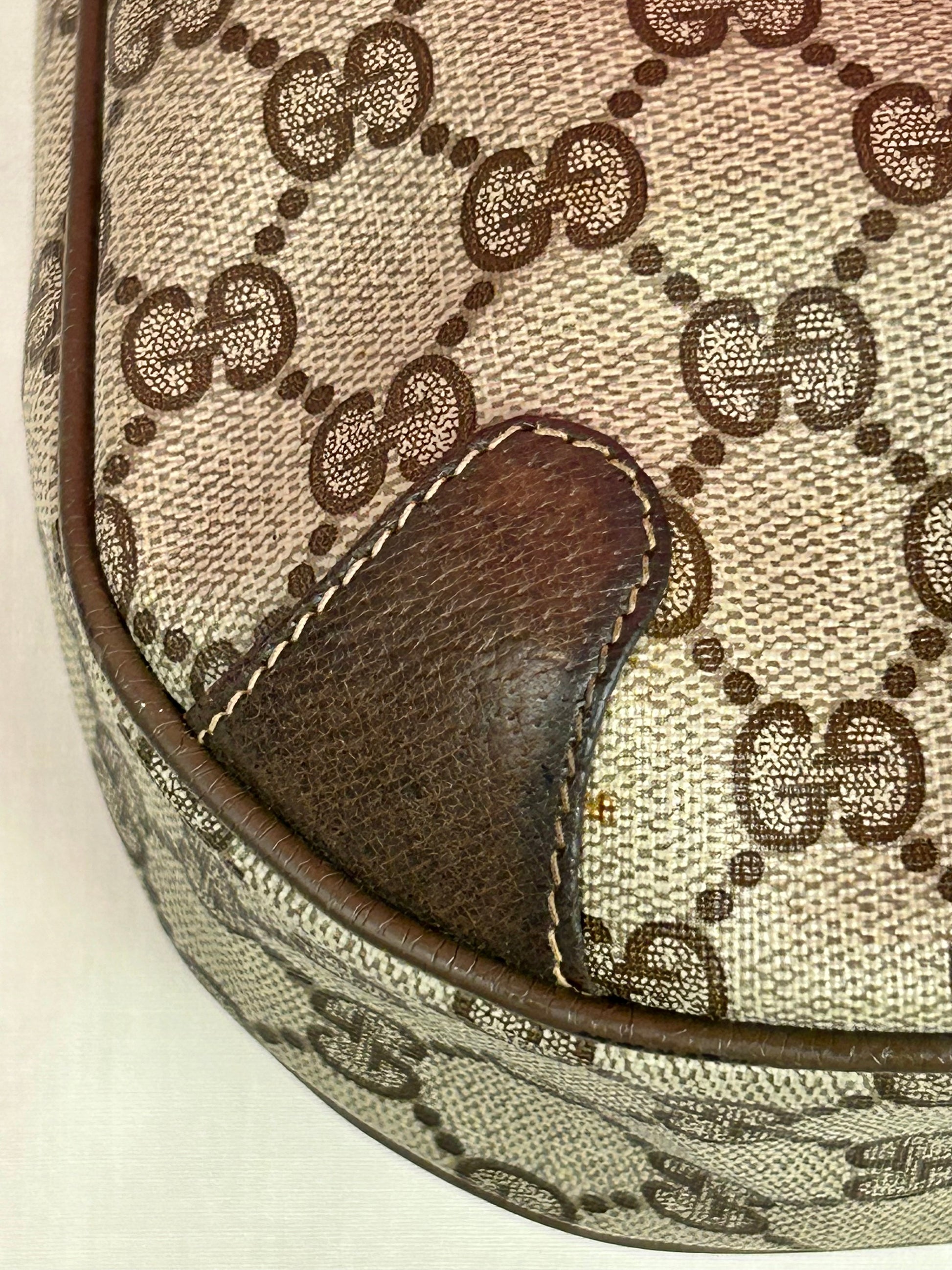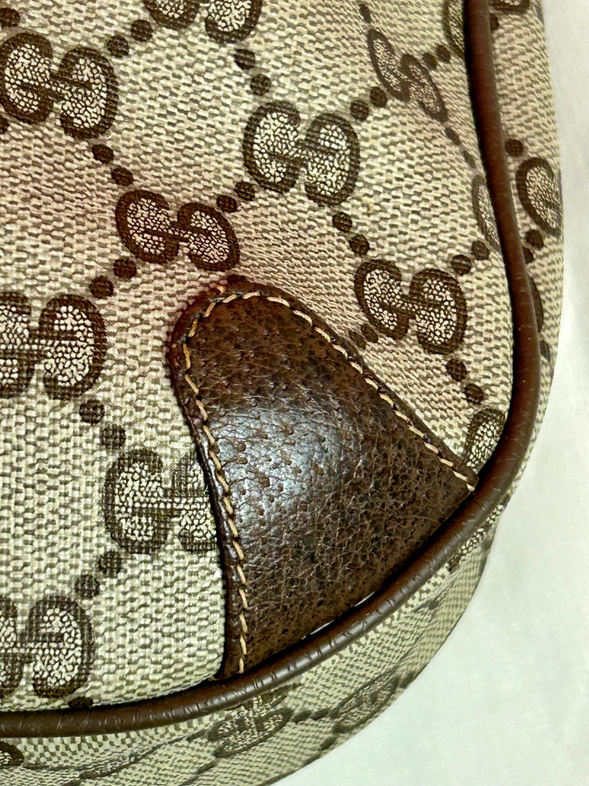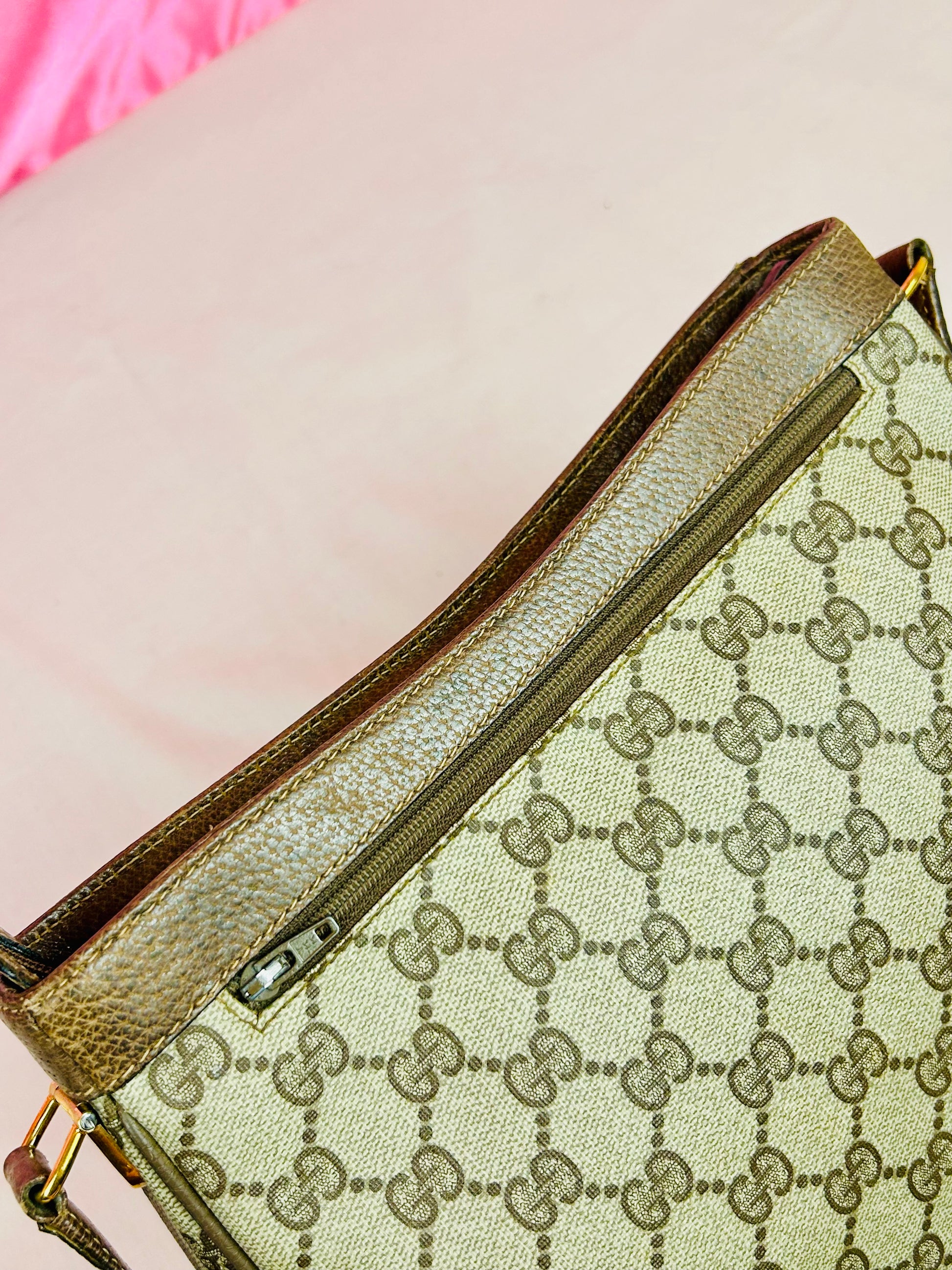 💜 Description: GG Supreme canvas is in beautiful condition with one small micro crack on the backside corner of the zipper lining (barely noticeable). Leather piping and trim are in excellent shape with minimal signs of wear. Leather strap is also in excellent condition. Interior shows some discoloring on the bottom but is otherwise clean. Interior pocket is clean, and backside pocket has a small pen mark but no stickiness or peeling. All zippers pull smoothly, and hardware remains shiny. A timeless, durable shoulder bag perfect for daily wear.