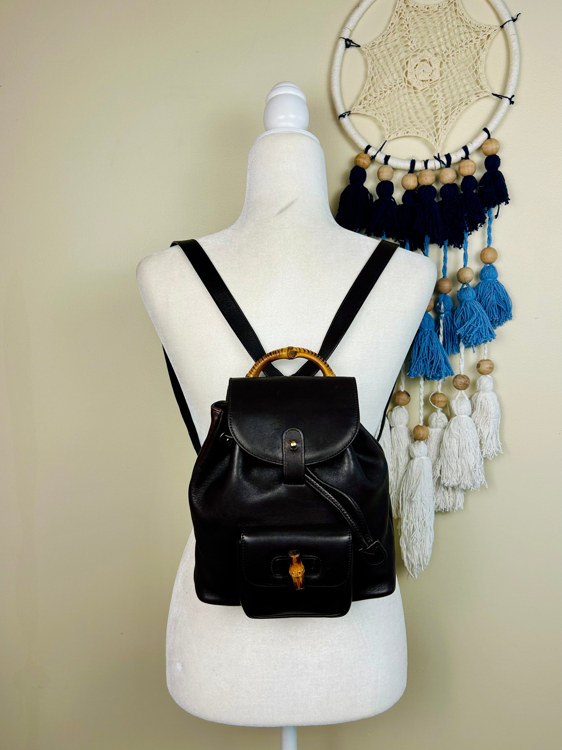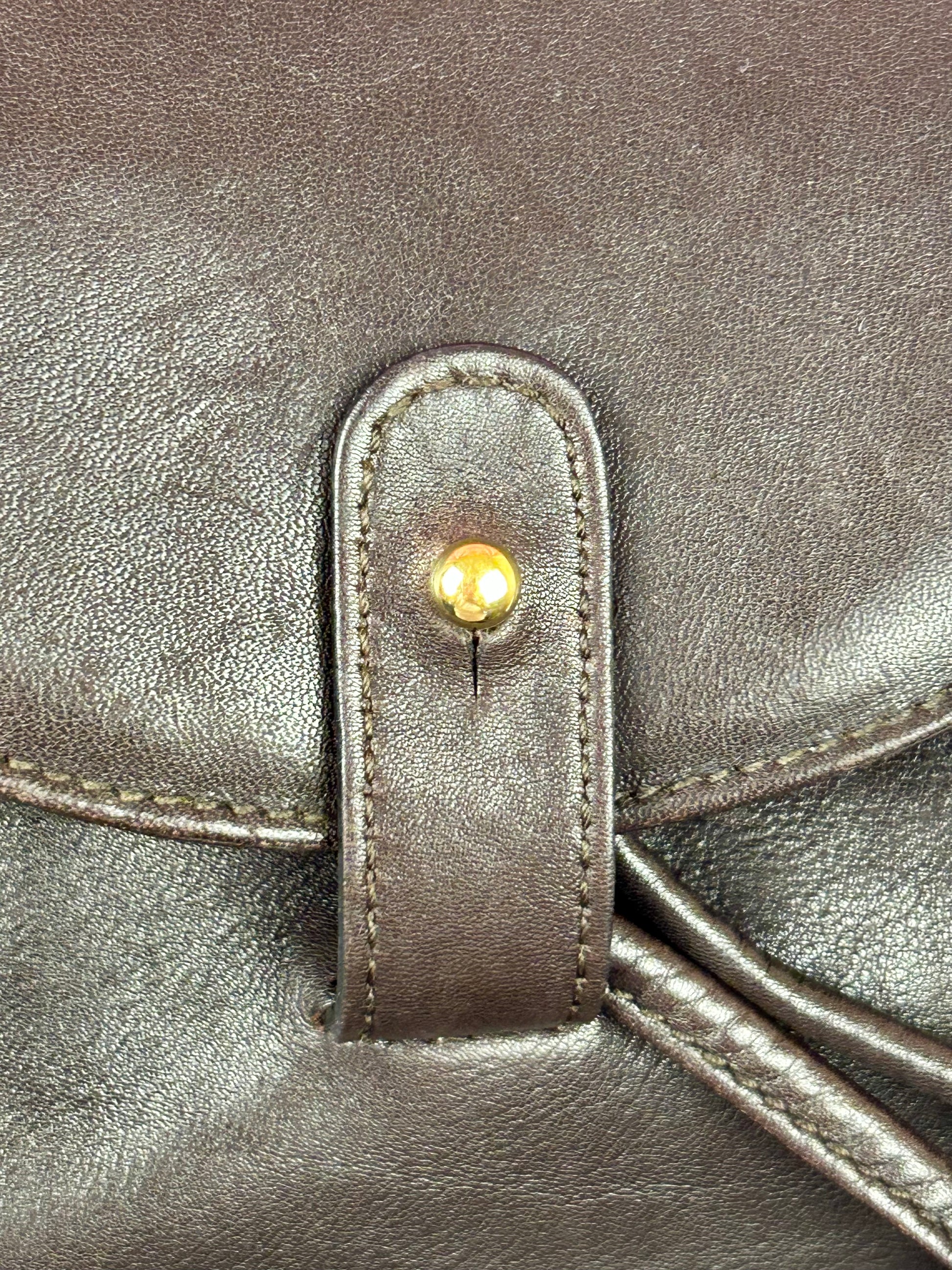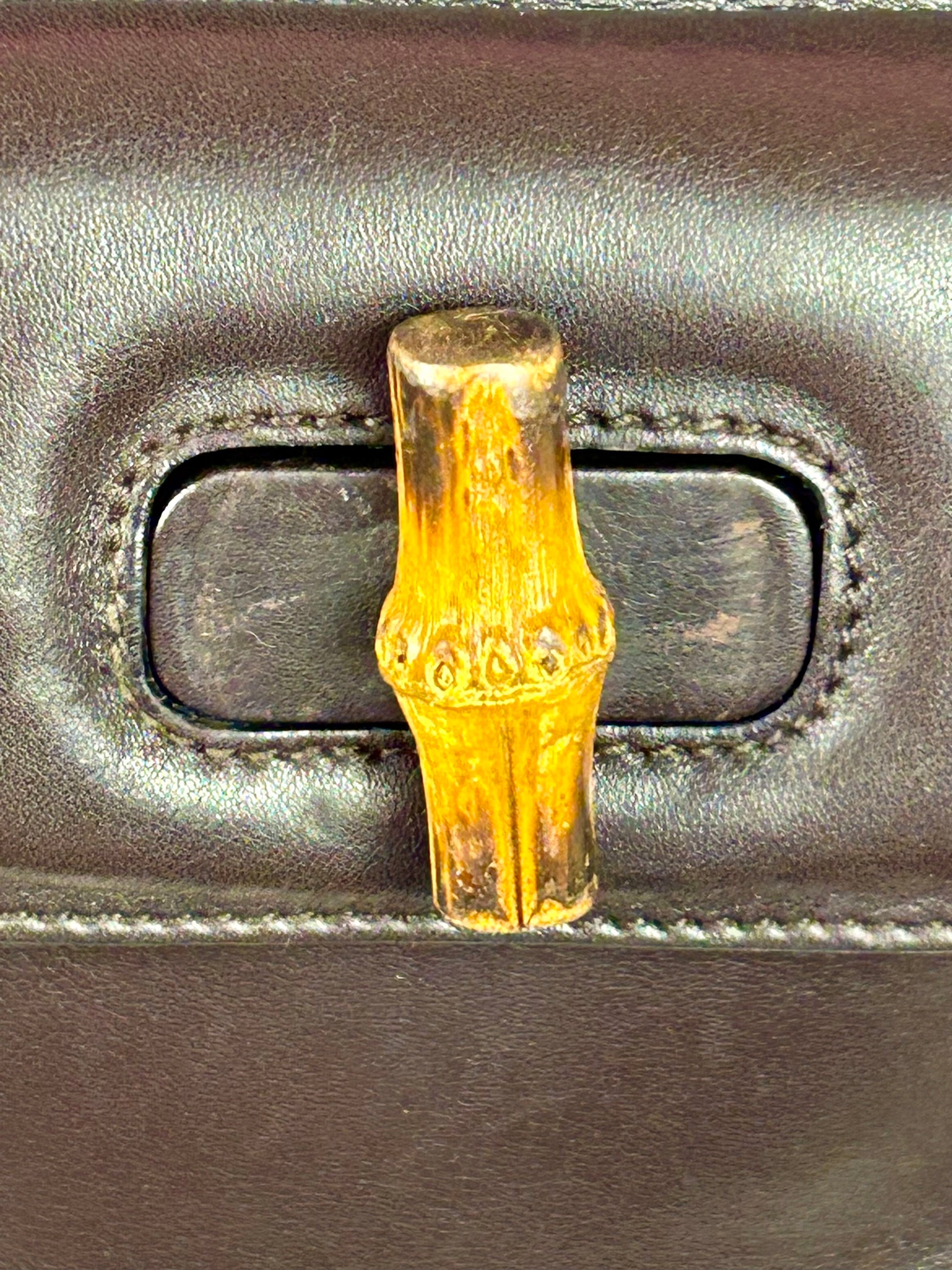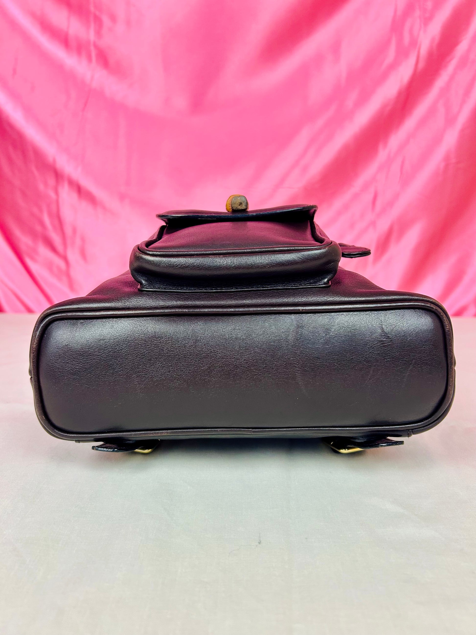 💜 Description: Leather is supple and soft with no cracks or tears. Some mild rubbing throughout and light wear on the bottom corners consistent with normal use. Interior leather flap shows some rubbing on the inside. There is slight wear on the top right and left leather areas. Leather drawstring is in excellent condition with no tears or cracks. Bamboo handle is in excellent condition. Leather straps show minimal signs of use. Front pocket is clean. Interior is very clean, and the interior pocket is clean though the zipper is missing its pull.
