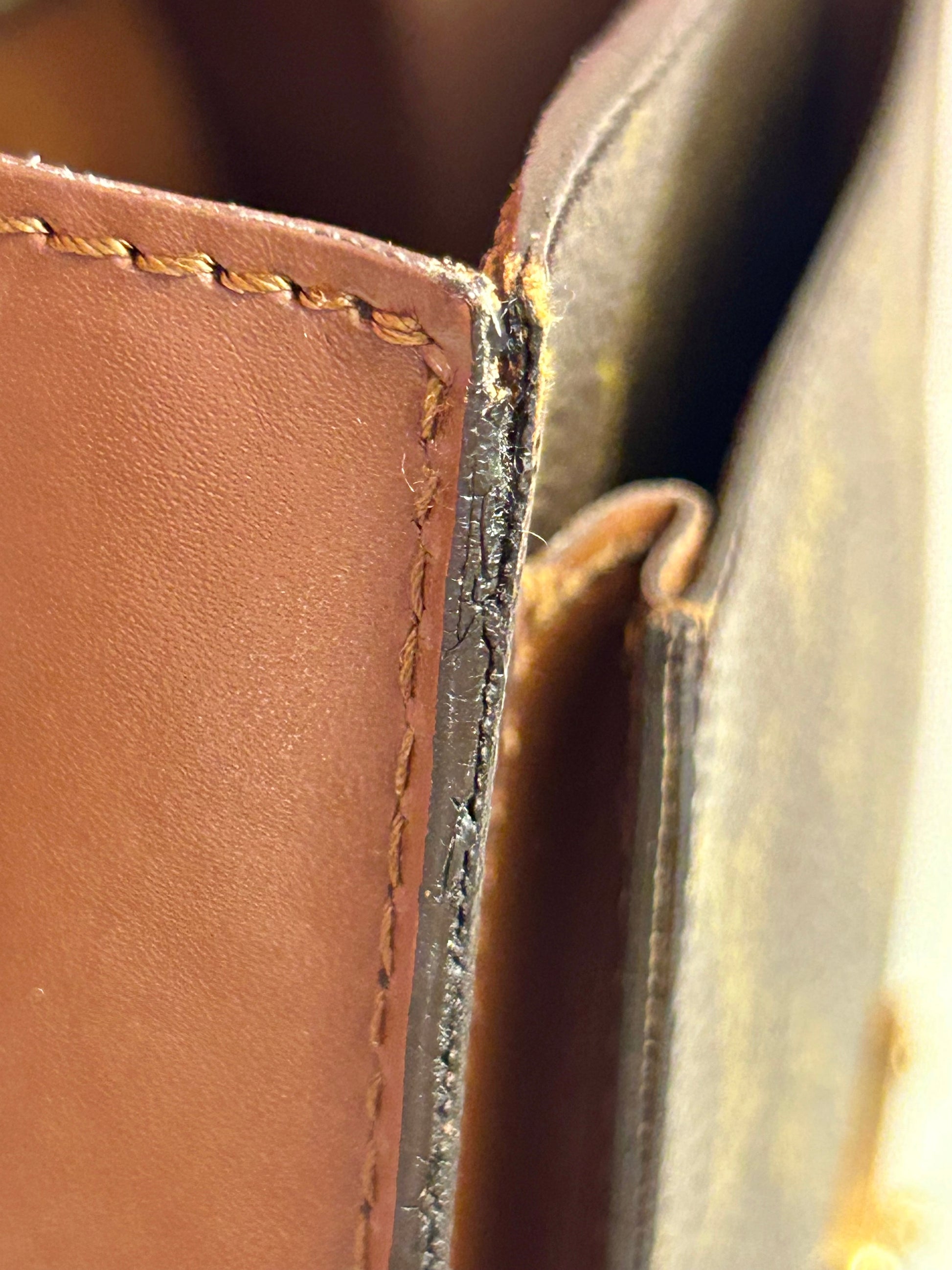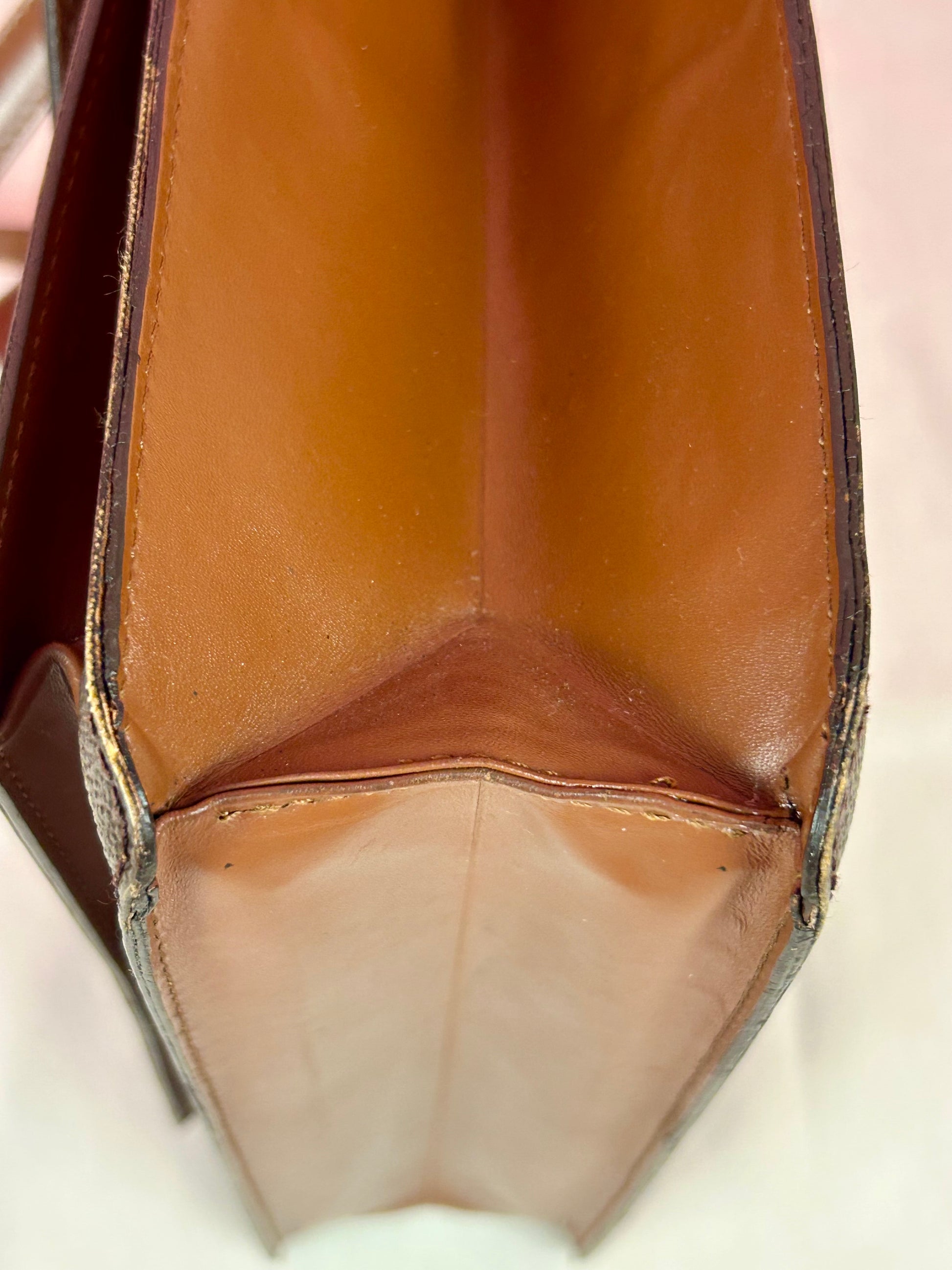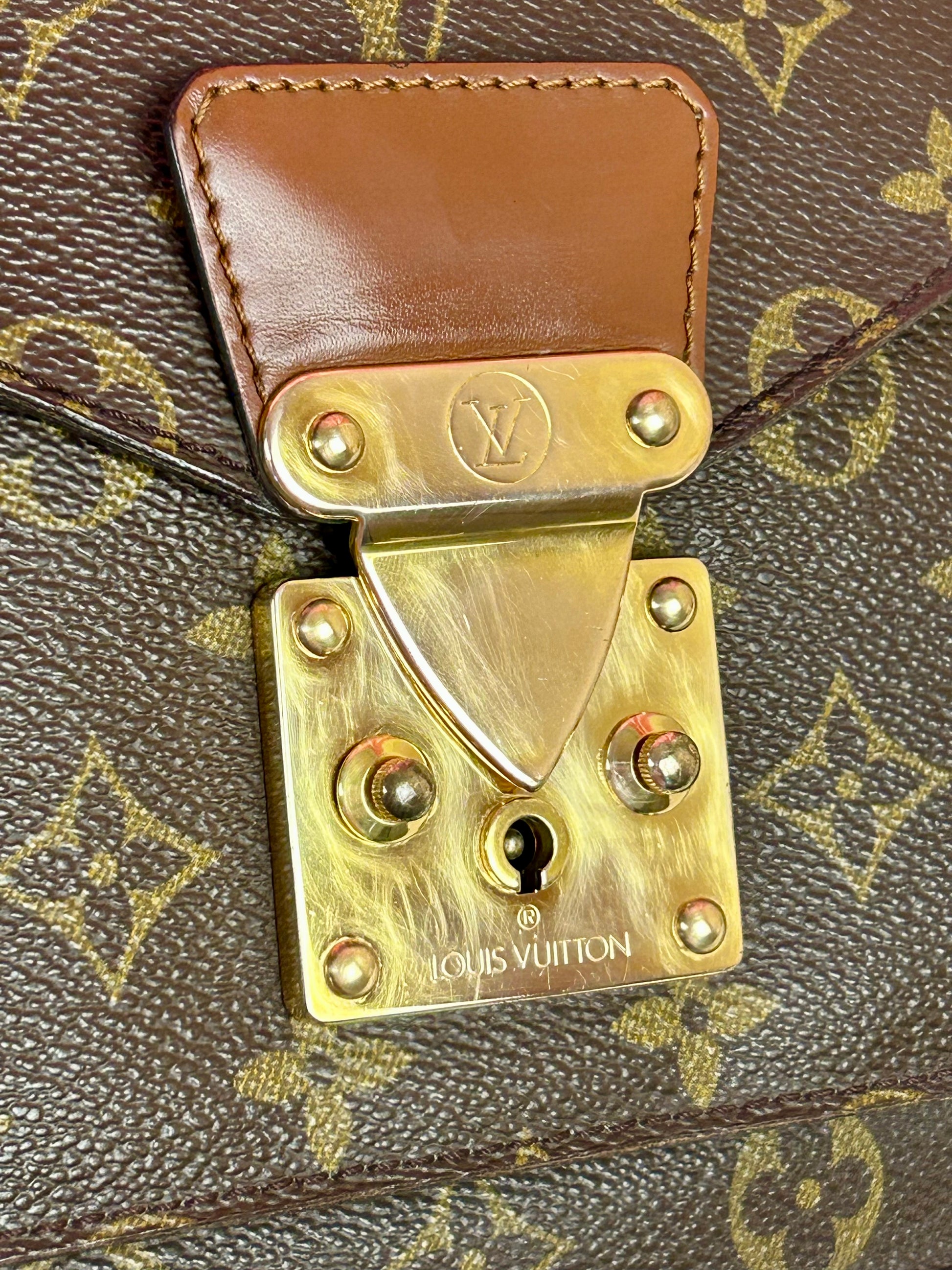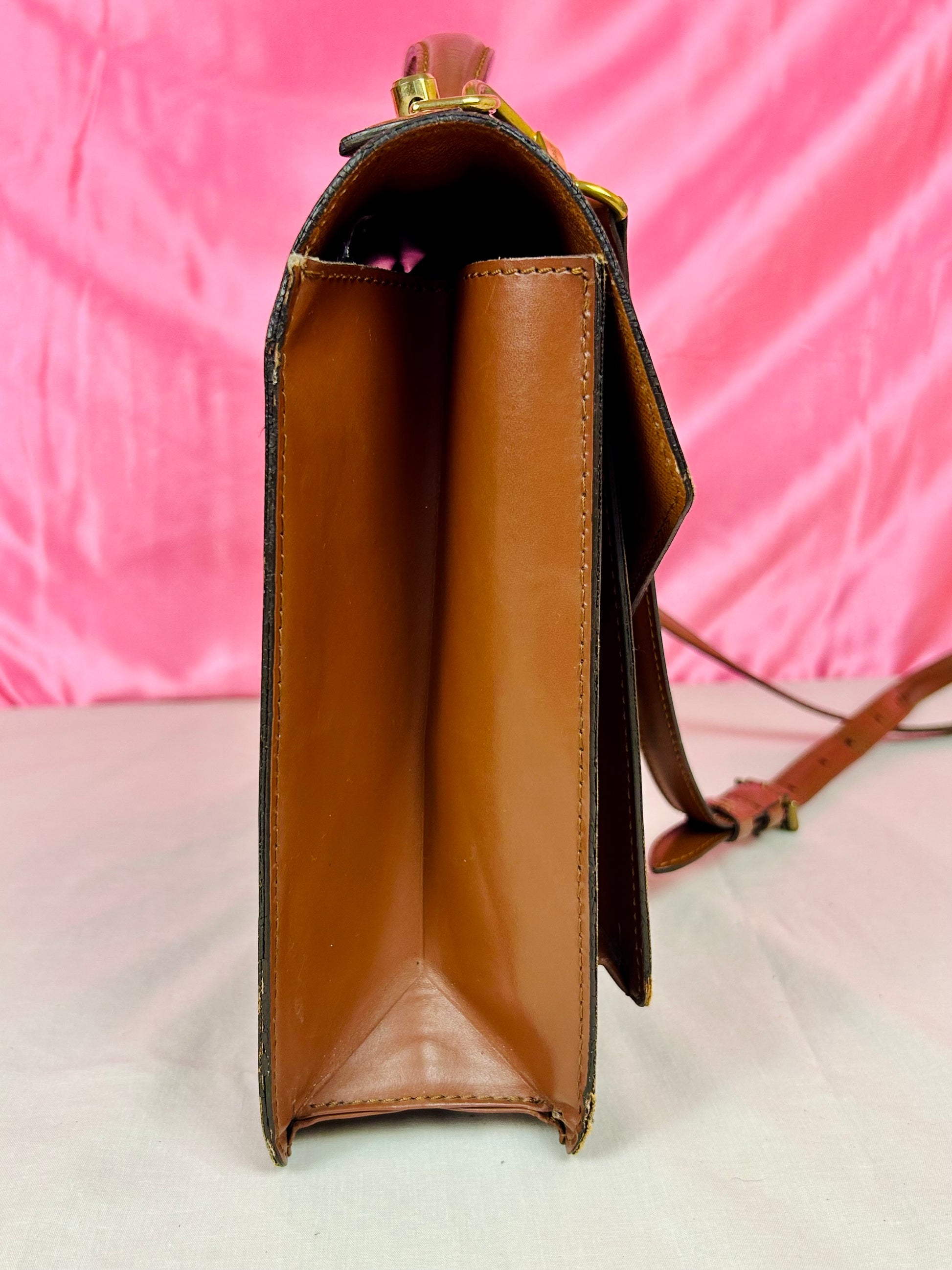 š Description: Canvas is in excellent shape with no cracks or tears. Wear on the glazing along the bottom corners. Front pocket is clean. Top leather handle looks great with no issues. Inside flap shows some wear and markings. There is minor micro-tearing on both the left and right sides where the interior flap meets the leather edge. Main interior compartment has a few small pen marks and light wear. Interior pocket shows some peeling but is not sticky and remains fully functional ā zipper pulls smoothly. Leather strap has some cracks around the buckle holes, but is strong overall. Lock mechanisim works and comes with key. Some tarnishing and light scratches on the metal plate.Ā