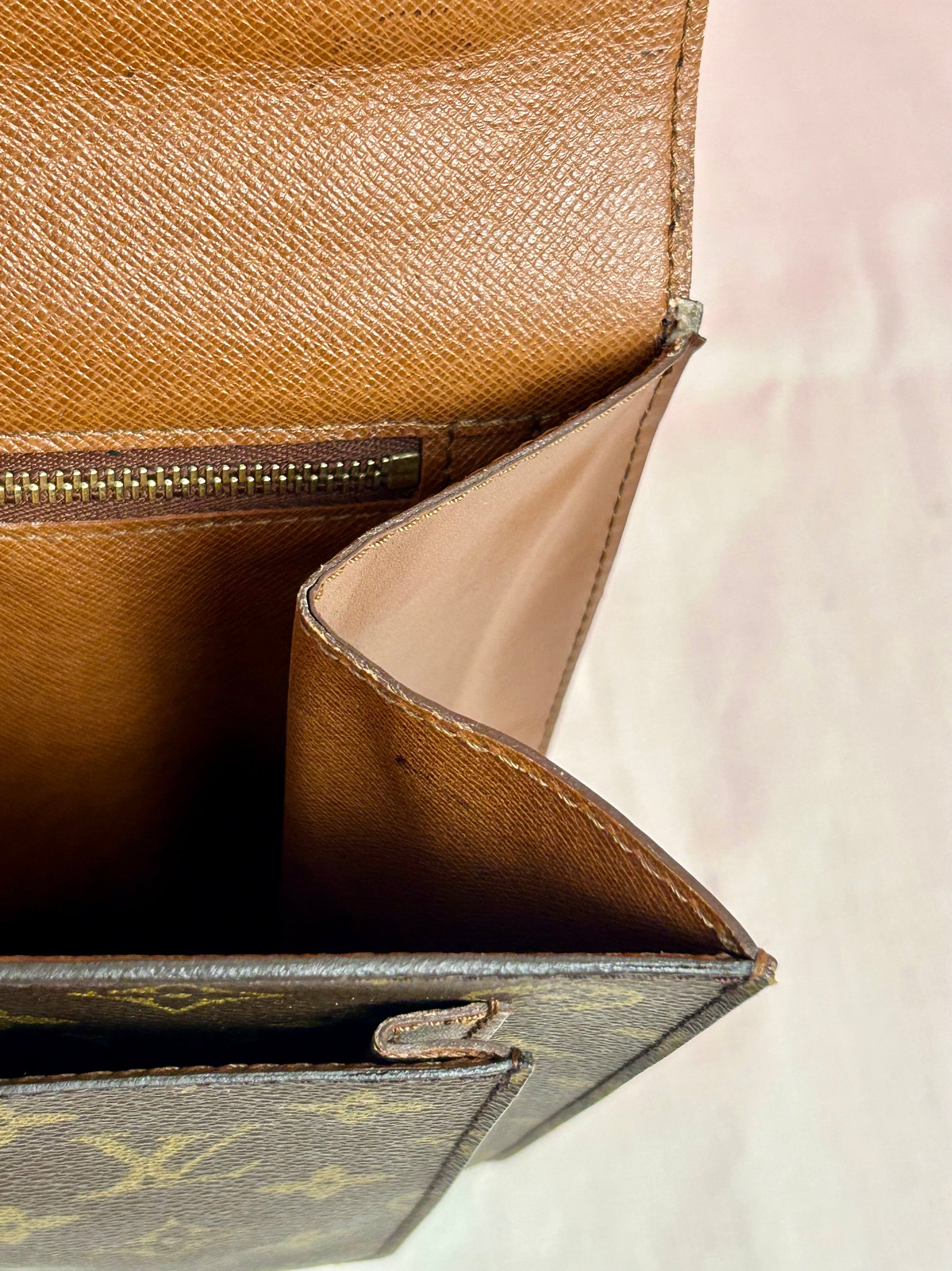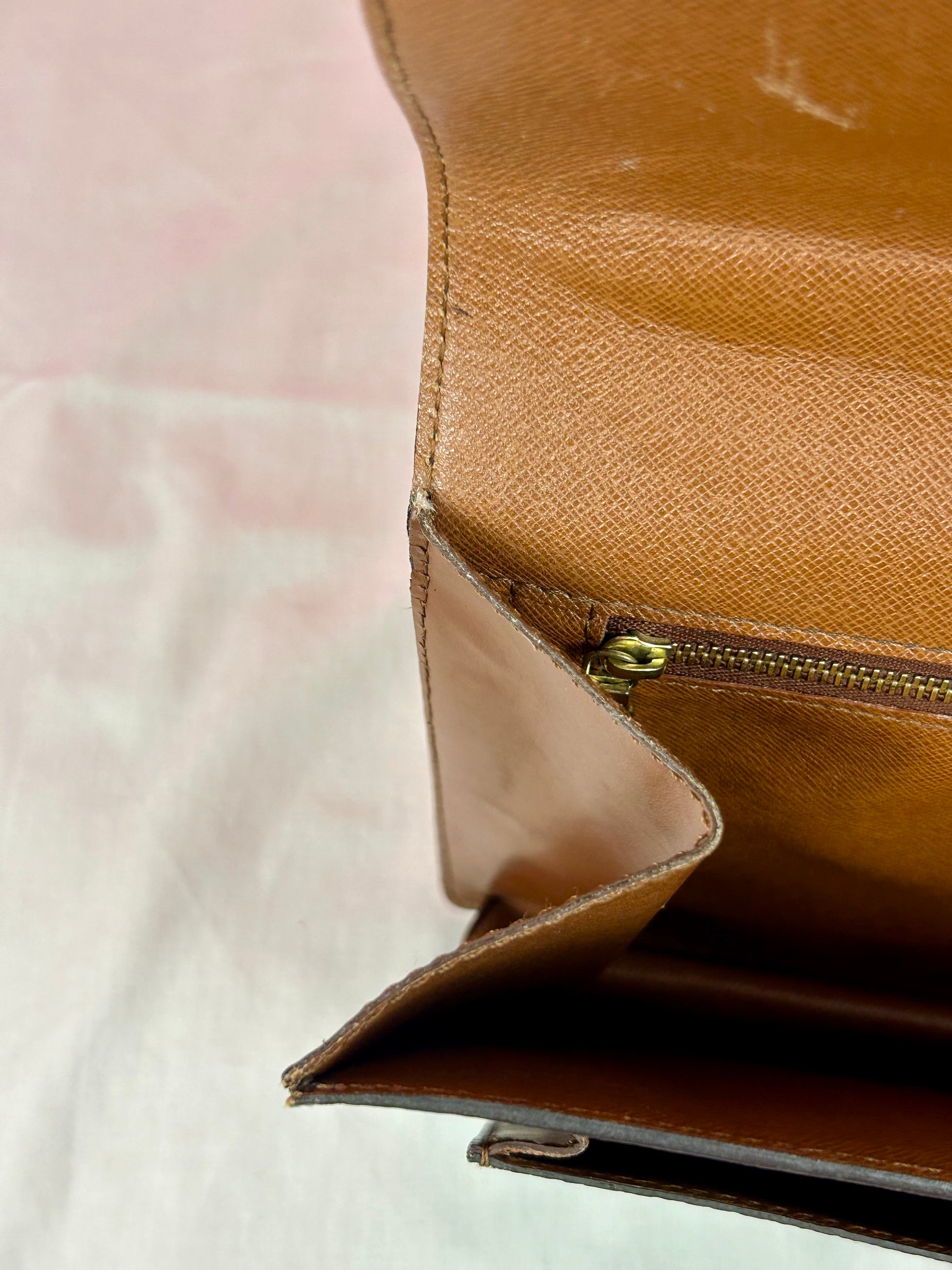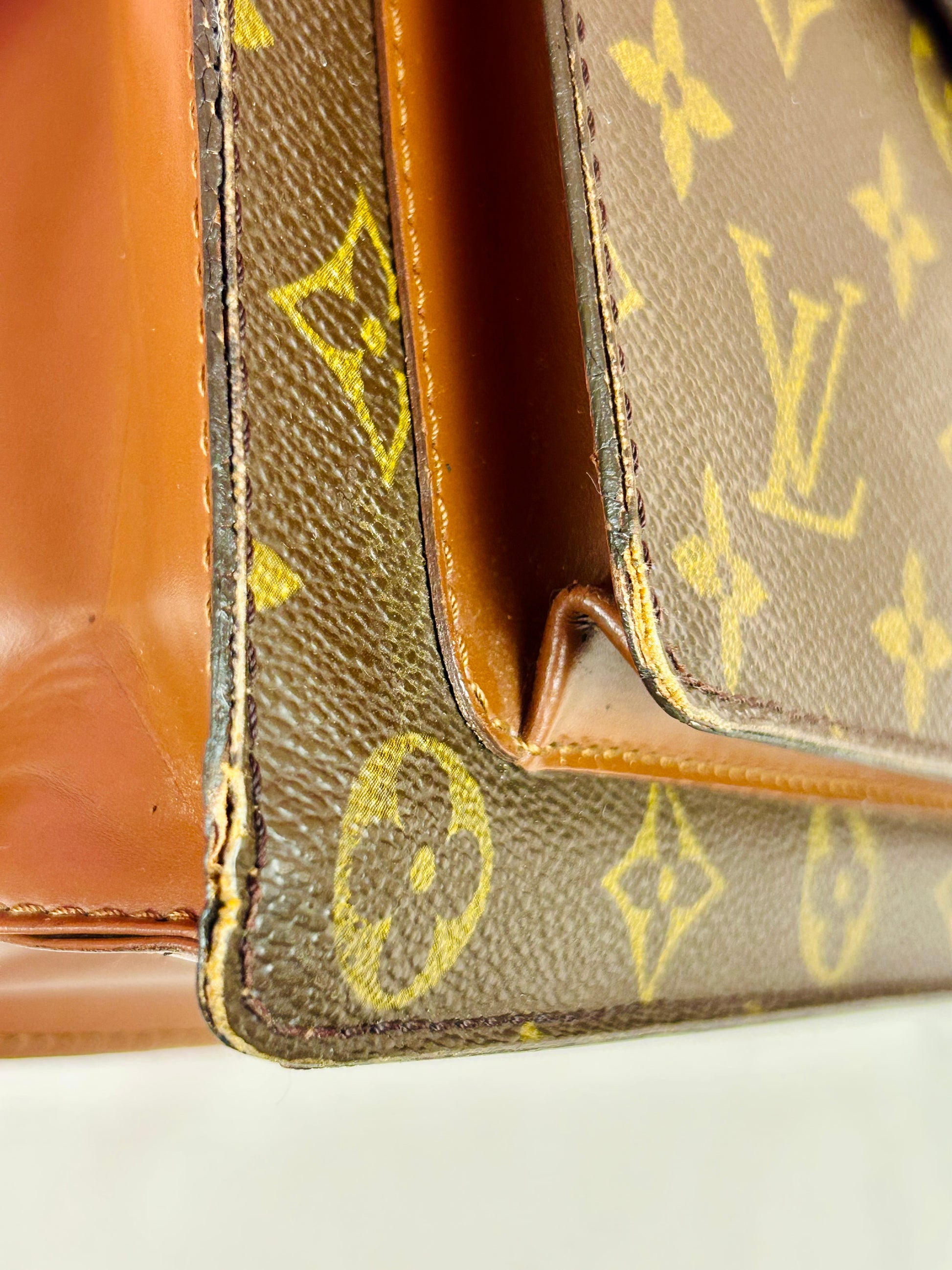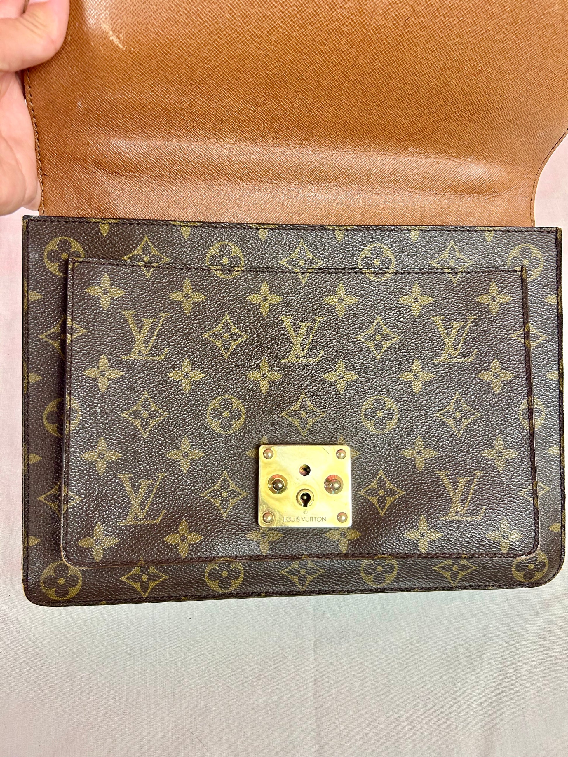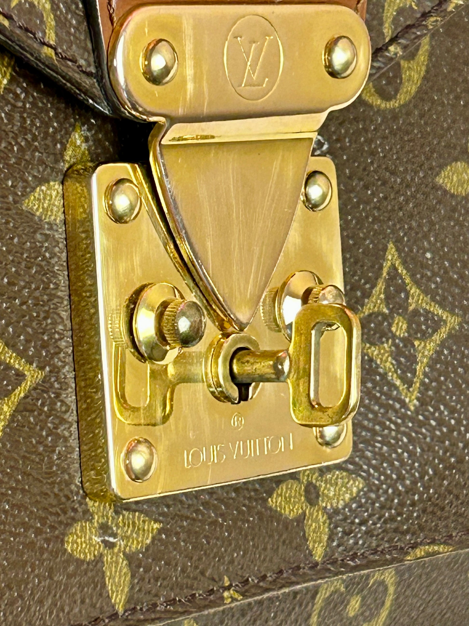 š Description: Canvas is in excellent shape with no cracks or tears. Wear on the glazing along the bottom corners. Front pocket is clean. Top leather handle looks great with no issues. Inside flap shows some wear and markings. There is minor micro-tearing on both the left and right sides where the interior flap meets the leather edge. Main interior compartment has a few small pen marks and light wear. Interior pocket shows some peeling but is not sticky and remains fully functional ā zipper pulls smoothly. Leather strap has some cracks around the buckle holes, but is strong overall. Lock mechanisim works and comes with key. Some tarnishing and light scratches on the metal plate.Ā