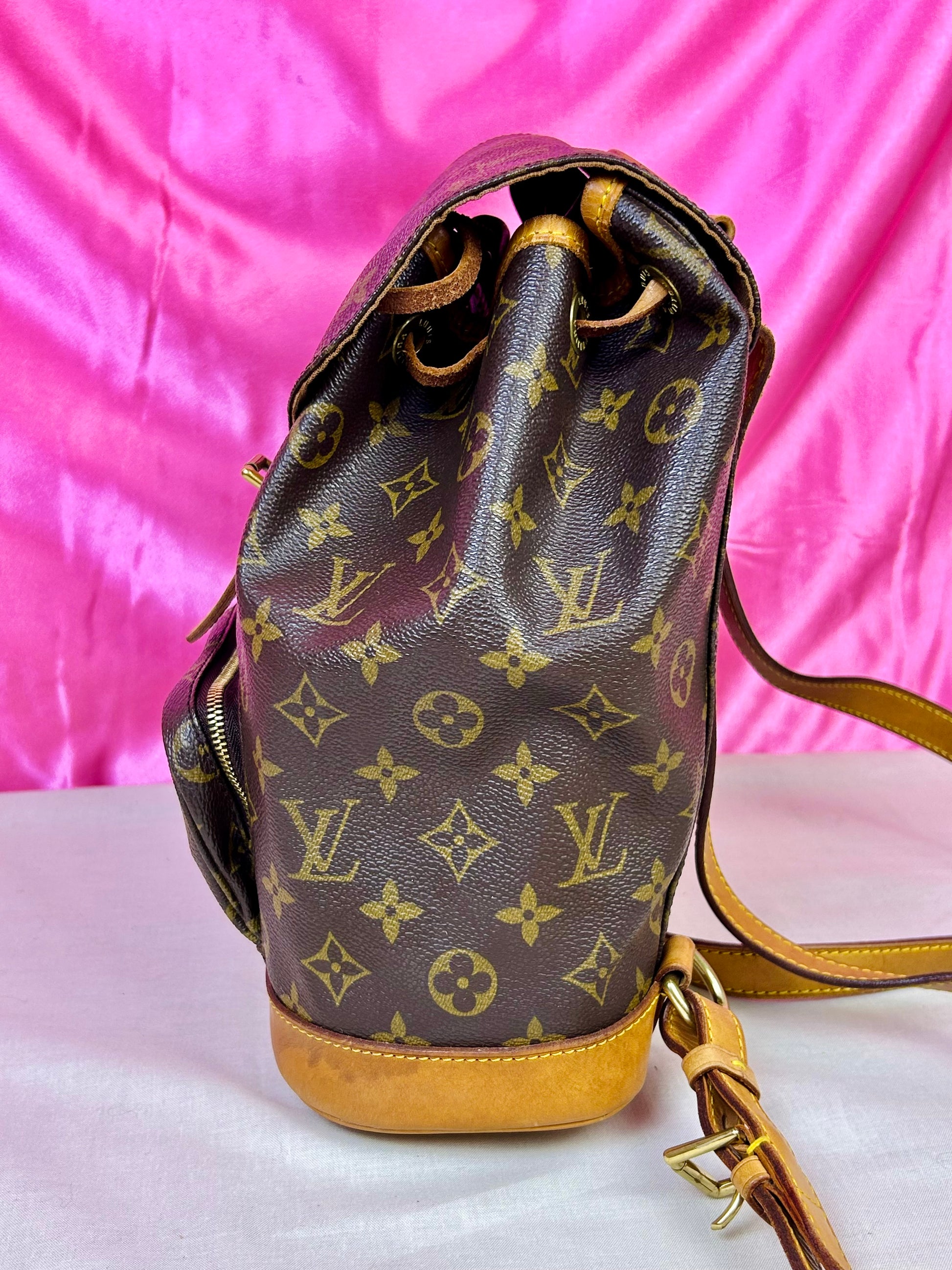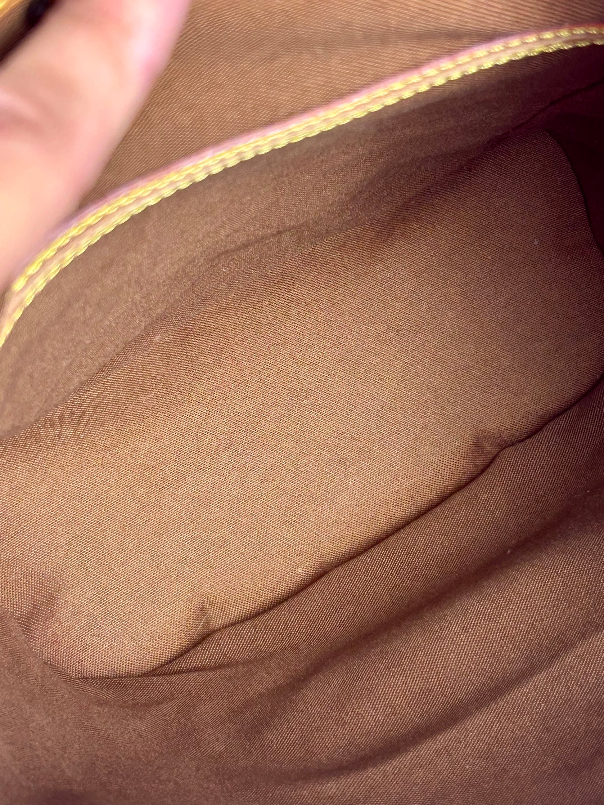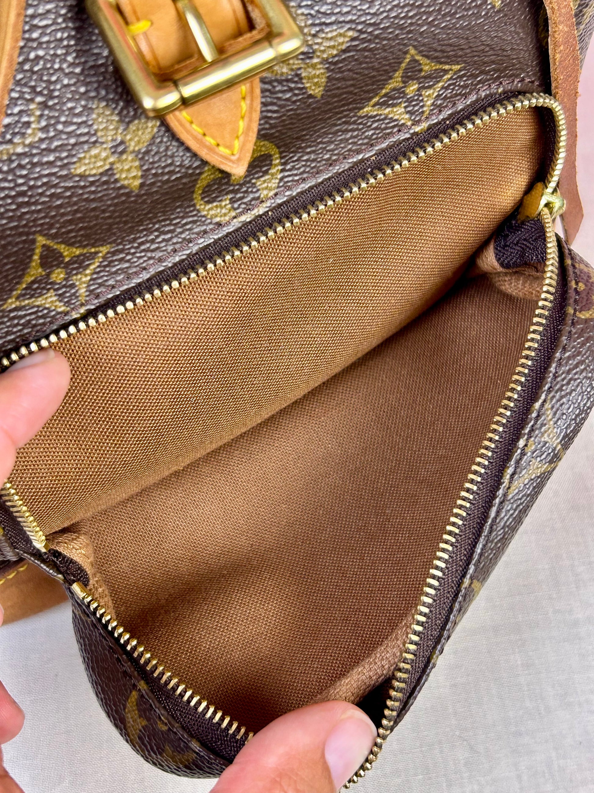 š Description: A perfect hands-free bag! Canvas is in great condition. Leather has watermarks throughout, but mostly an even patina. Straps and chapes are strong, no cracks. Buckle works properly and has no cracks. Trim has no holes or cracks. Hardware is gold and works properly. Interior, inner and exterior pocket are clean. A classic and versatile piece!