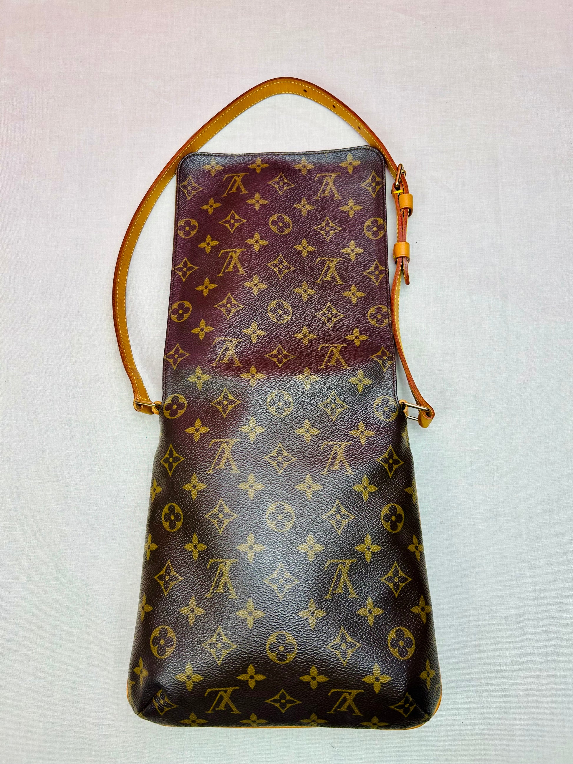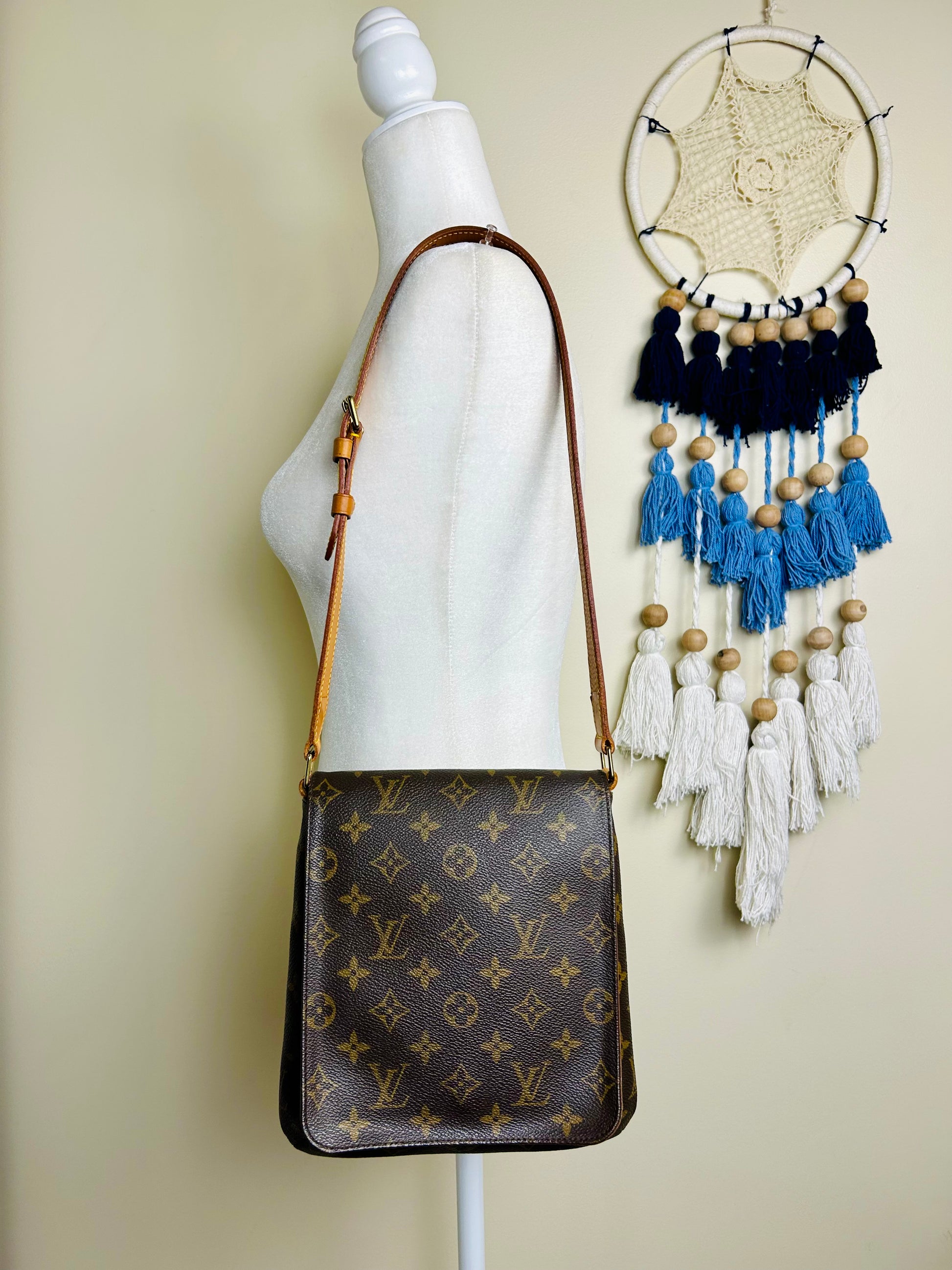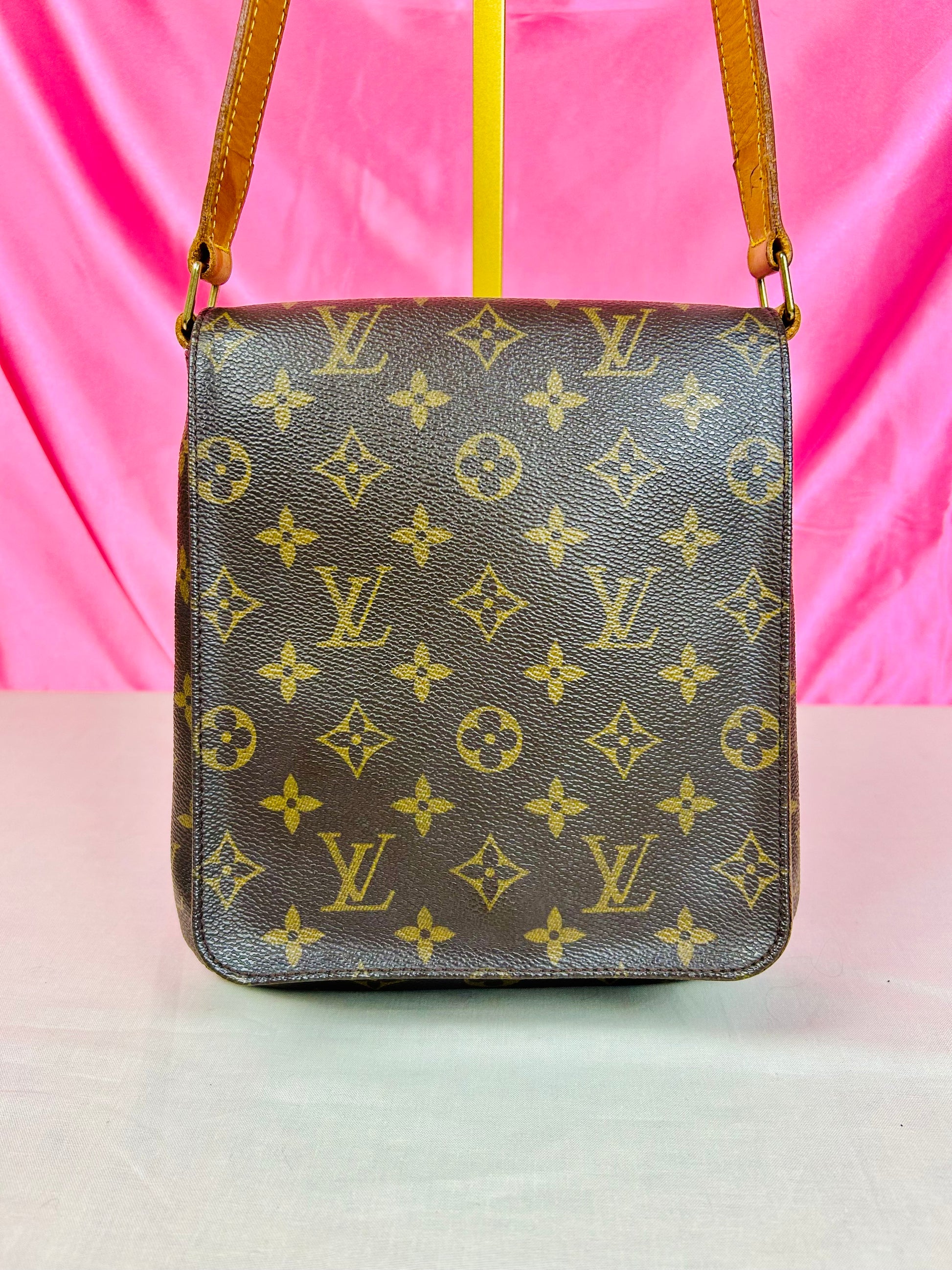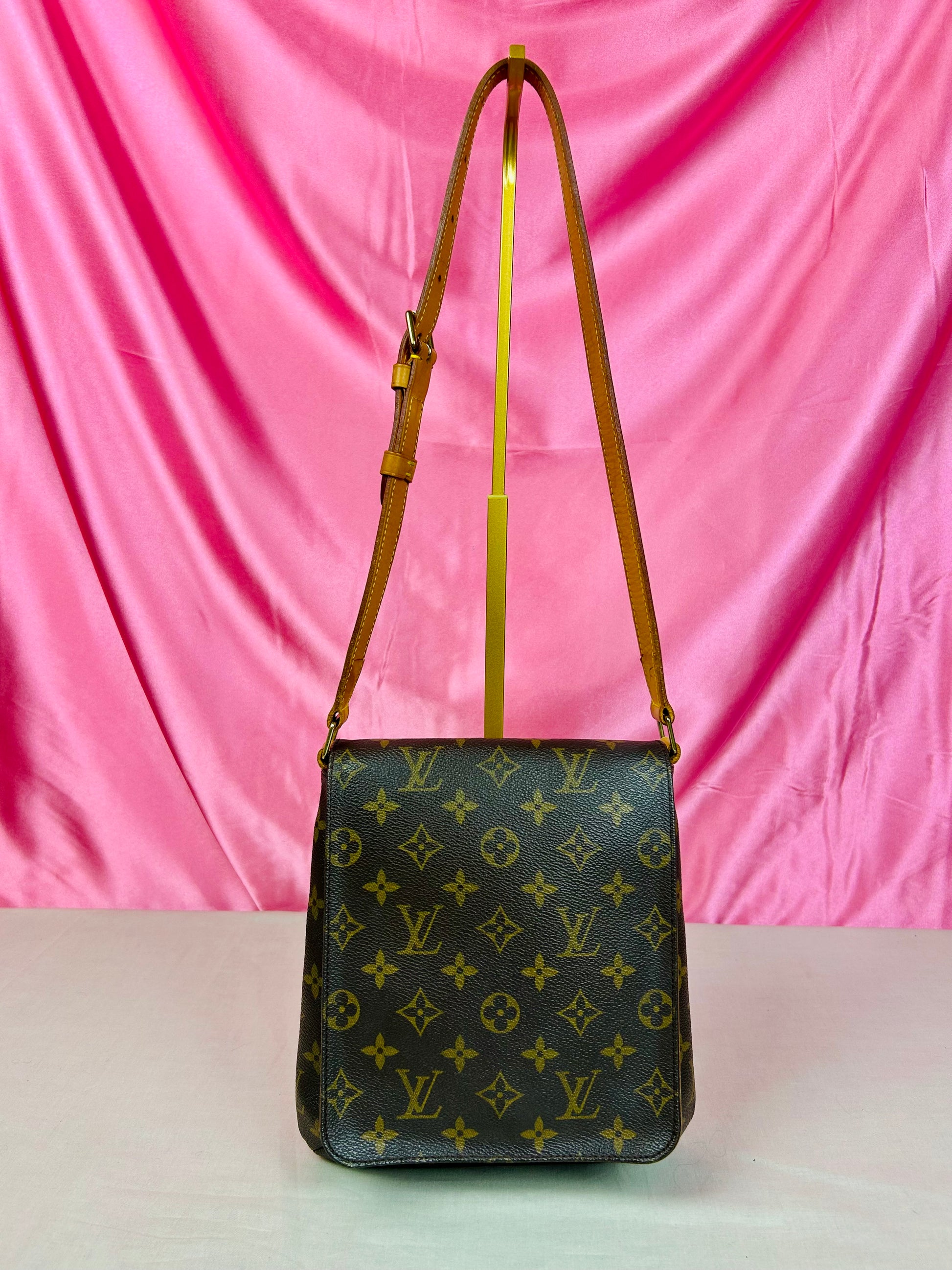 ๐ Description: A timeless and sleek shoulder bag! Canvas is bright and vibrant. Micro cracks are found on the back right side corner flap, very common for this model. Interior and inner pocket are both clean. Leather piping has no cracks or tears. The leather strap has some watermarks and normal wear but remains in great conditionโno major cracks or tears. Chapes are strong. A classic and versatile piece!