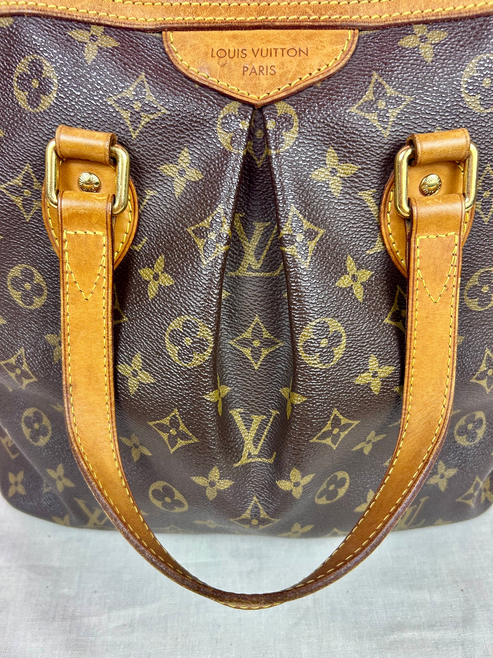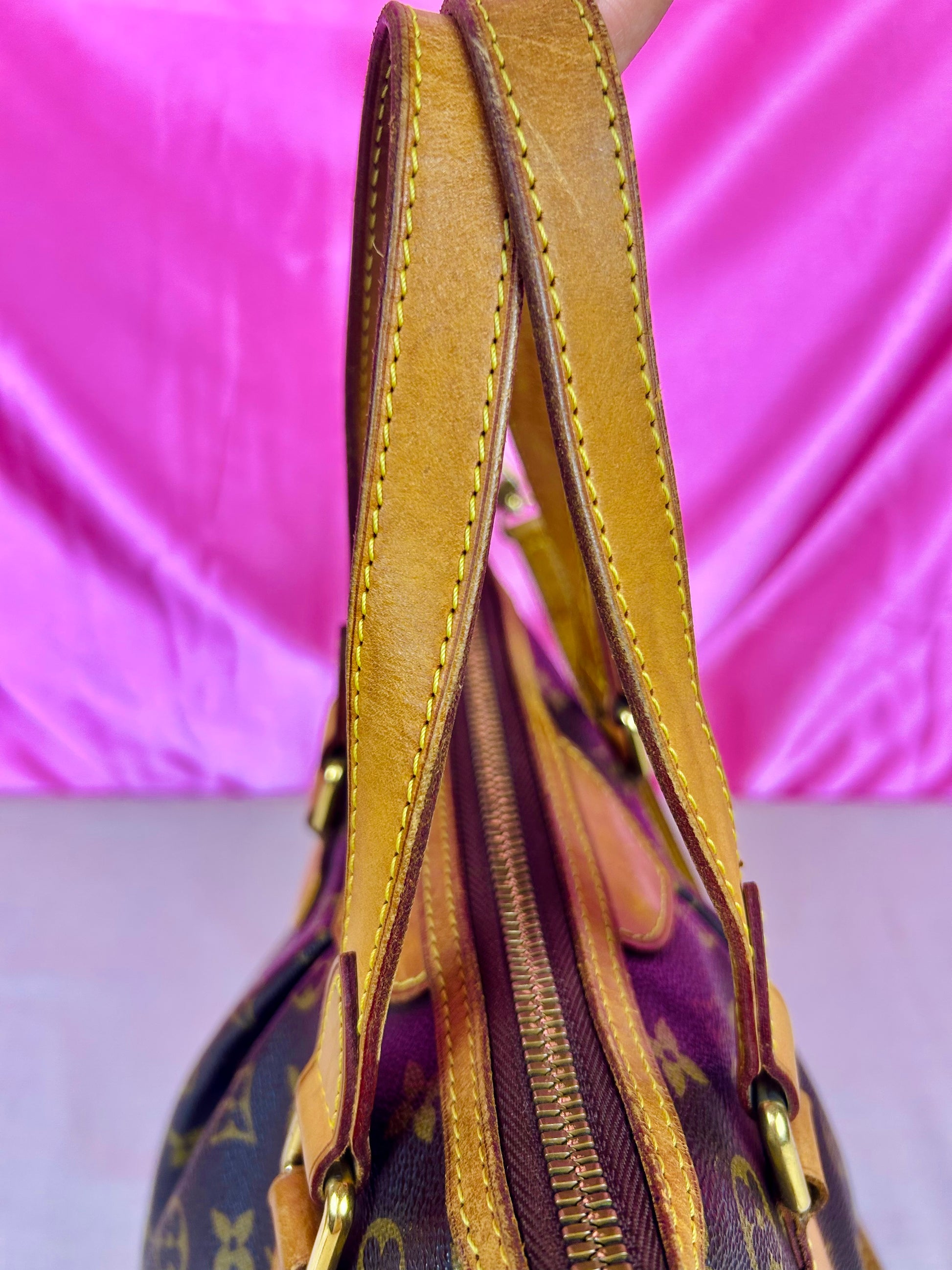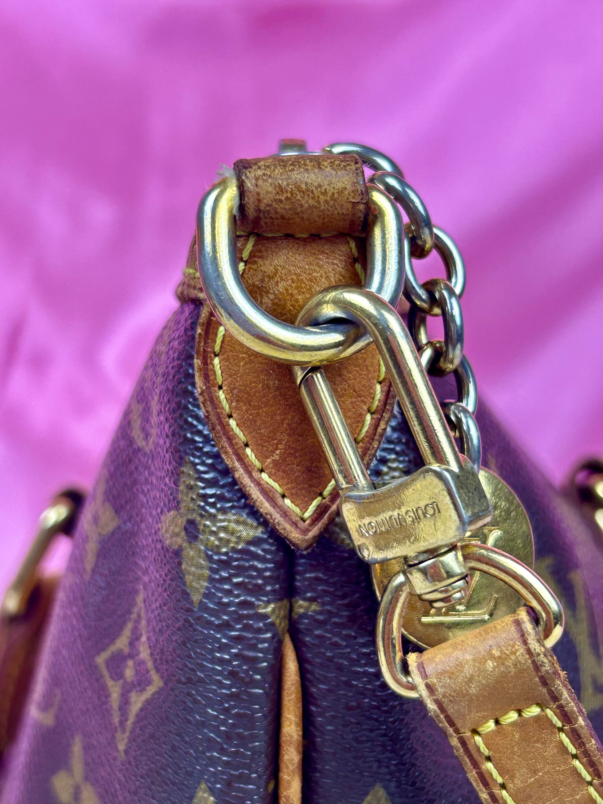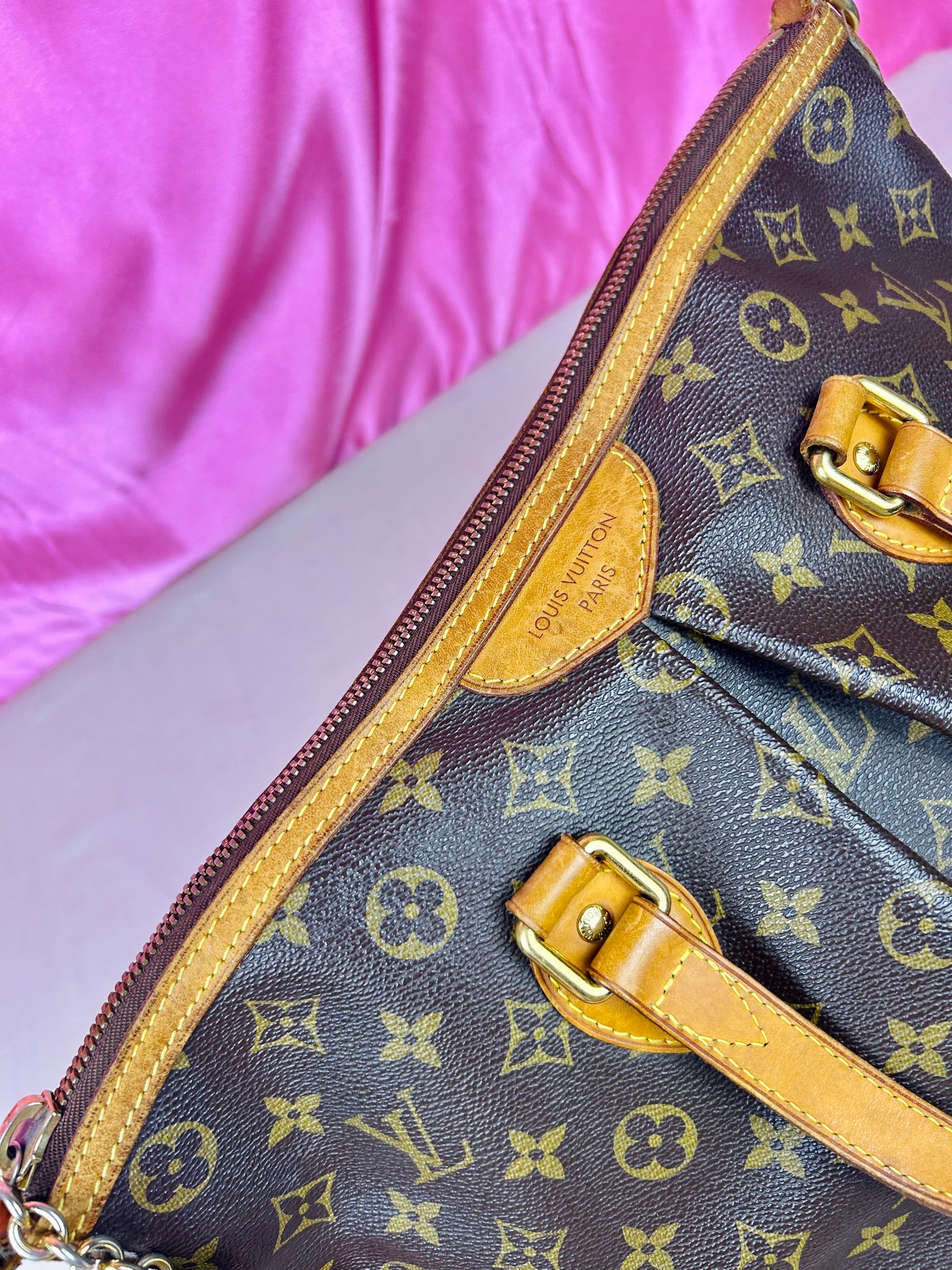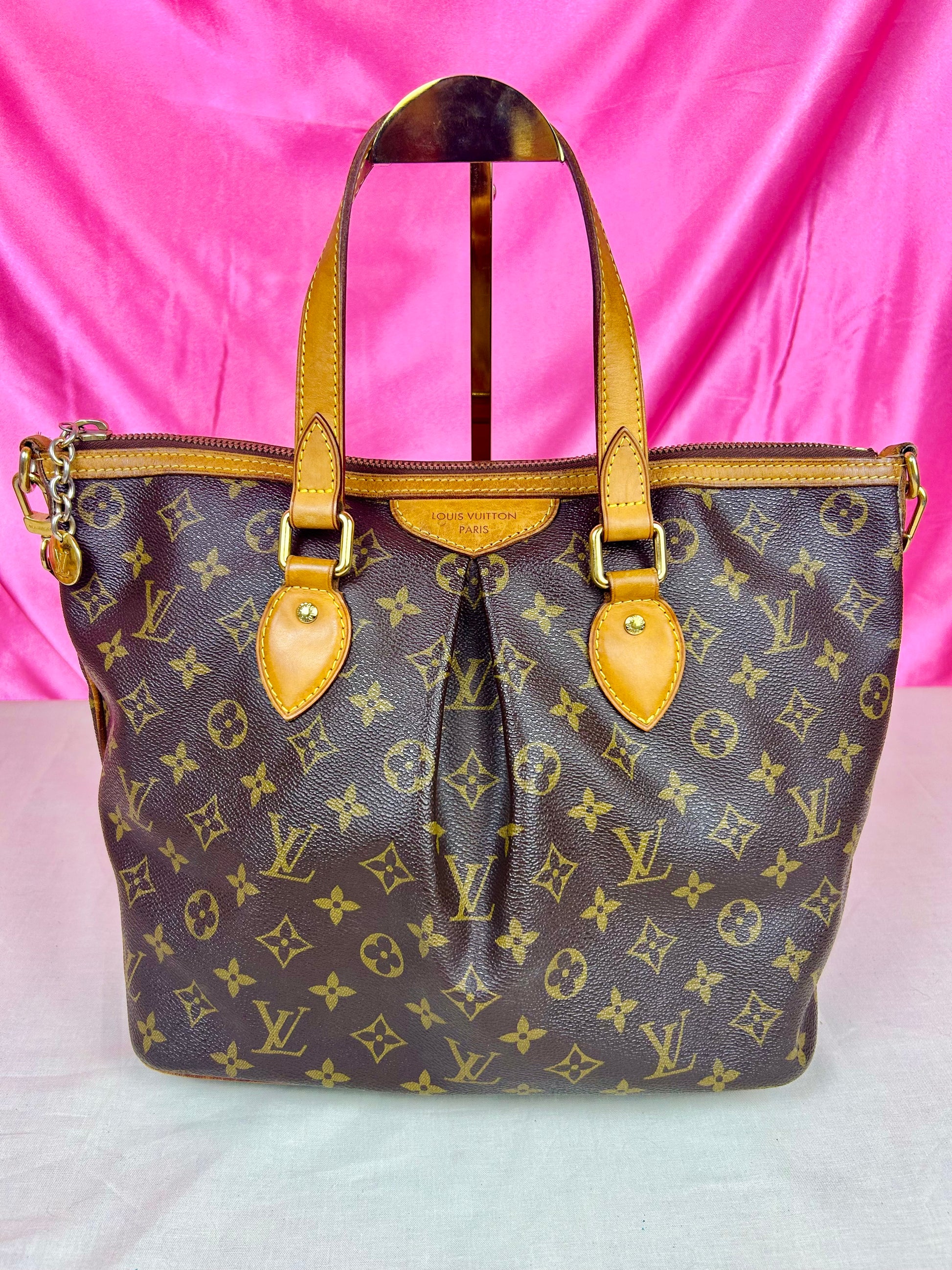 š Description: Canvas is in beautiful condition with no tears or cracks. Piping shows exposures on three of the four bottom corners with discoloration and wearing throughout. Leather trim has some darkening but no cracks or tears. Leather handles are in great condition. Leather strap is also in great condition, with some signs of wear and darkening but no cracks. Interior has staining in the pockets but is otherwise clean. Zipper pulls smoothly. Hardware remains shiny.