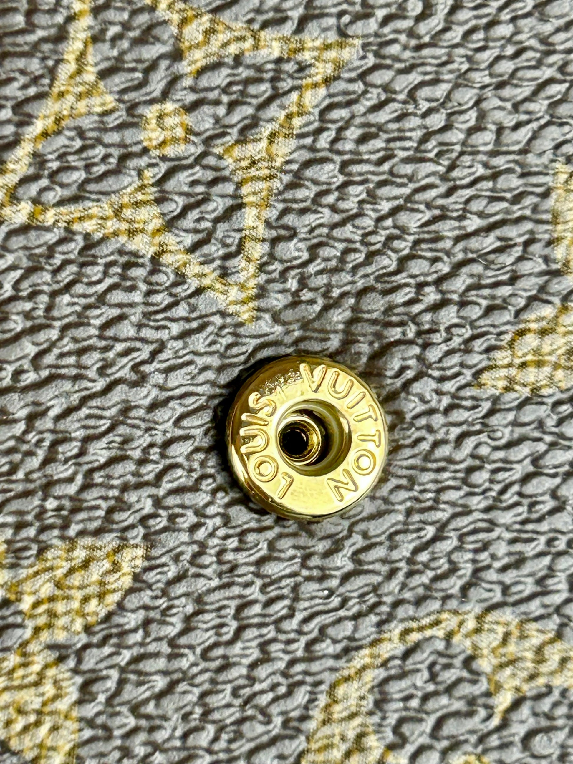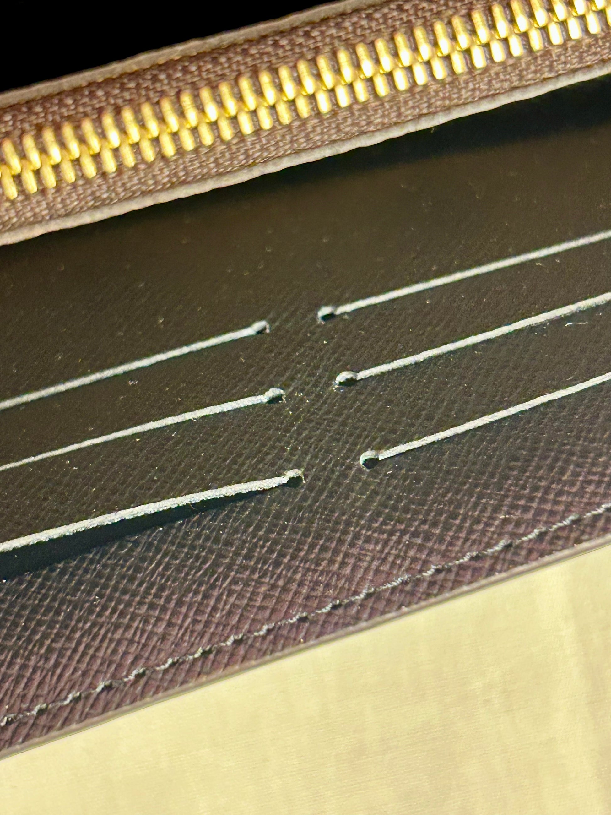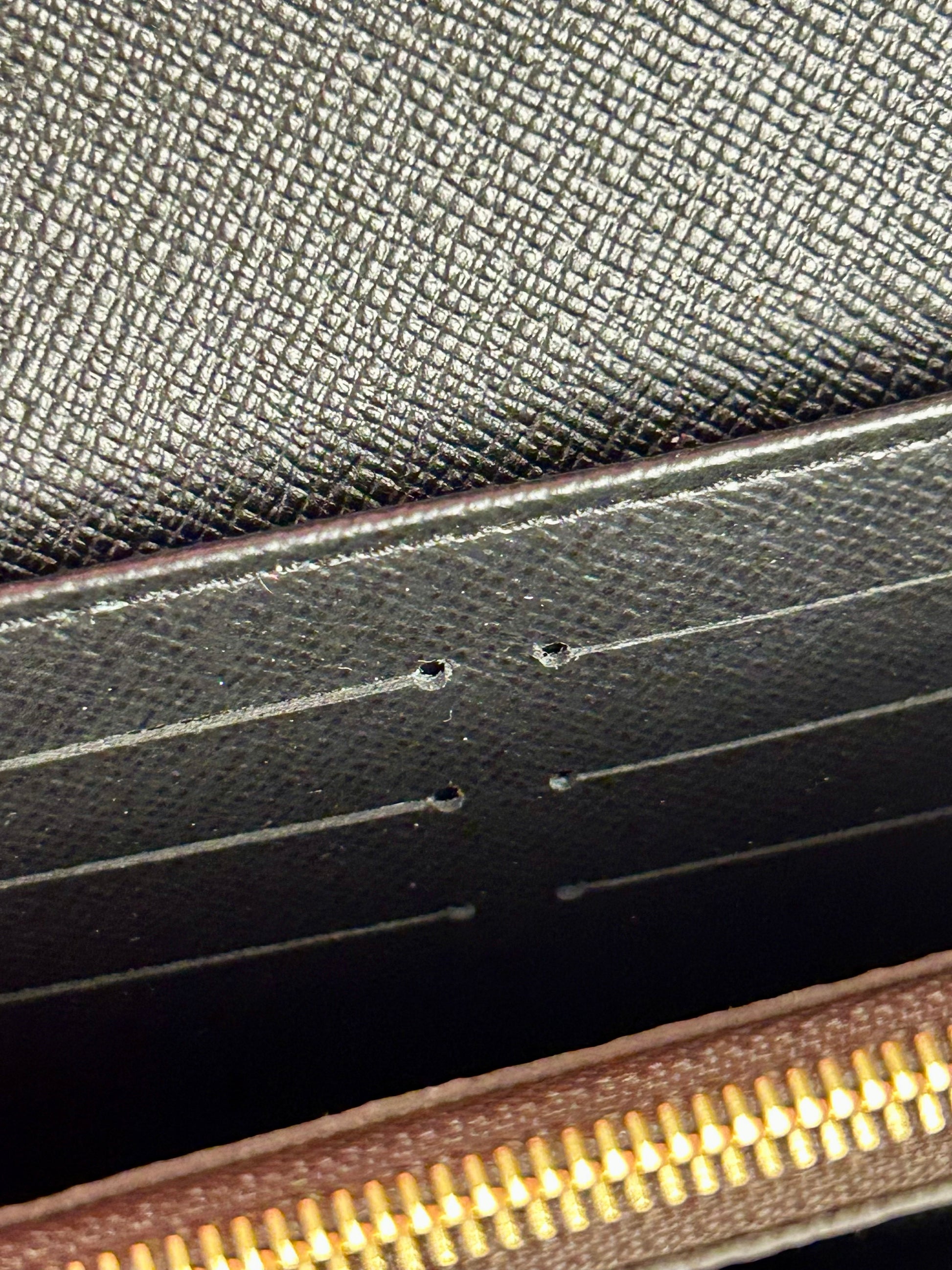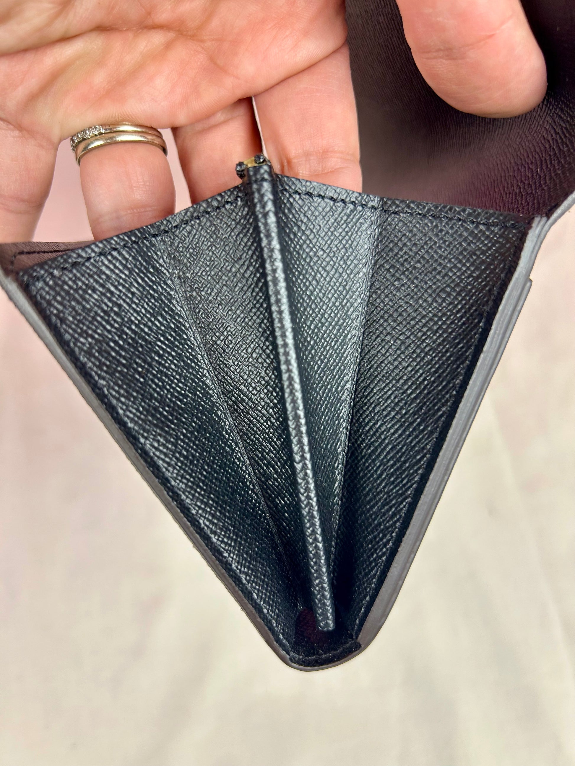 💜 Description: Canvas is in excellent condition. Glazing is intact. Zipper pull and snap button work well. Interior is very clean. Interior leather flap has initials that have been removed. Inside there are 12 CC slots, 1 coin compartment, 2 pocket compartments, and 1 long slot. A beautiful everyday wallet! Comes with a generic insert and crossbody chain, wallet insert color may vary.