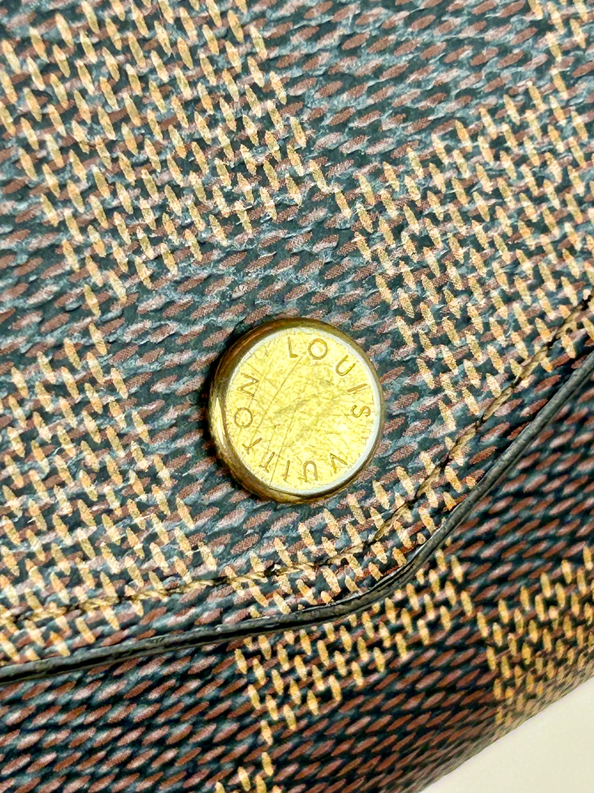 💜 Description: A classic and functional wallet. Canvas is in excellent condition. Glazing is intact. Zipper pull and snap button work well. Interior is clean. There are 4 CC on the outside. Inside there are 12 CC slots, 1 coin compartment, 2 pocket compartments, and 2 long slots. A great everyday piece! Comes with an insert and crossbody chain, insert color may vary.