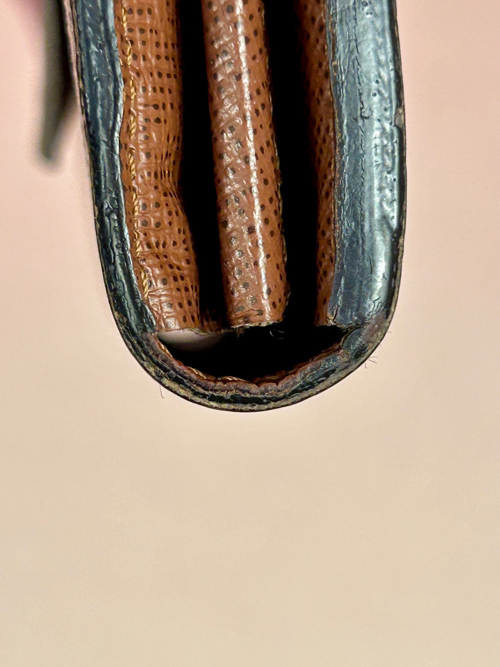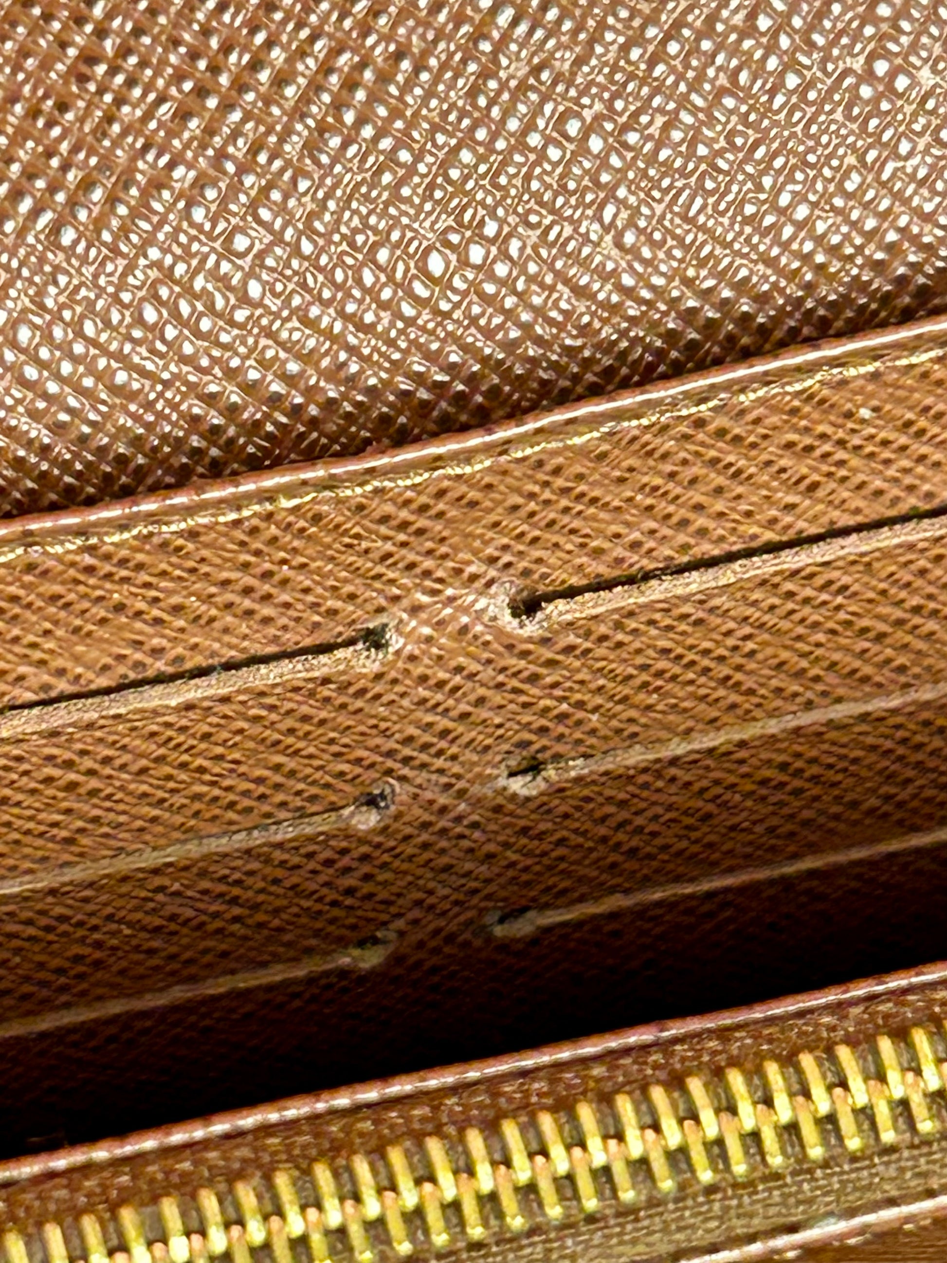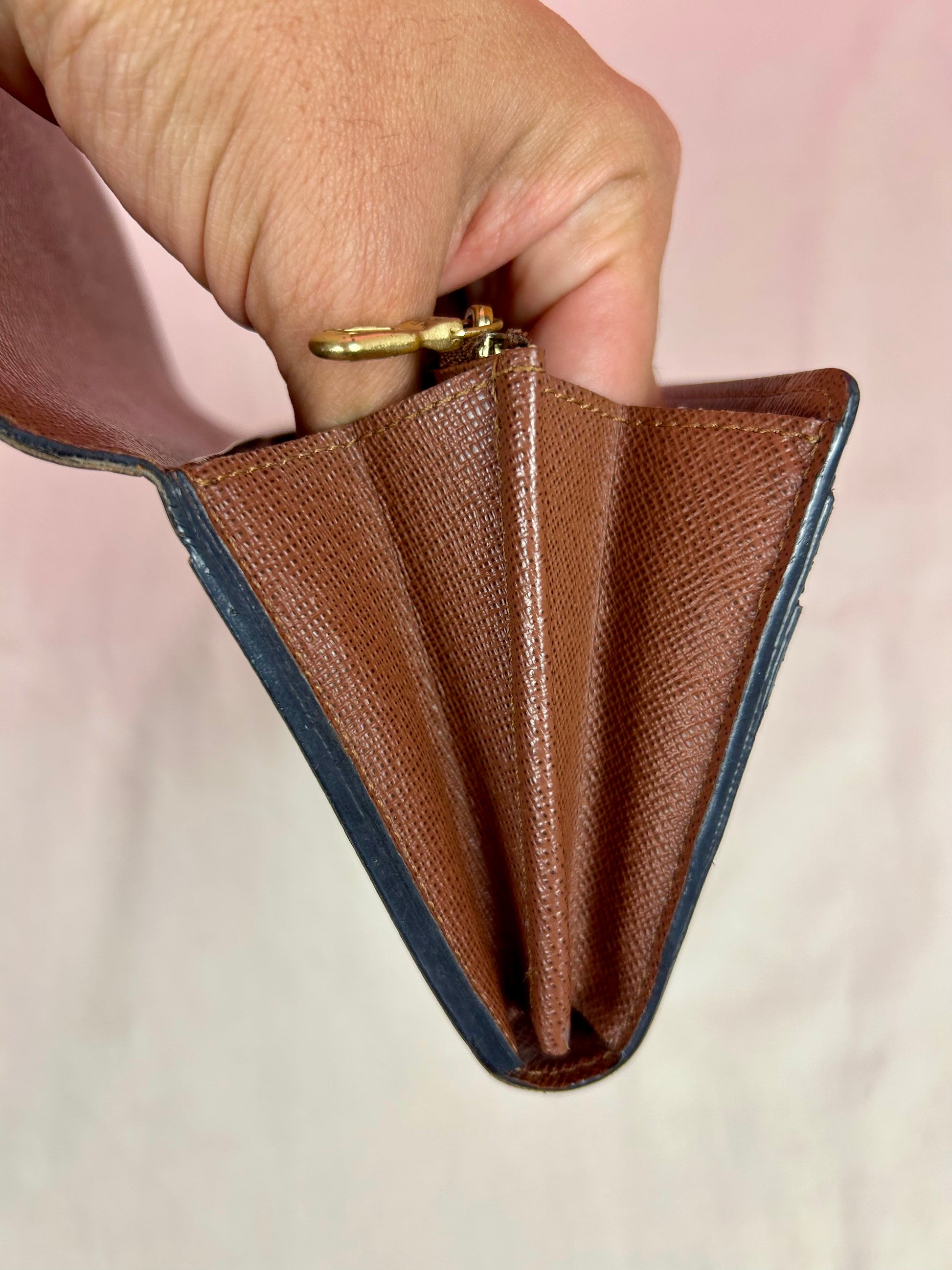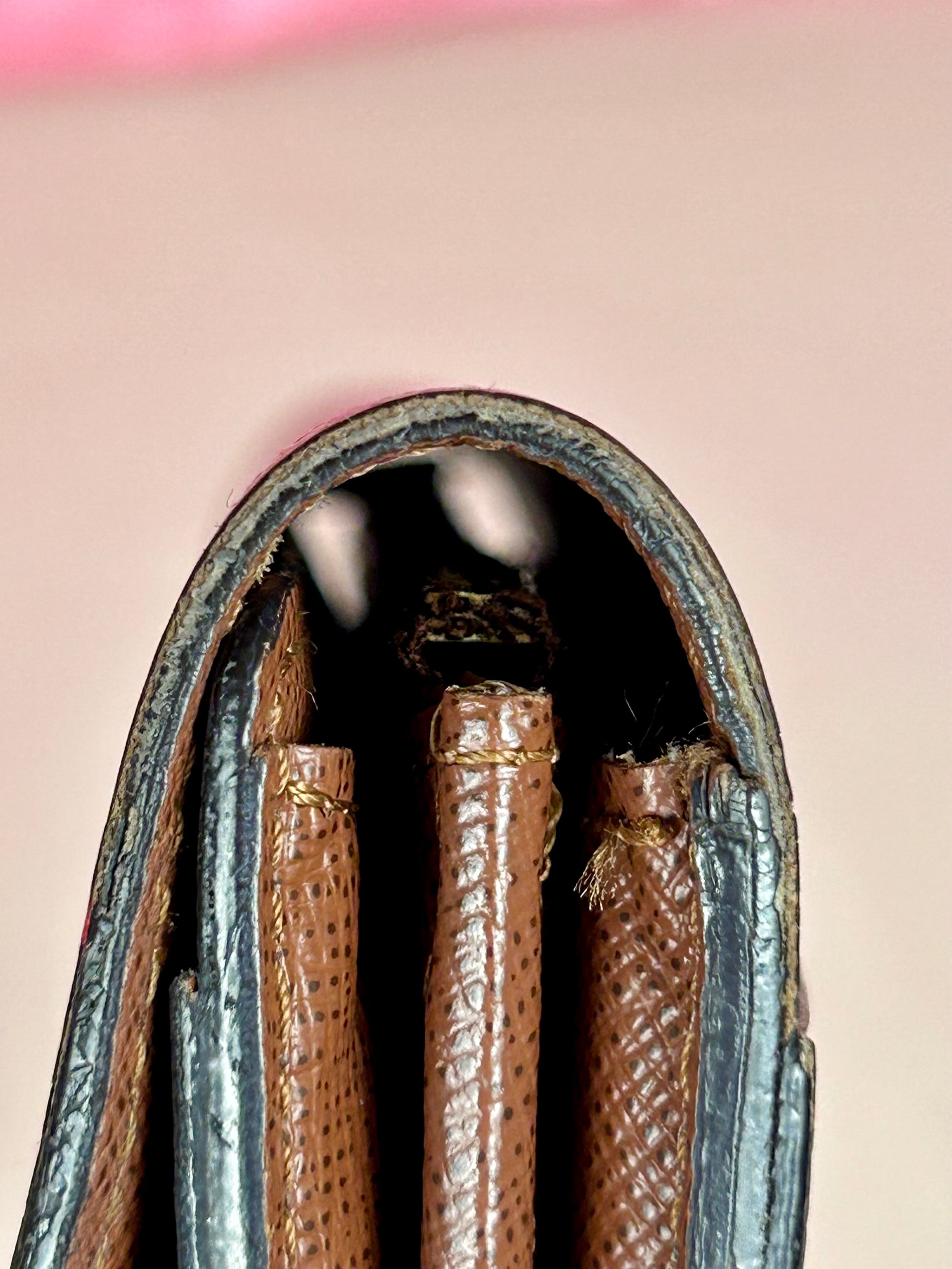 š Description: A classic and functional wallet. Canvas is in bright and vibrant, small cracks fount on the backside.Ā Glazing is intact. Zipper pull and snap button work well. Interior is clean. There are 4 CC on the outside. Inside there are 12 CC slots, 1 coin compartment, 2 pocket compartments, and 2 long slots. A great everyday piece! Comes with an insert and crossbody chain, insert color may vary.Ā