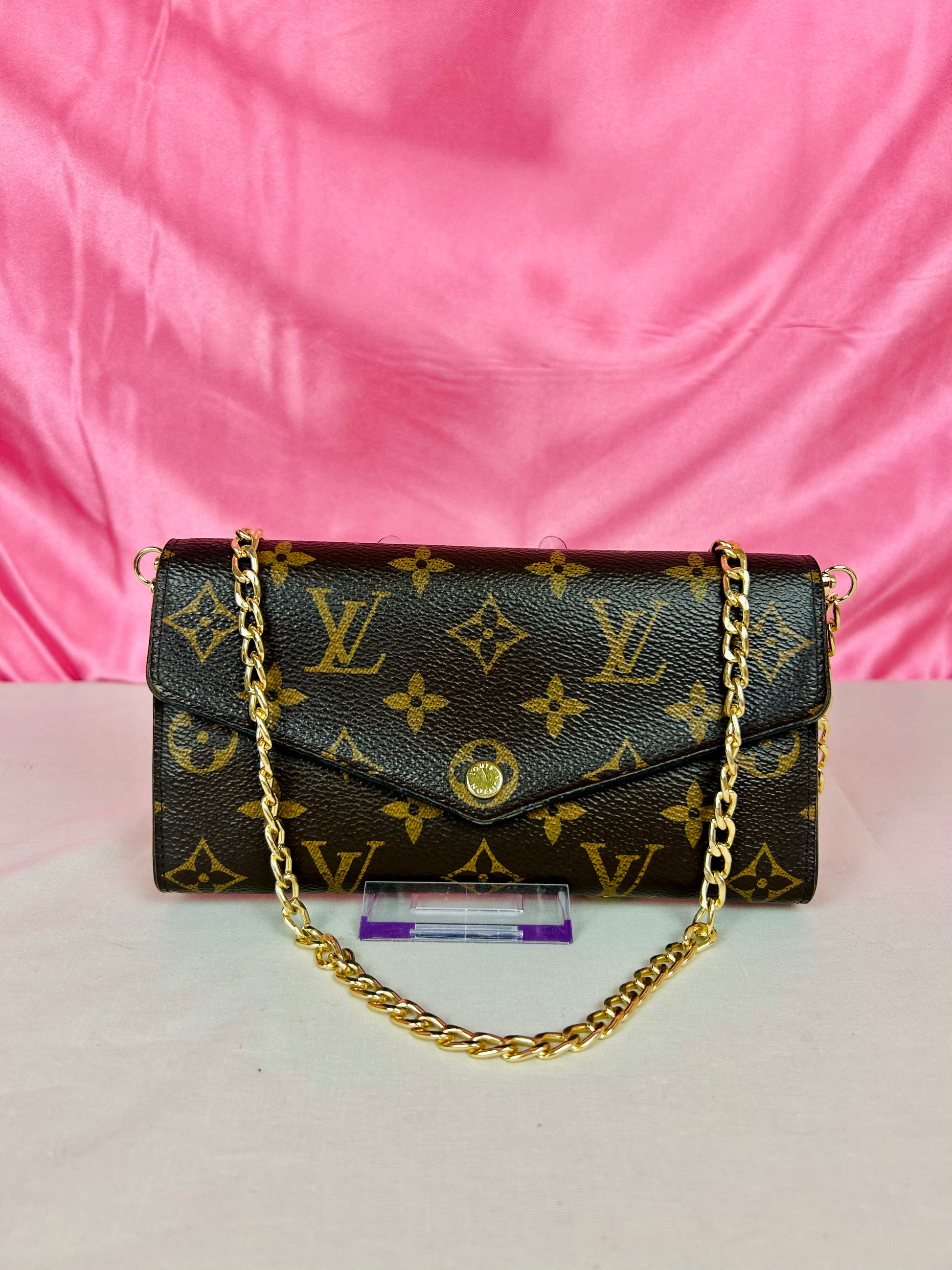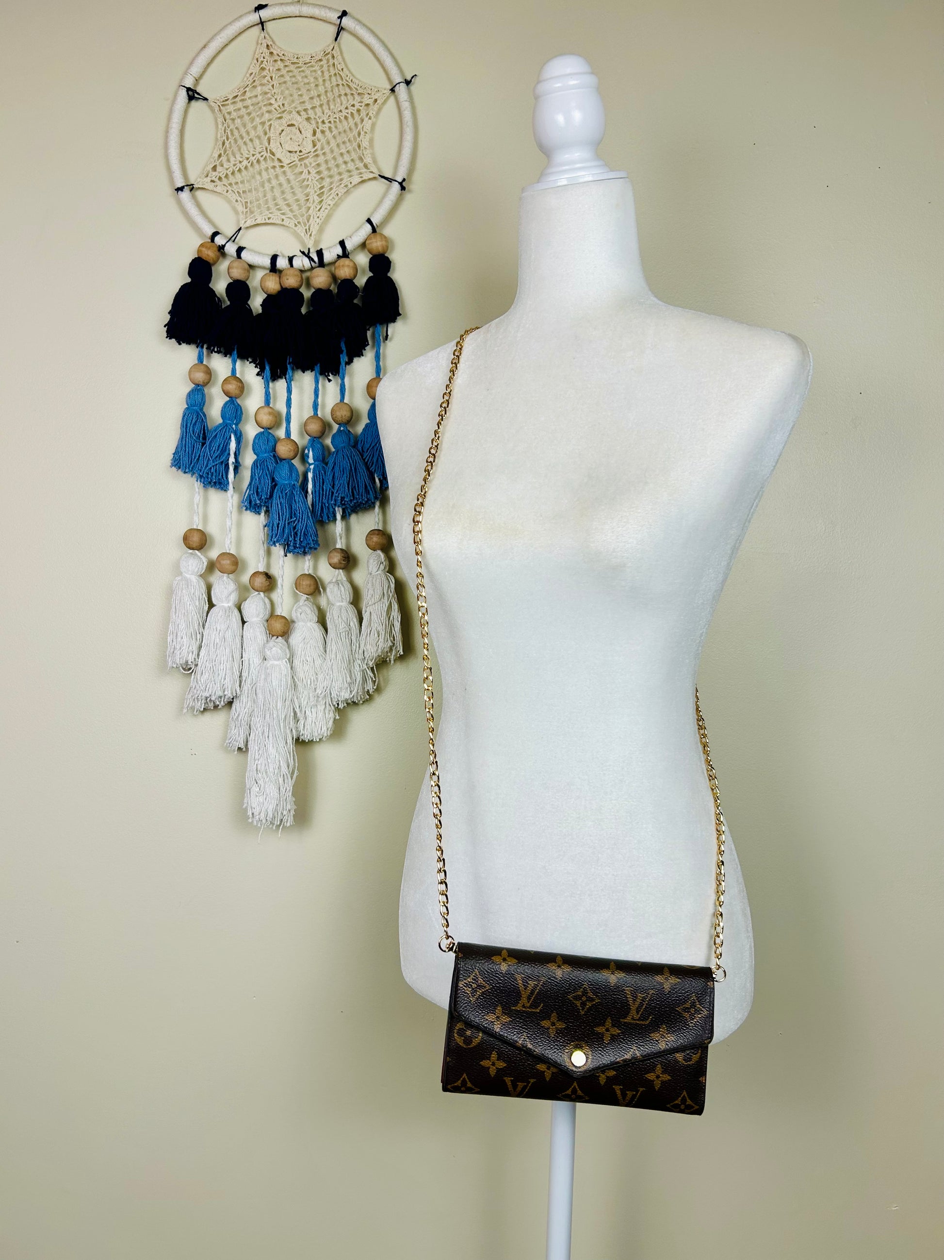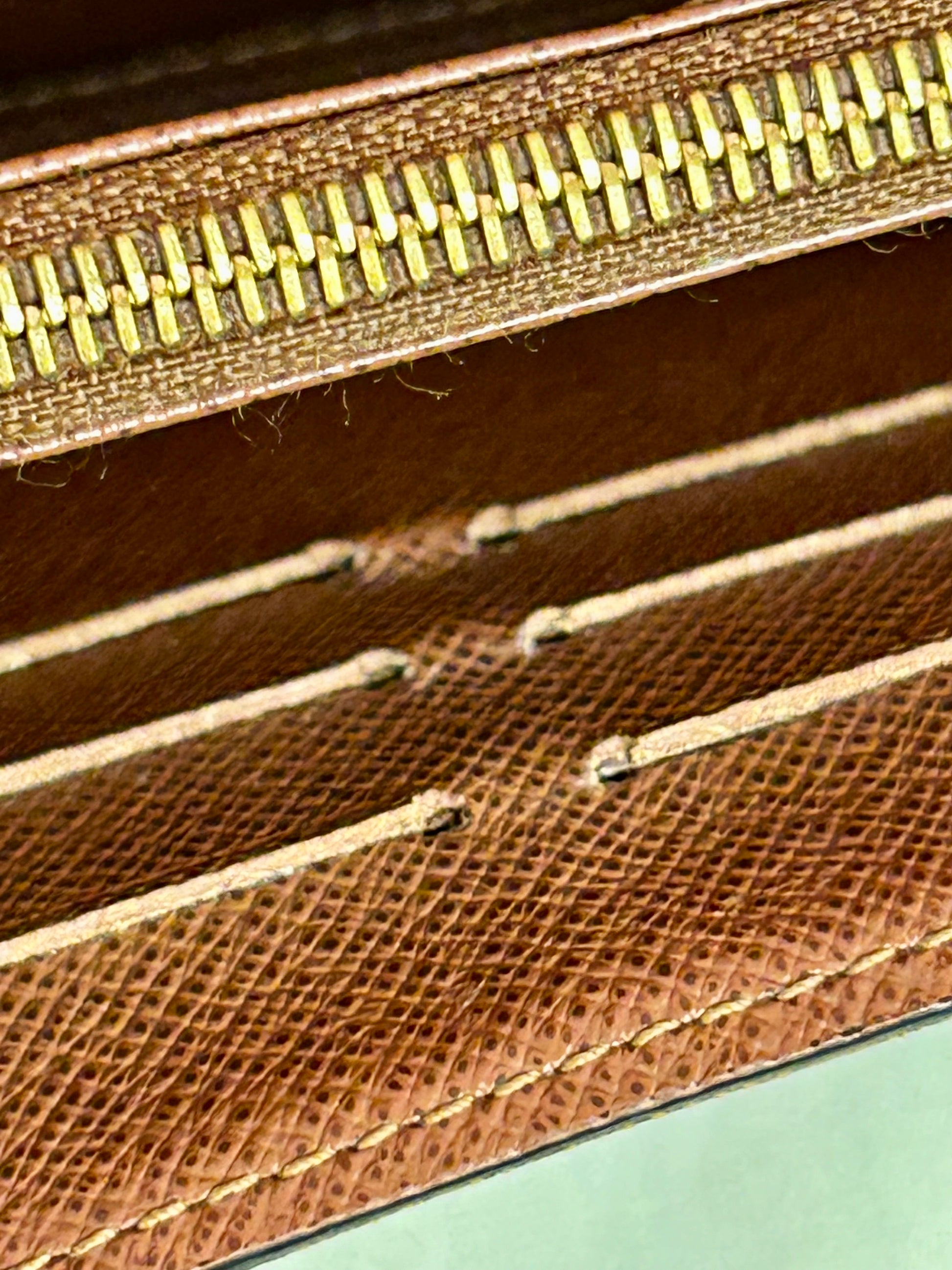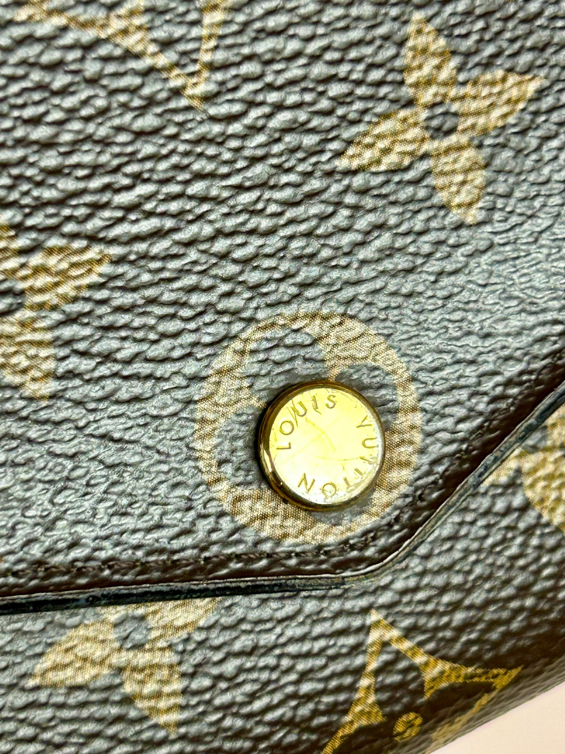 š Description: A classic and functional wallet. Canvas is in bright and vibrant, small cracks fount on the backside.Ā Glazing is intact. Zipper pull and snap button work well. Interior is clean. There are 4 CC on the outside. Inside there are 12 CC slots, 1 coin compartment, 2 pocket compartments, and 2 long slots. A great everyday piece! Comes with an insert and crossbody chain, insert color may vary.Ā
