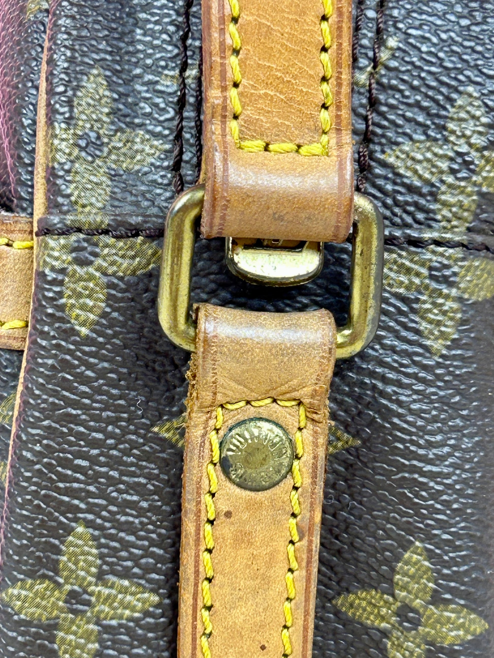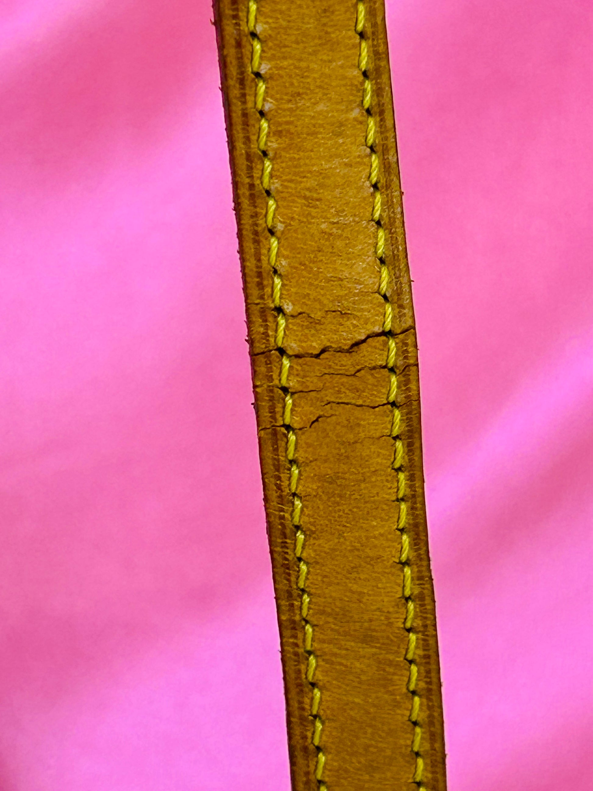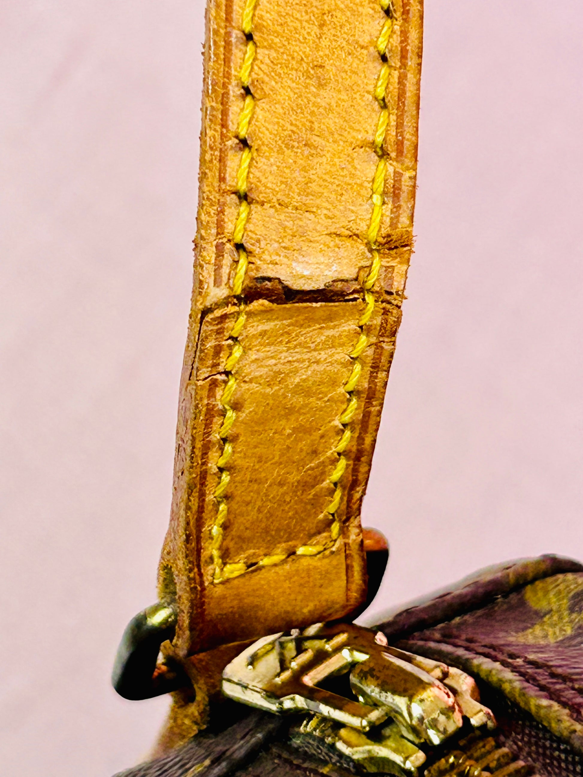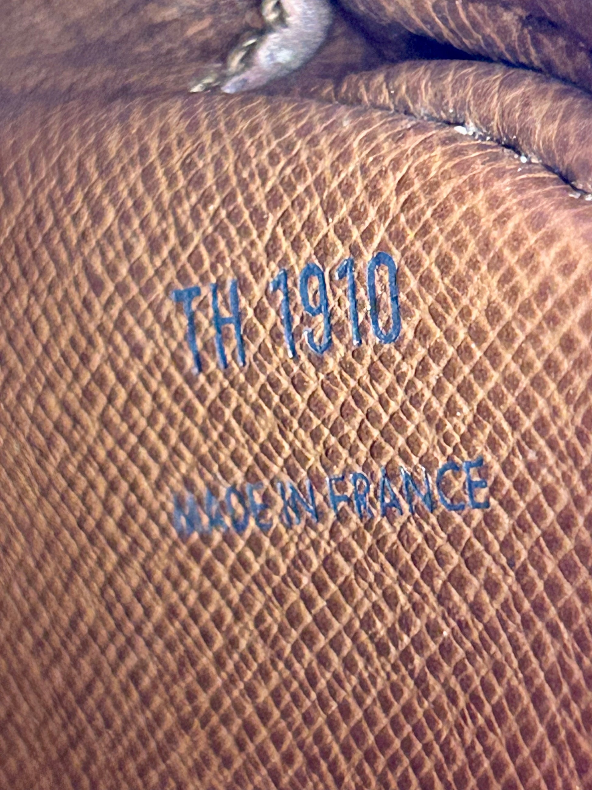 ๐ Description: Canvas is in excellent condition with no cracks or tears. Leather has developed a beautiful patina. Leather piping is intact. Chapes have no cracks and are strong and fully intact. Leather strap has hairline cracks in several places, but remains strong. The main interior compartment is clean. All pockets have been cleaned and are useable, no sticky pockets. Both zippers pull smoothly and function well.ย