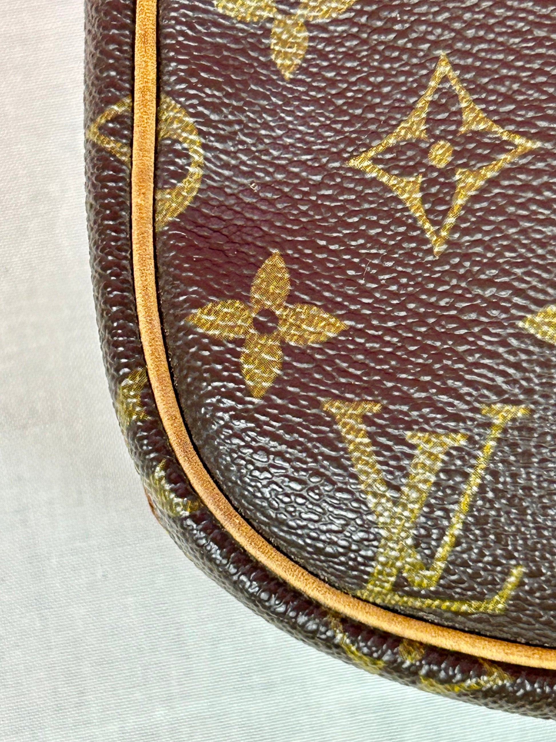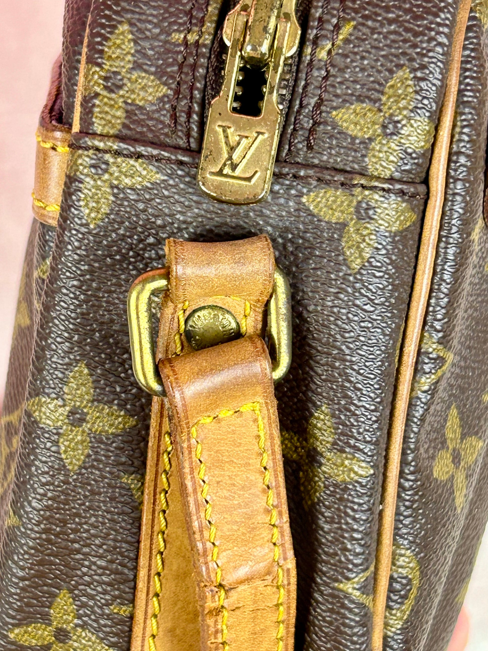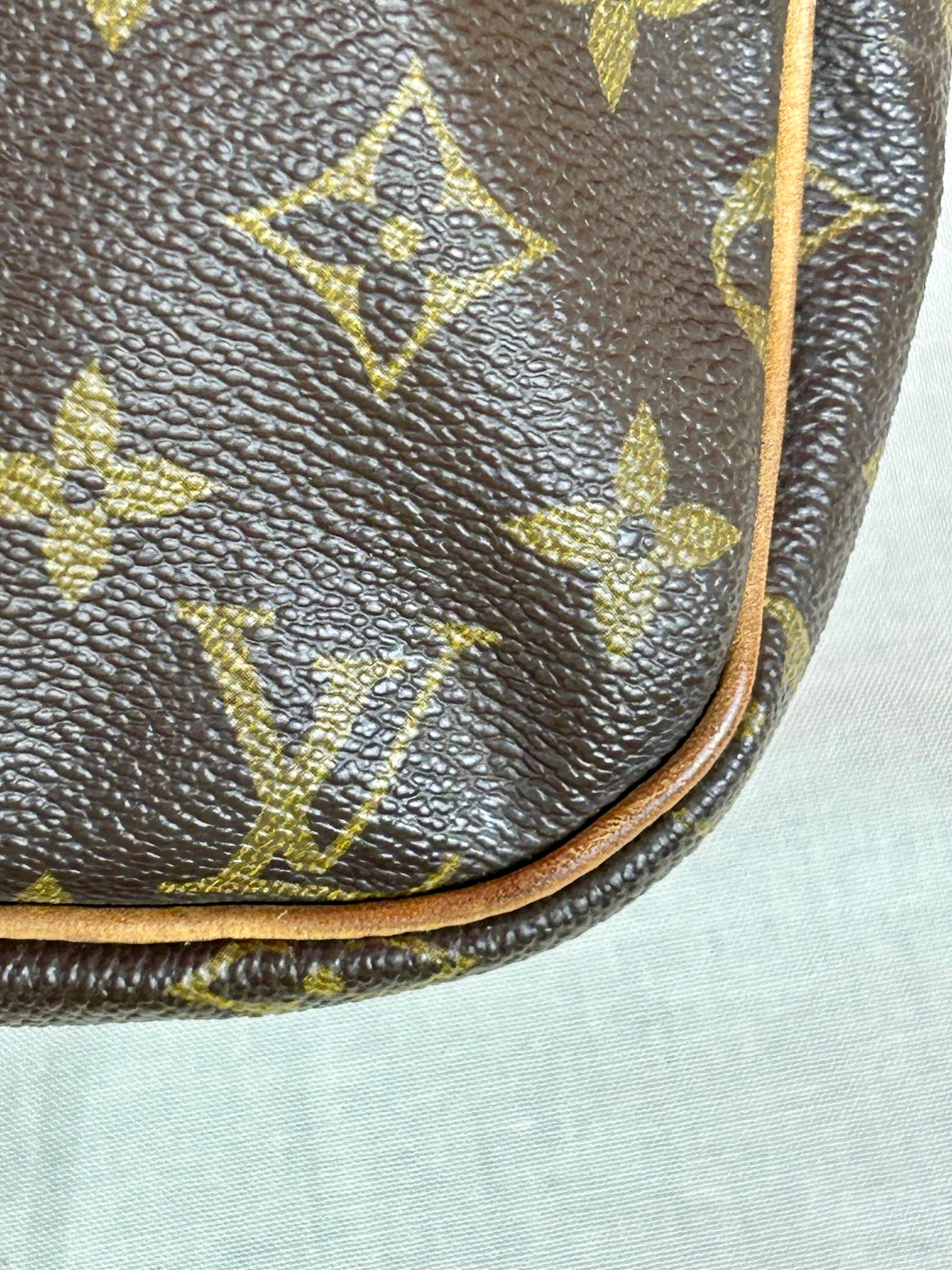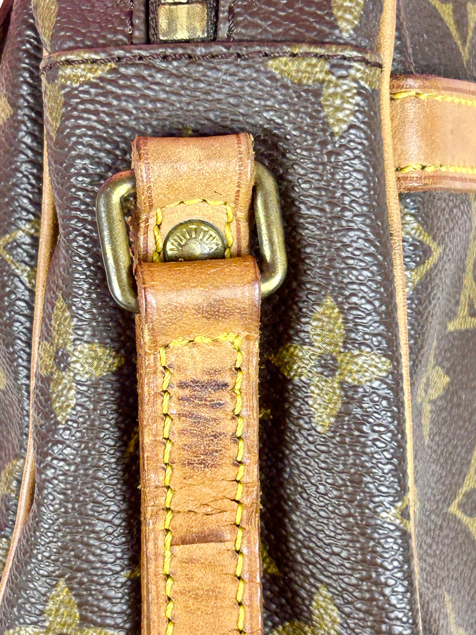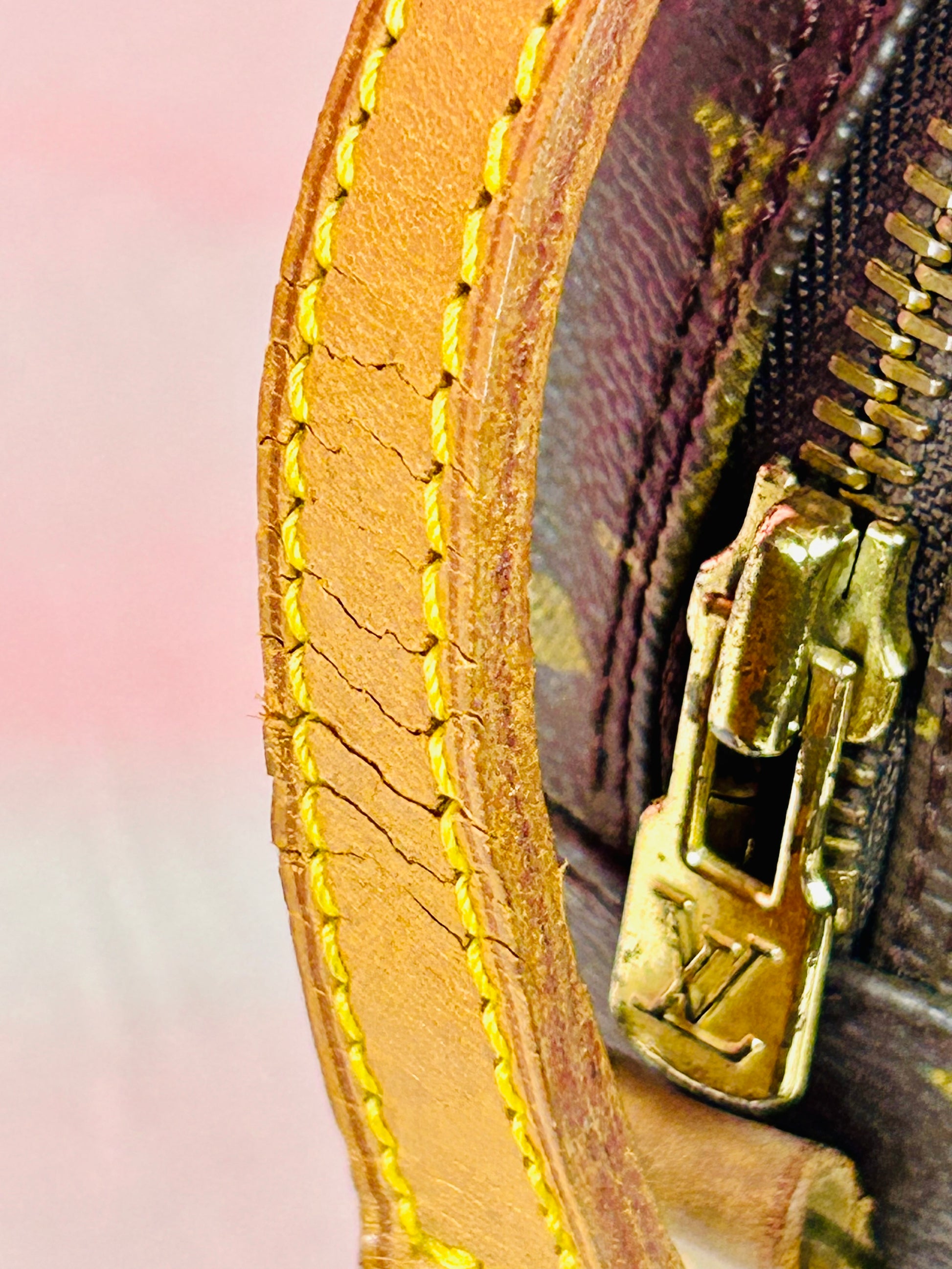 ๐ Description: Canvas is in excellent condition with no cracks or tears. Leather has developed a beautiful patina. Leather piping is intact. Chapes have no cracks and are strong and fully intact. Leather strap has hairline cracks in several places, but remains strong. The main interior compartment is clean. All pockets have been cleaned and are useable, no sticky pockets. Both zippers pull smoothly and function well.ย