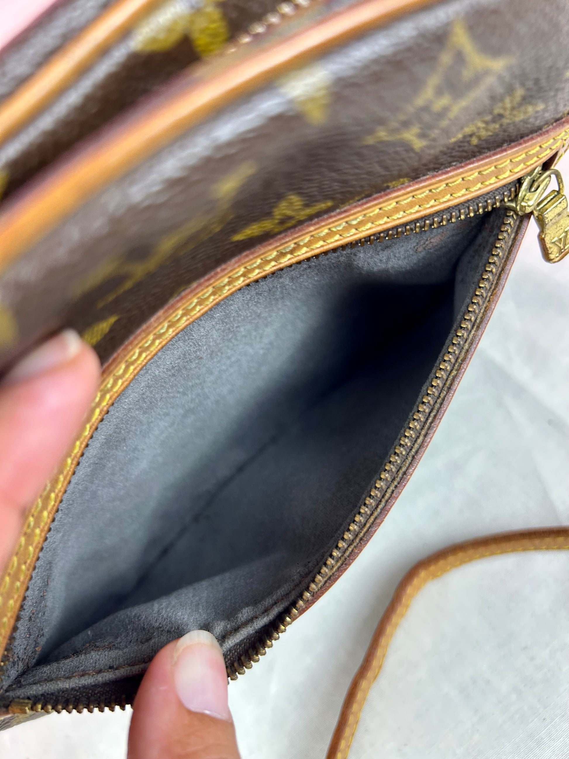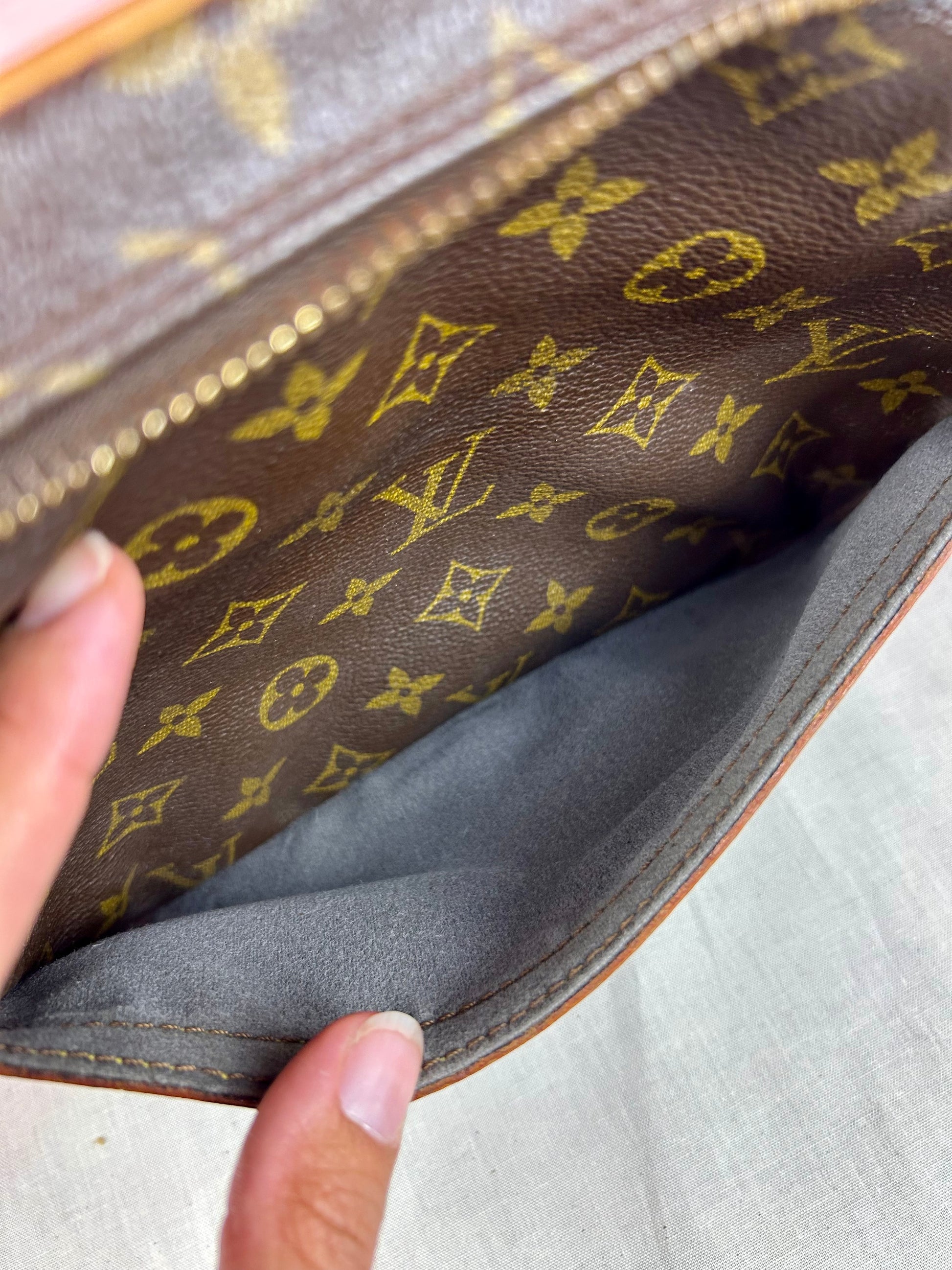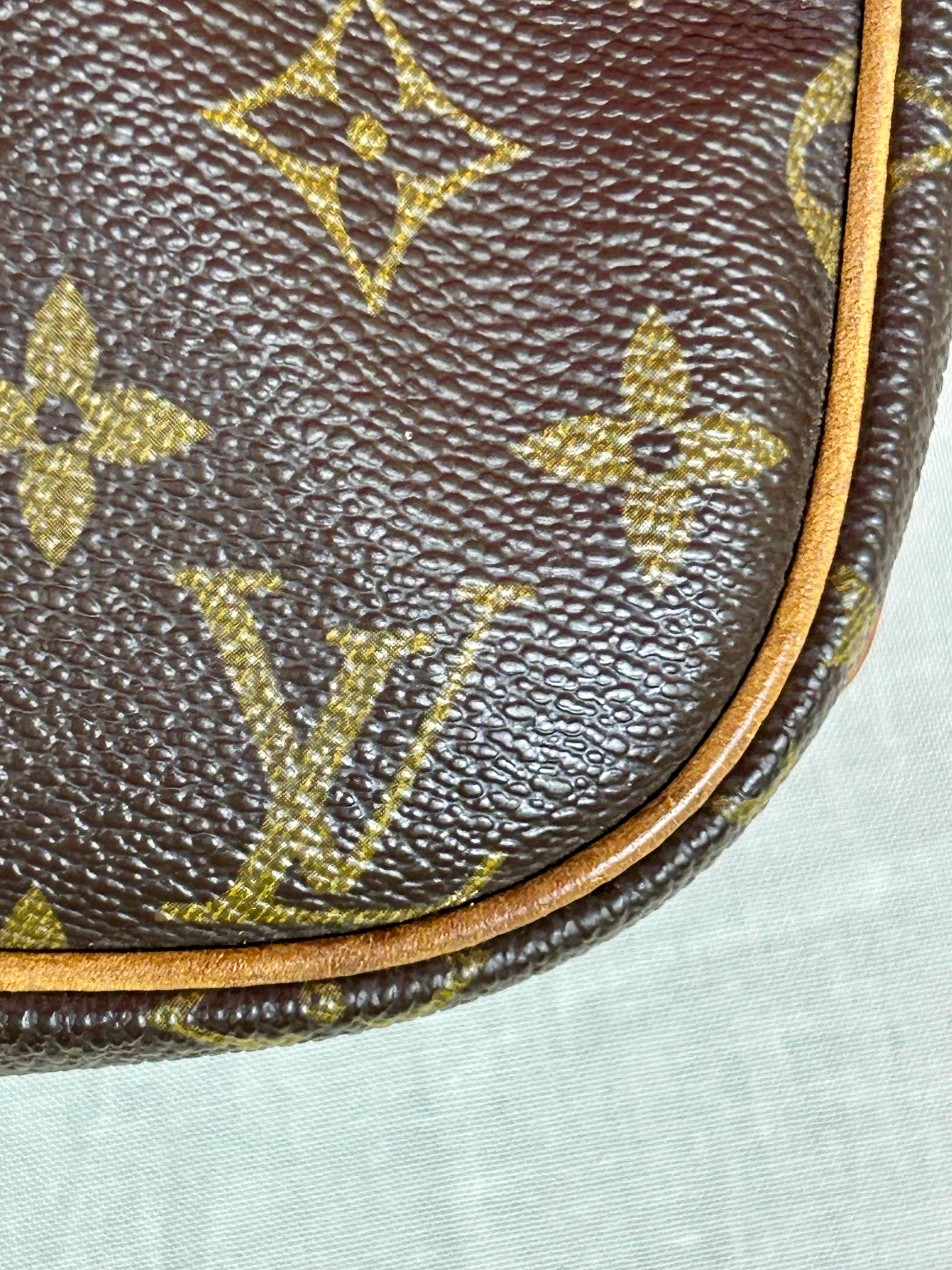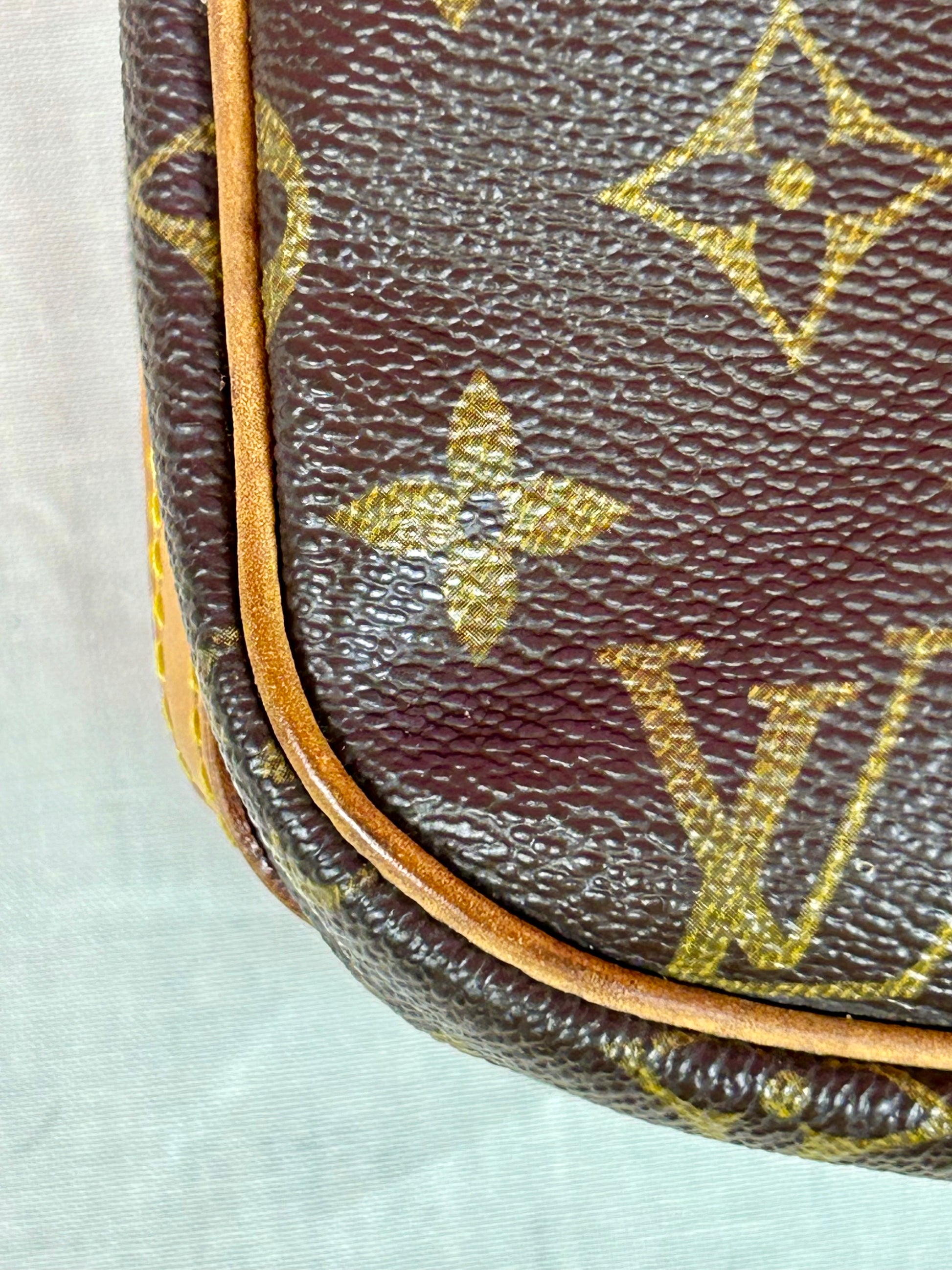 ๐ Description: Canvas is in excellent condition with no cracks or tears. Leather has developed a beautiful patina. Leather piping is intact. Chapes have no cracks and are strong and fully intact. Leather strap has hairline cracks in several places, but remains strong. The main interior compartment is clean. All pockets have been cleaned and are useable, no sticky pockets. Both zippers pull smoothly and function well.ย