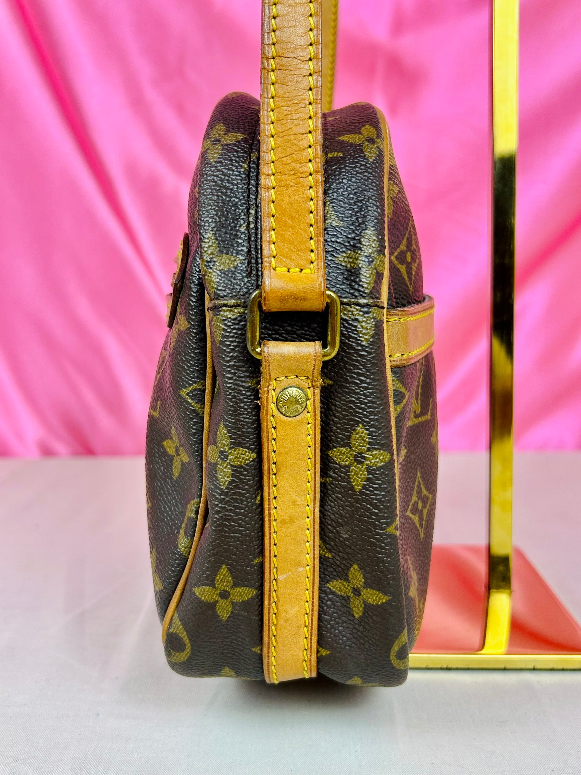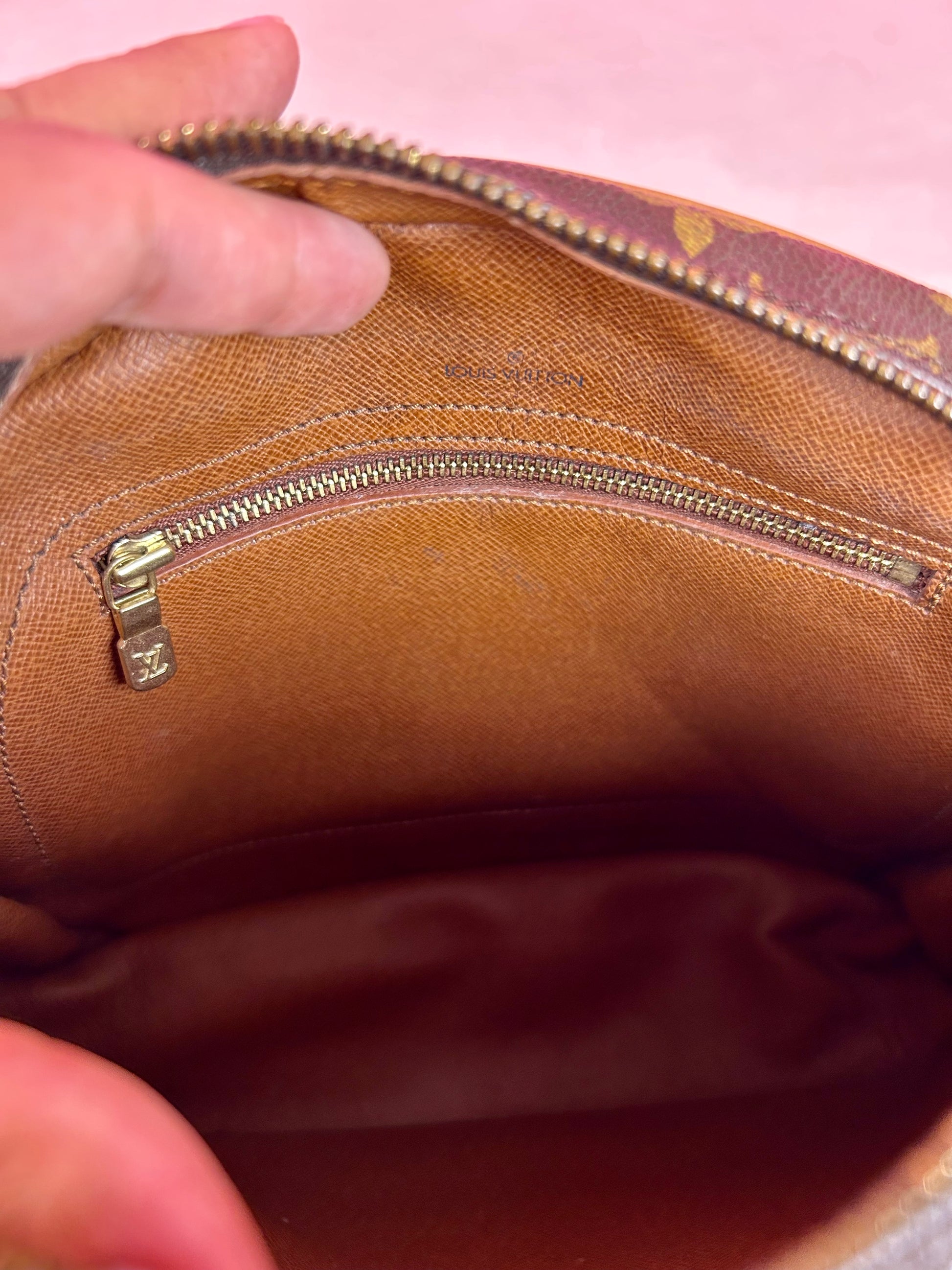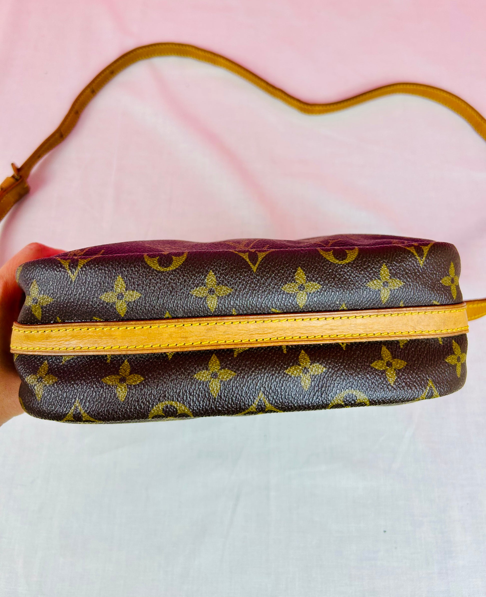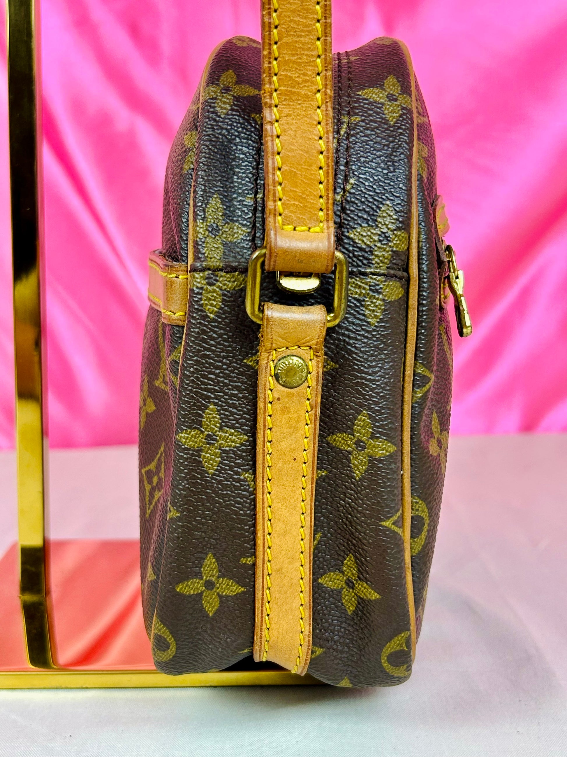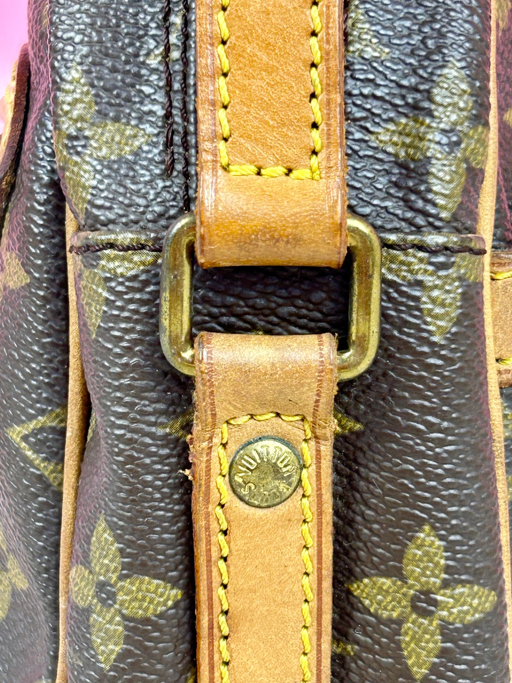 ๐ Description: Canvas is in excellent condition with no cracks or tears. Leather has developed a beautiful patina. Leather piping is intact. Chapes have no cracks and are strong and fully intact. Leather strap has hairline cracks in several places, but remains strong. The main interior compartment is clean. All pockets have been cleaned and are useable, no sticky pockets. Both zippers pull smoothly and function well.ย