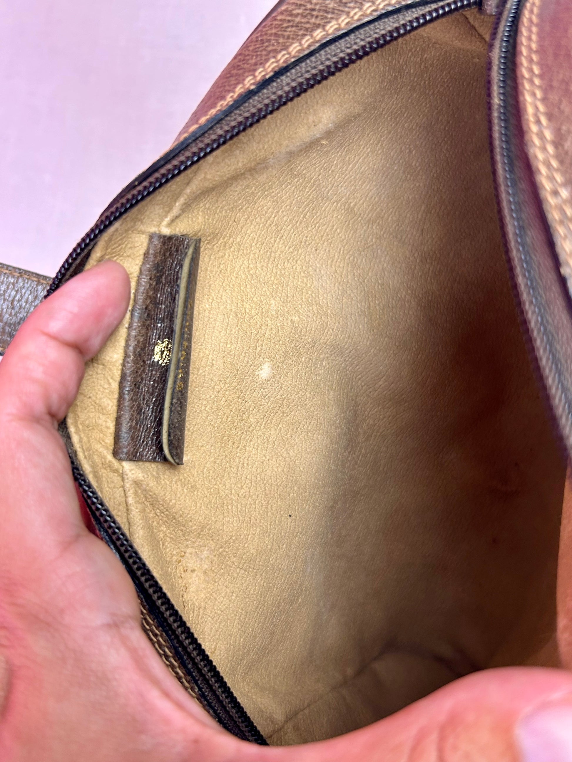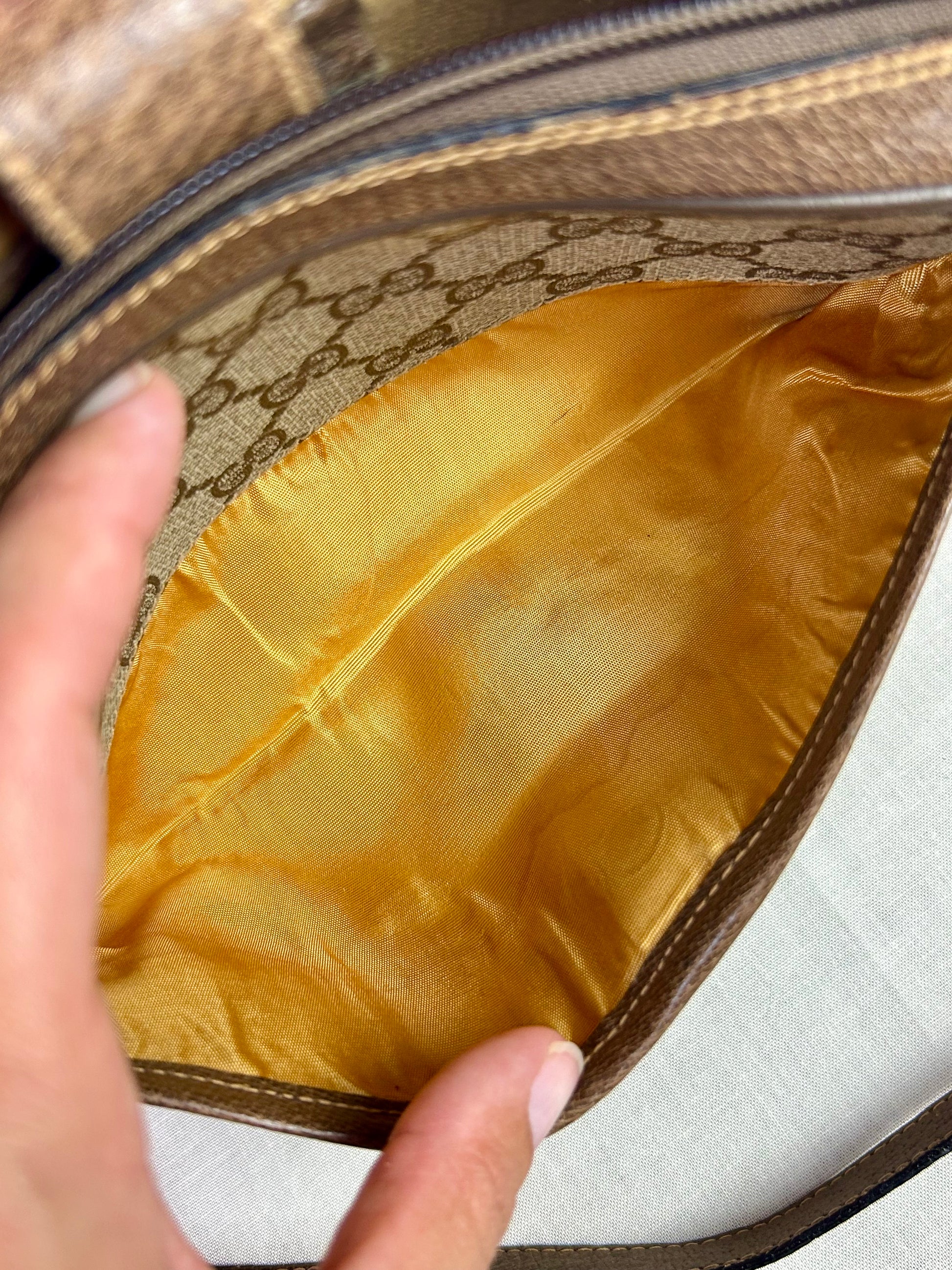 š Description: Classic GG canvas is in excellent shape with no cracks or tears. Piping is in excellent condition. Leather trim shows minimal wear with a small mark near the zipper. Leather strap is strong with no tears and shows light signs of normal use. Chapes are secure and intact. Hardware remains shiny. Front pocket is clean. Interior coating is still intact, has some markings and discoloration but is otherwise clean and functional.